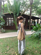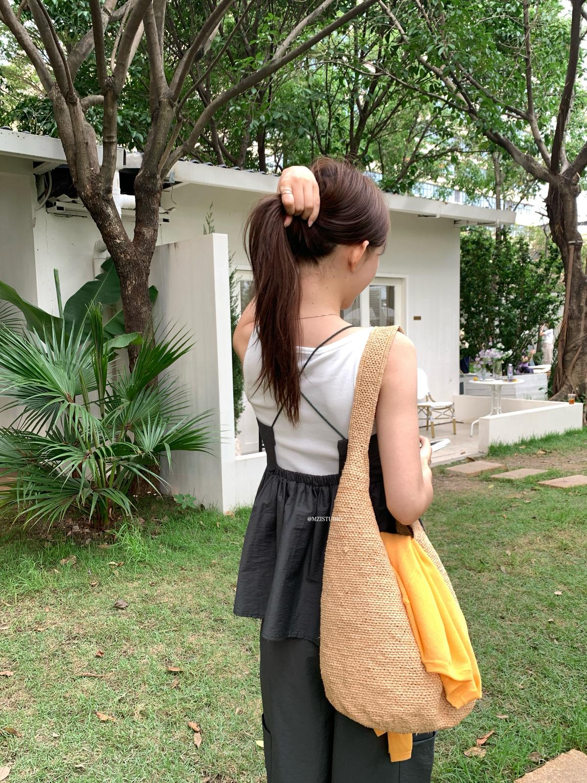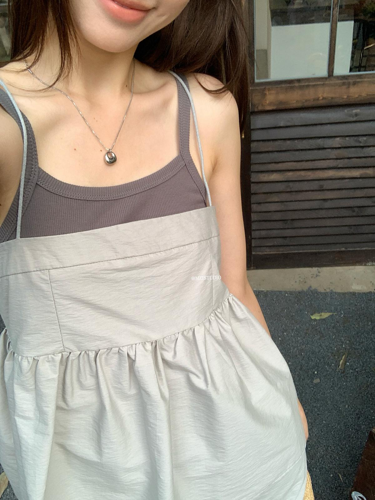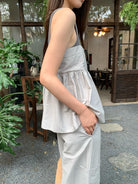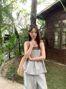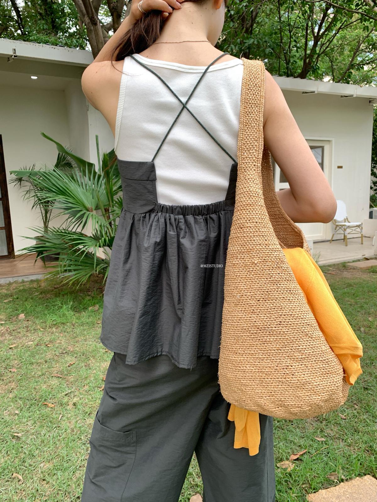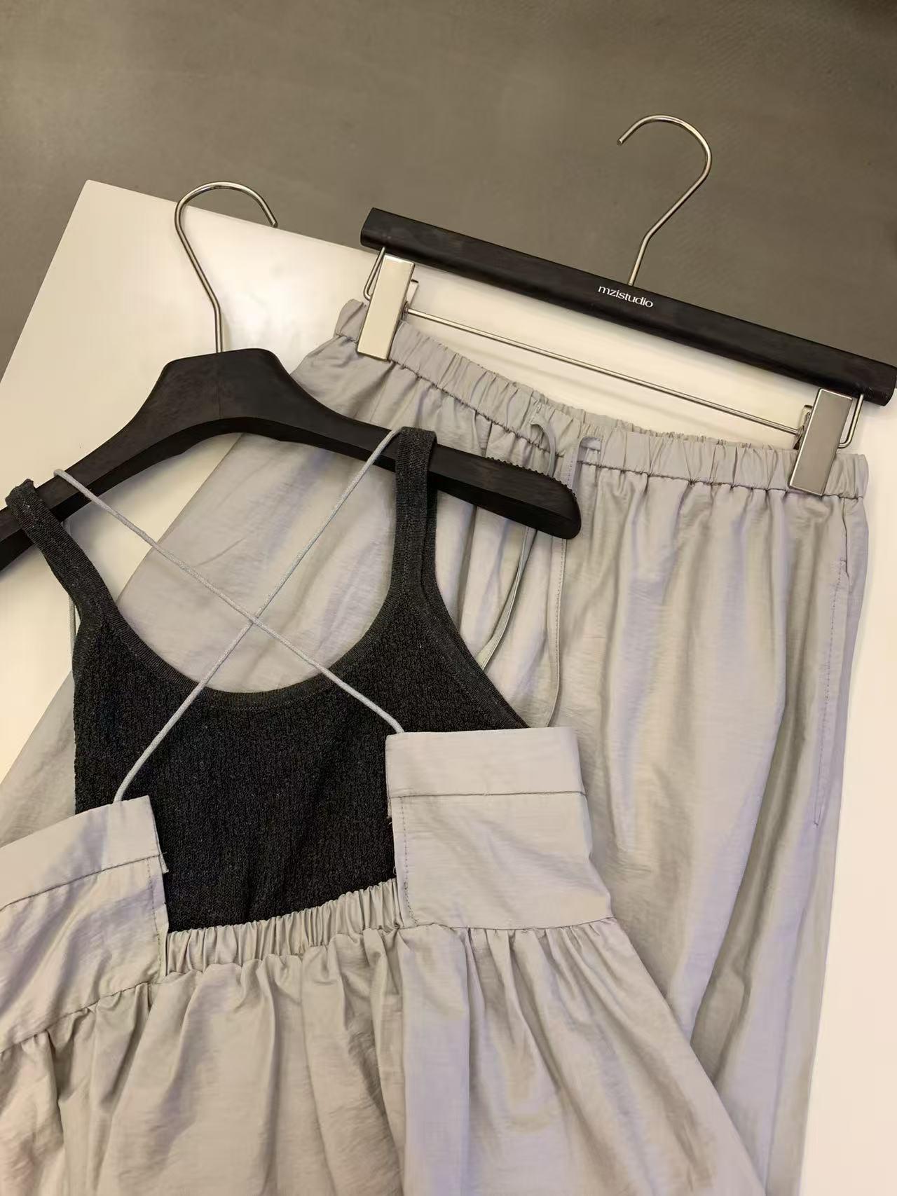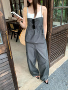 【C9225】隨心賦型韓系夏季荷葉邊繫帶吊帶+簡約寬鬆闊腿口袋休閒褲套裝(兩件套,不含背心)