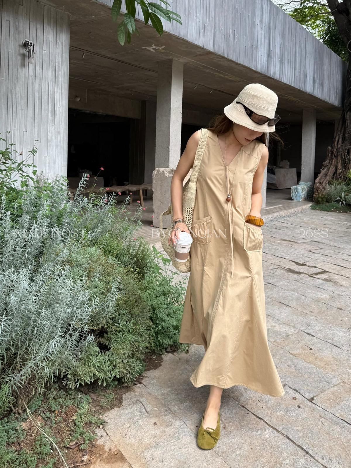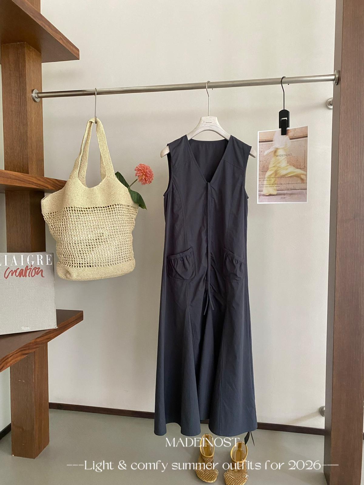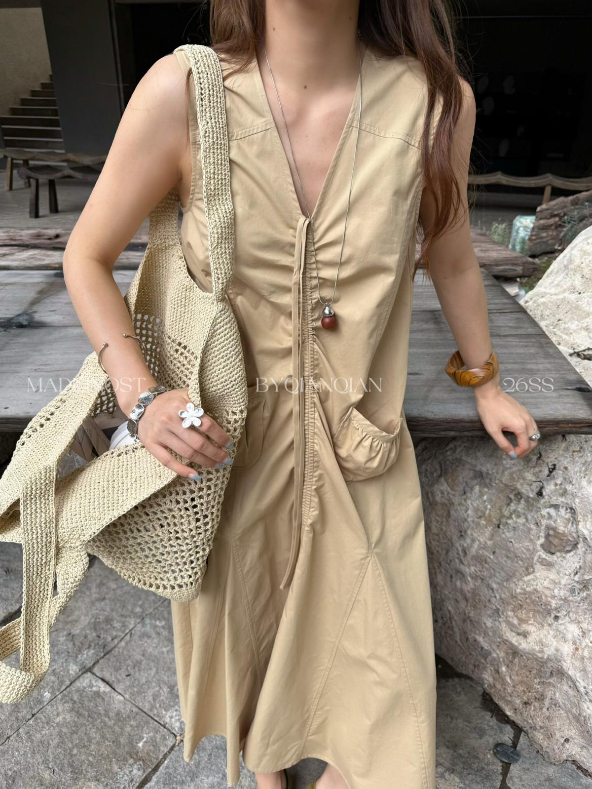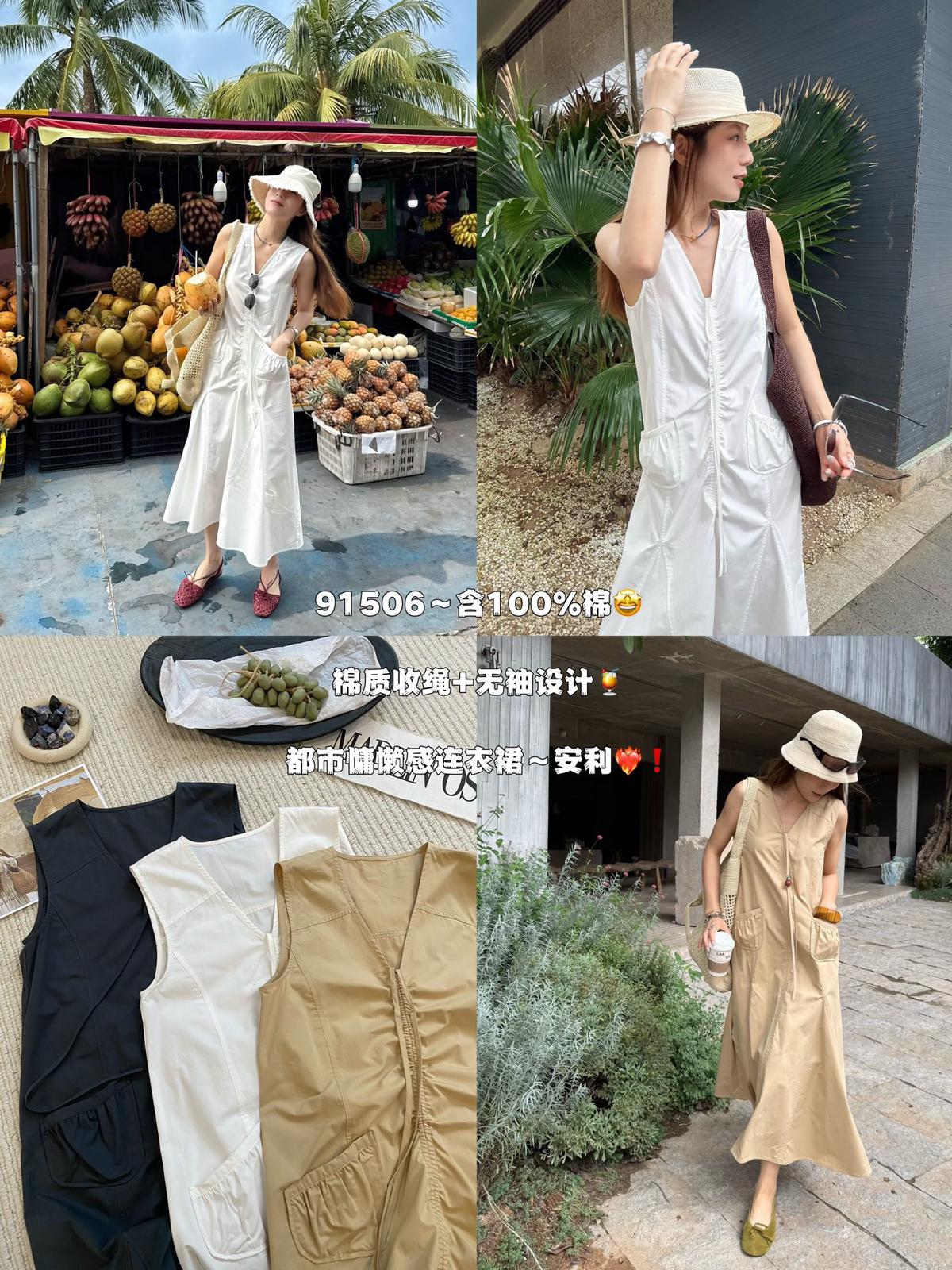 【C9229】都市慵懶感棉質收繩無袖連衣裙(不含墨鏡)