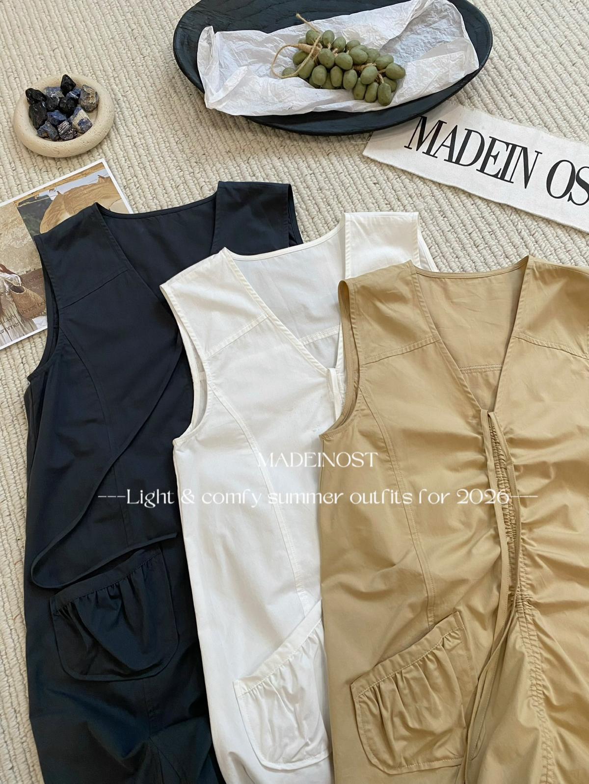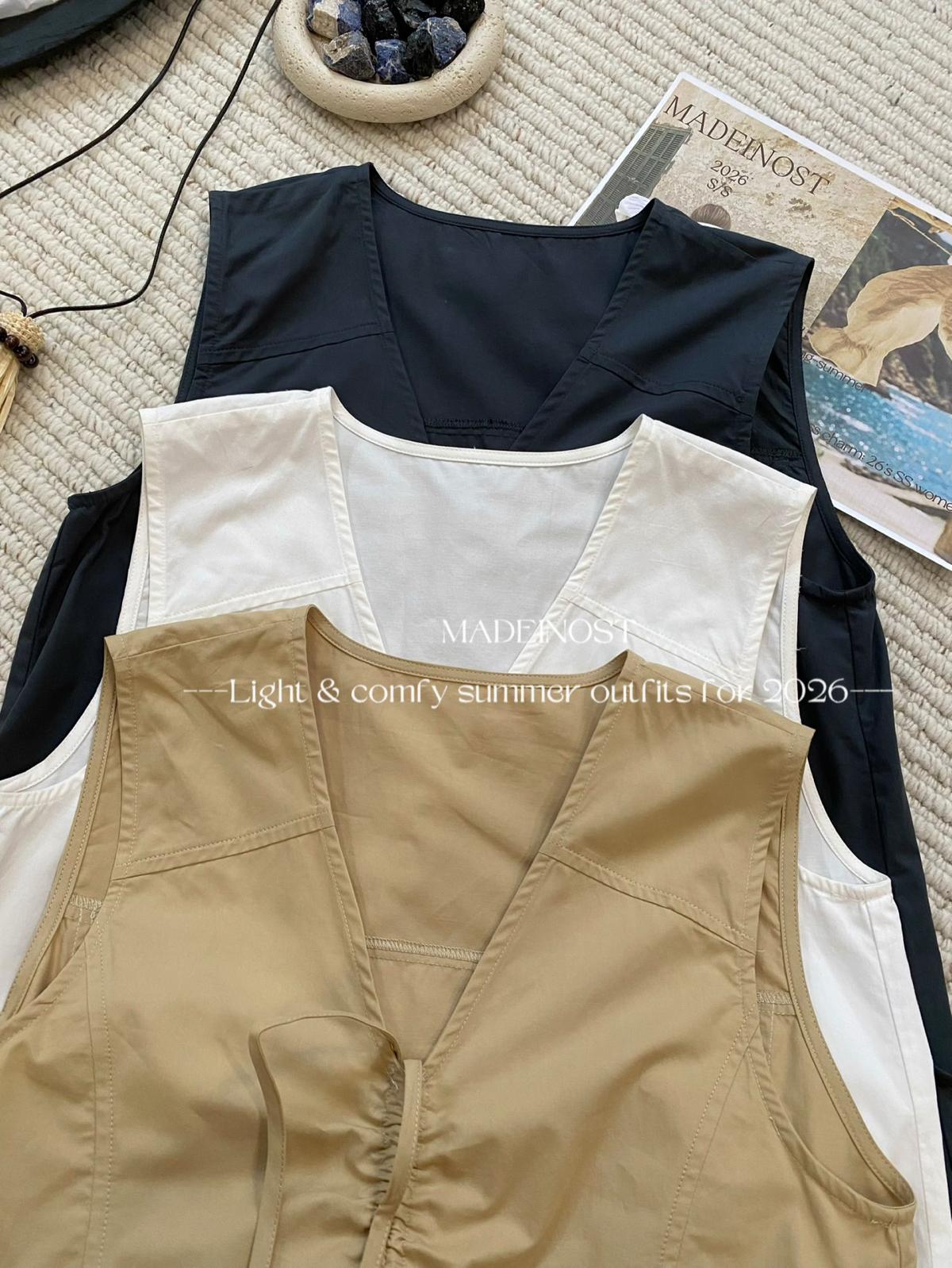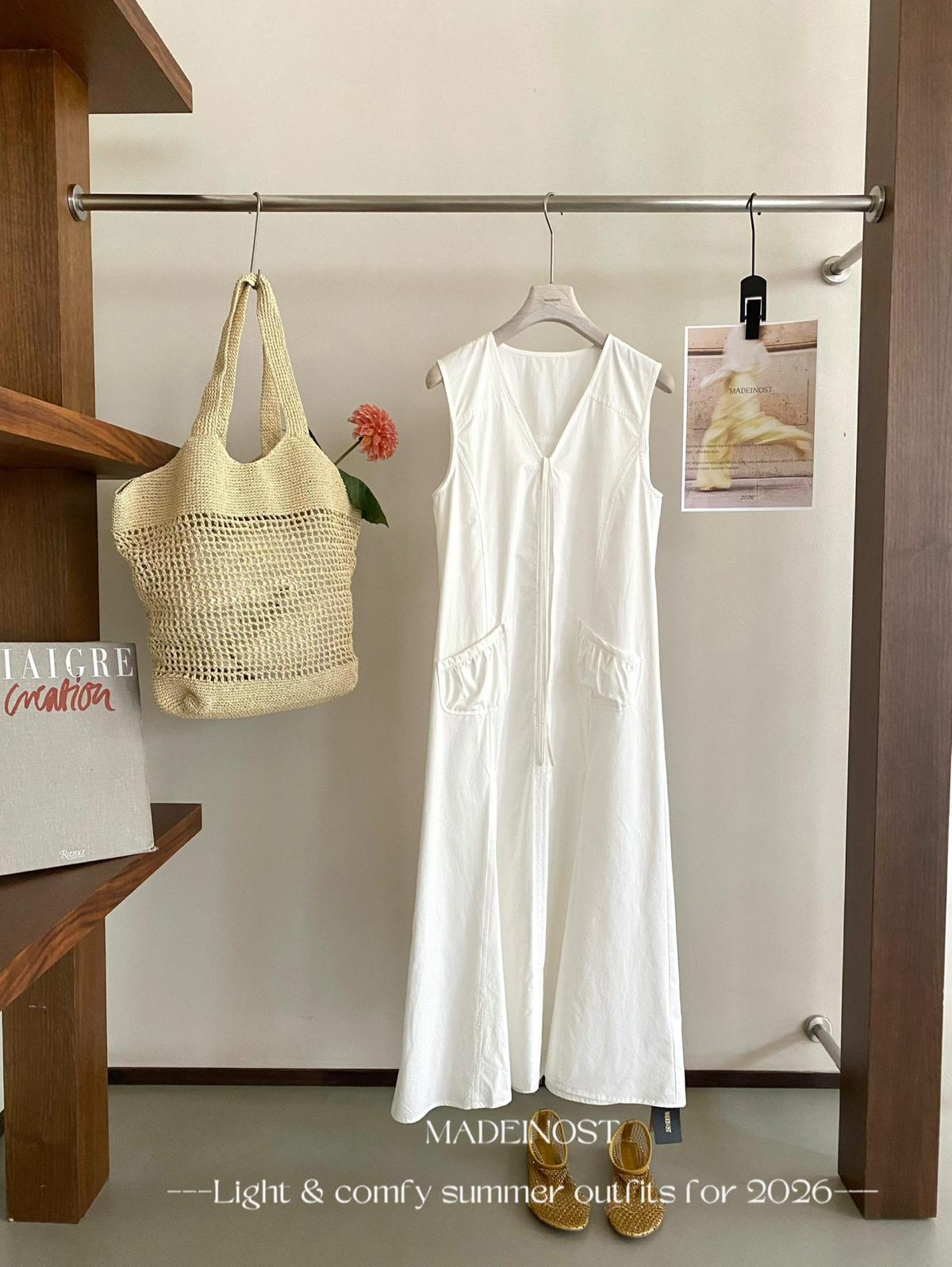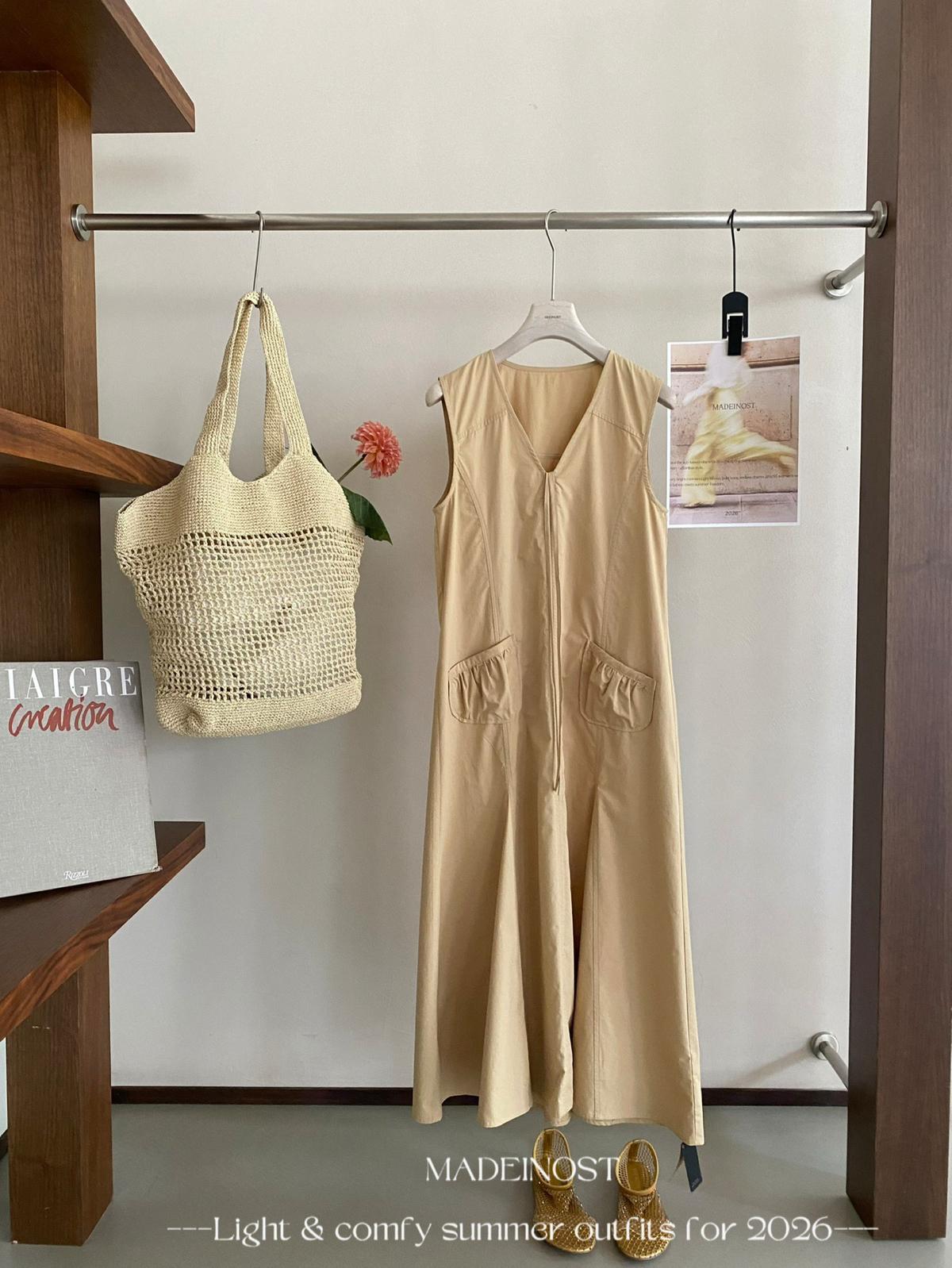 【C9229】都市慵懶感棉質收繩無袖連衣裙(不含墨鏡)