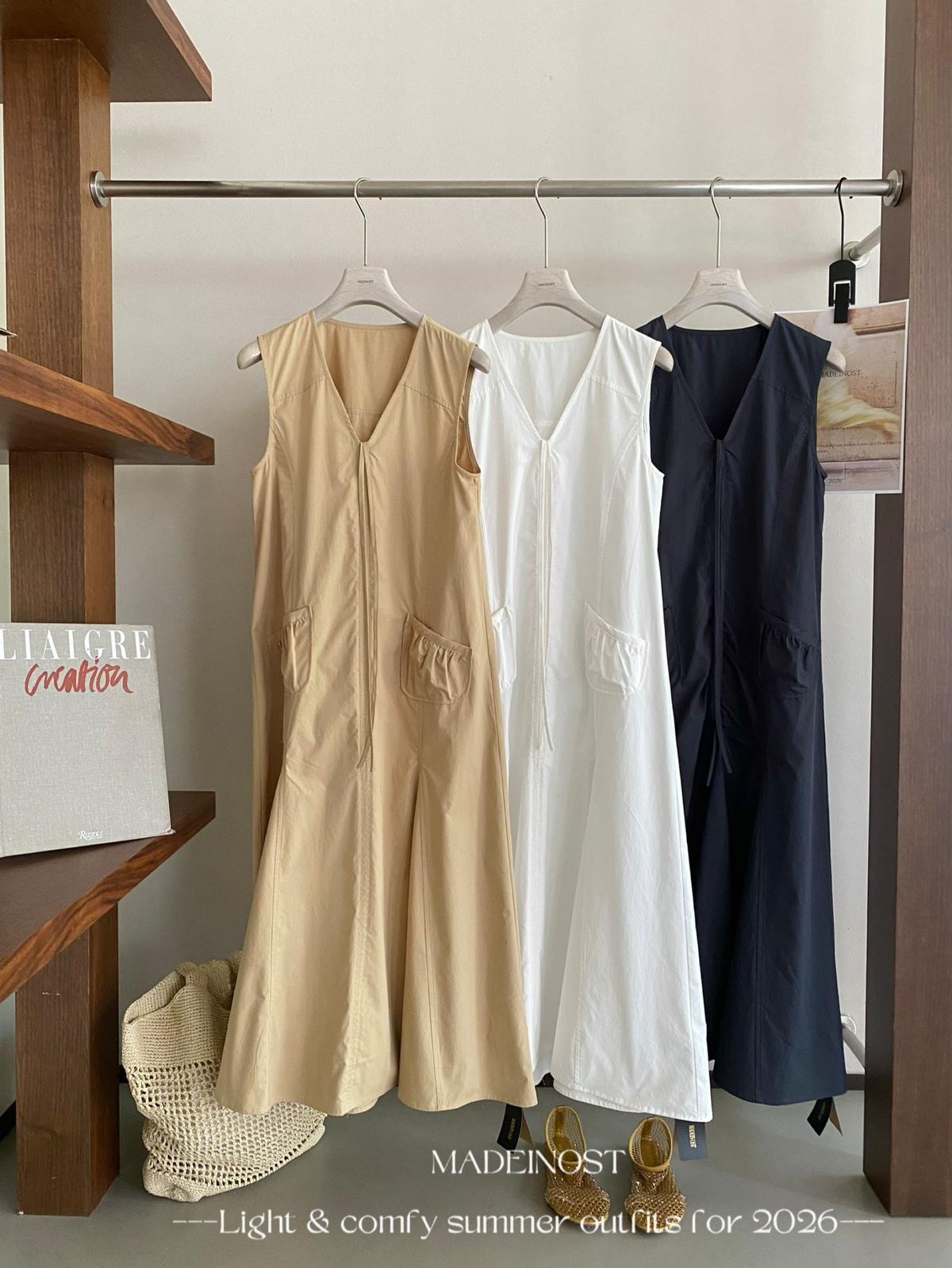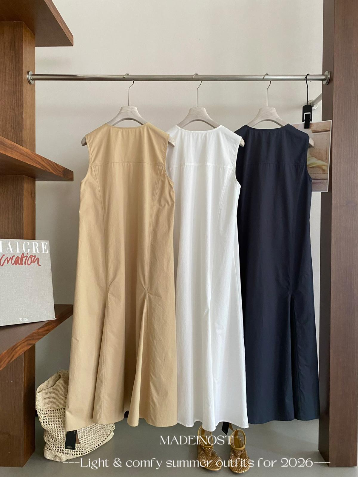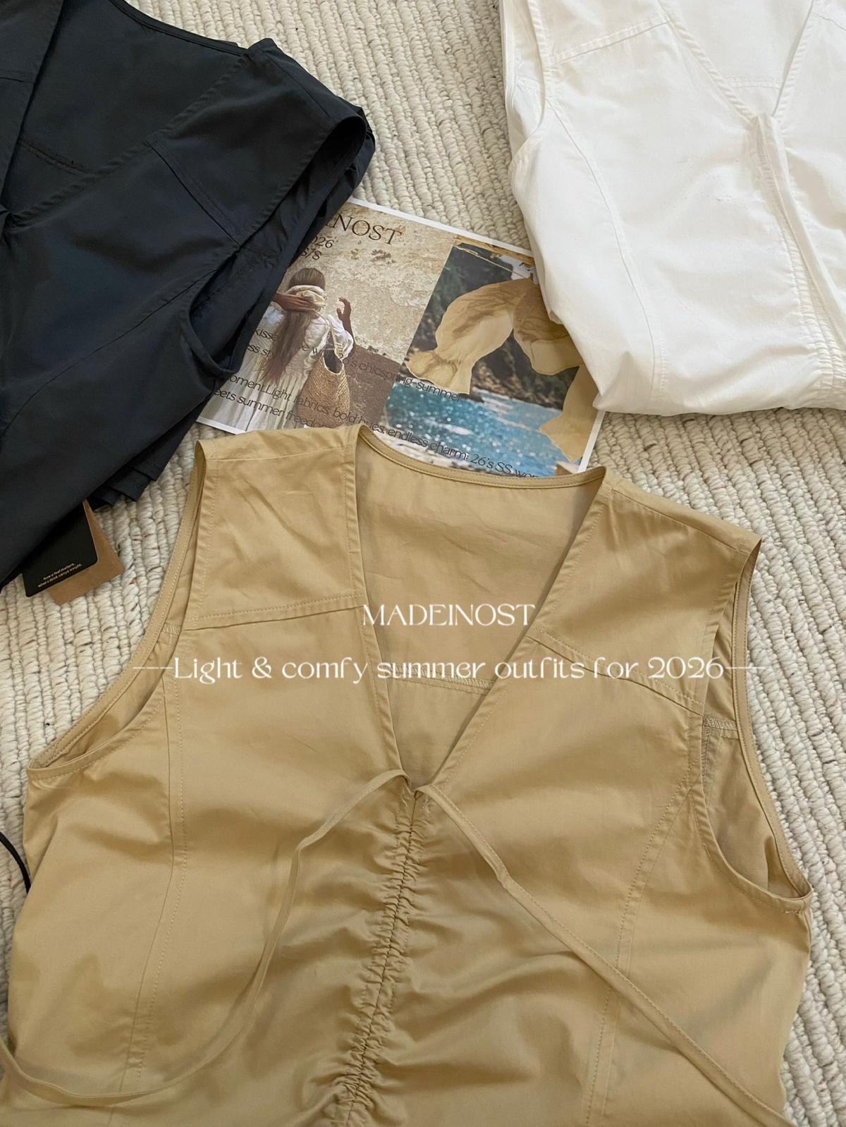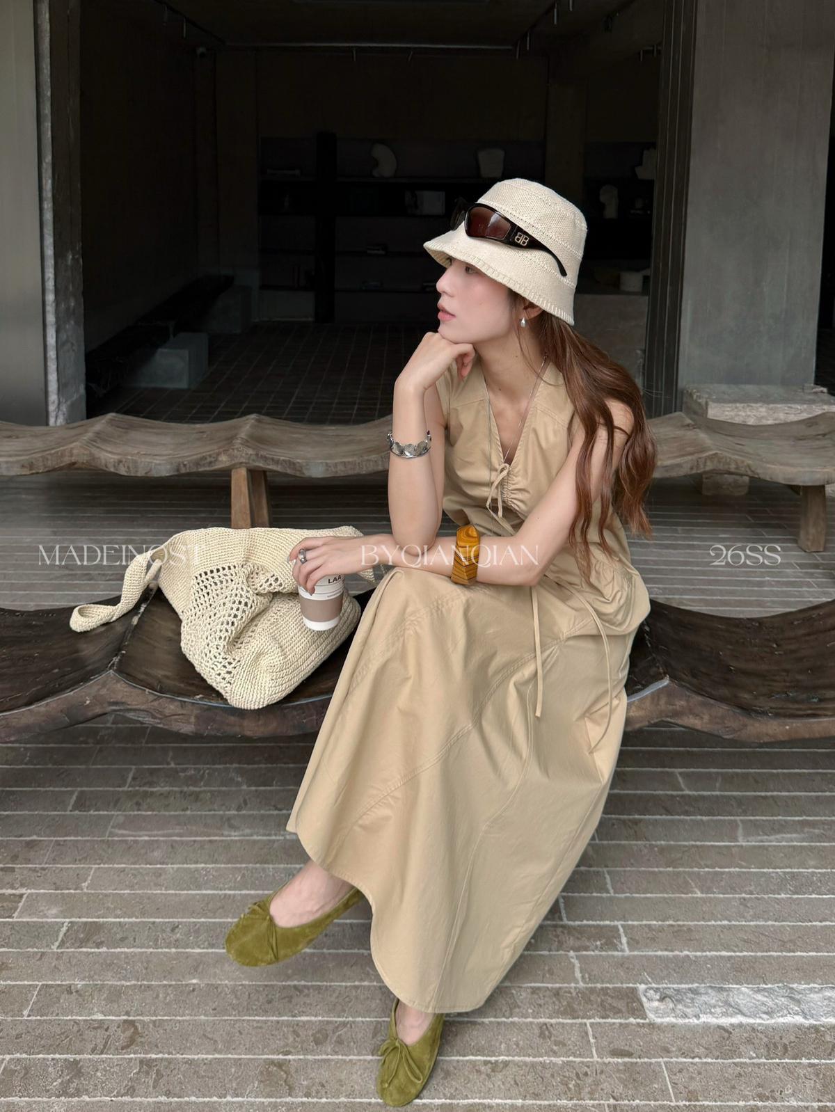 【C9229】都市慵懶感棉質收繩無袖連衣裙(不含墨鏡)