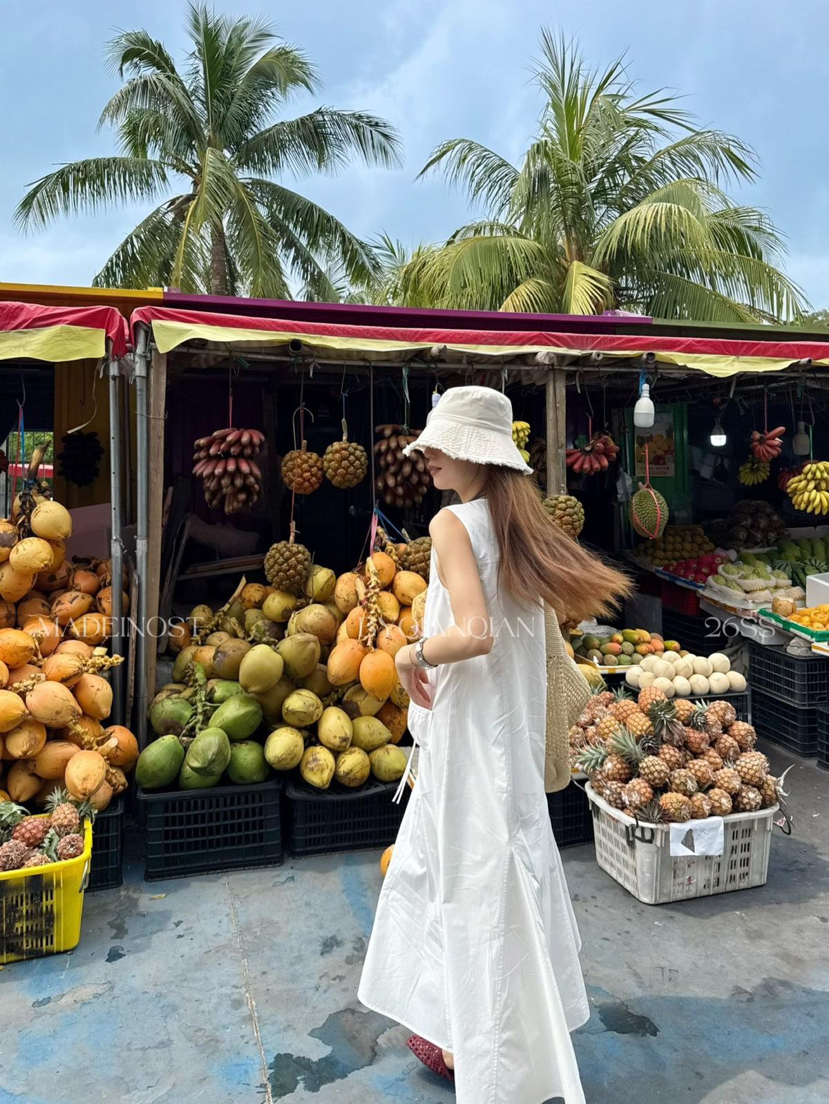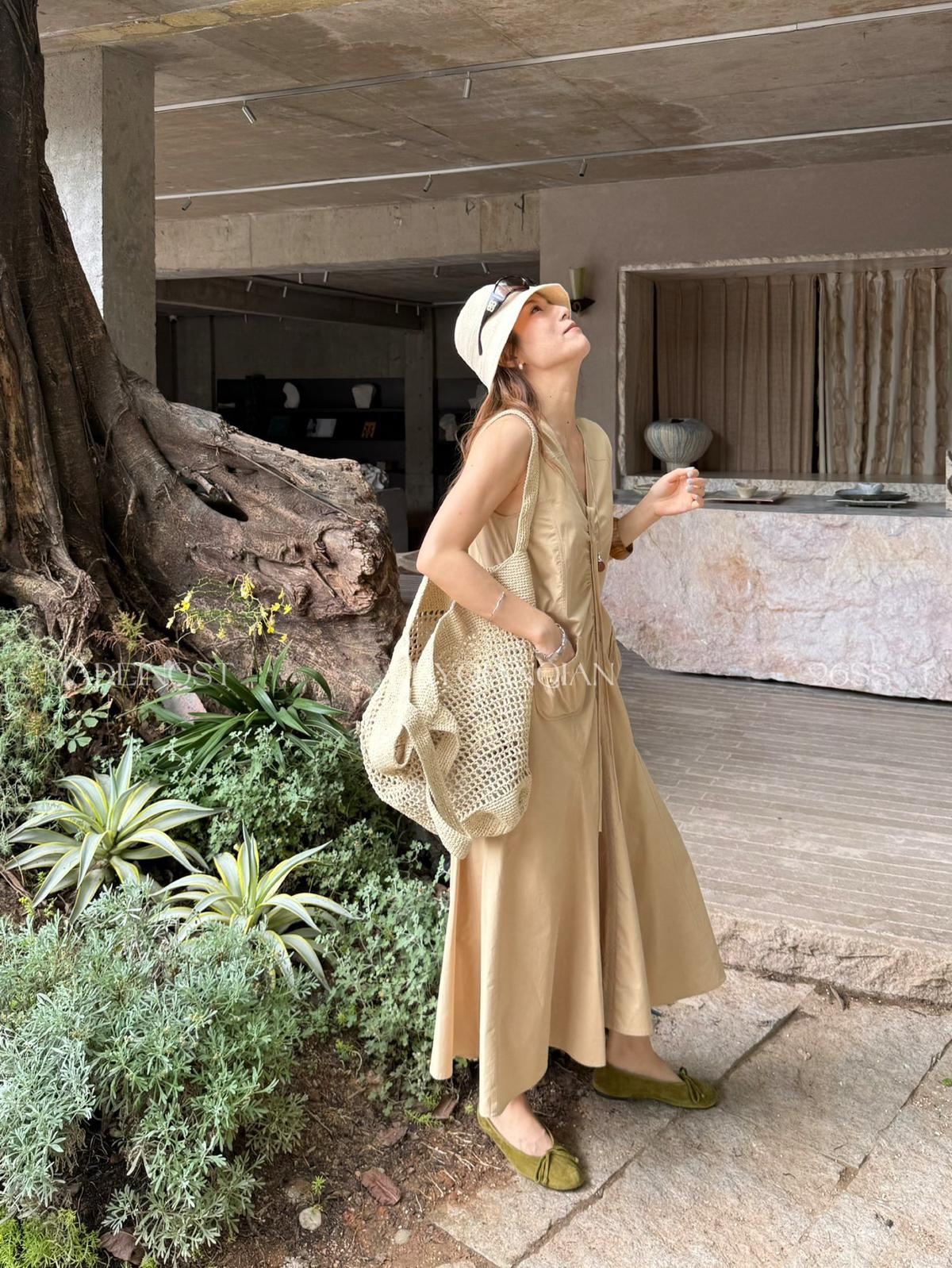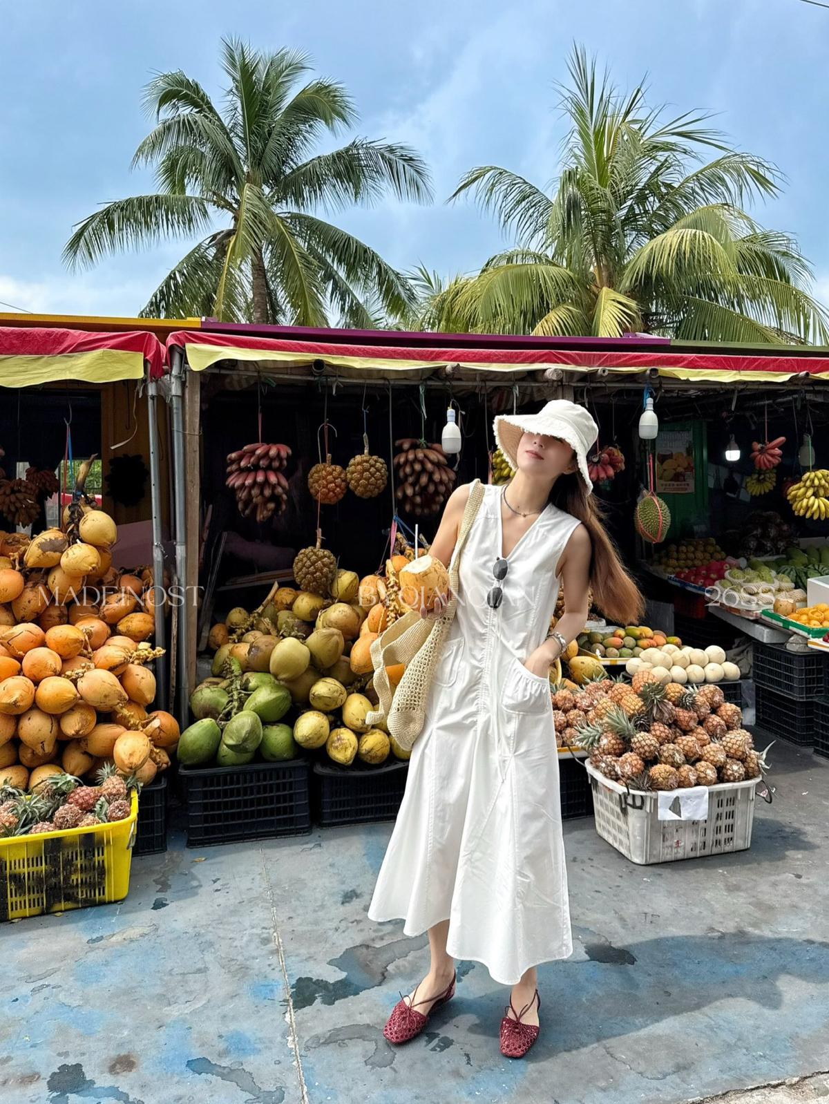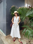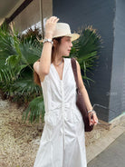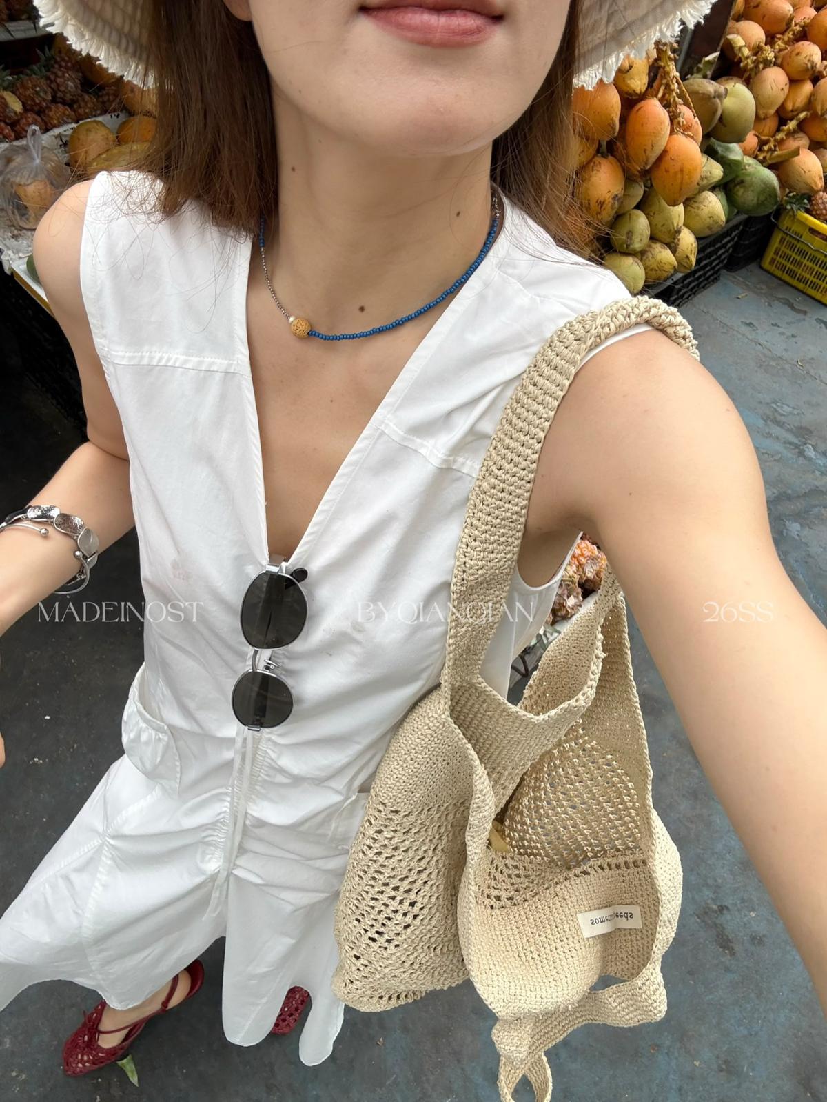 【C9229】都市慵懶感棉質收繩無袖連衣裙(不含墨鏡)