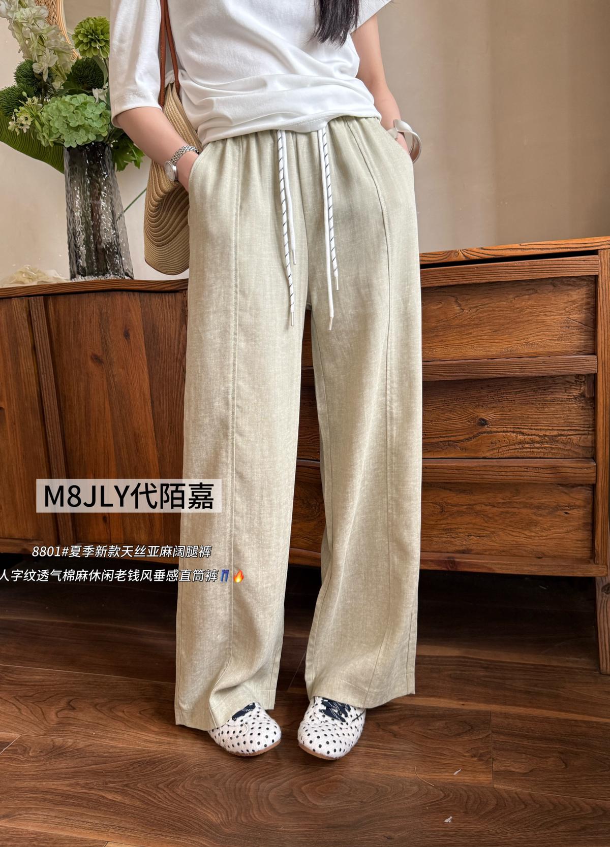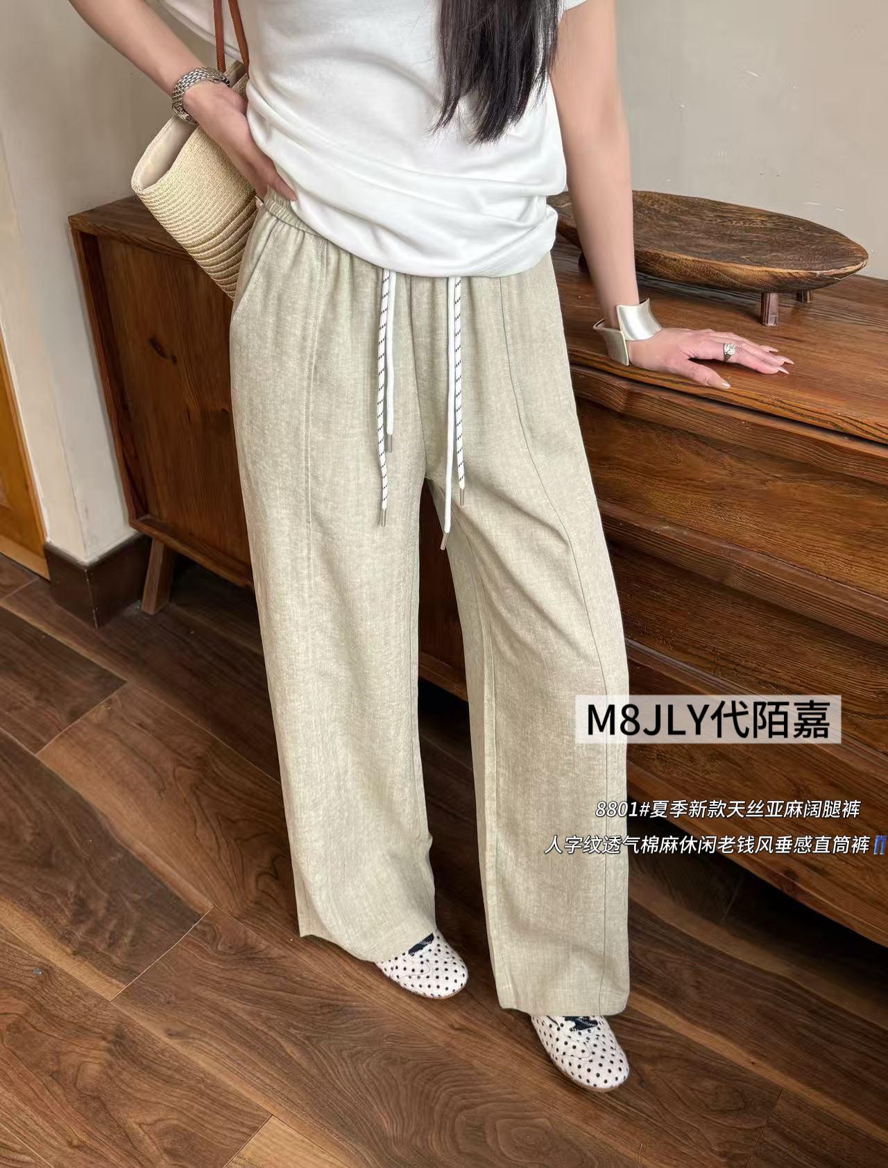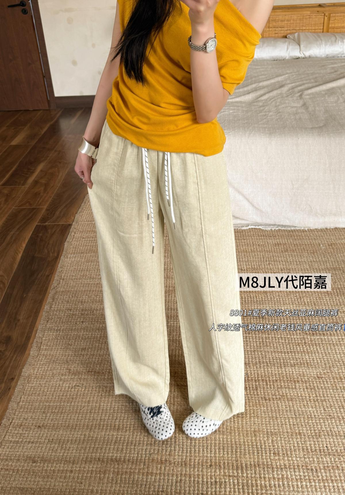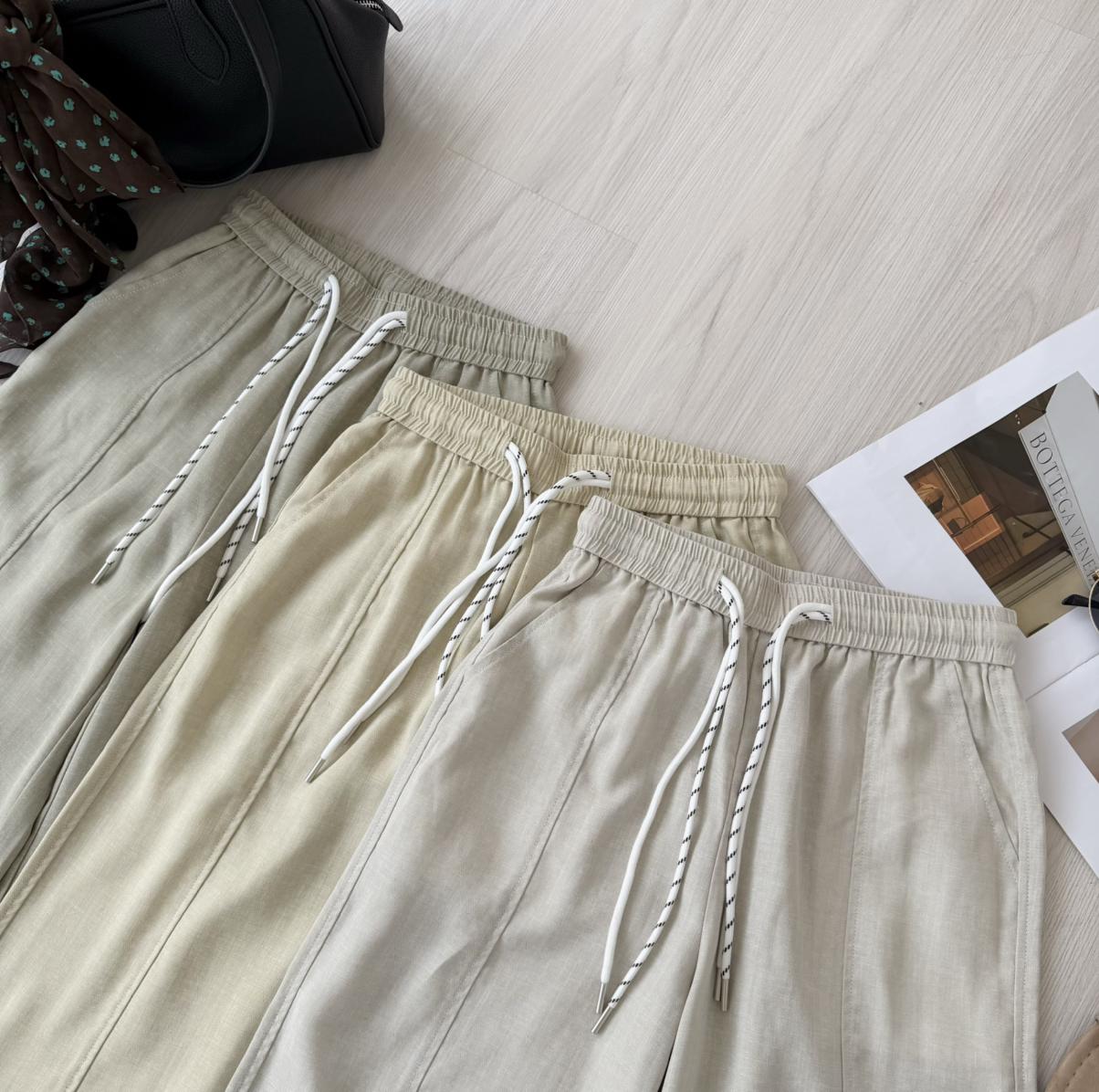 【C9235】萊塞爾薄面料休閒老錢風垂感透氣舒適鬆緊腰頭闊腿褲休閒褲
