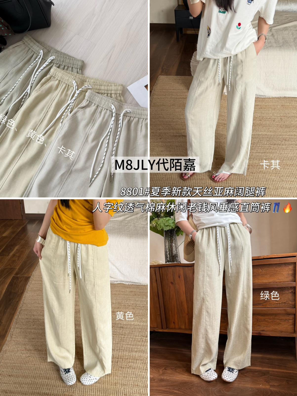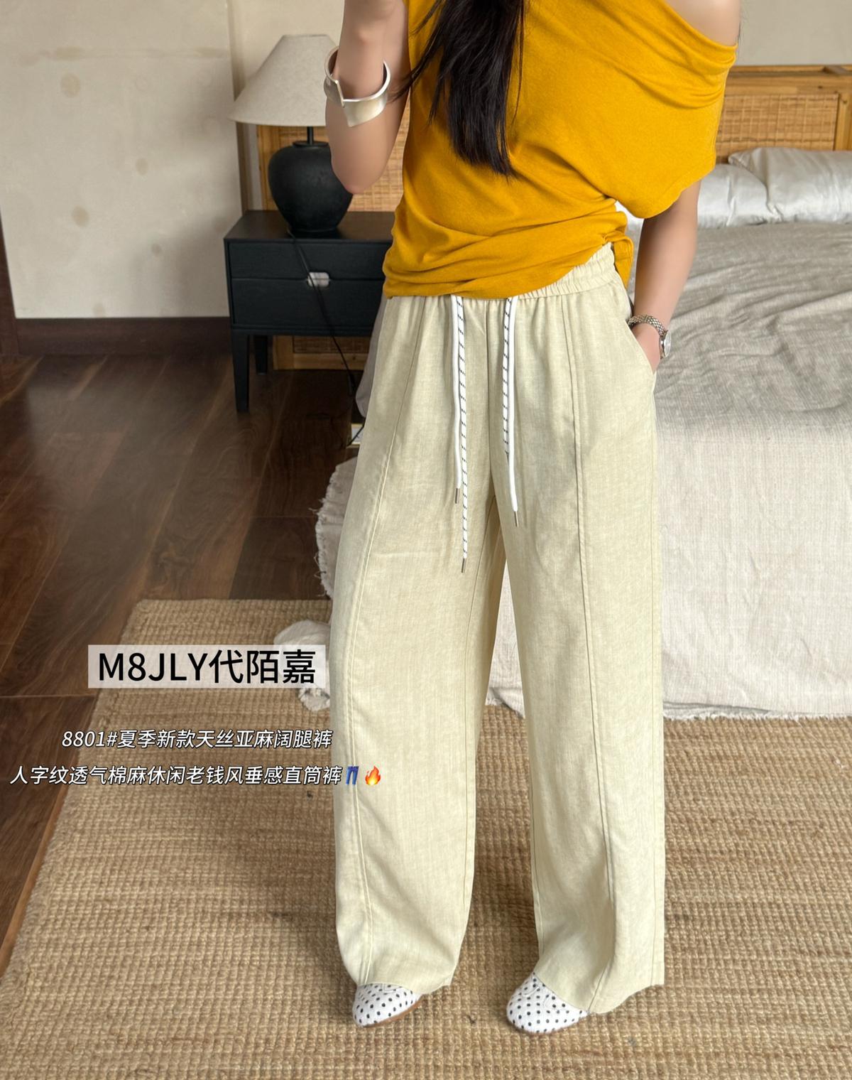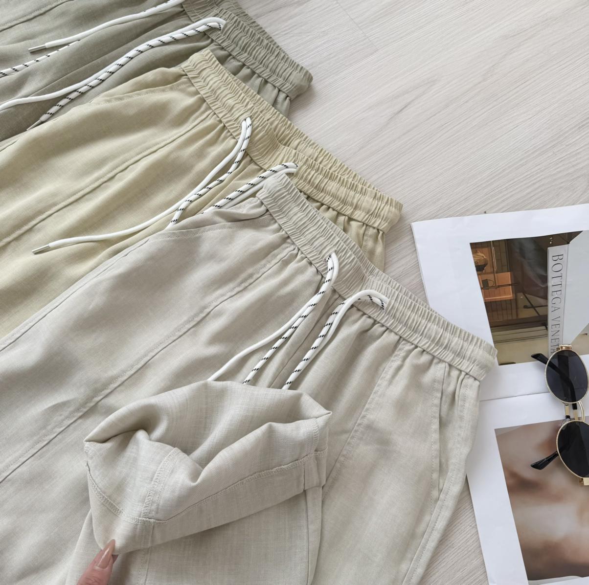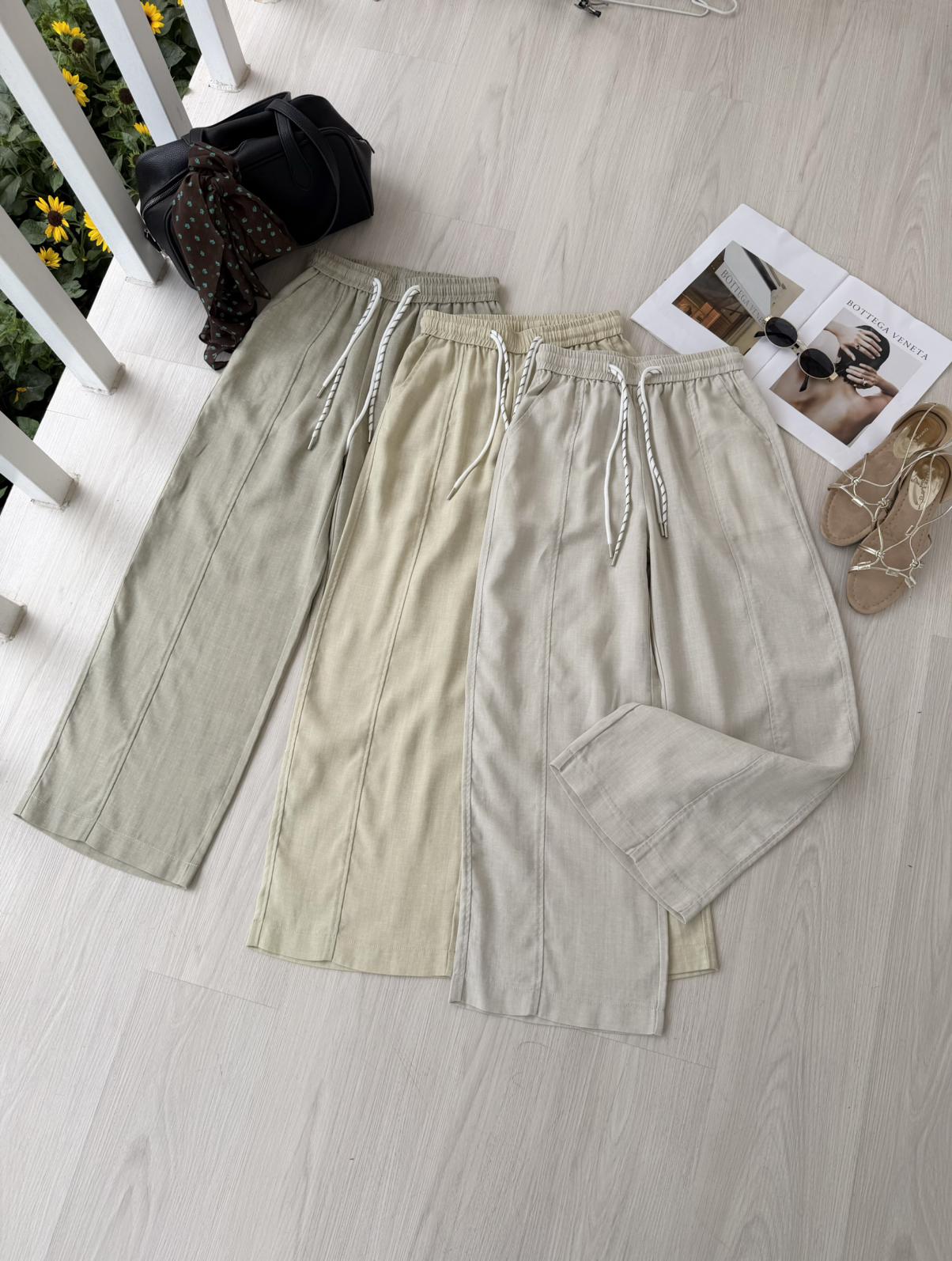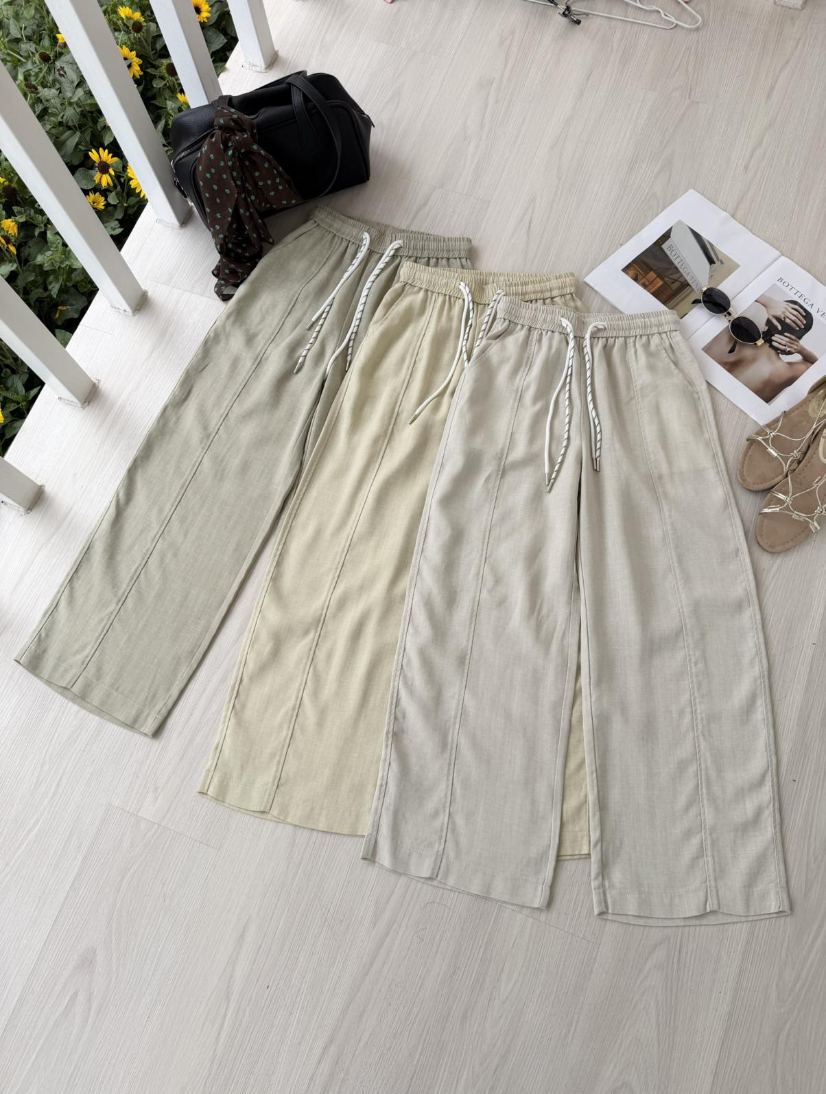 【C9235】萊塞爾薄面料休閒老錢風垂感透氣舒適鬆緊腰頭闊腿褲休閒褲