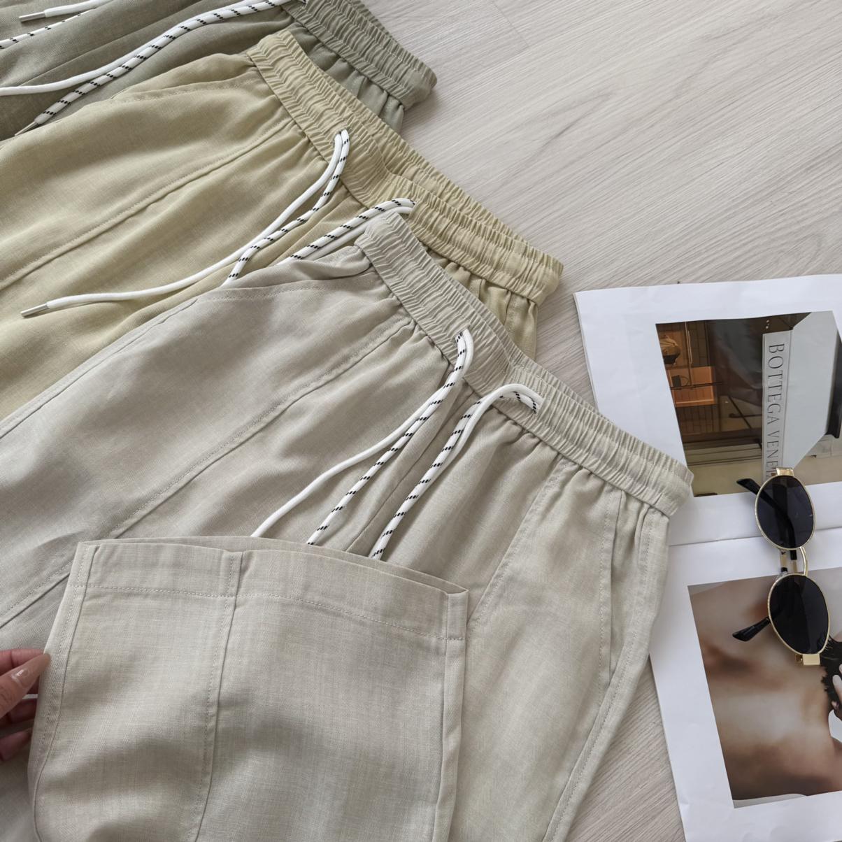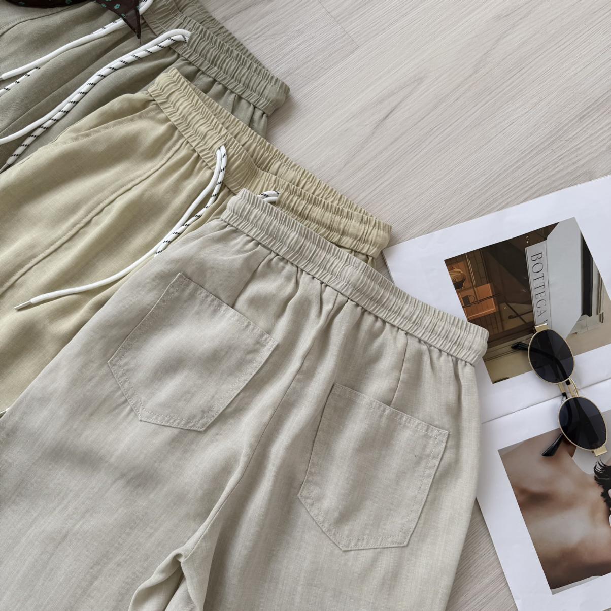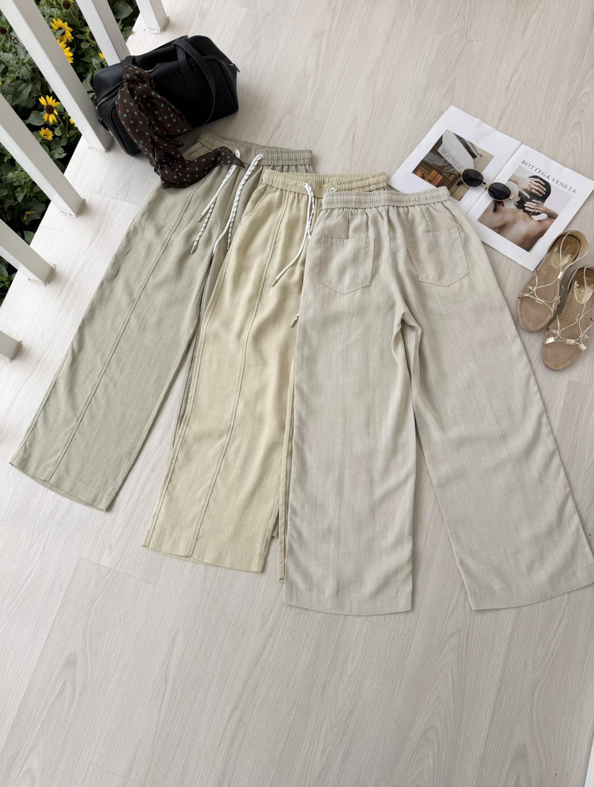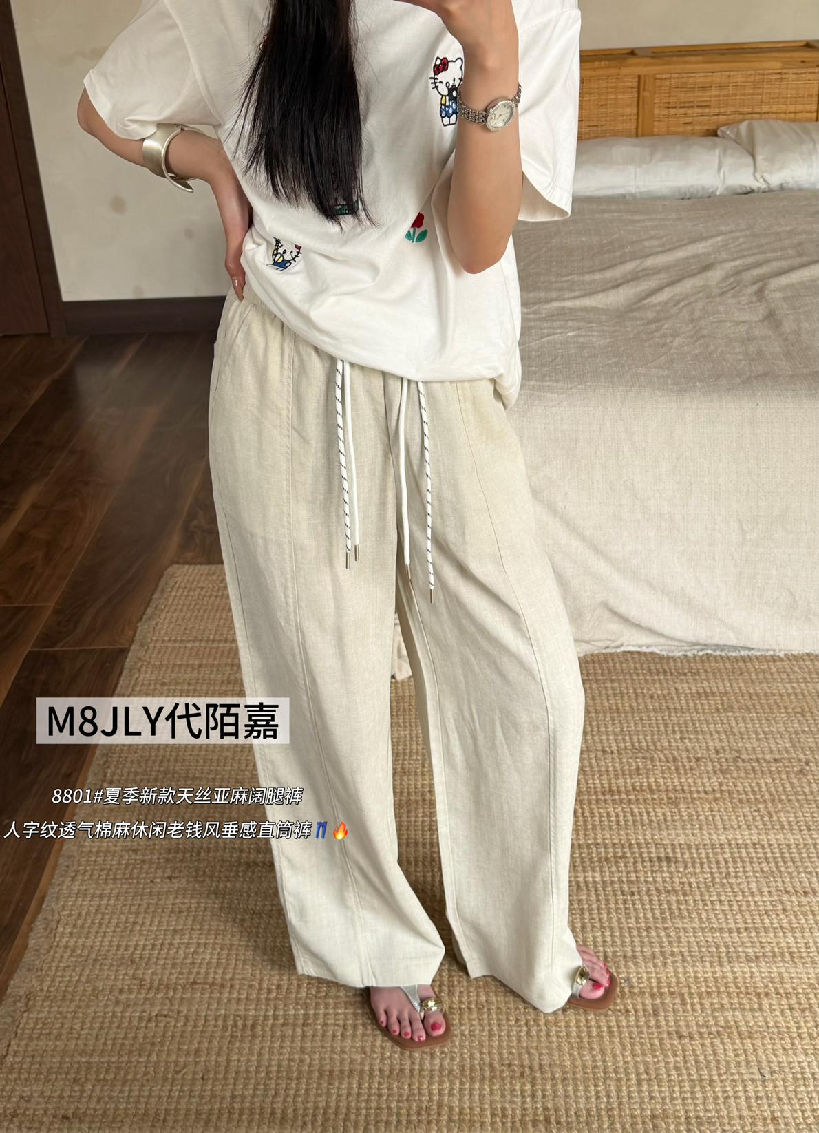 【C9235】萊塞爾薄面料休閒老錢風垂感透氣舒適鬆緊腰頭闊腿褲休閒褲