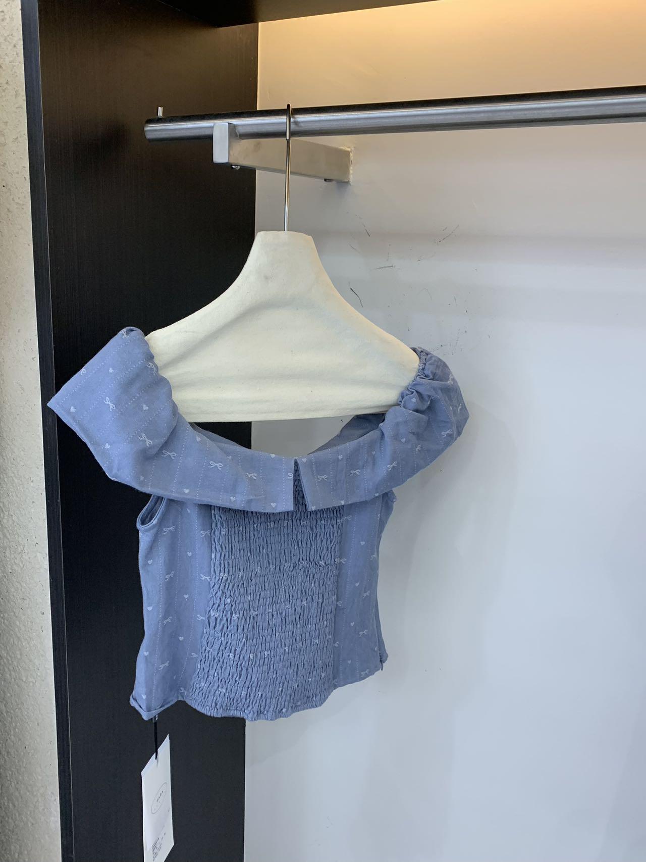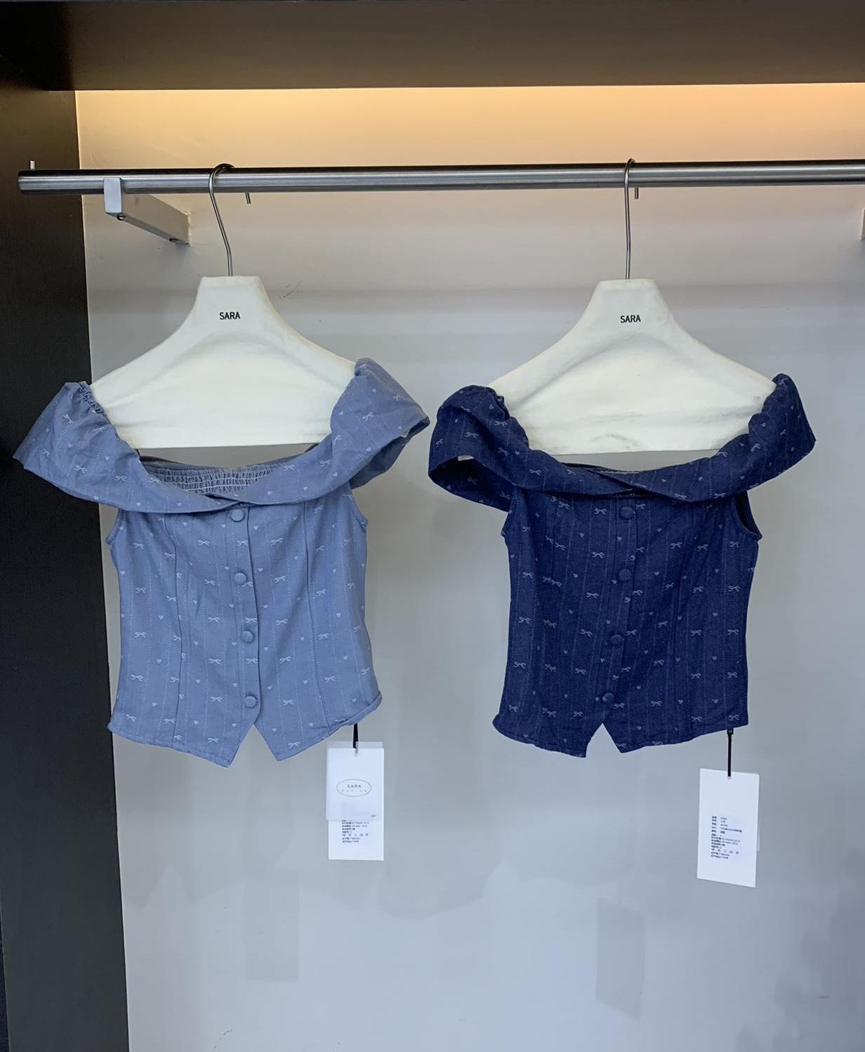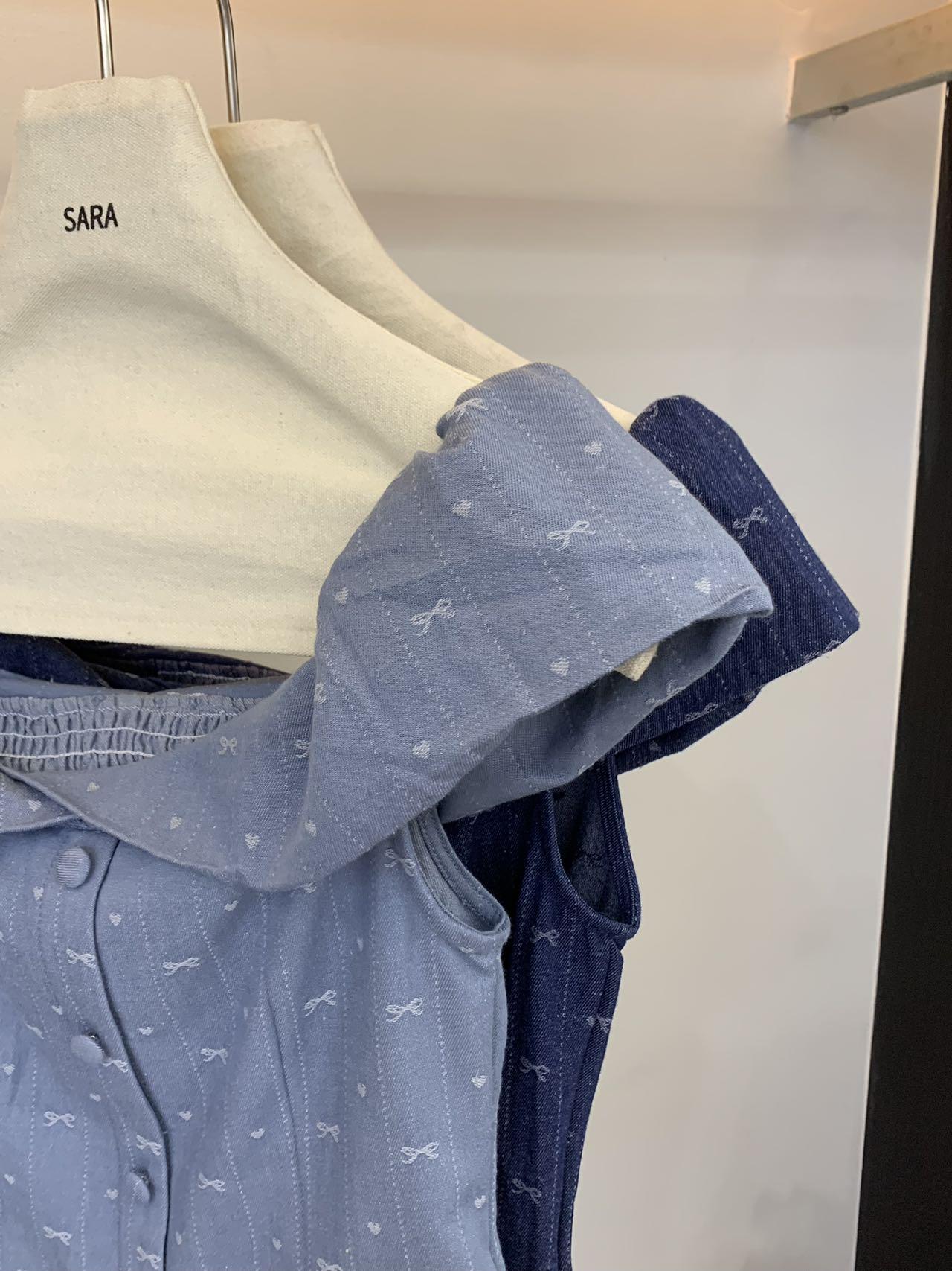 【C9255】法式甜美蝴蝶結印花牛仔小衫