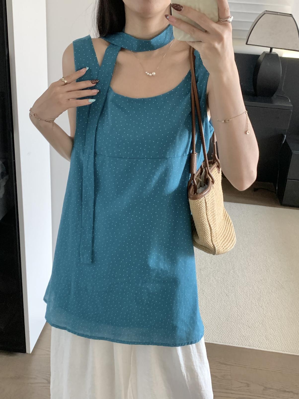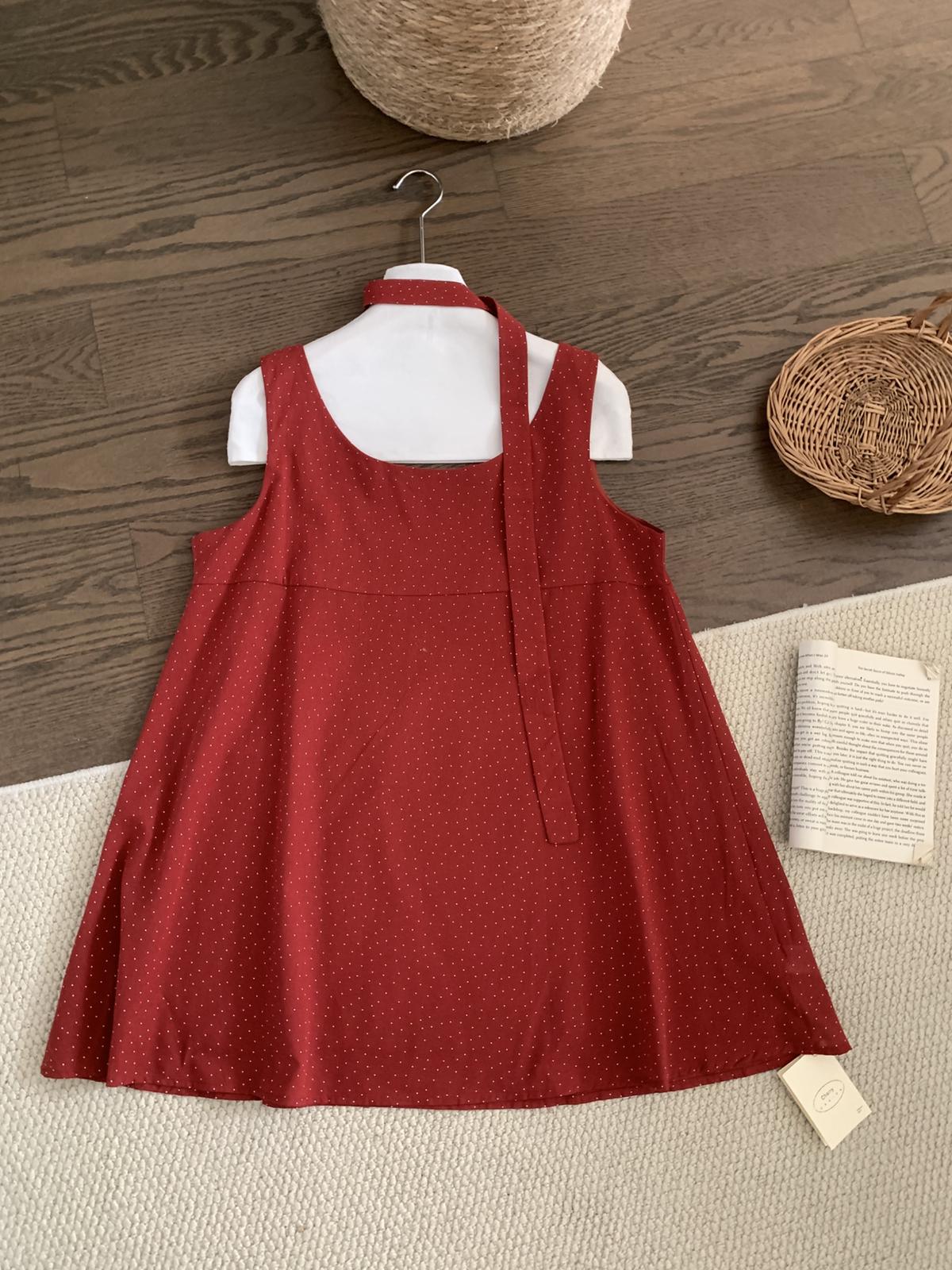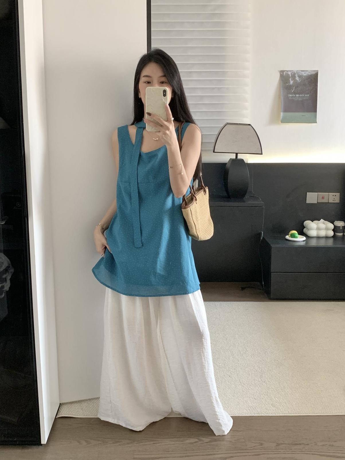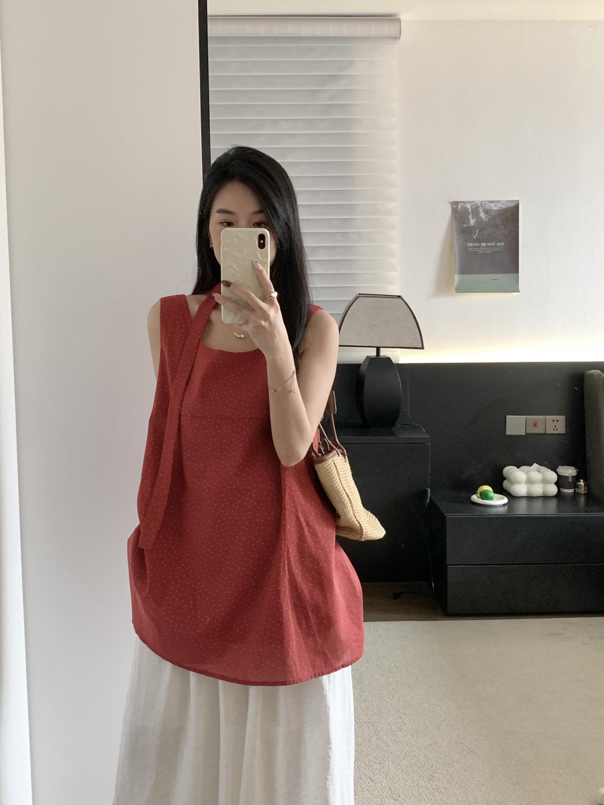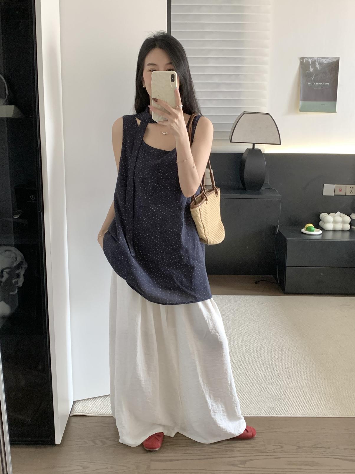 【C9265】韓系波點大U領寬鬆中長背心(配絲巾)