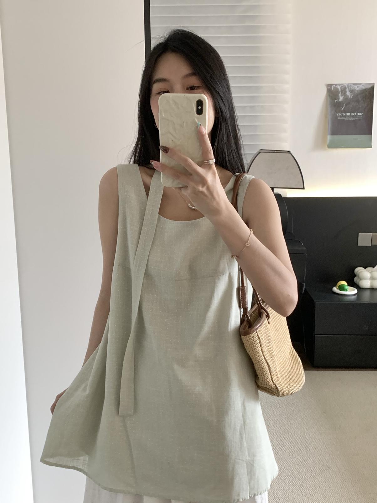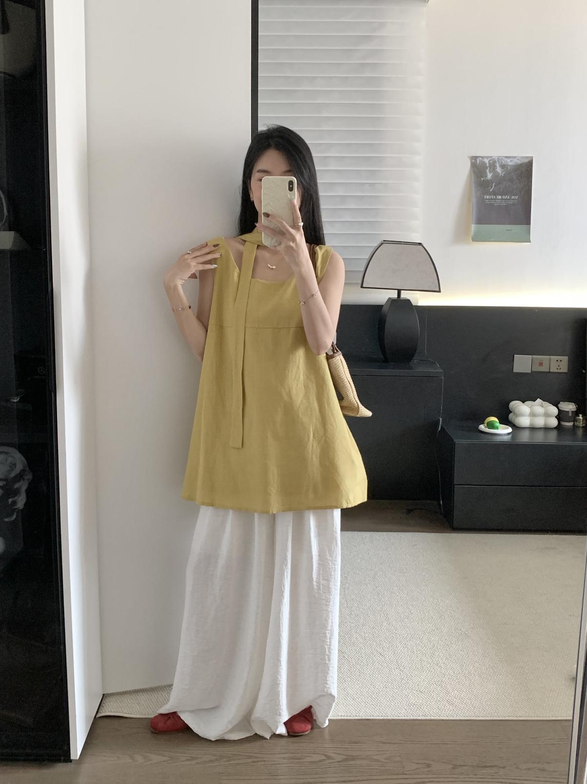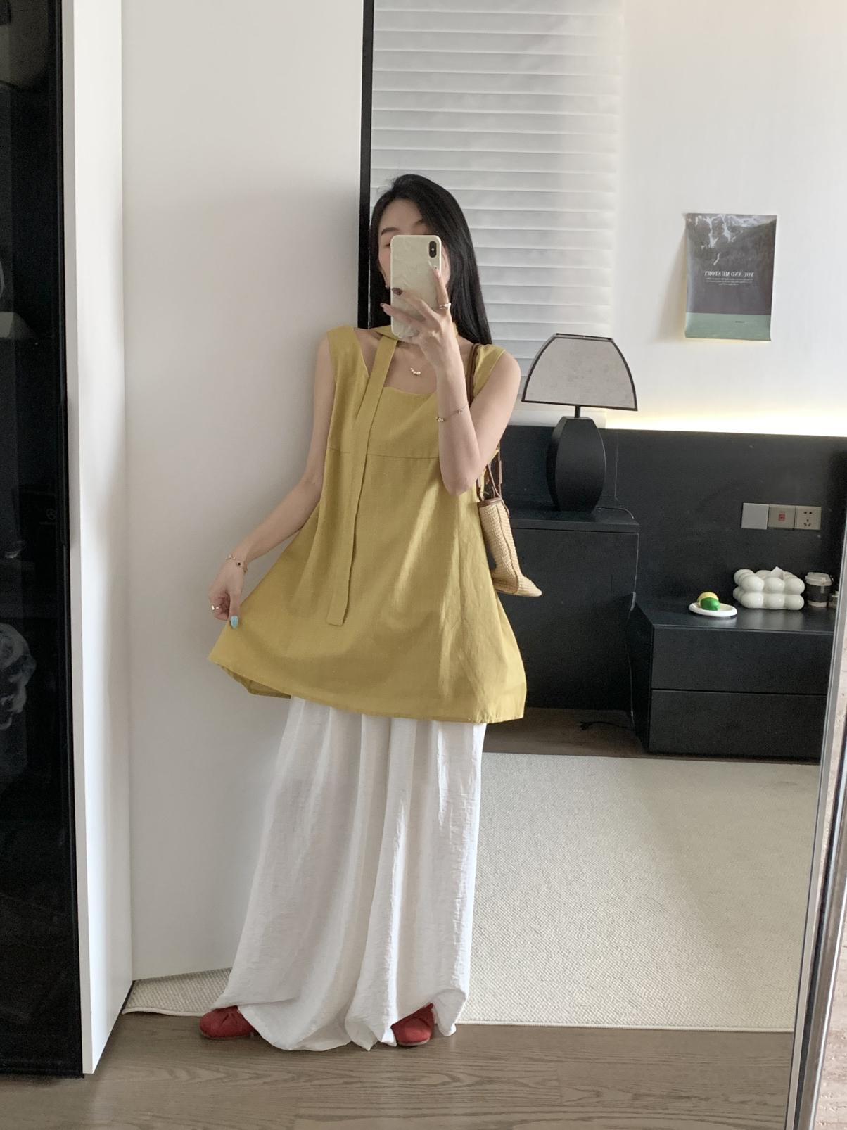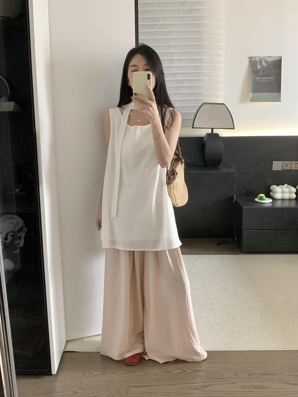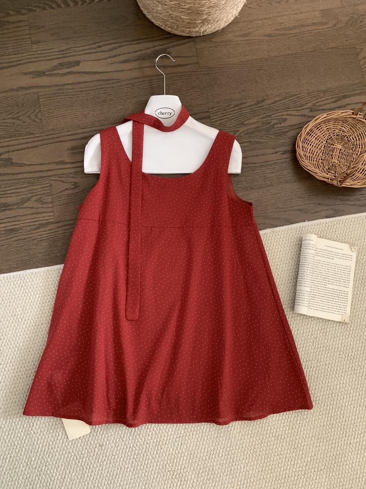 【C9265】韓系波點大U領寬鬆中長背心(配絲巾)
