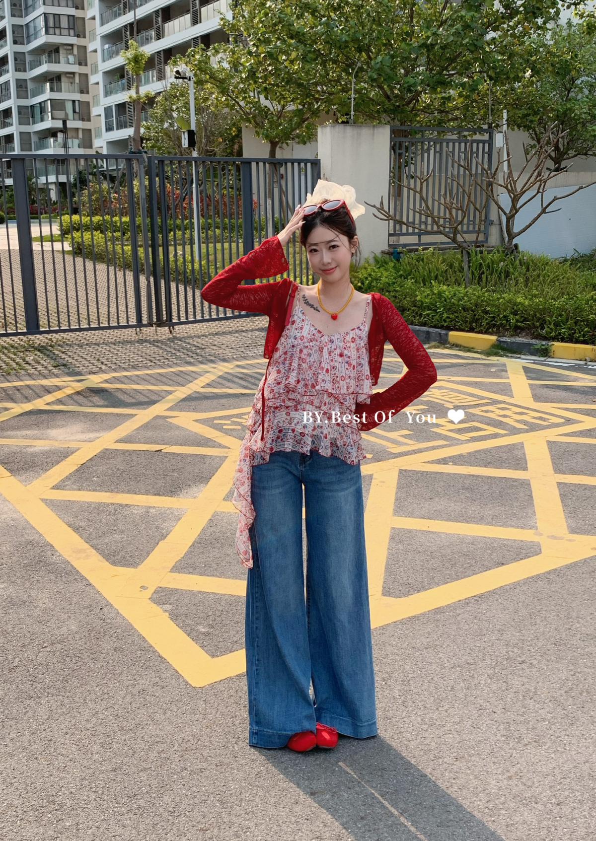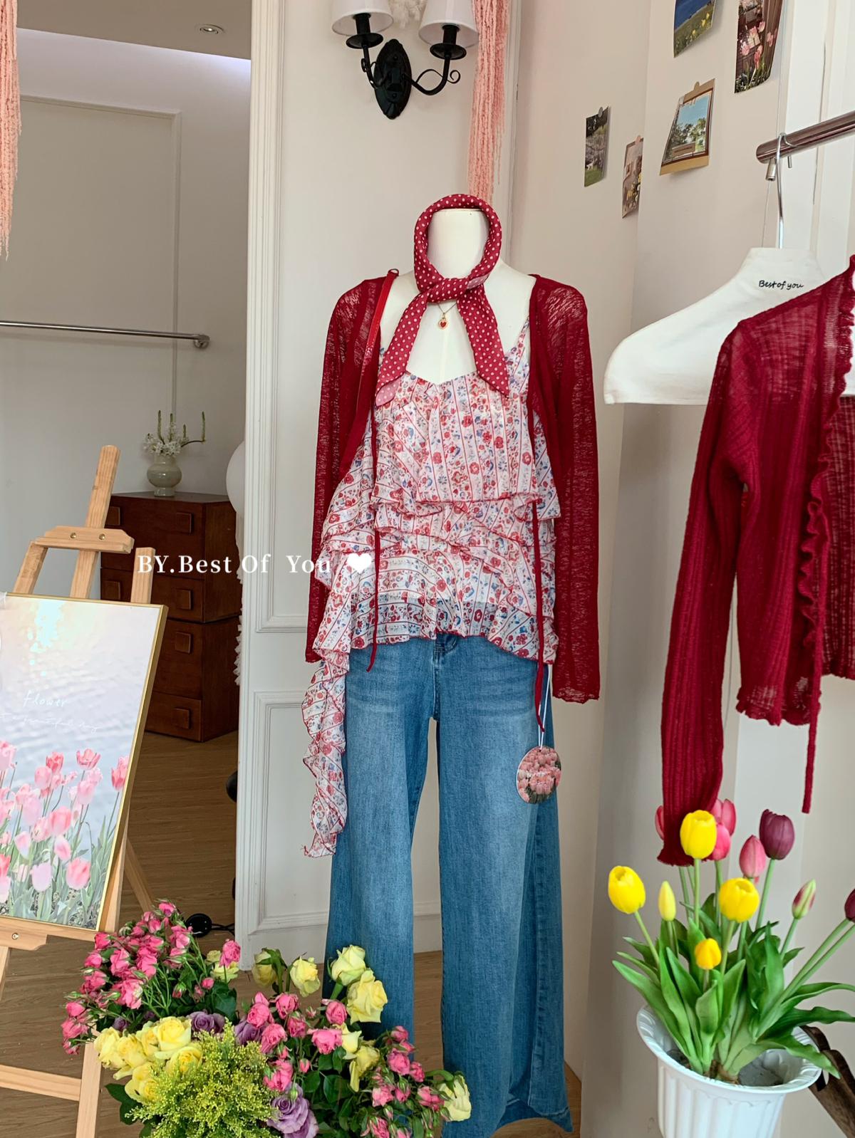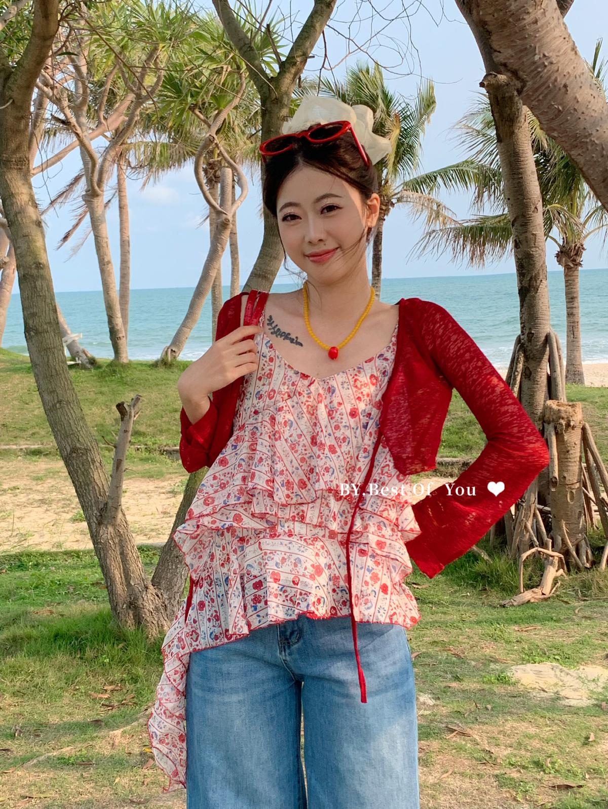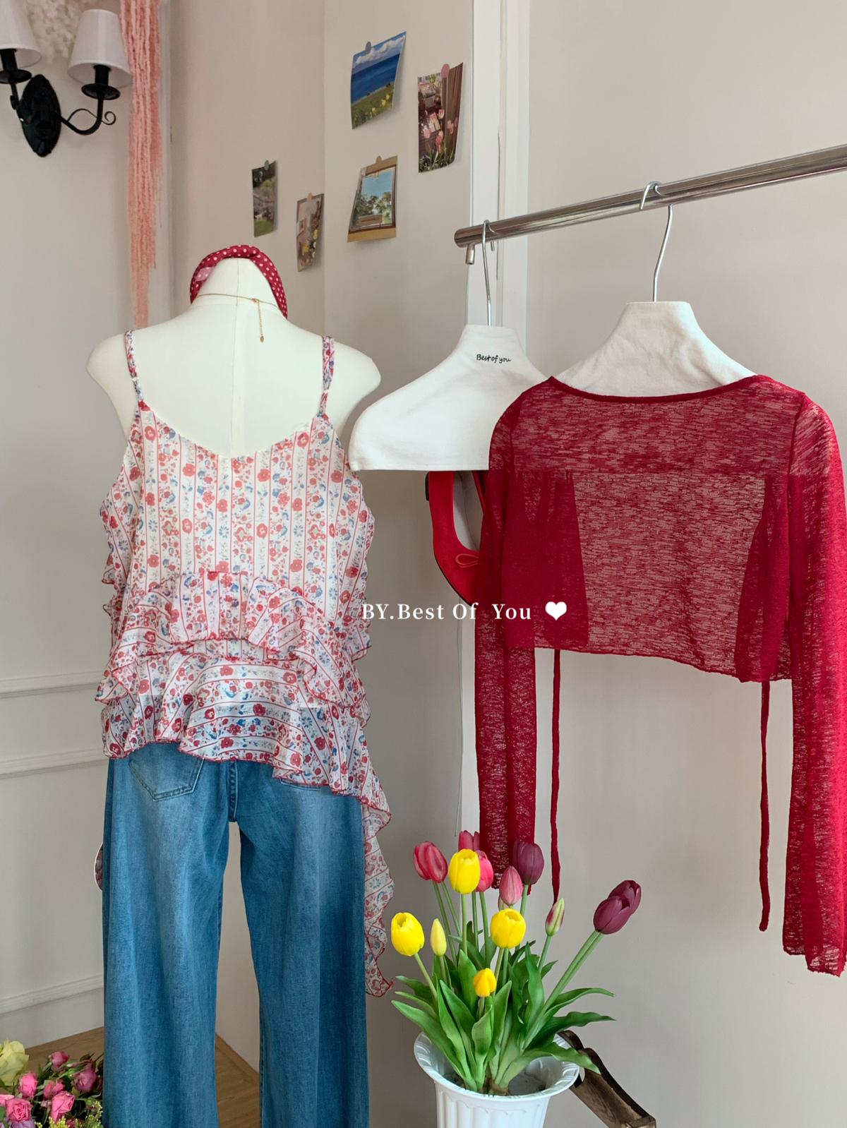 【C9266】復古不規則飛飛邊設計背心+針織開衫兩件套套裝(只賣套裝)