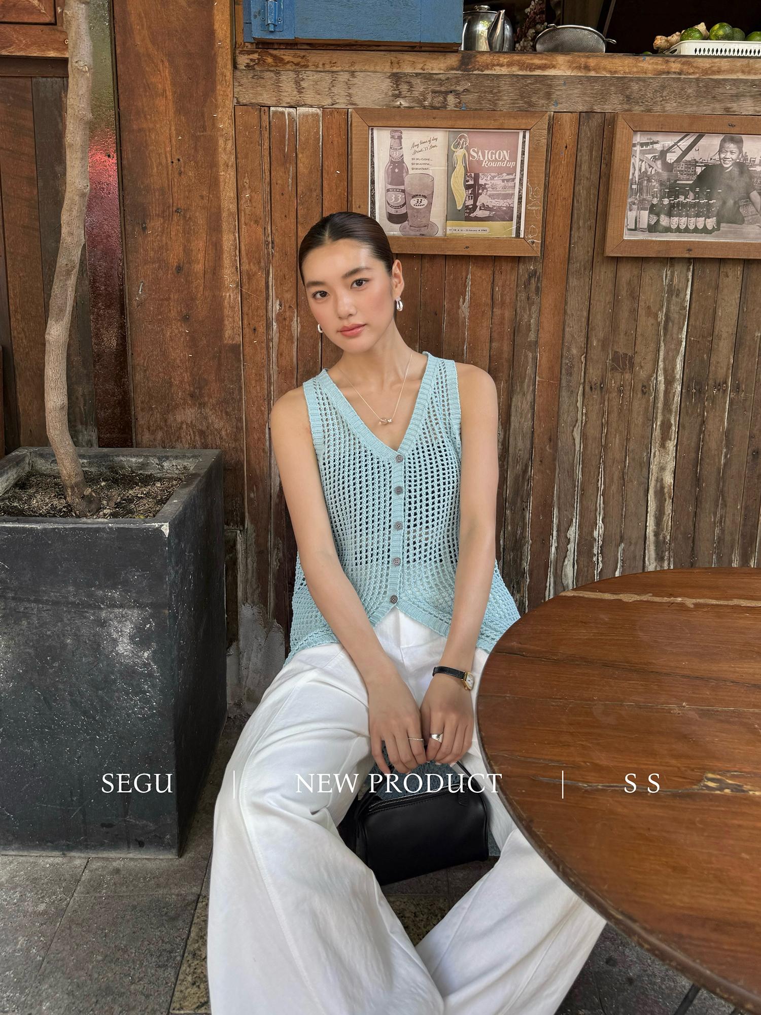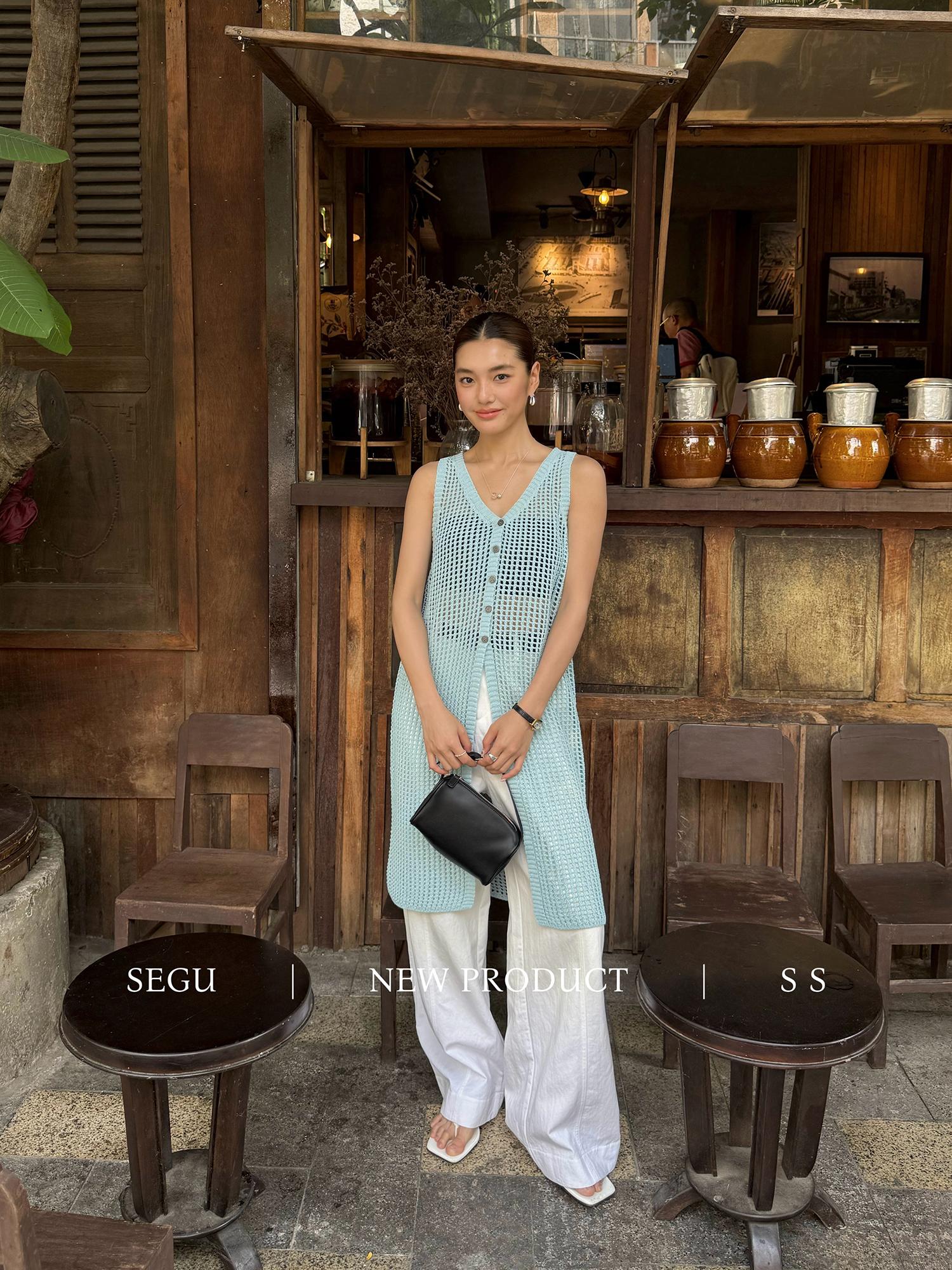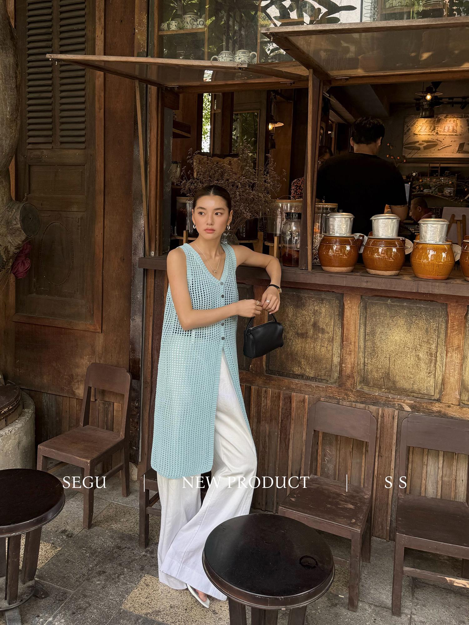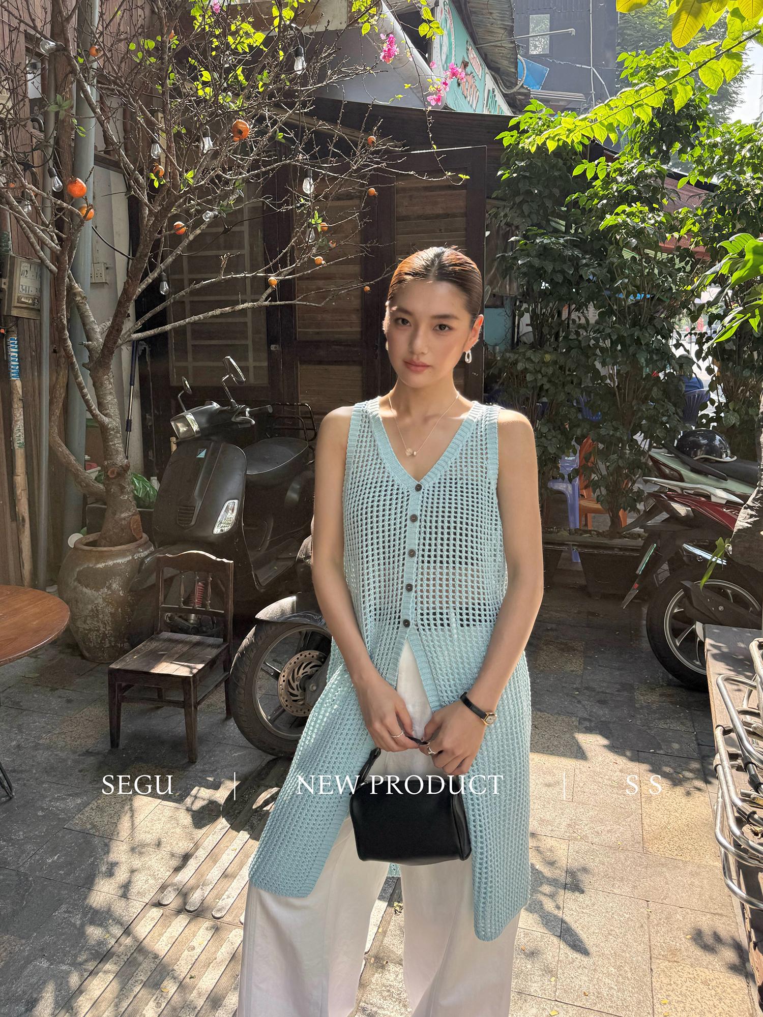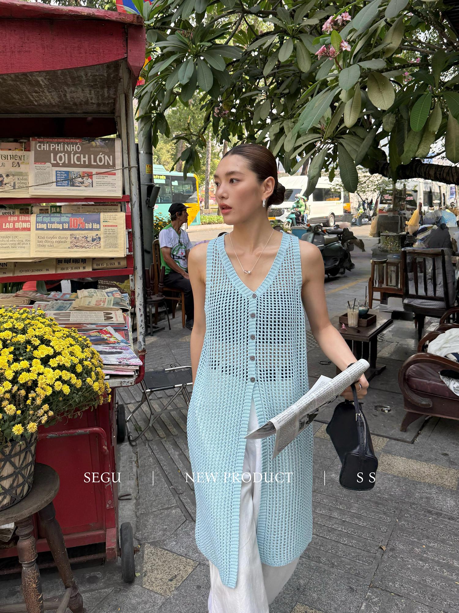 【C9267】韓系純欲風軟糯透氣薄款V領鏤空中長款針織連衣裙