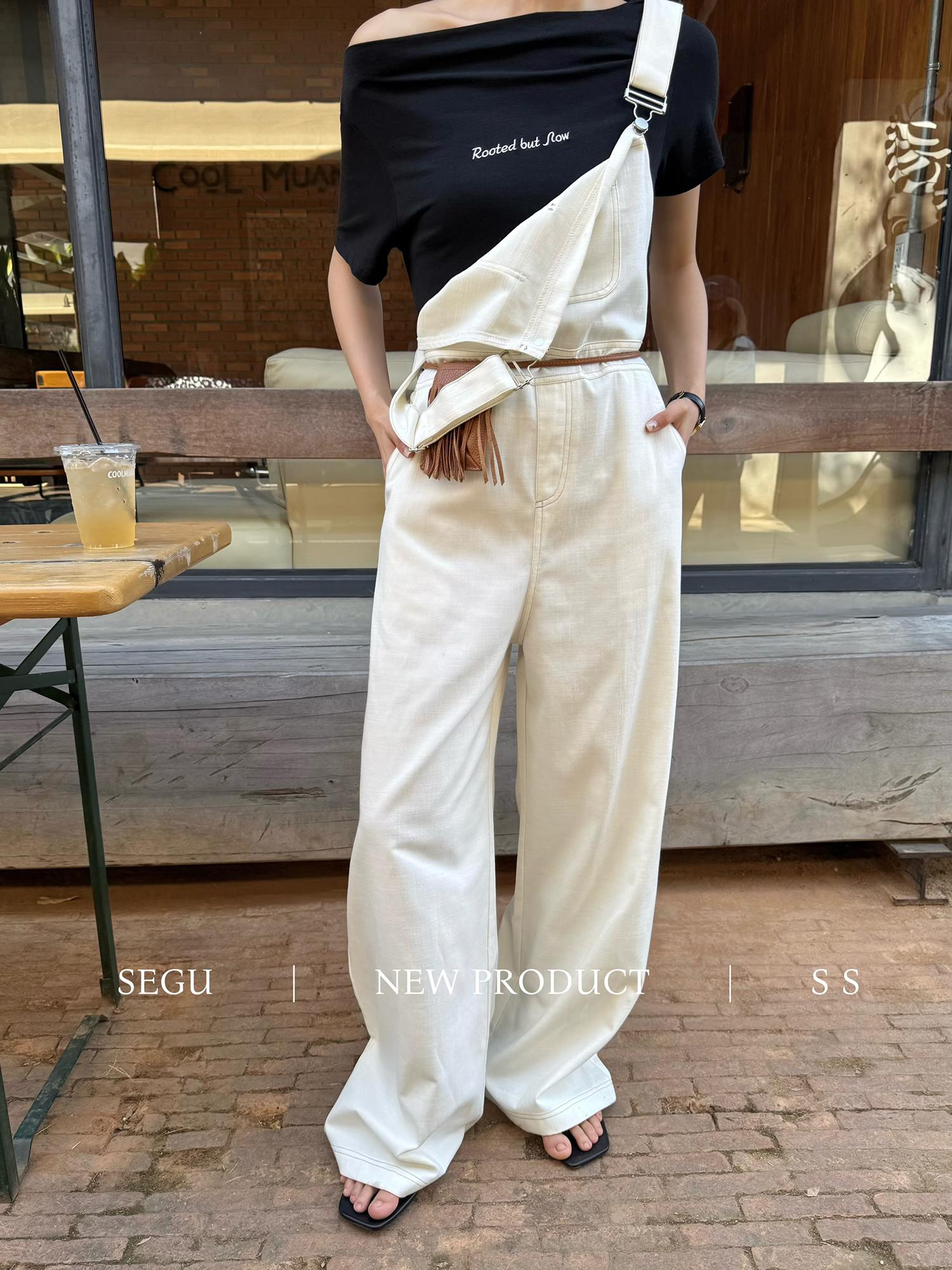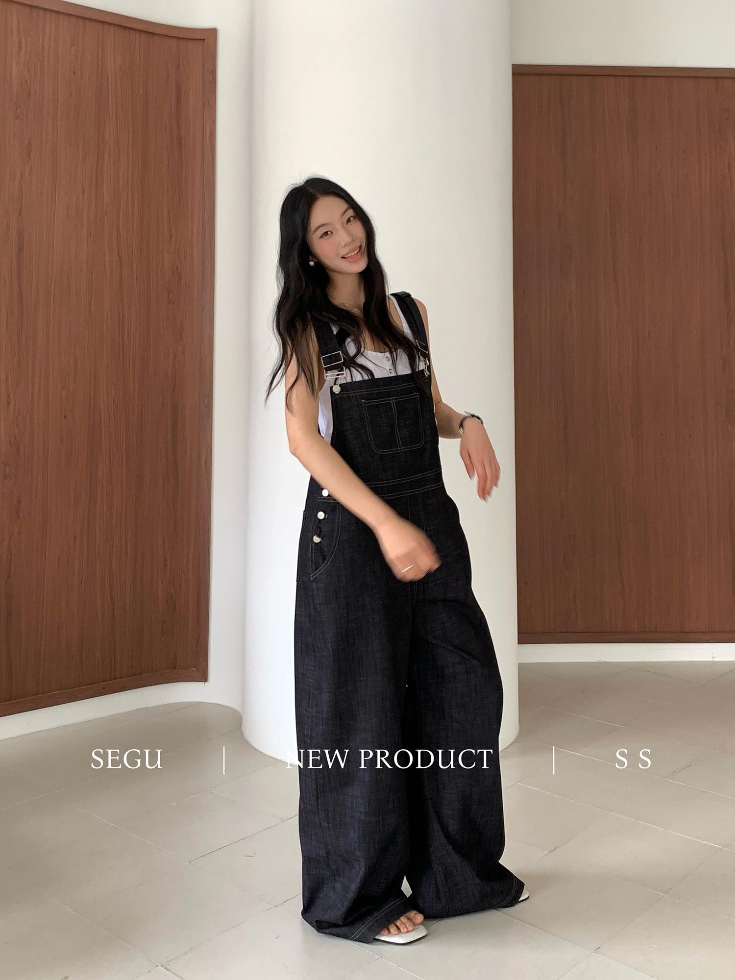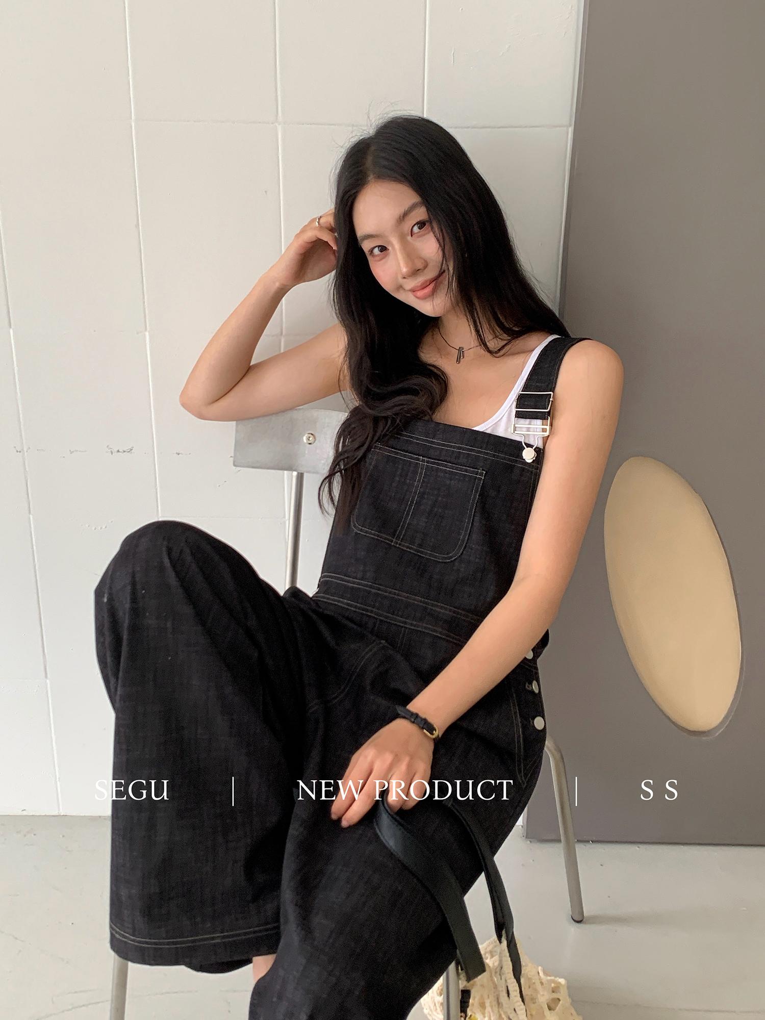 【C9268】韓系慵懶風揹帶褲女夏季薄款高腰顯瘦垂感闊腿揹帶褲