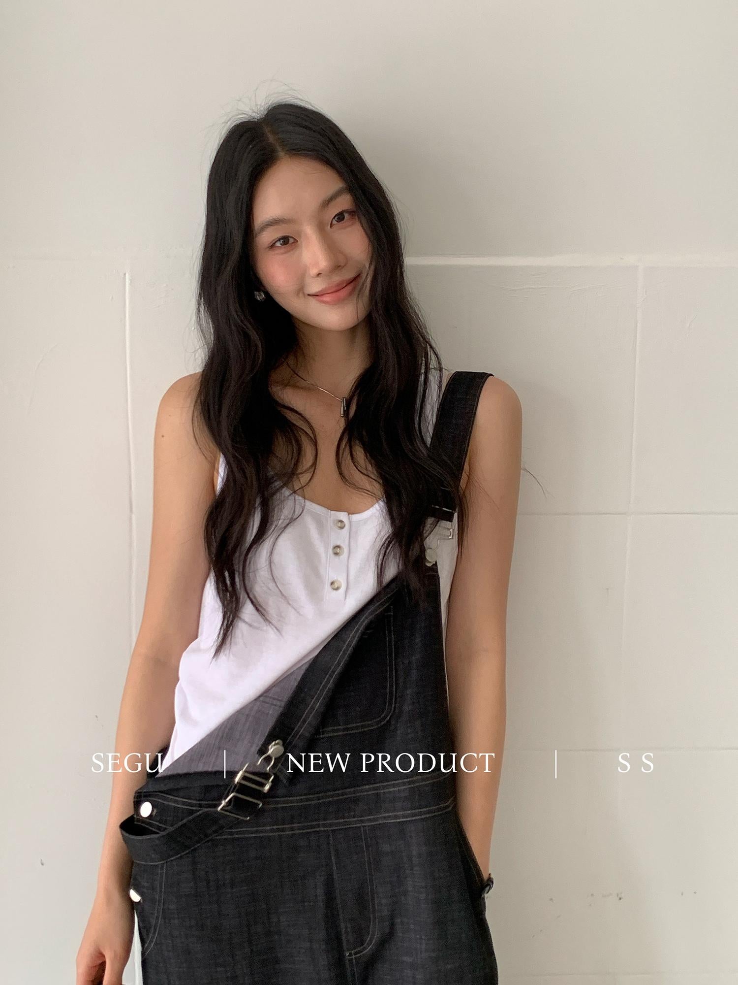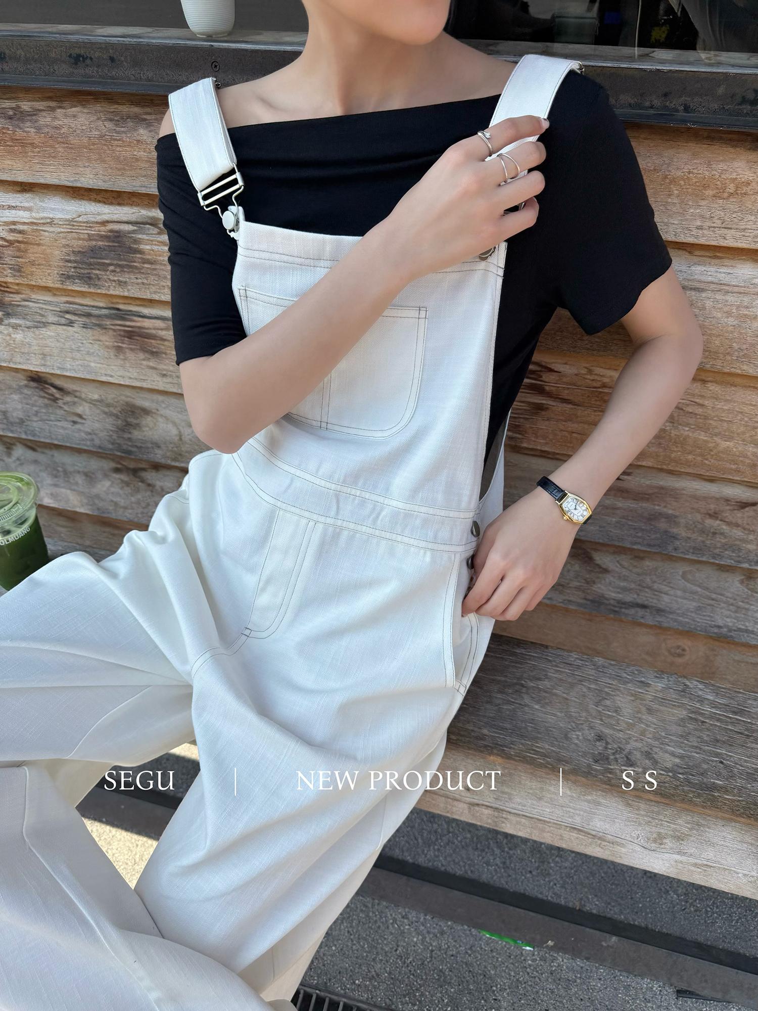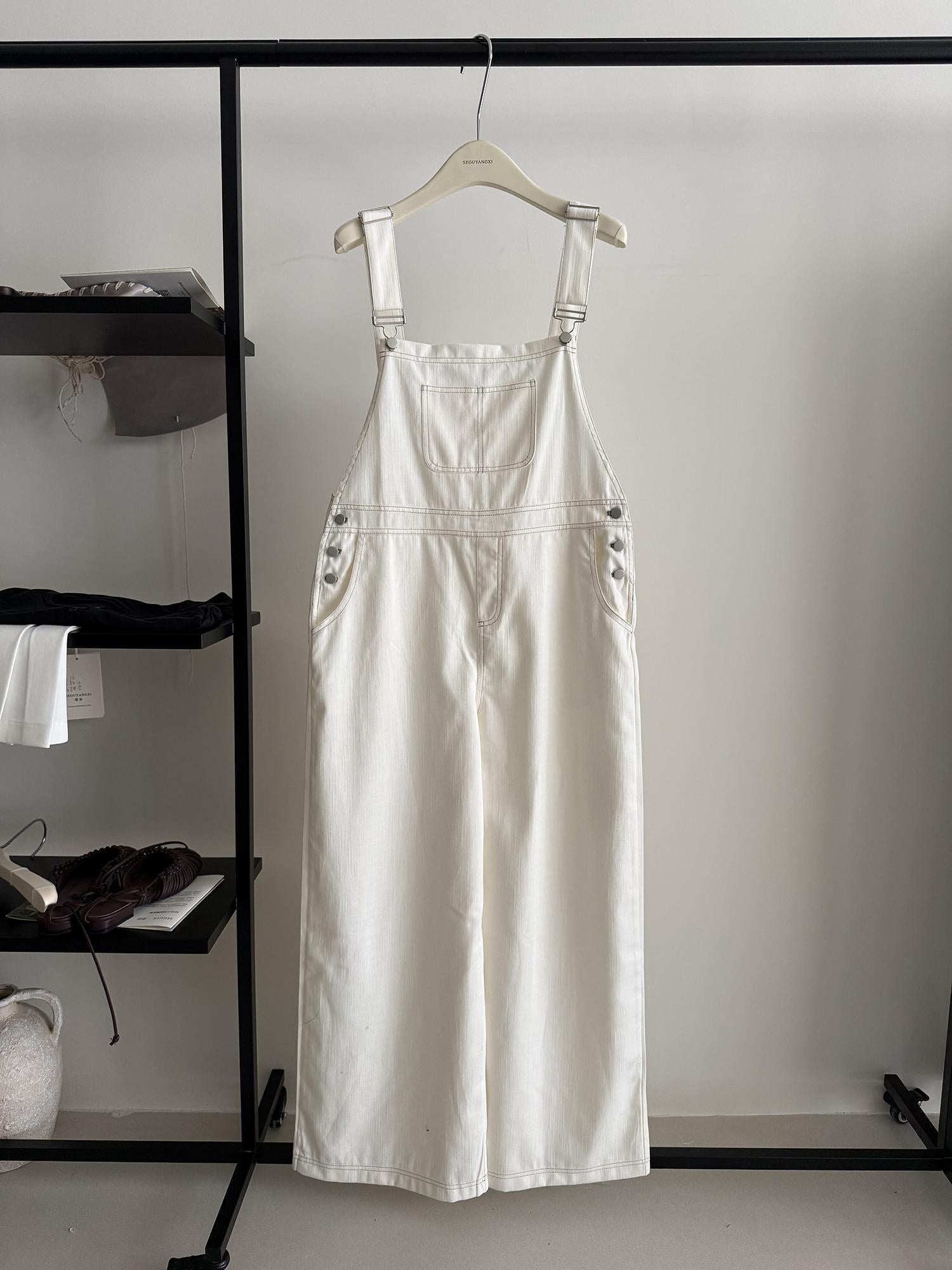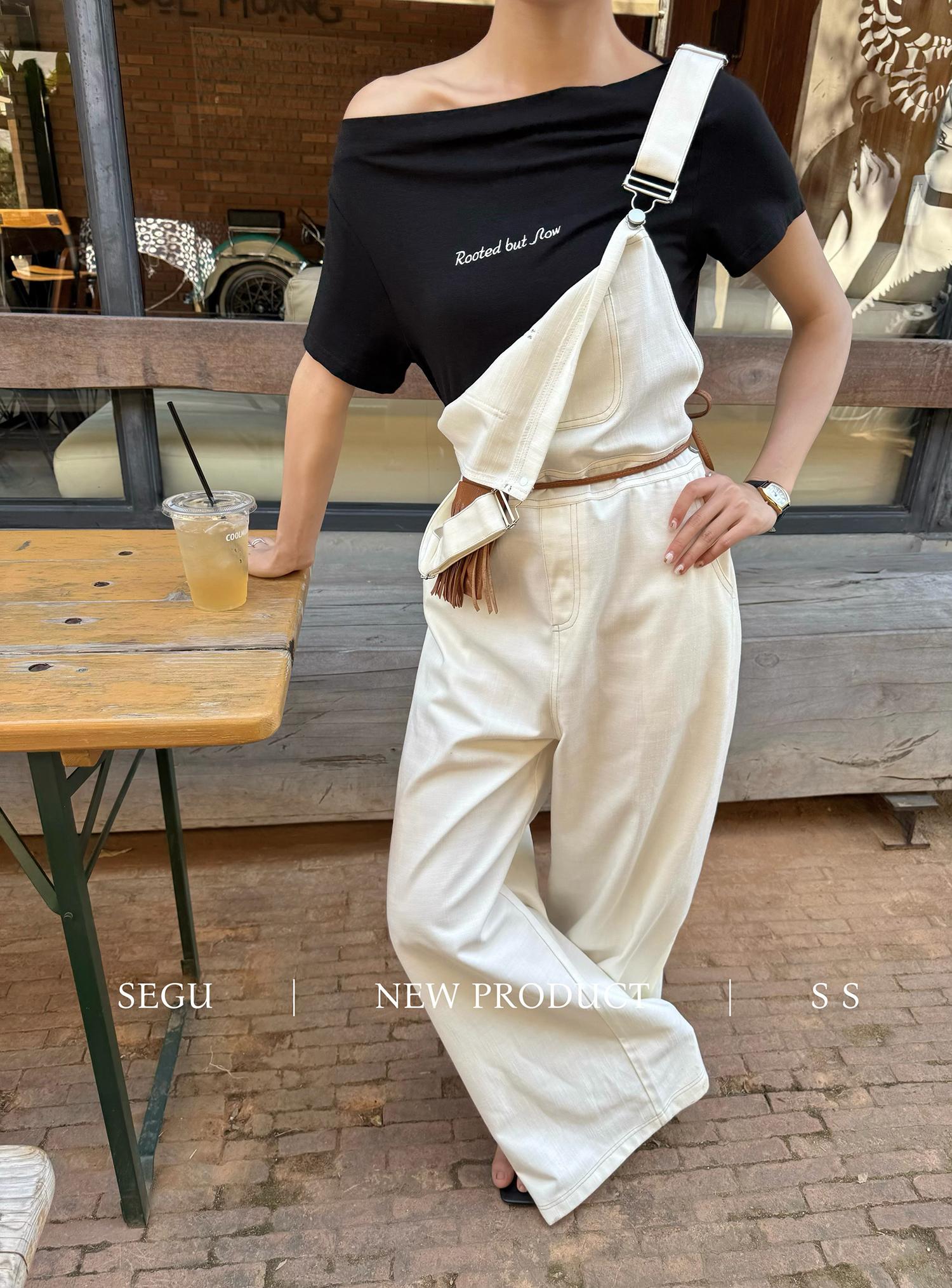 【C9268】韓系慵懶風揹帶褲女夏季薄款高腰顯瘦垂感闊腿揹帶褲