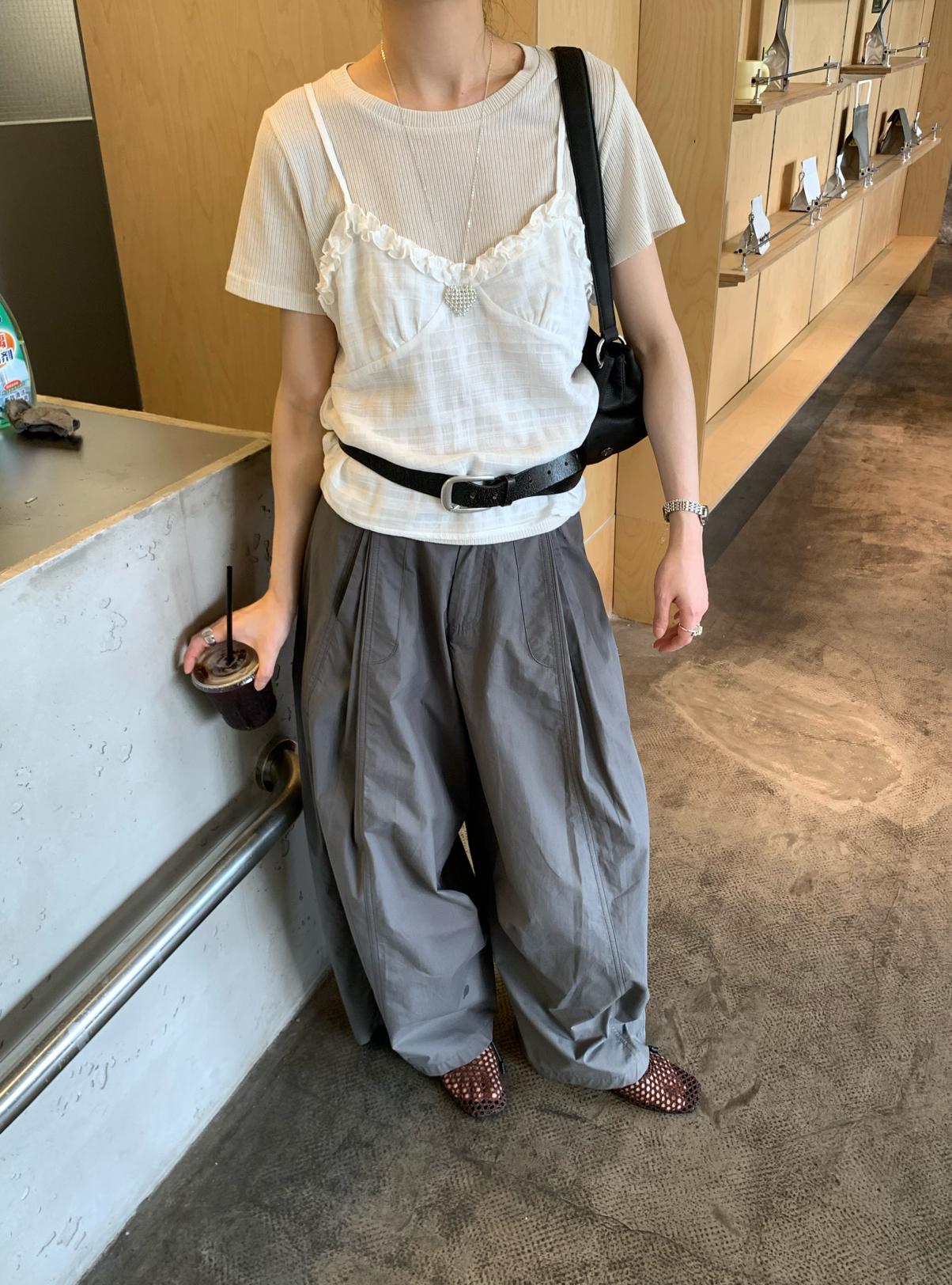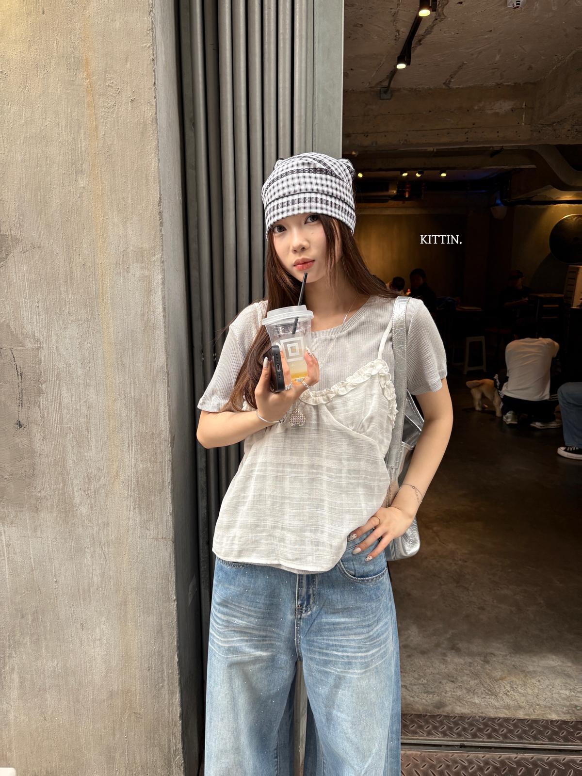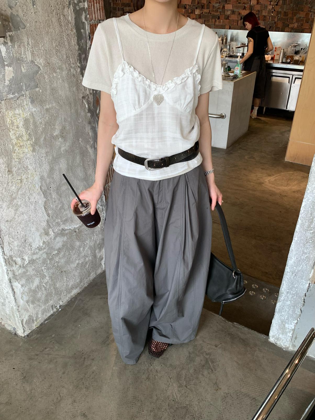 【C9273】韓系正肩短袖T恤+吊帶花邊背心兩件套套裝