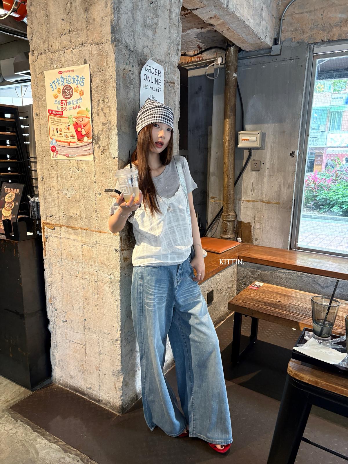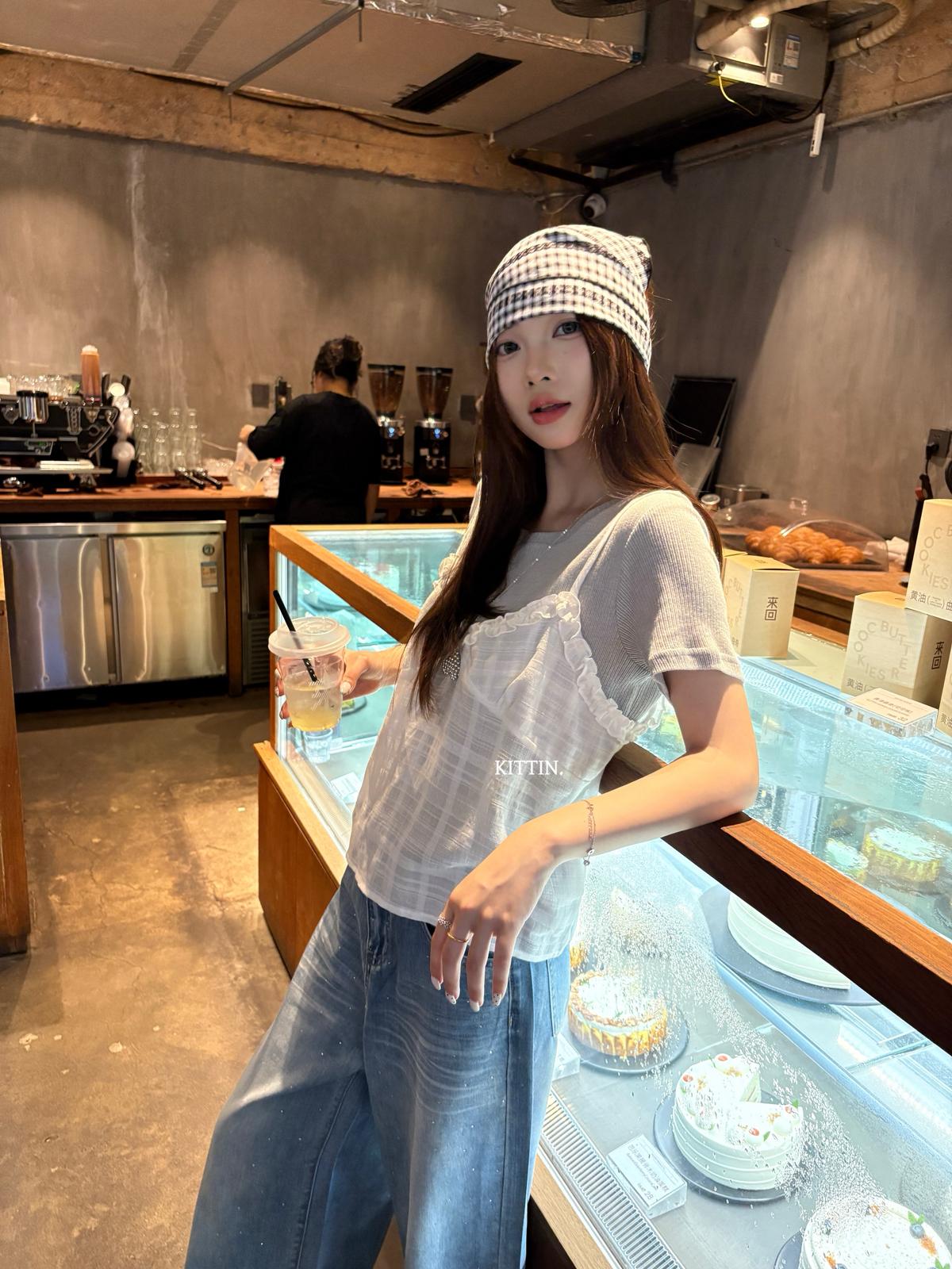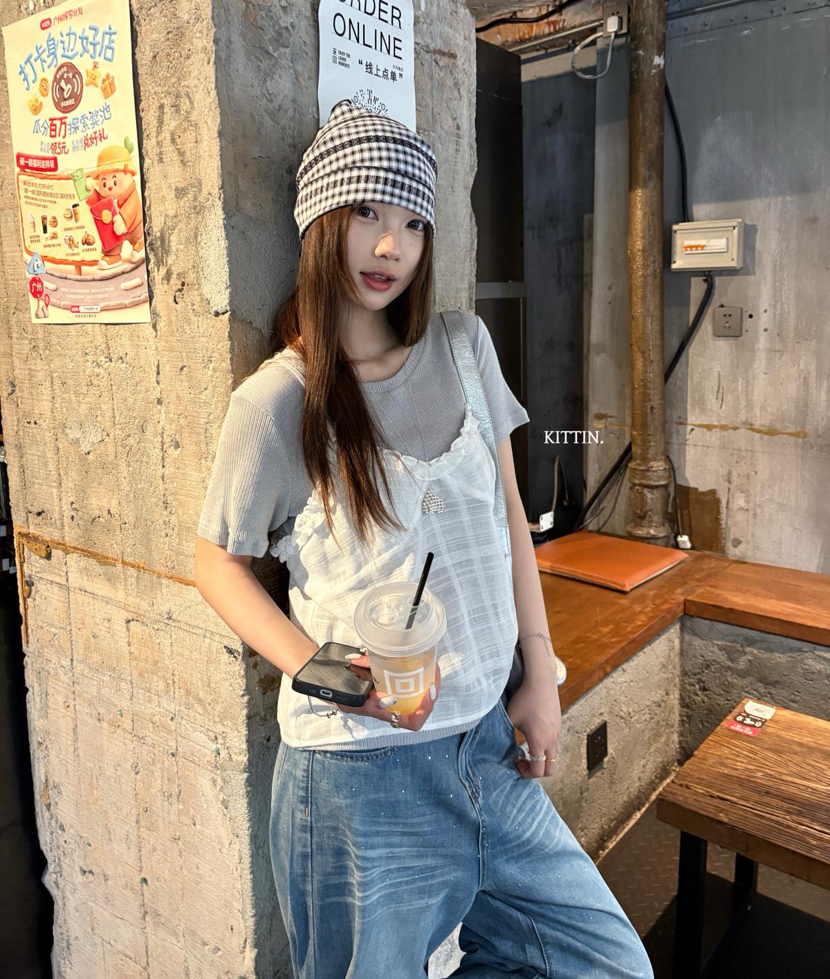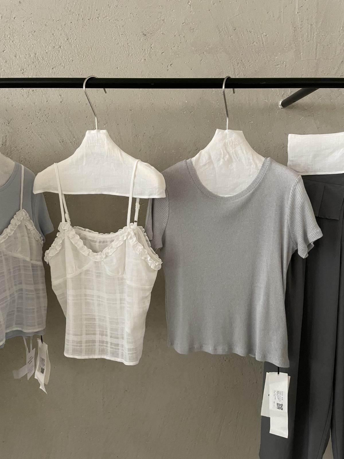 【C9273】韓系正肩短袖T恤+吊帶花邊背心兩件套套裝