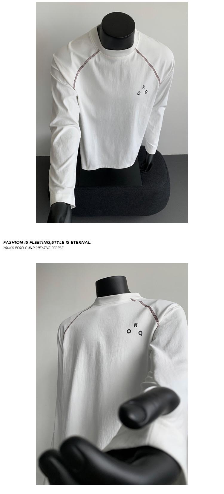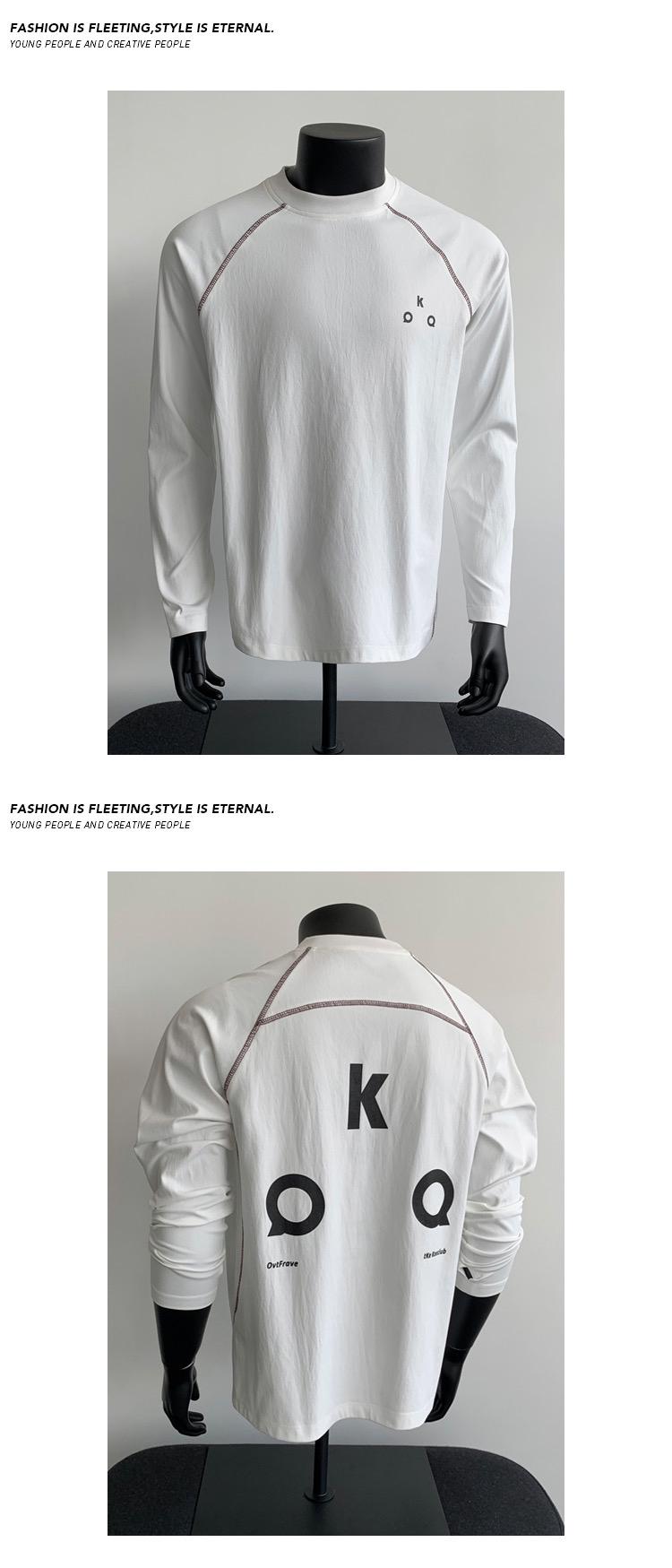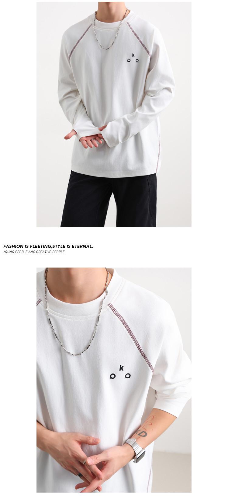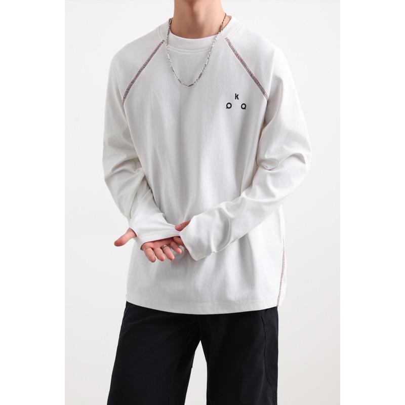 【YS2441】2025 秋季新款白底大碼圓領撞色時尚潮流長袖T恤