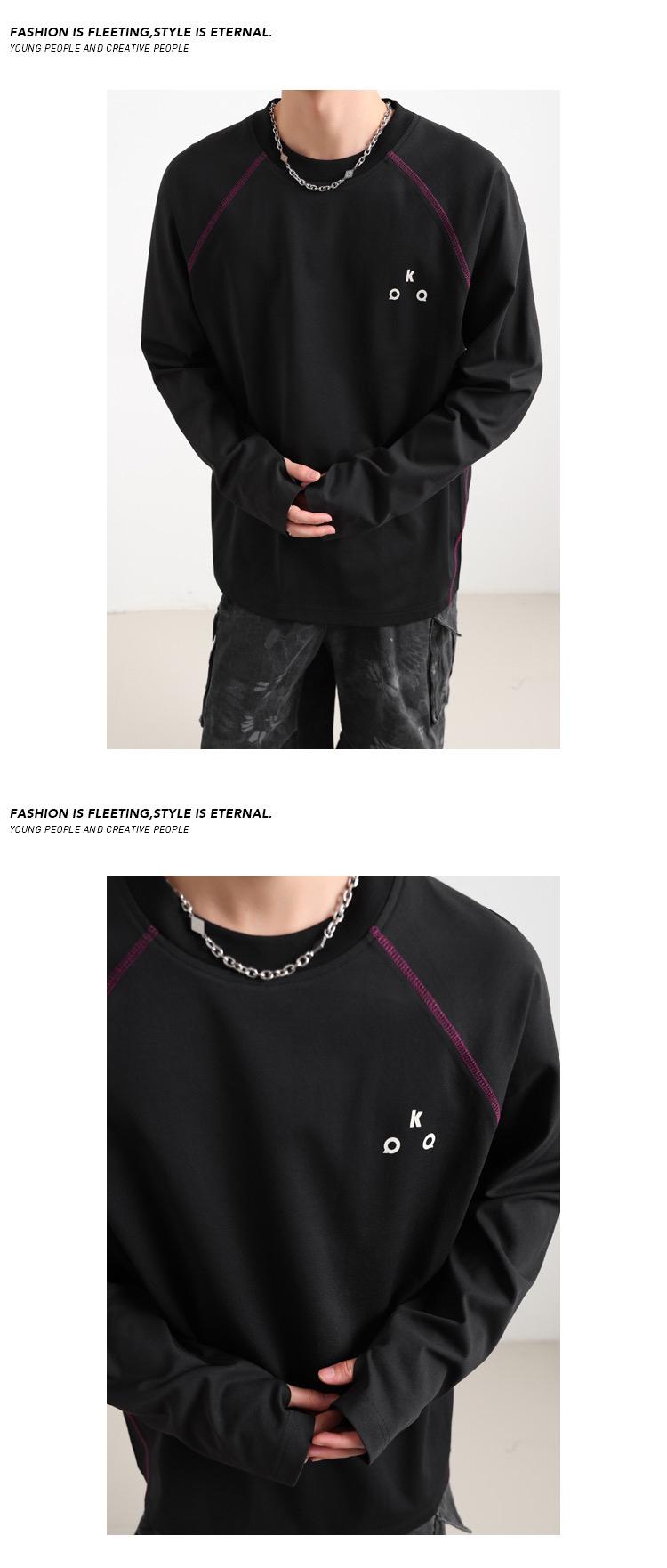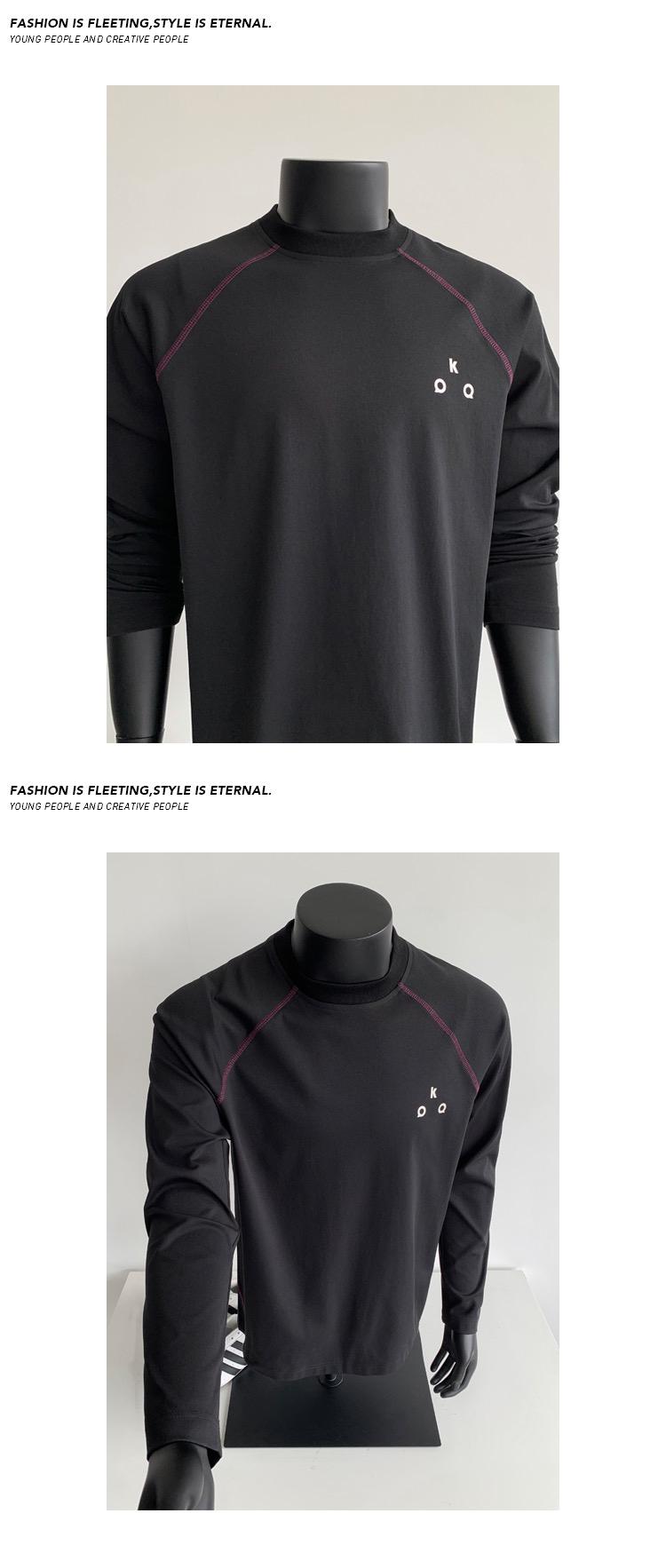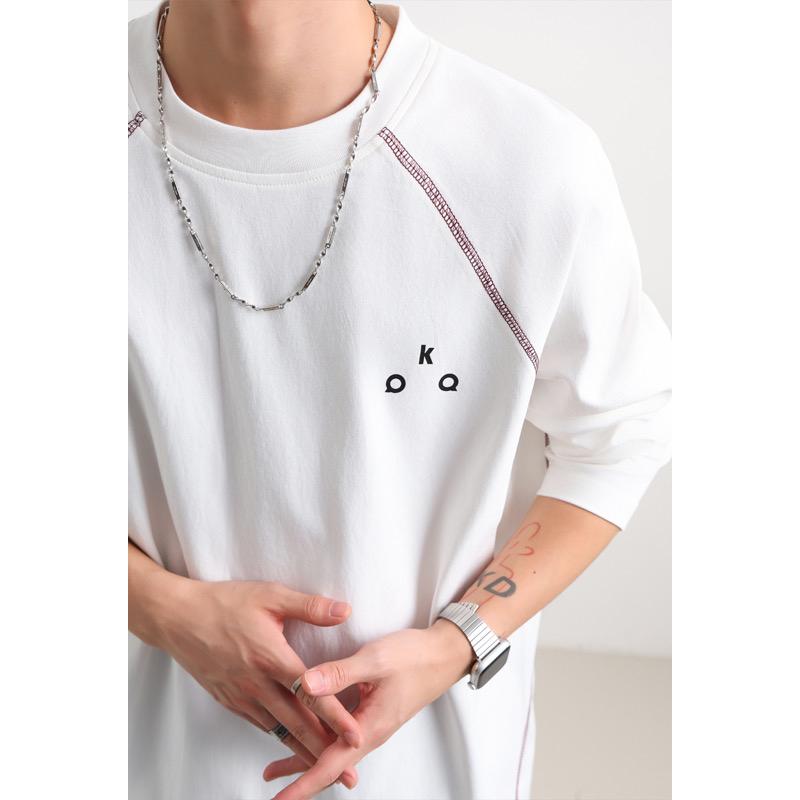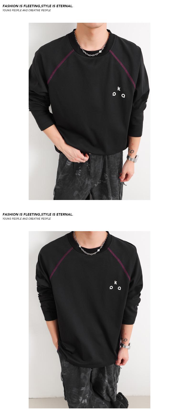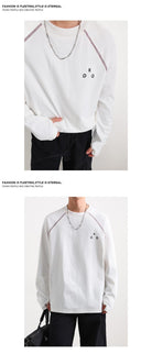 【YS2441】2025 秋季新款白底大碼圓領撞色時尚潮流長袖T恤