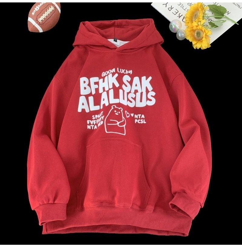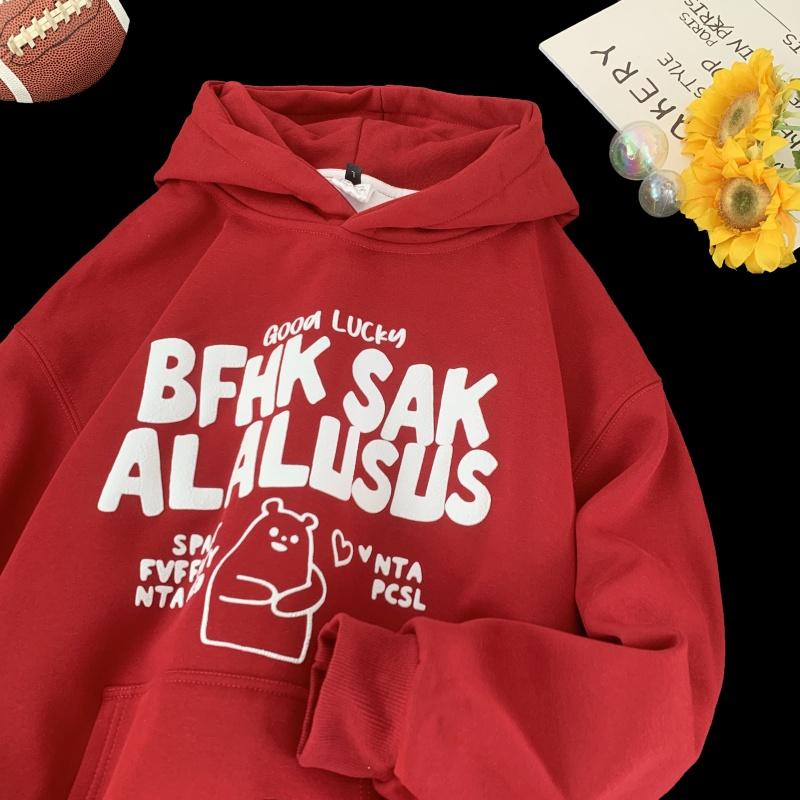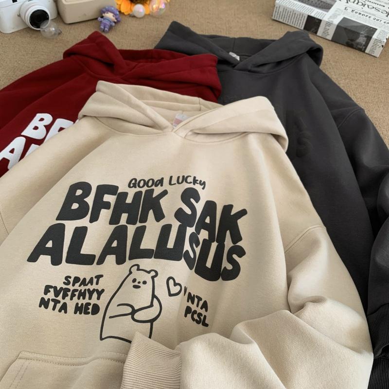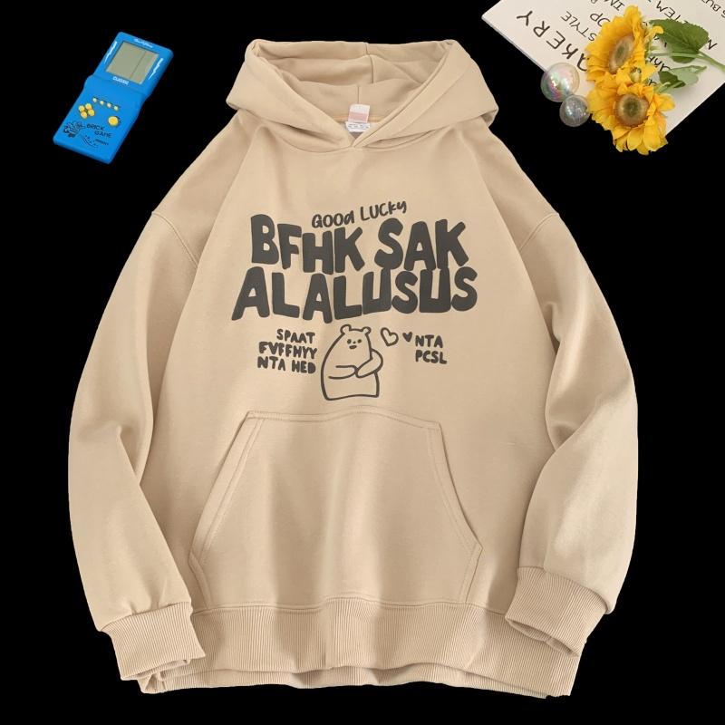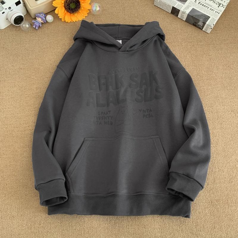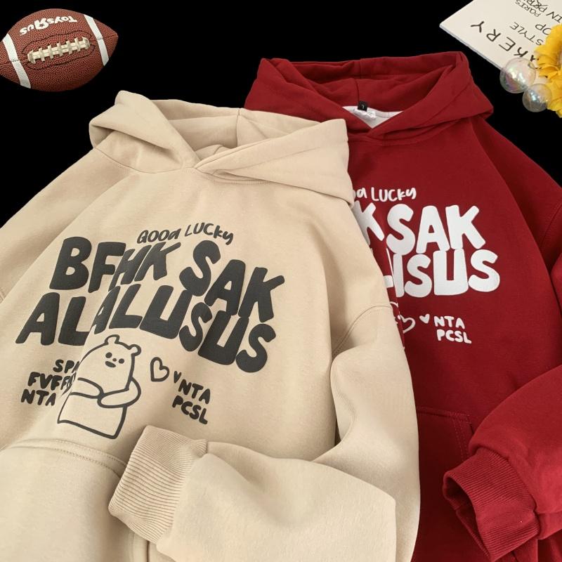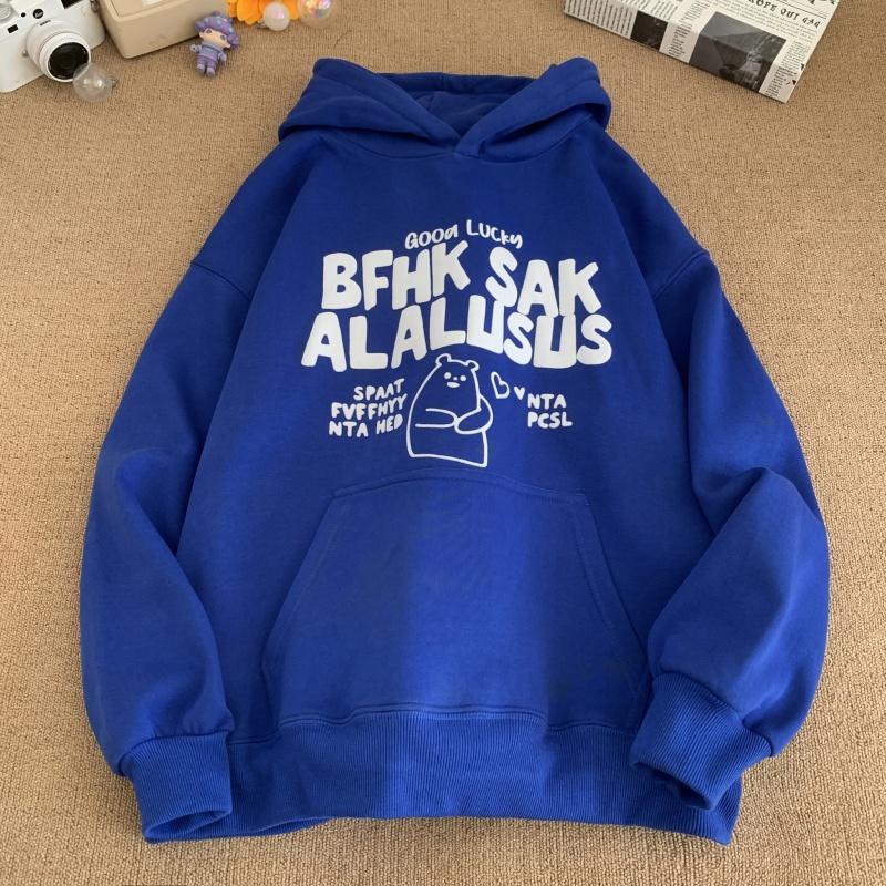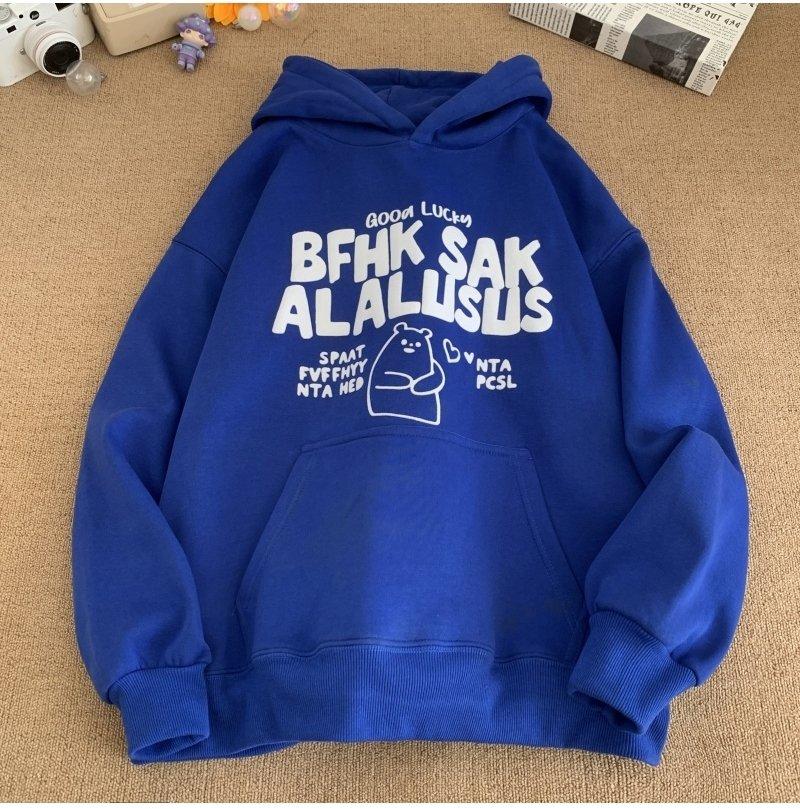 3. 【YS2472】連帽寬鬆時尚印花加絨百搭休閒衛衣