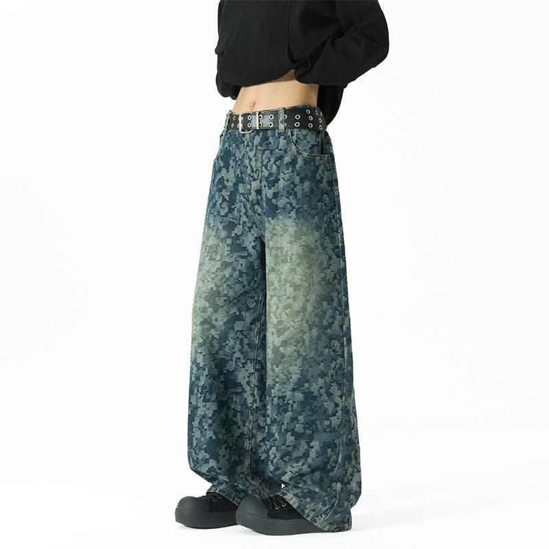 【YS2483】半鬆緊迷彩紋款牛仔褲(不配腰帶)