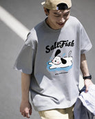 【YS2854】玩水小狗塗鴉寬鬆休閒oversize情侶裝短袖T恤