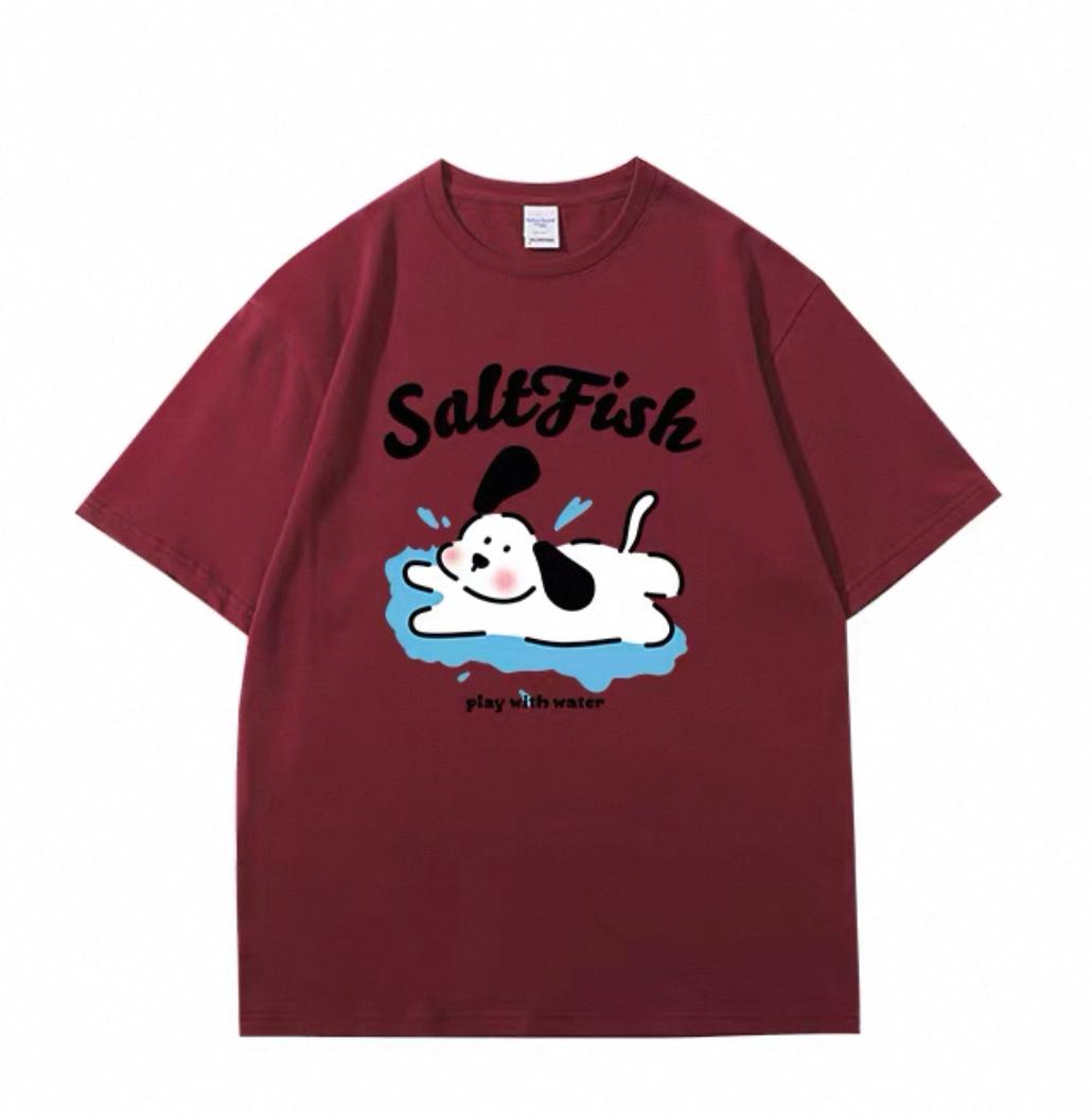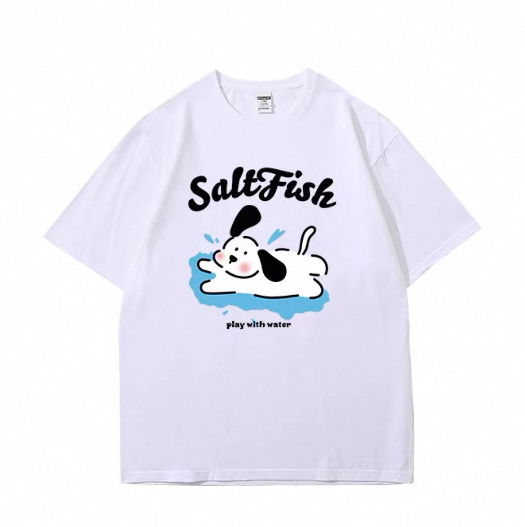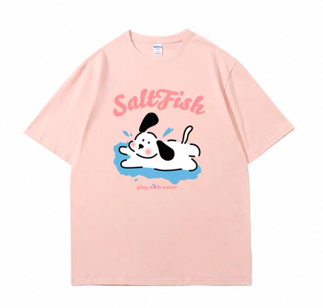 3. 【YS2854】玩水小狗塗鴉寬鬆休閒oversize情侶裝短袖T恤