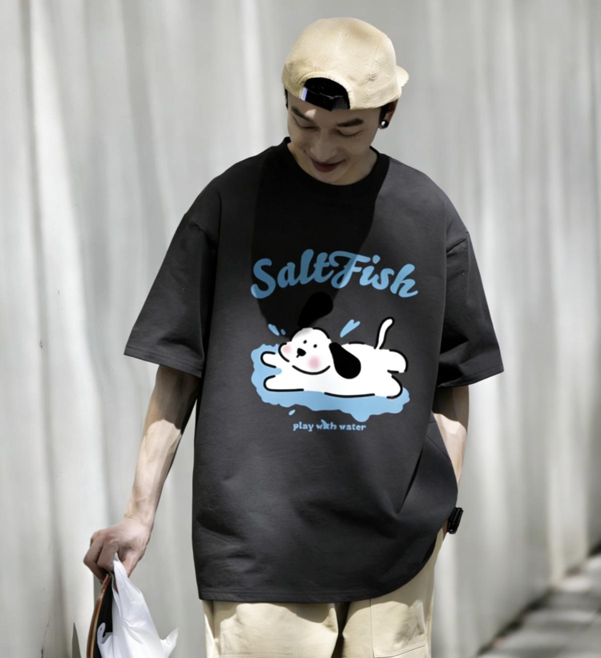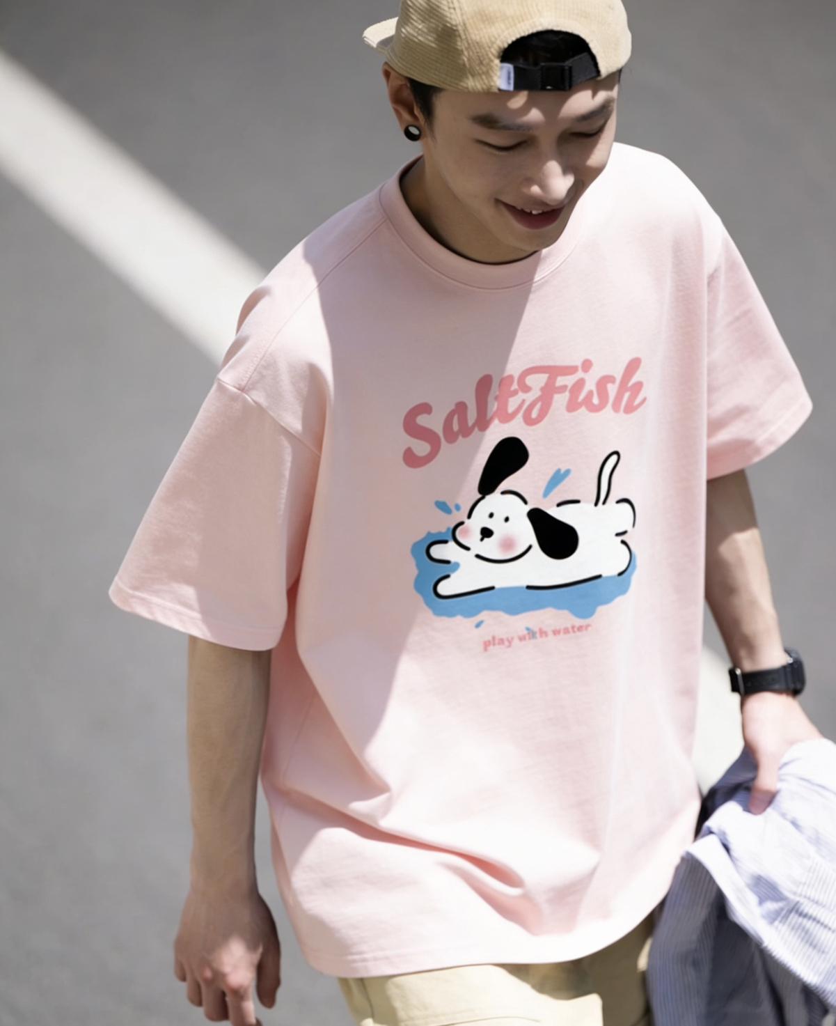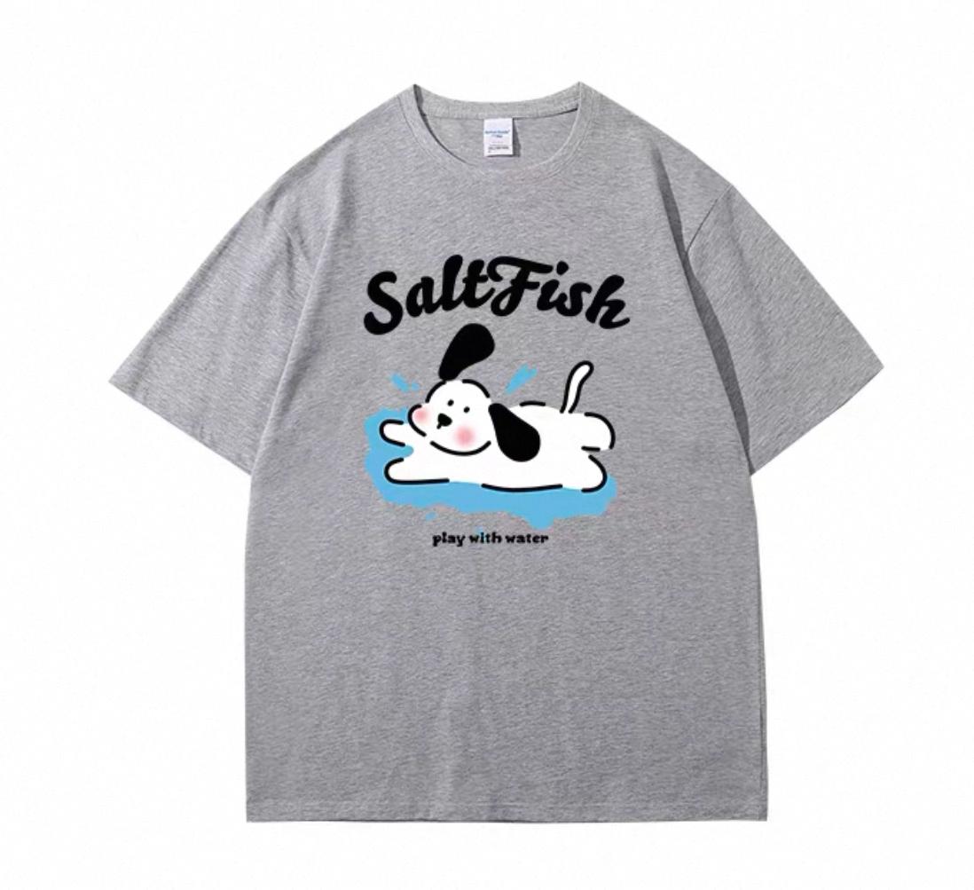 3. 【YS2854】玩水小狗塗鴉寬鬆休閒oversize情侶裝短袖T恤
