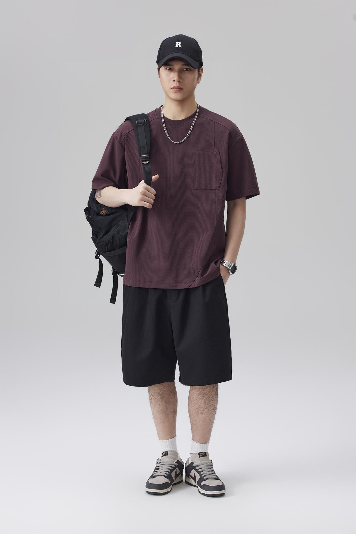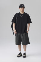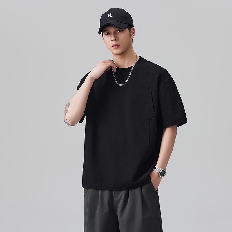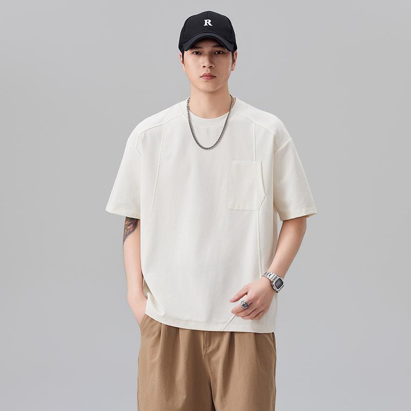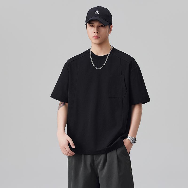【YS2861】潮牌個性設計拼接結構款寬鬆圓領短袖T恤