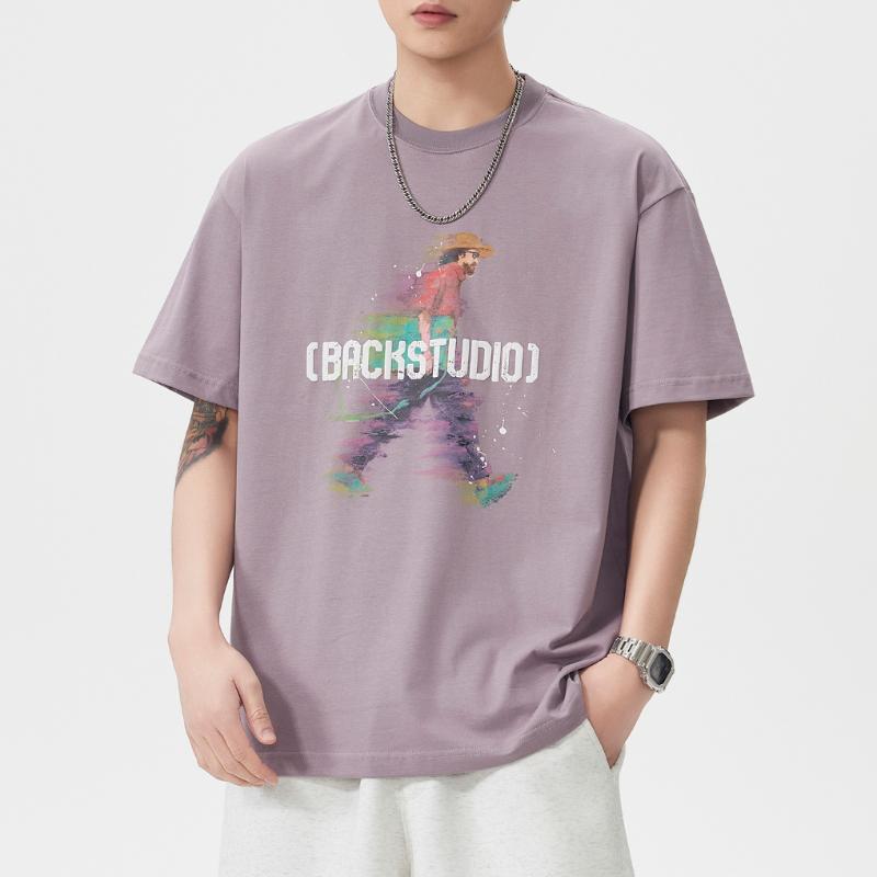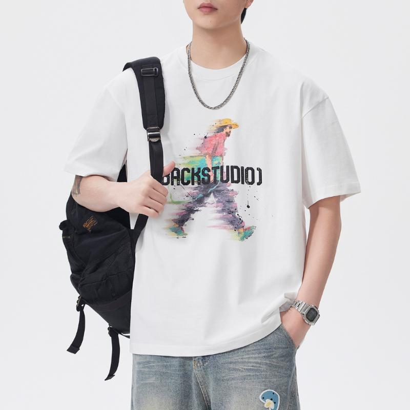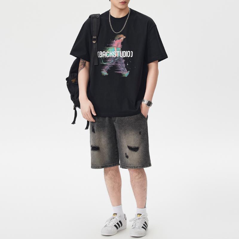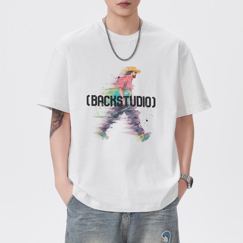 【YS2864】潮牌絨面發泡印花立體感強舒適親膚短袖T恤(不含項鍊)