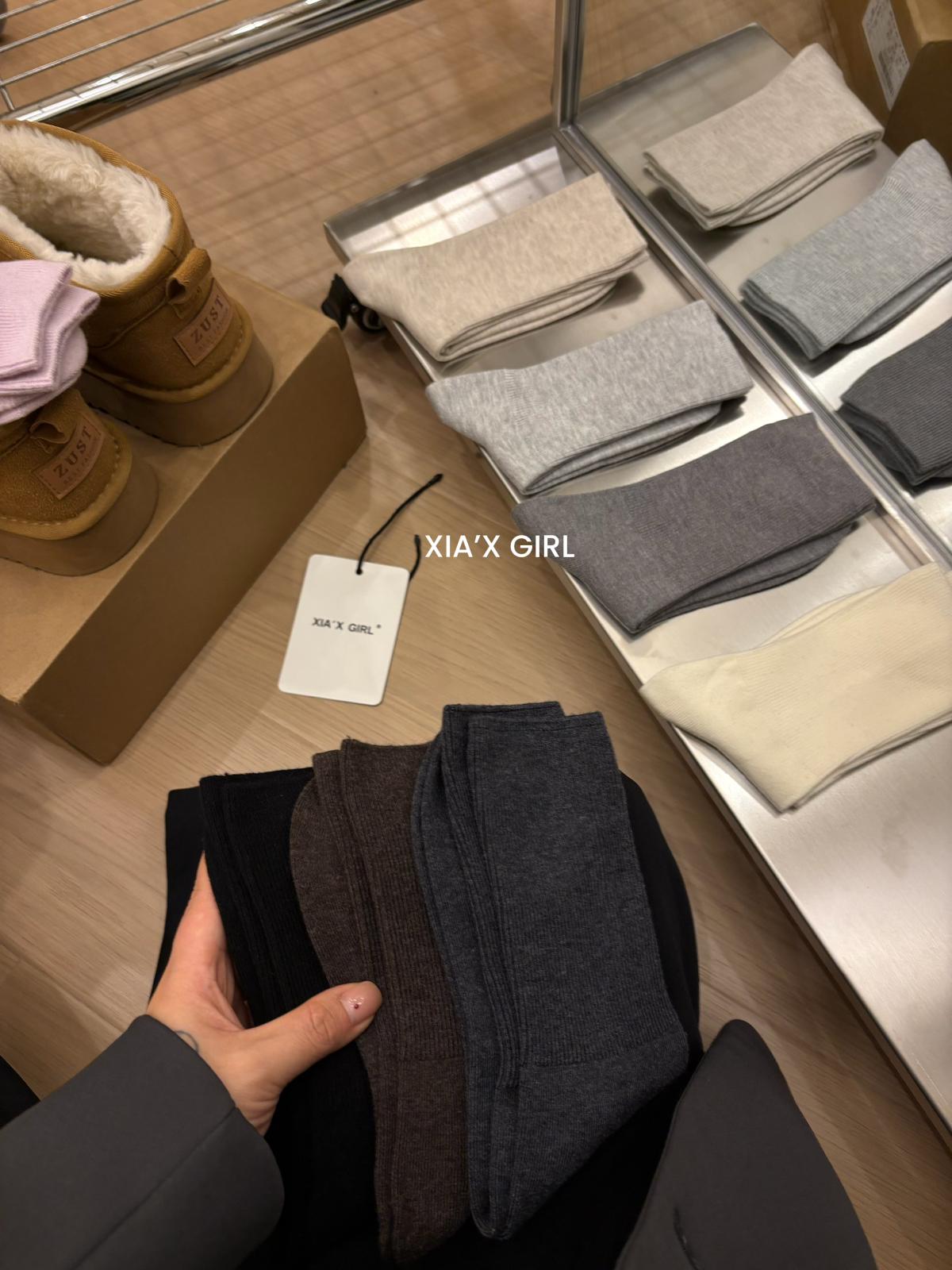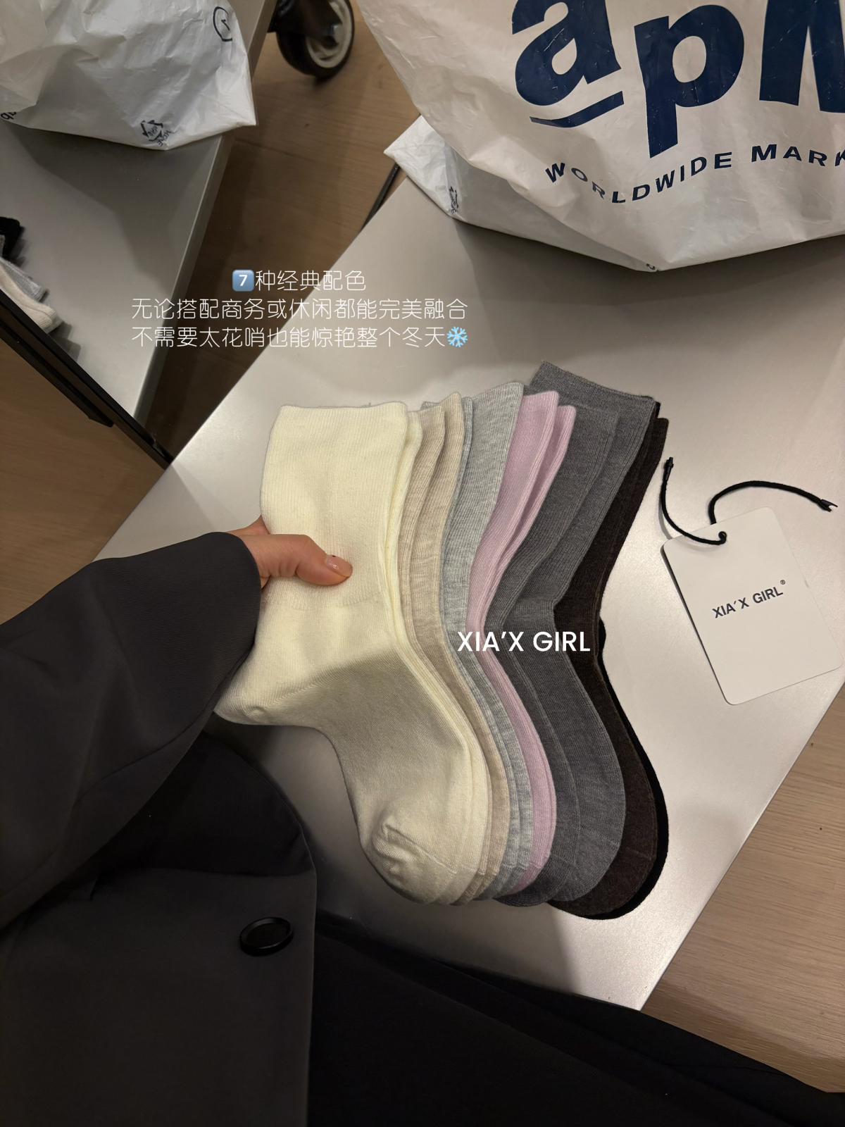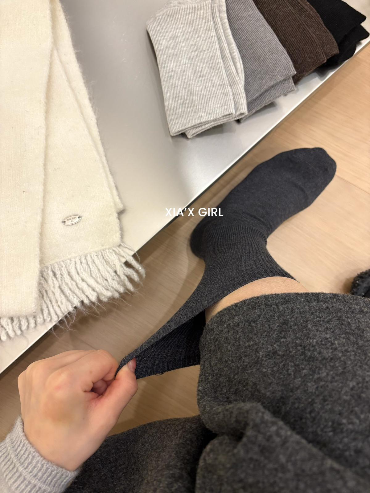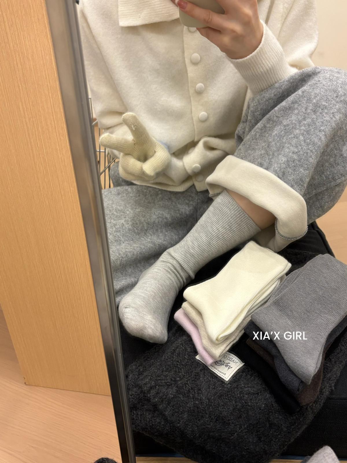 【C7857】純色羊毛保暖發熱襪新款舒適韓系簡約洋氣中筒堆堆襪襪子
