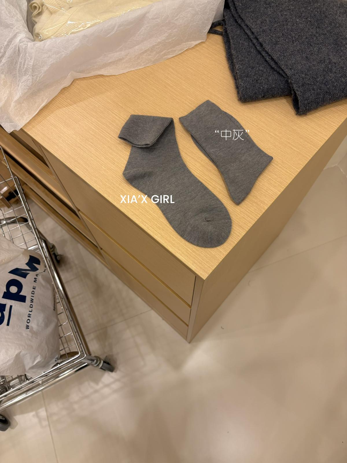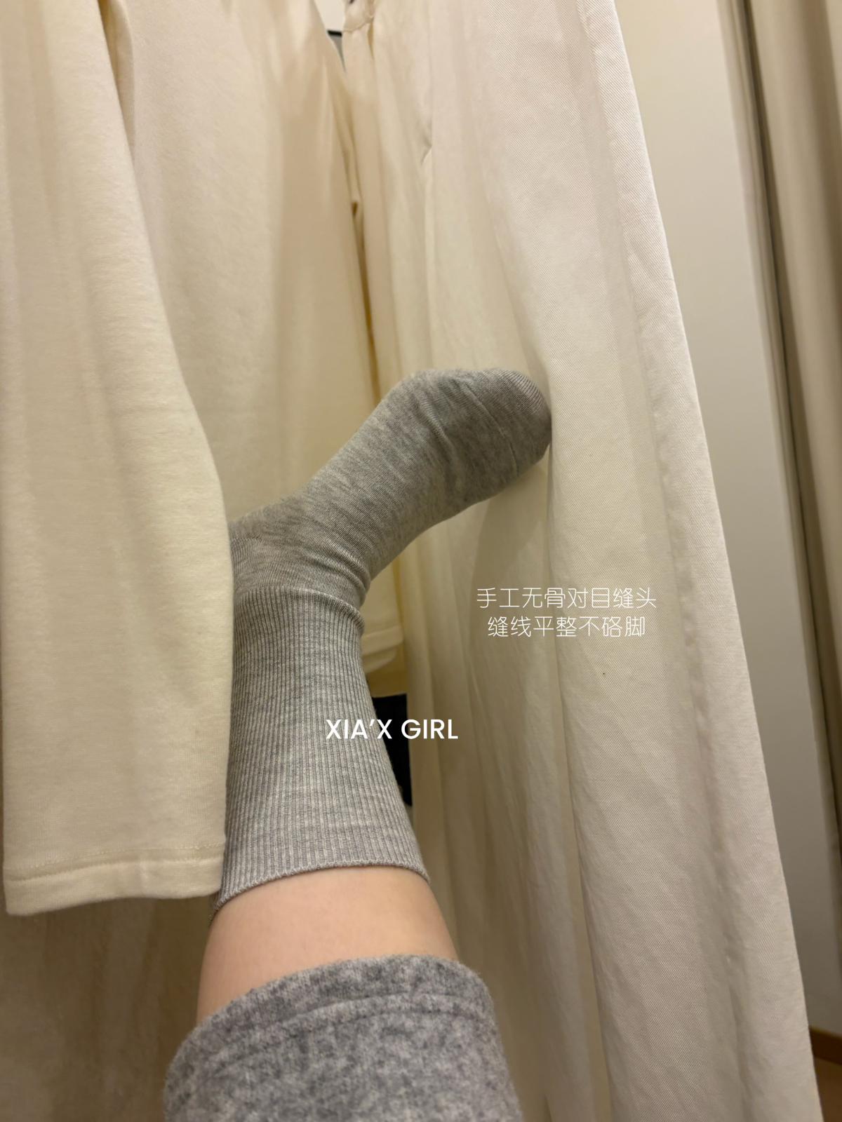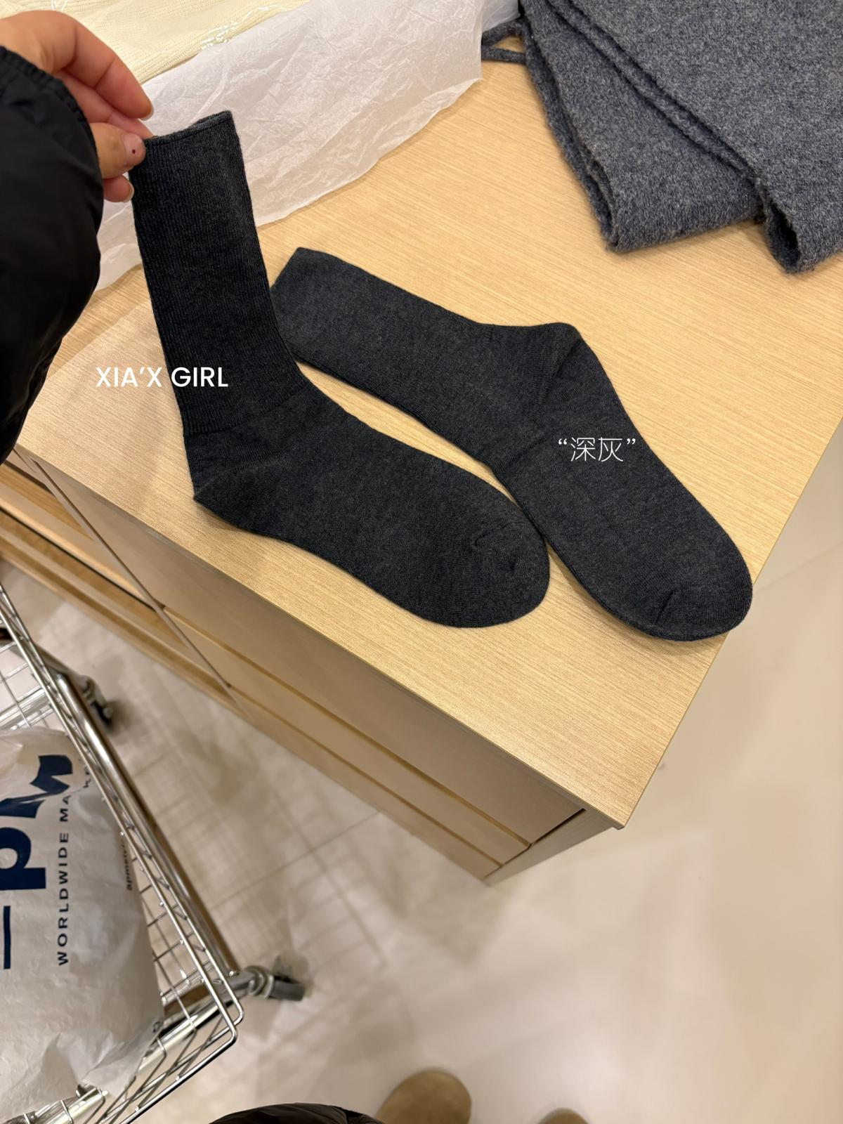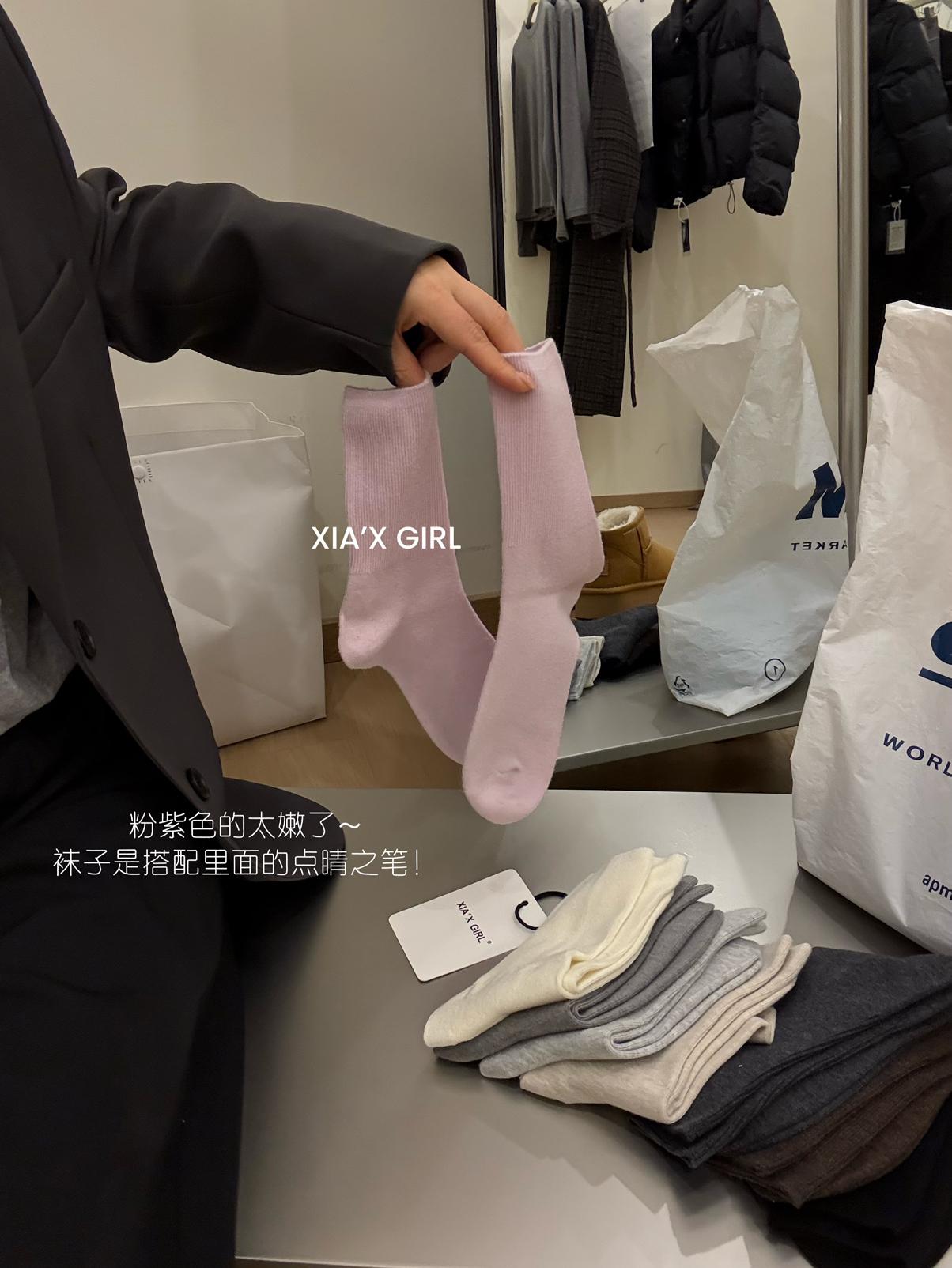 【C7857】純色羊毛保暖發熱襪新款舒適韓系簡約洋氣中筒堆堆襪襪子