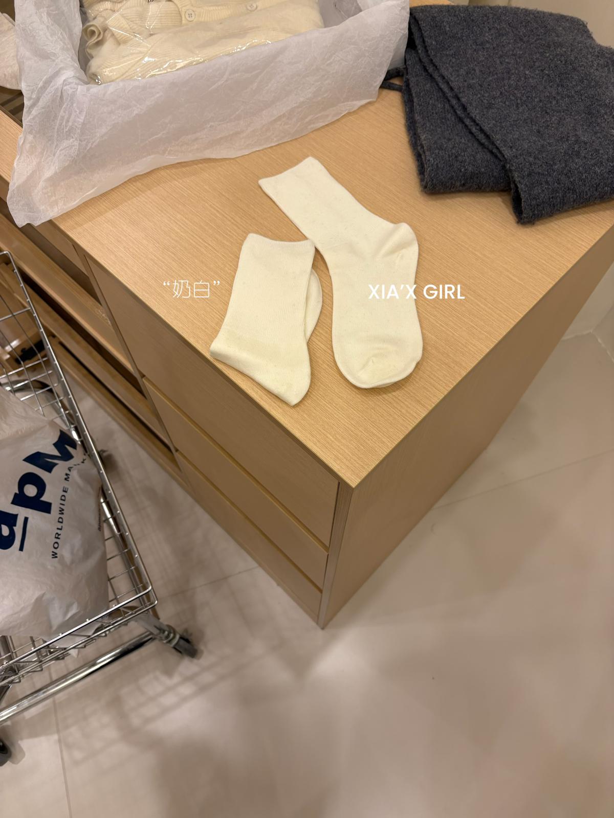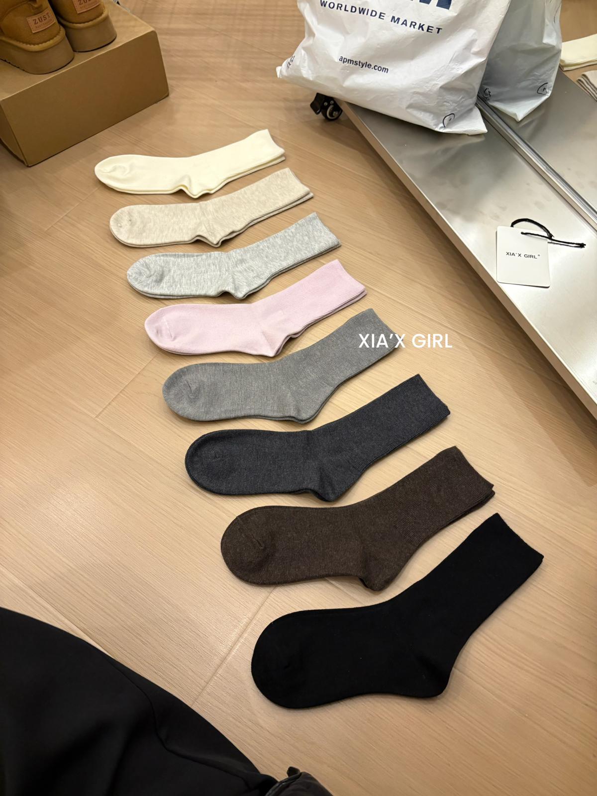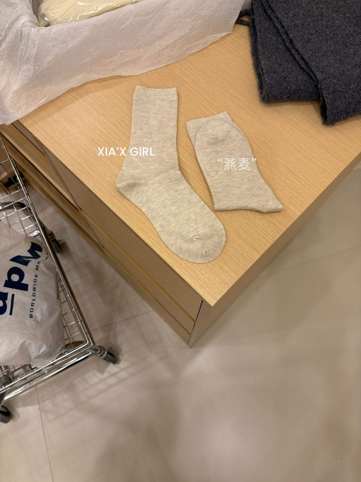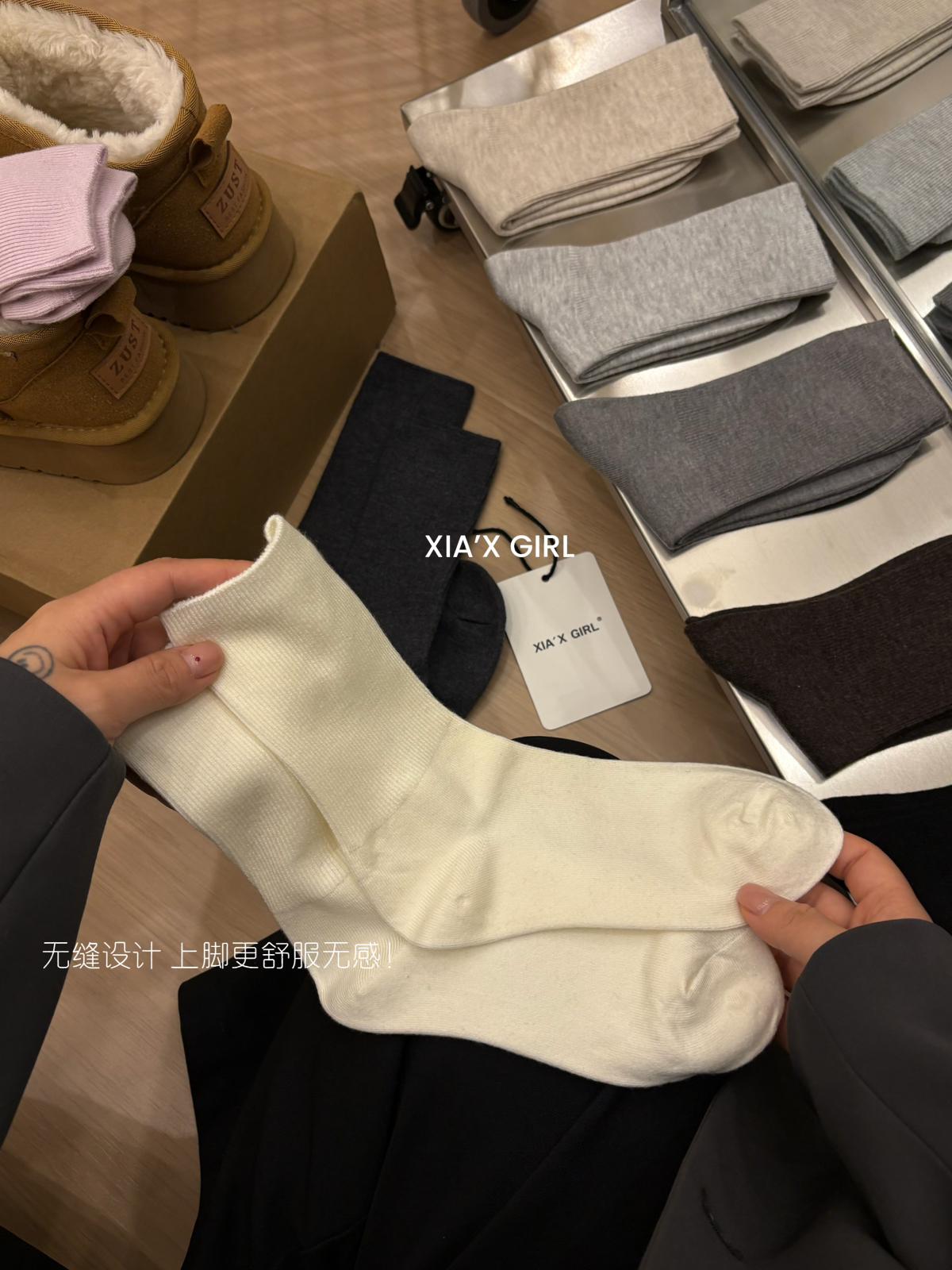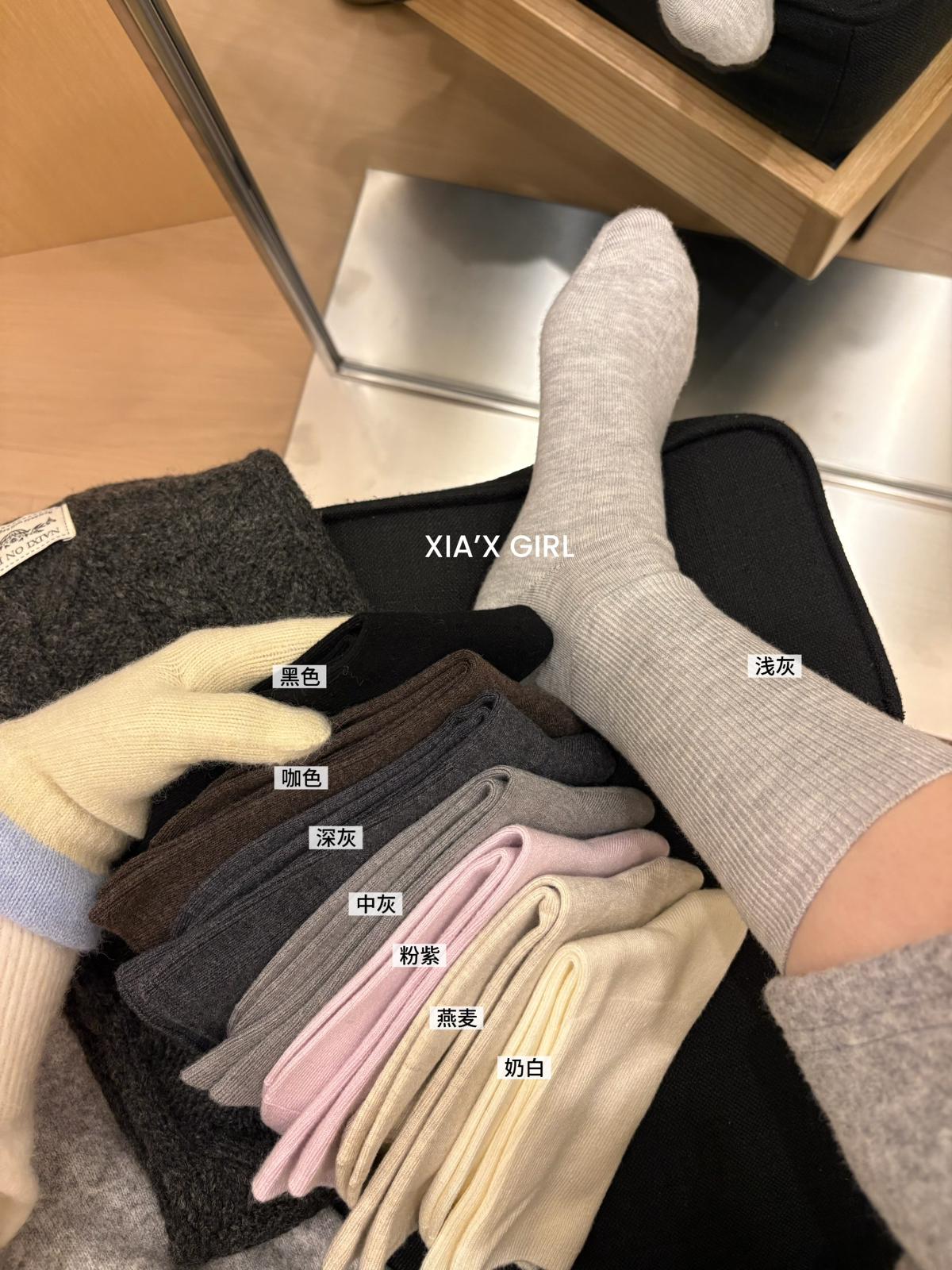 【C7857】純色羊毛保暖發熱襪新款舒適韓系簡約洋氣中筒堆堆襪襪子