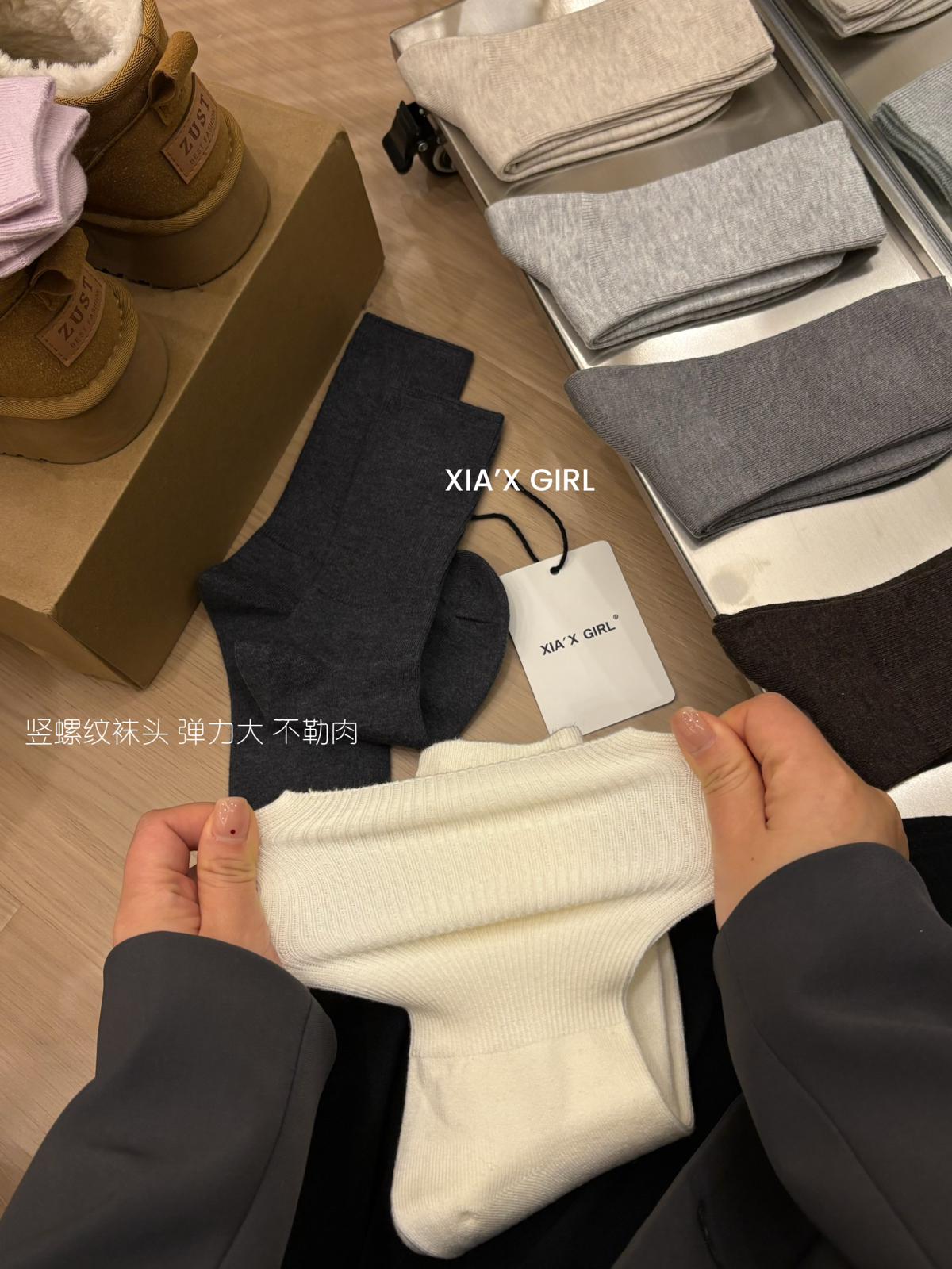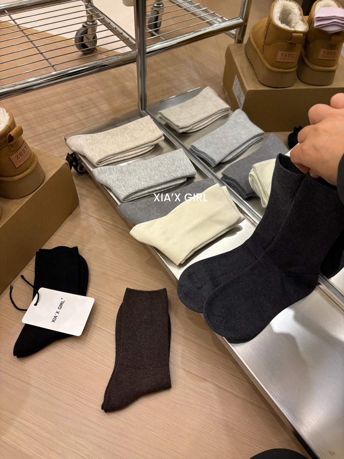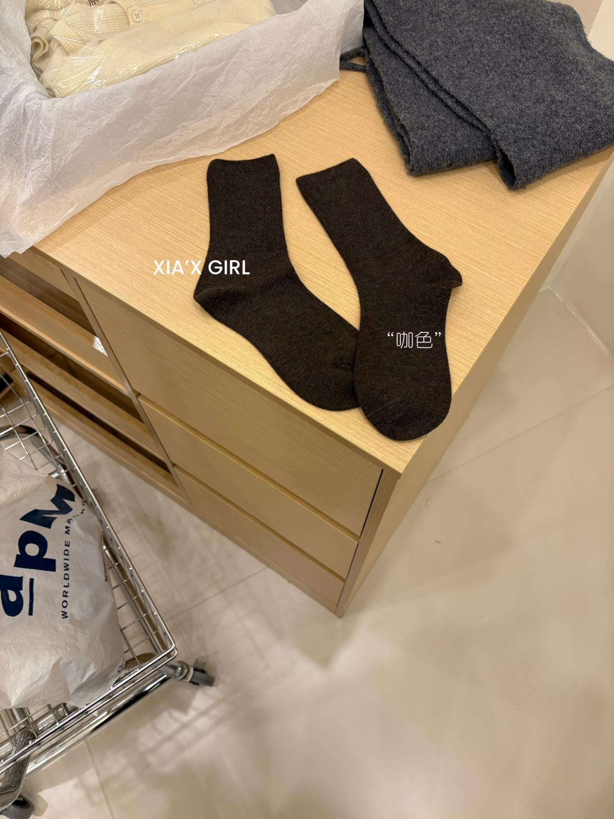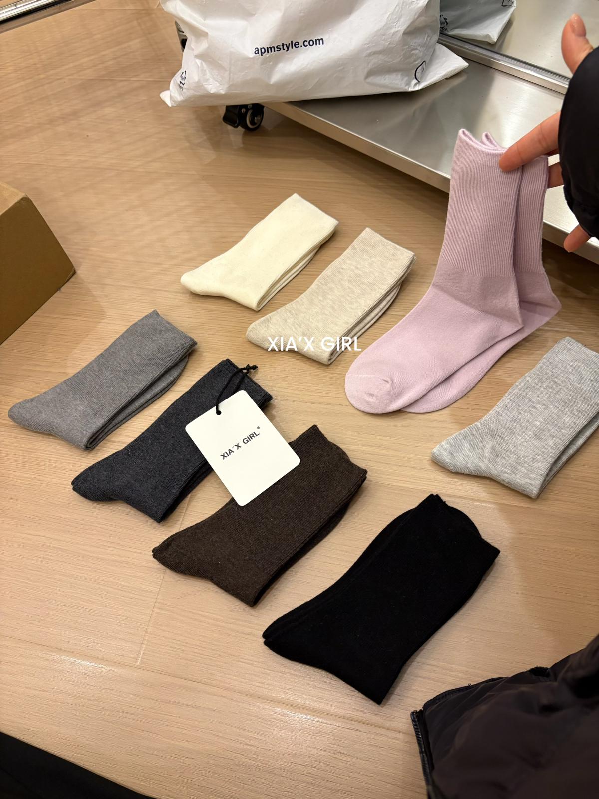 【C7857】純色羊毛保暖發熱襪新款舒適韓系簡約洋氣中筒堆堆襪襪子