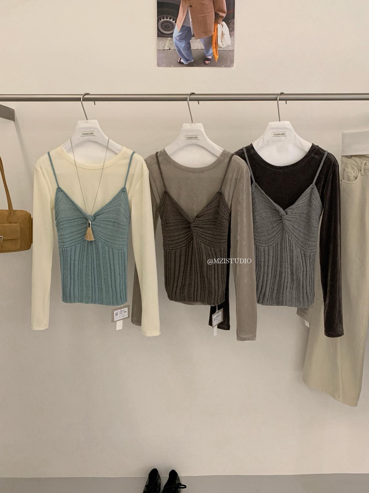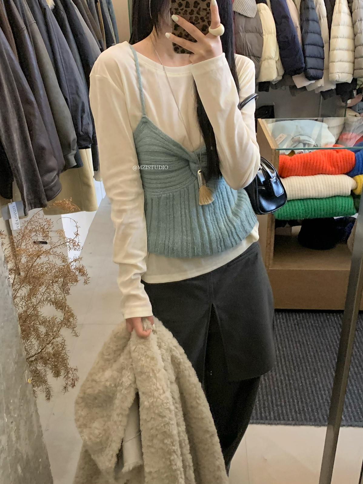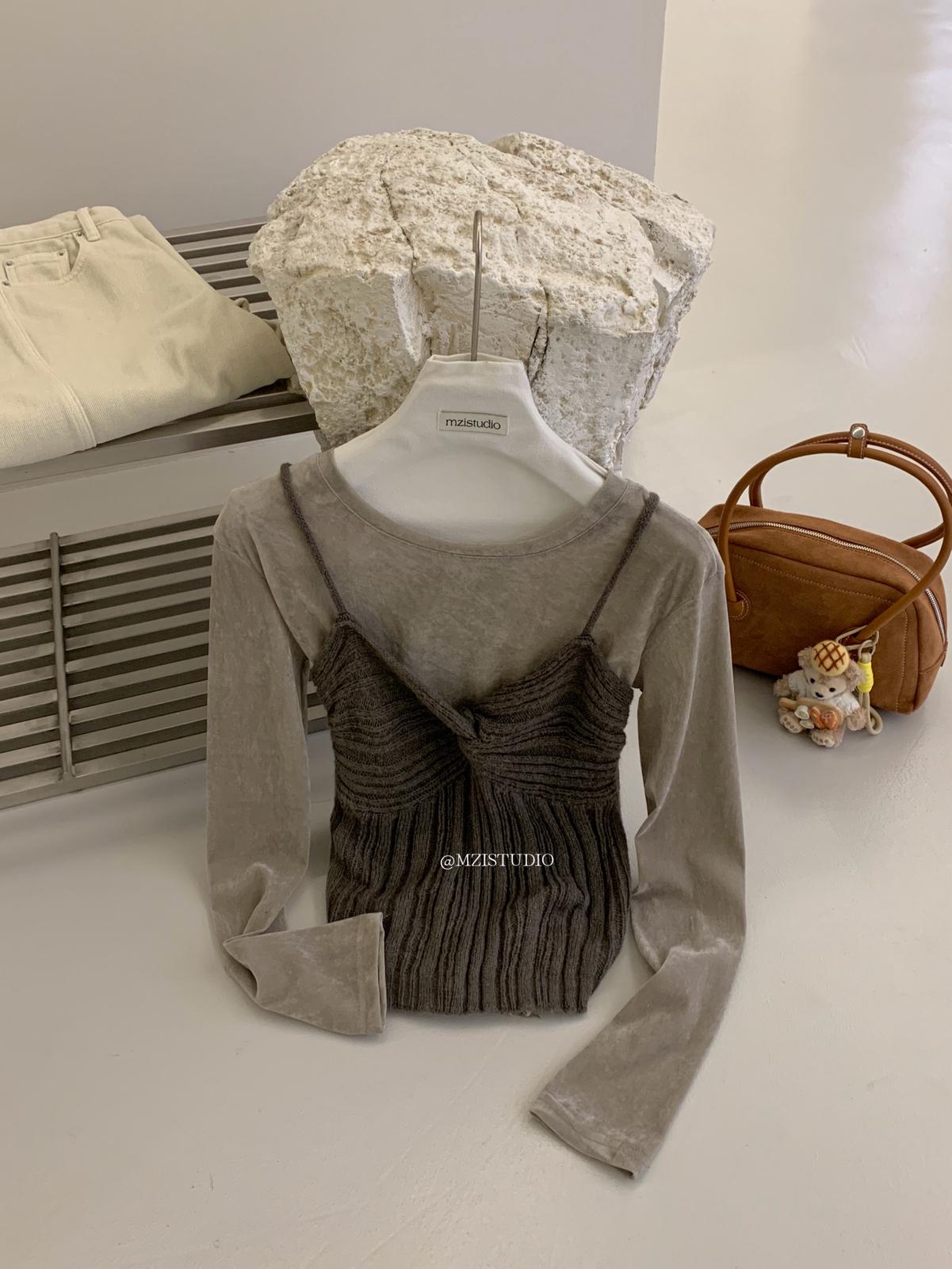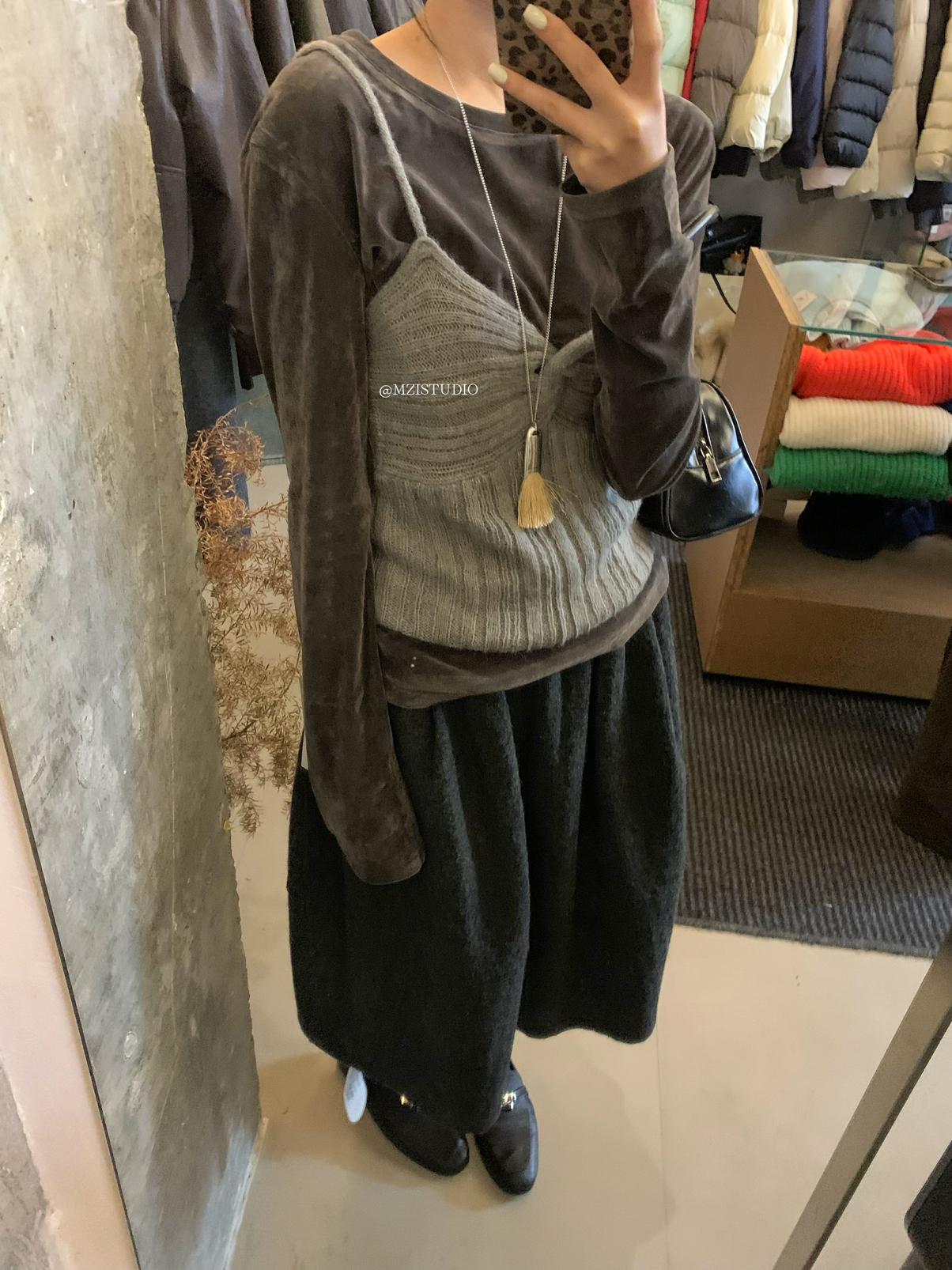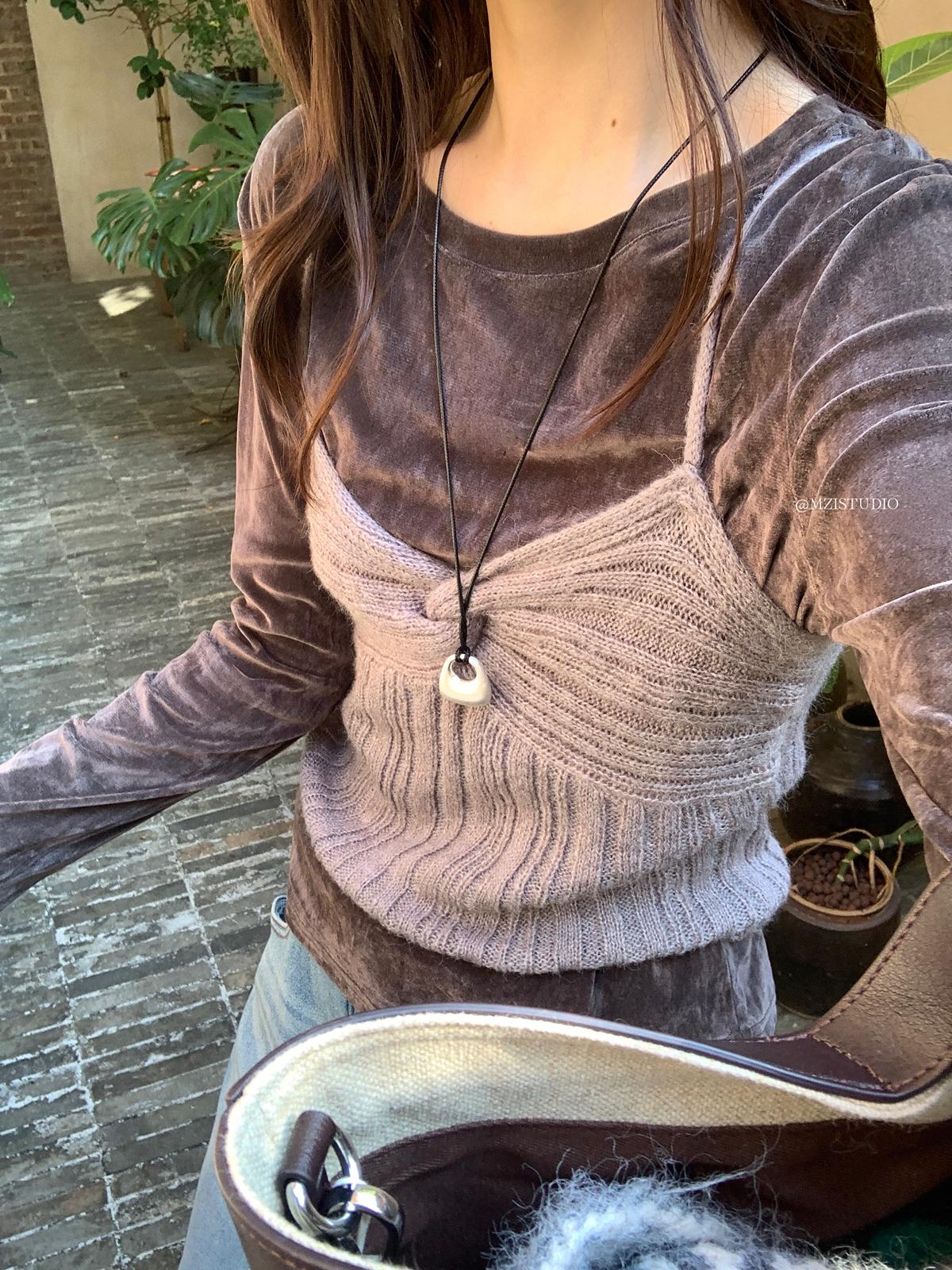 【C7904】顯露精緻釋放氣質韓系針織修身顯瘦背心+皮絨貼身套頭打底衫套裝