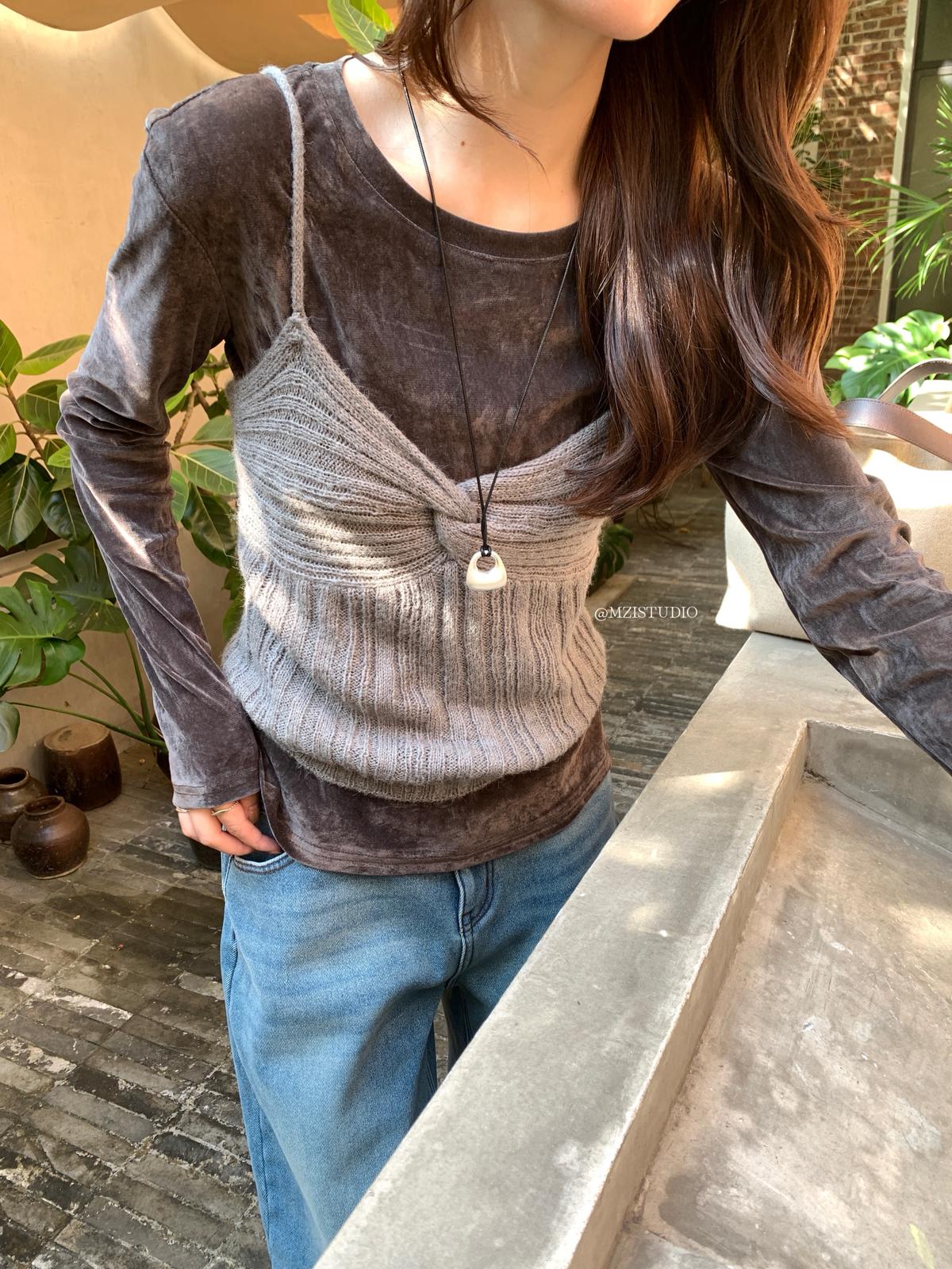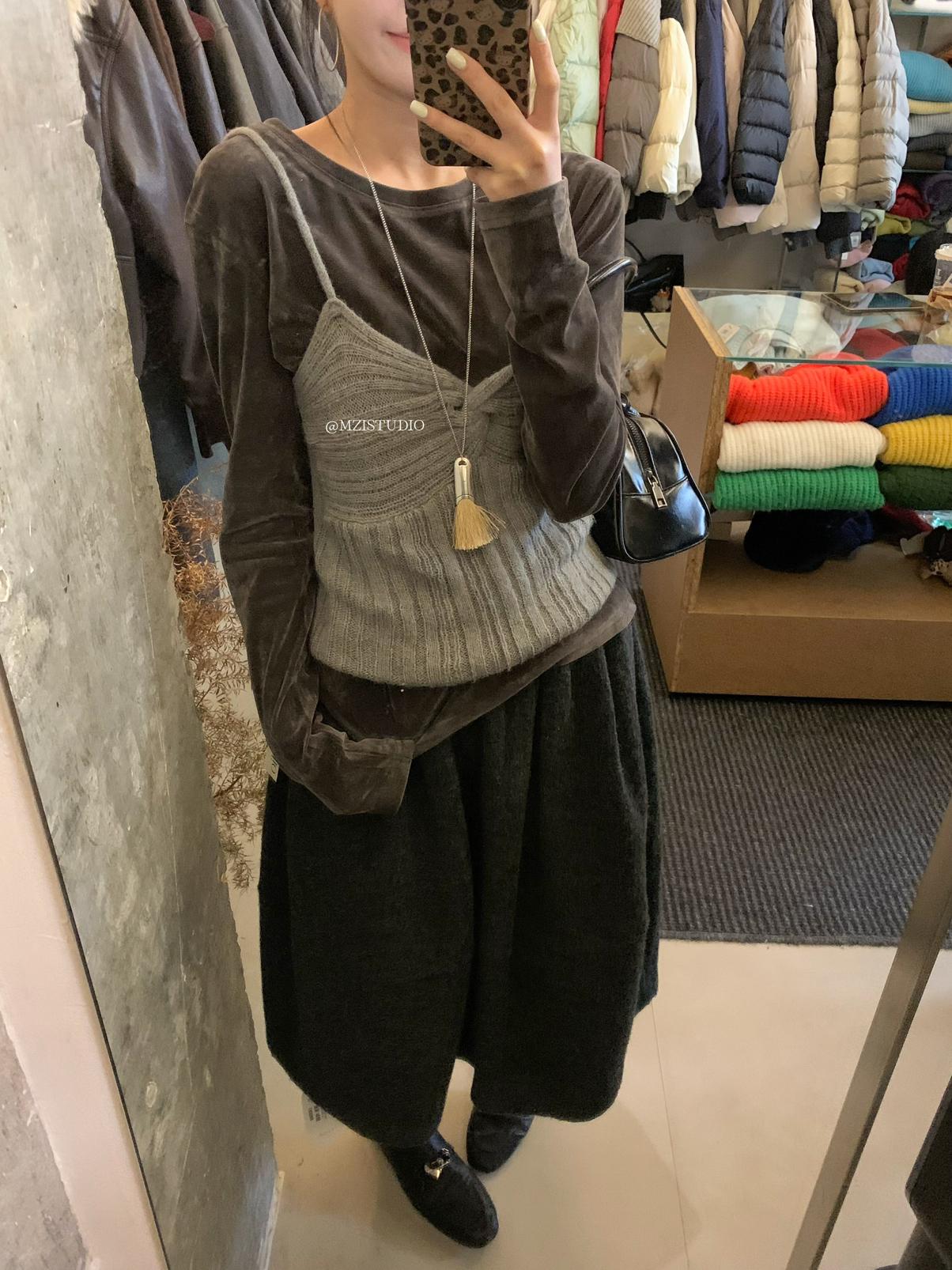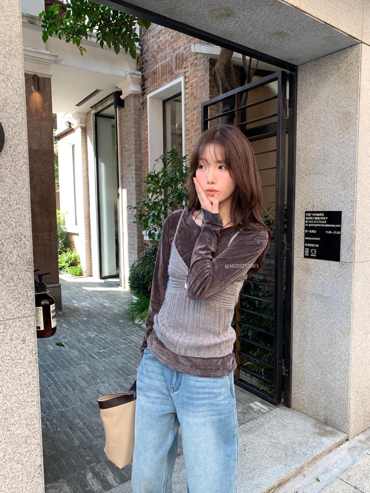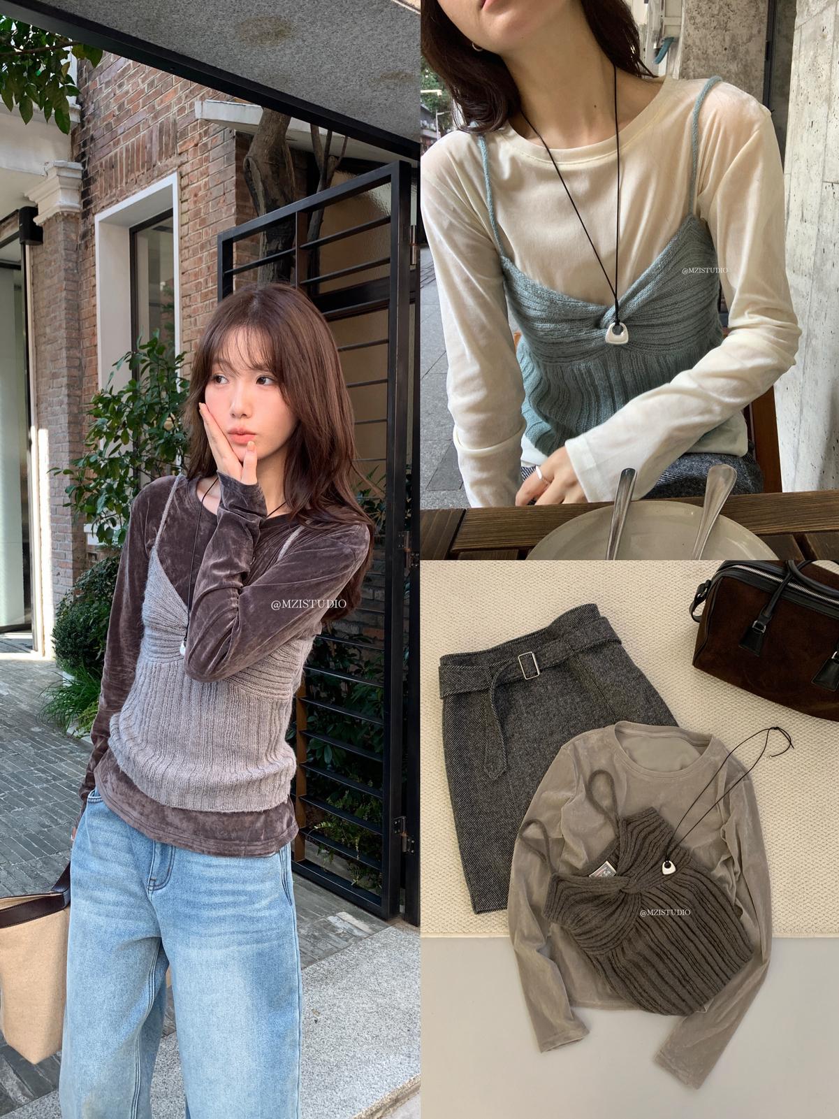 【C7904】顯露精緻釋放氣質韓系針織修身顯瘦背心+皮絨貼身套頭打底衫套裝