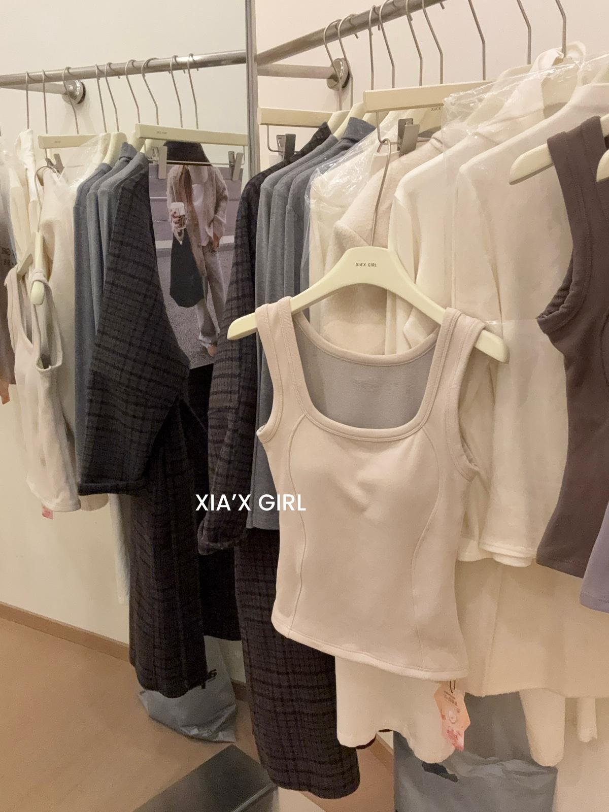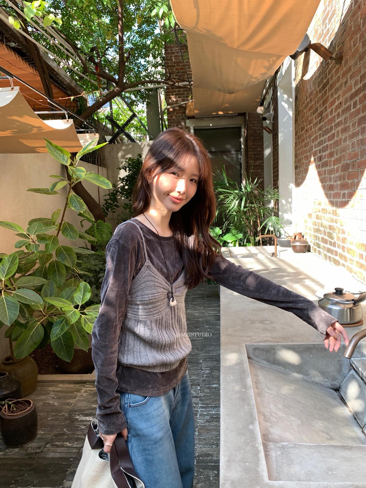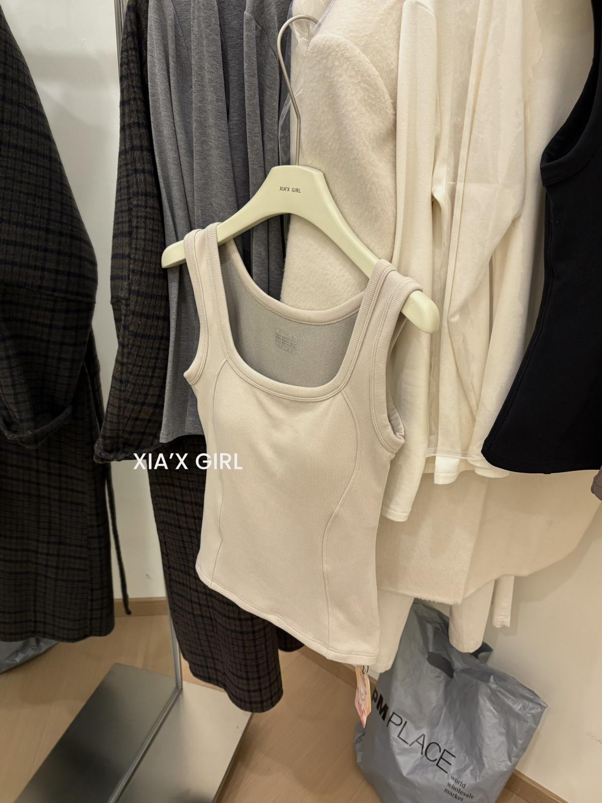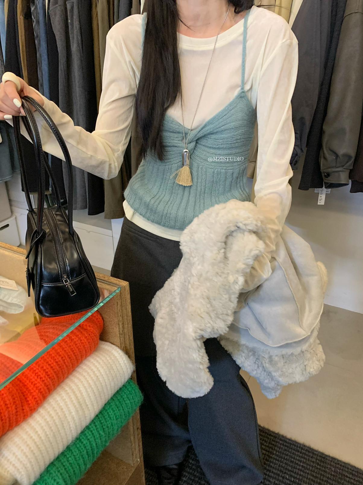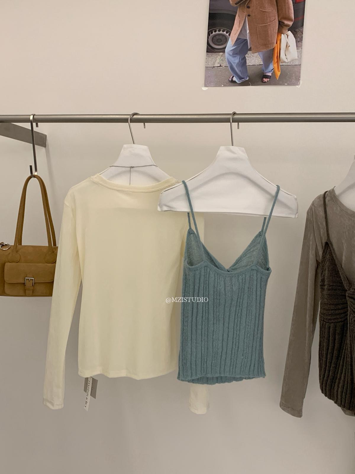 【C7904】顯露精緻釋放氣質韓系針織修身顯瘦背心+皮絨貼身套頭打底衫套裝
