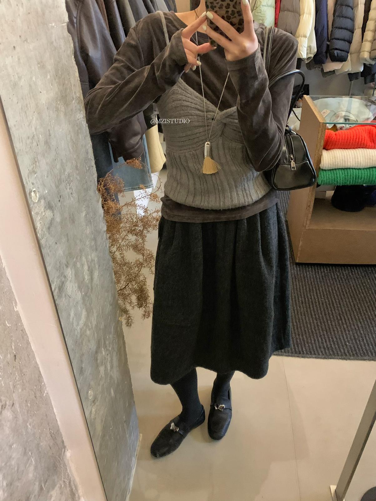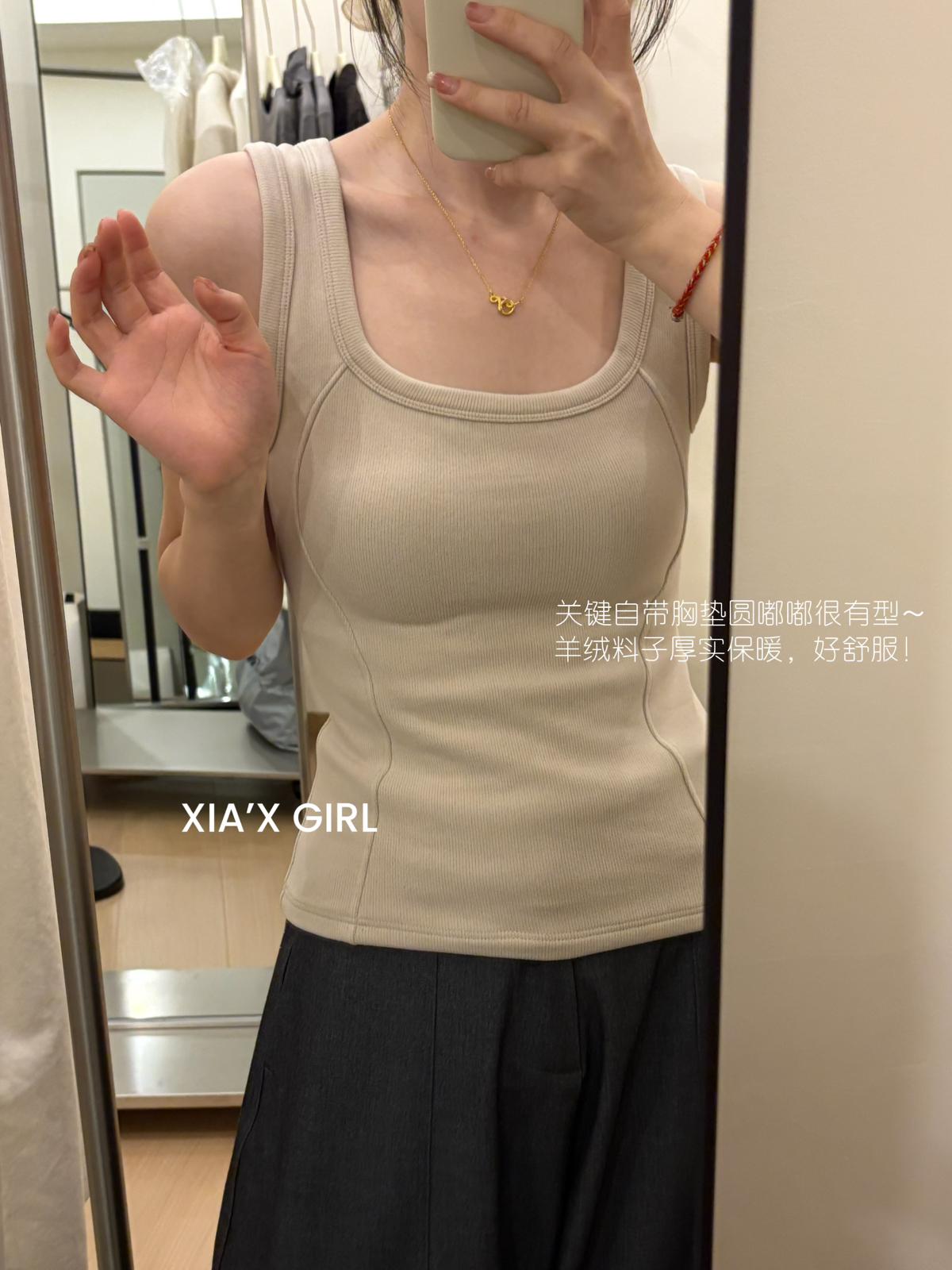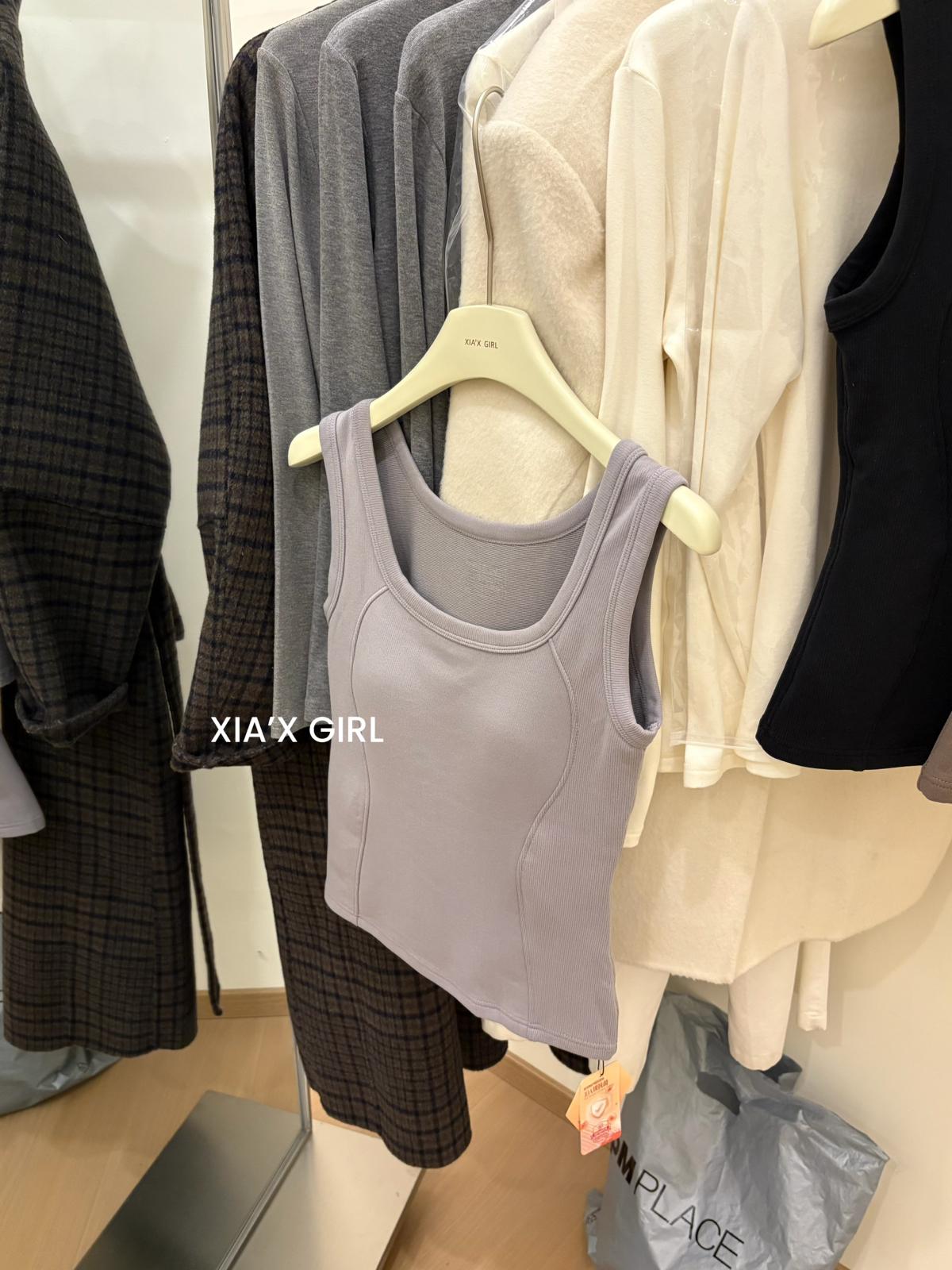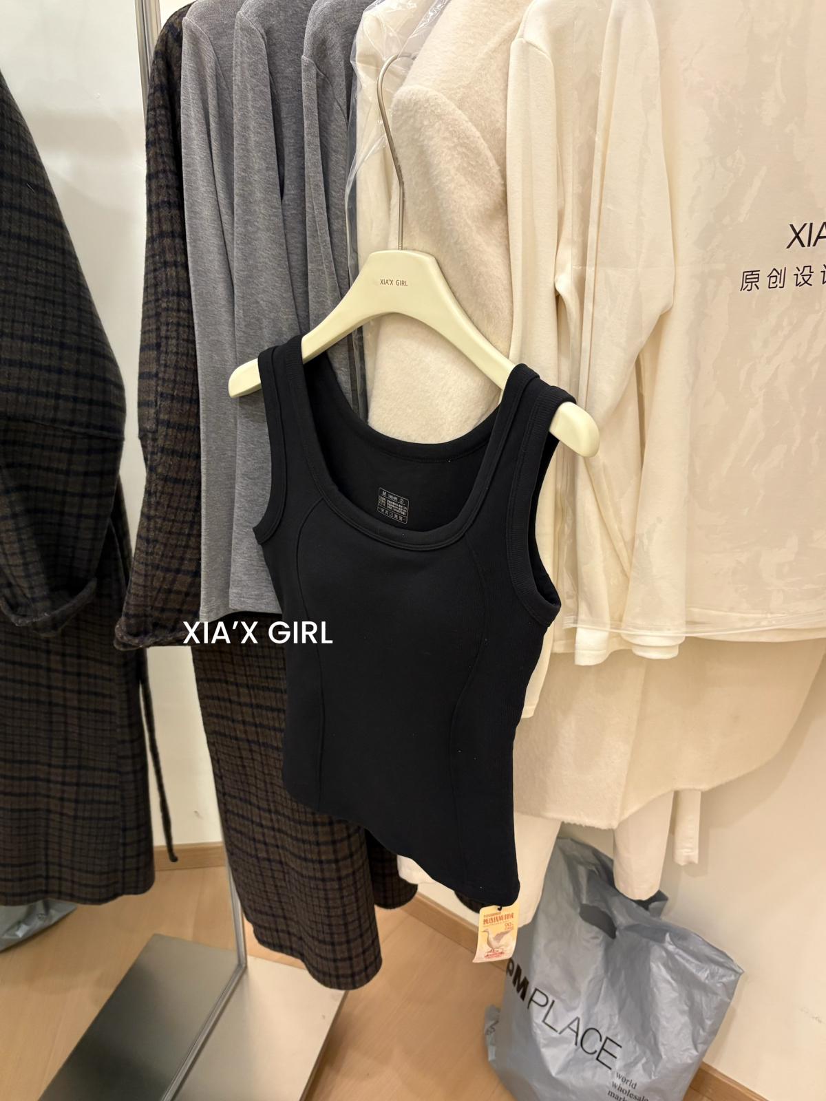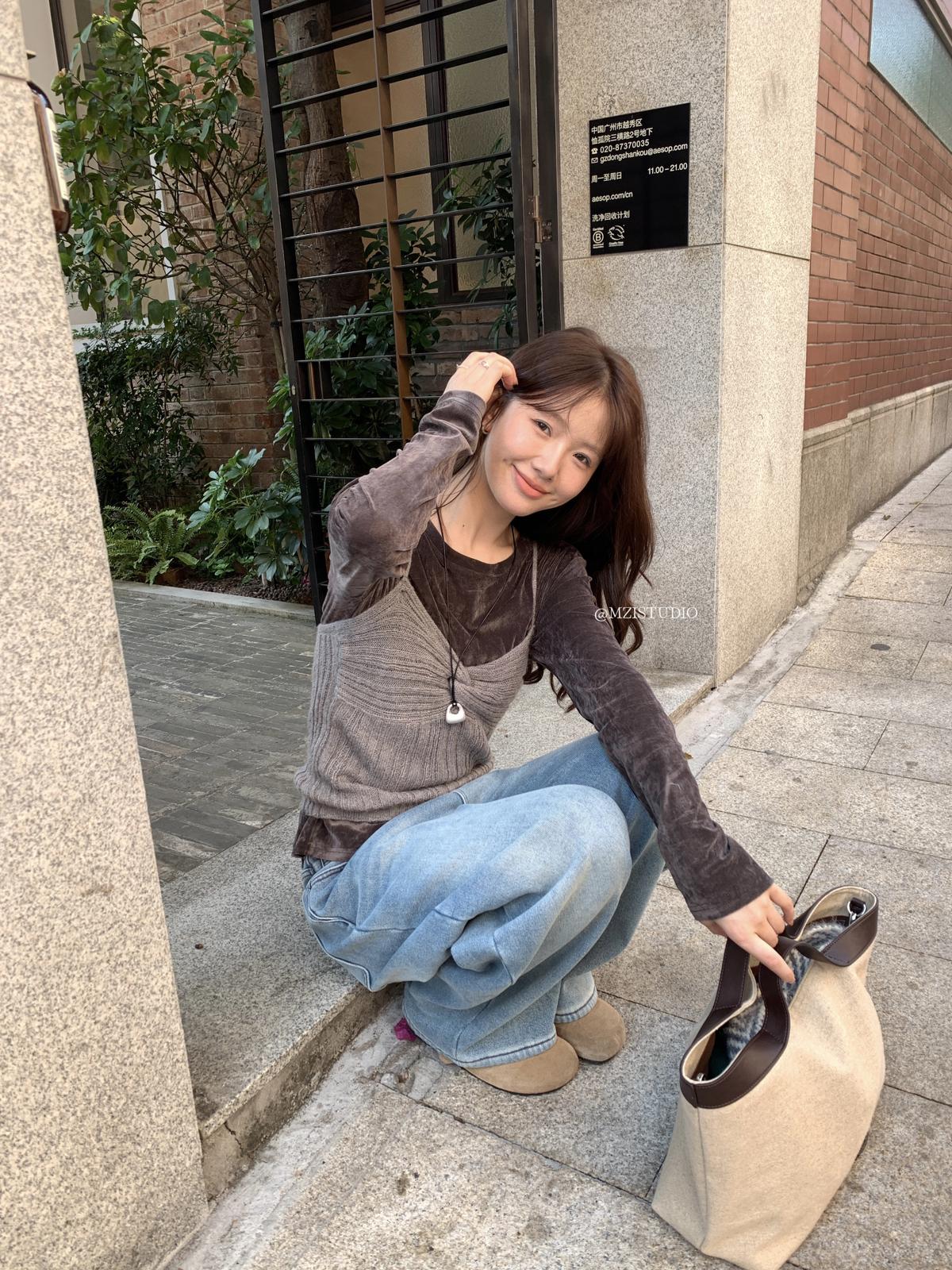 【C7904】顯露精緻釋放氣質韓系針織修身顯瘦背心+皮絨貼身套頭打底衫套裝