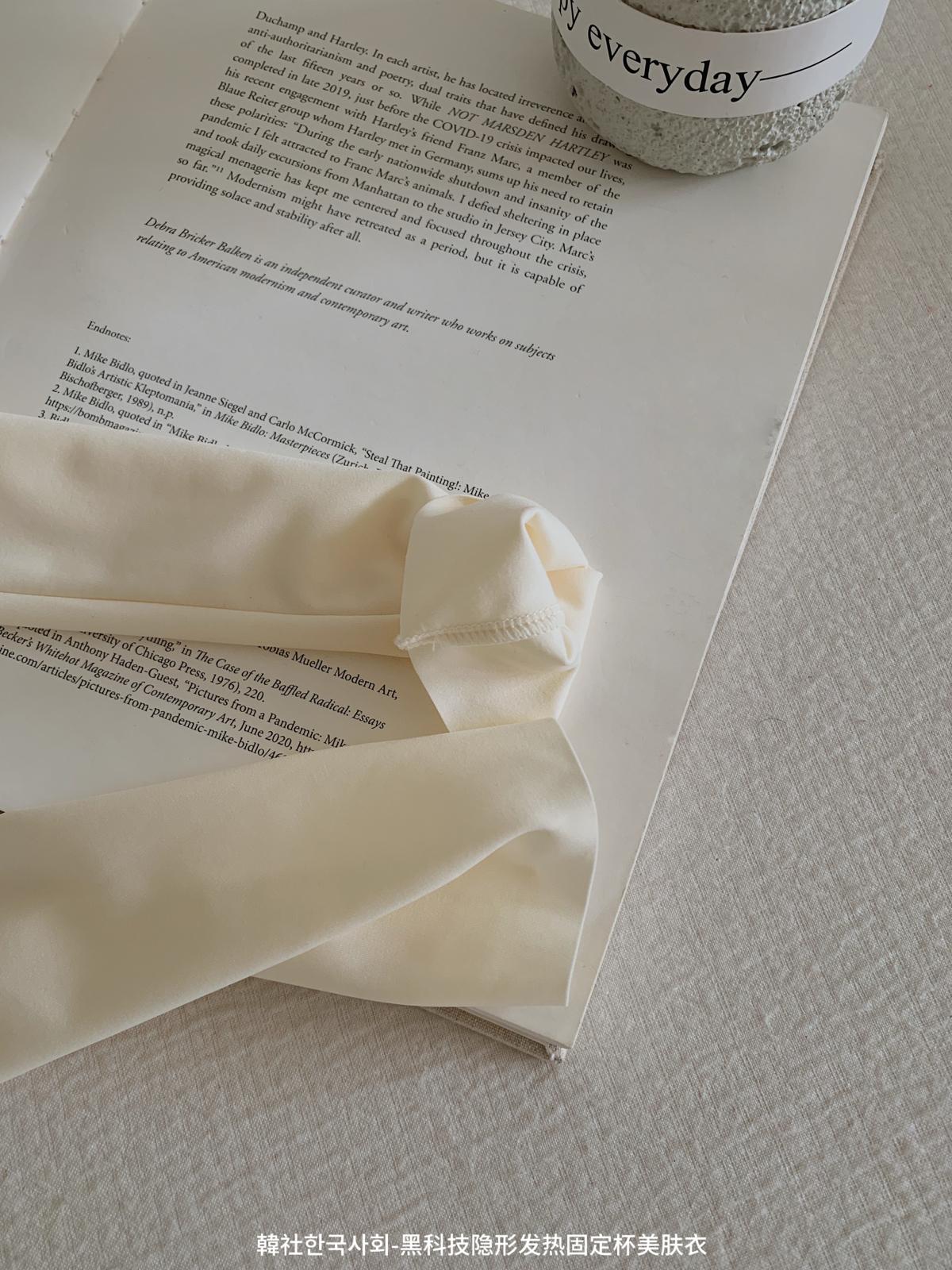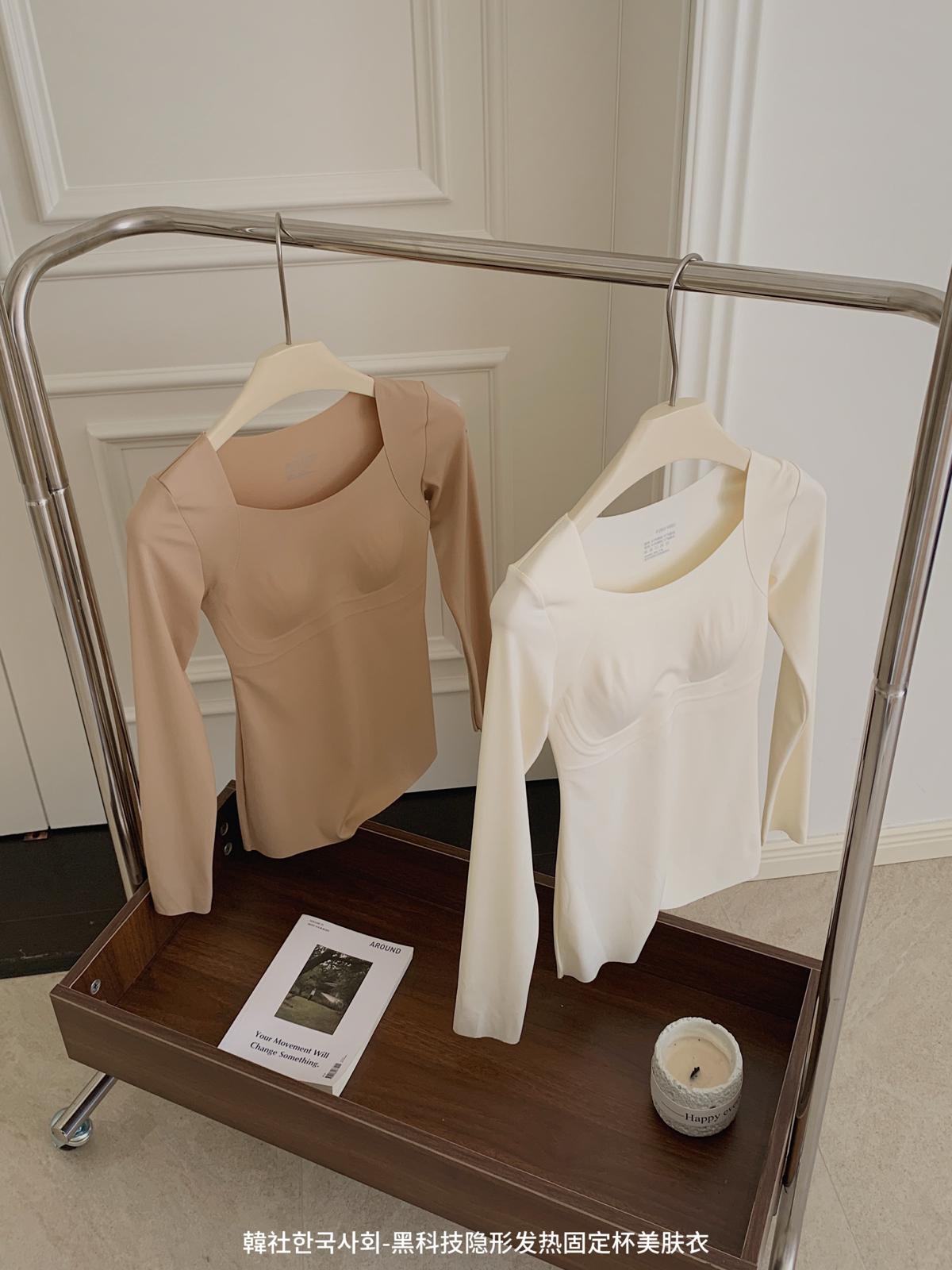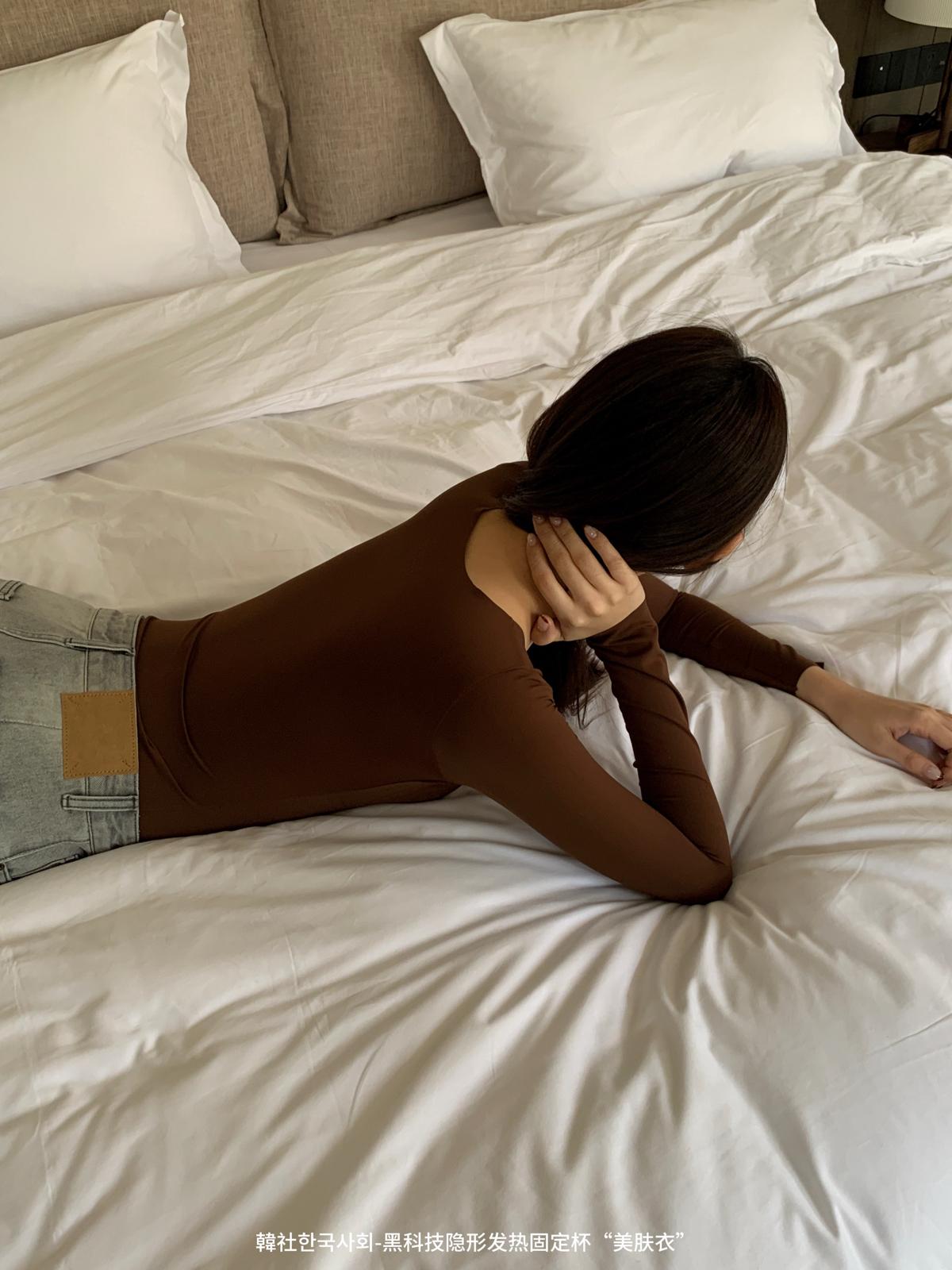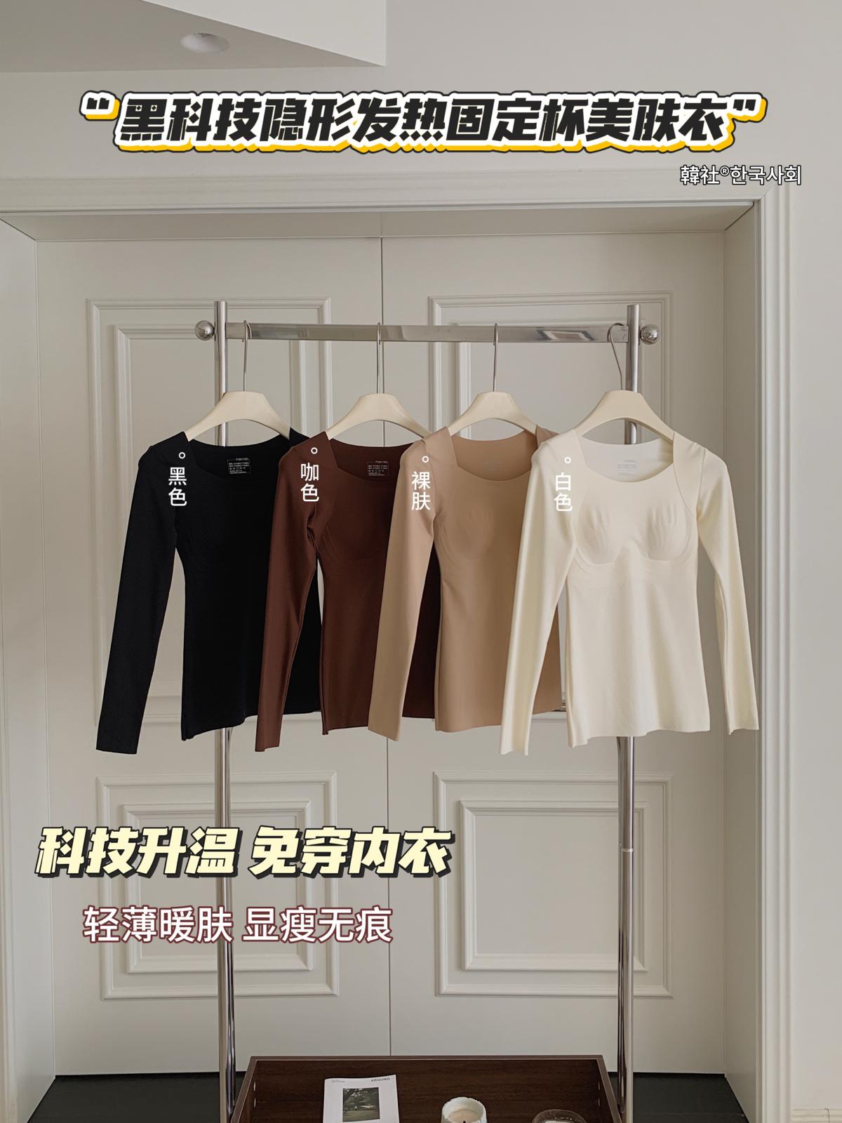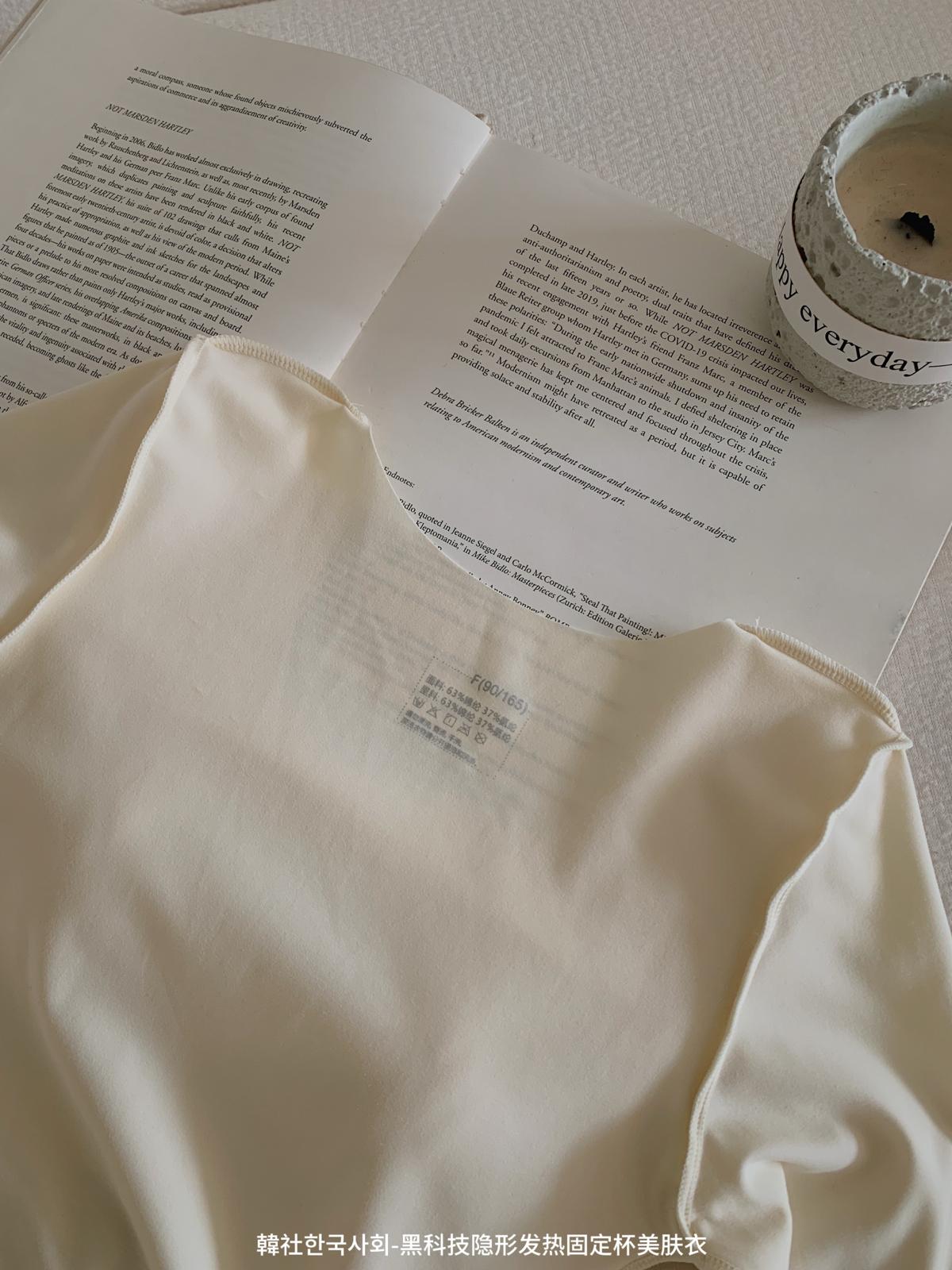 【C7860】黑科技隱形發熱固定杯美膚衣女秋冬舒適純色圓領長袖內搭上衣保暖衣