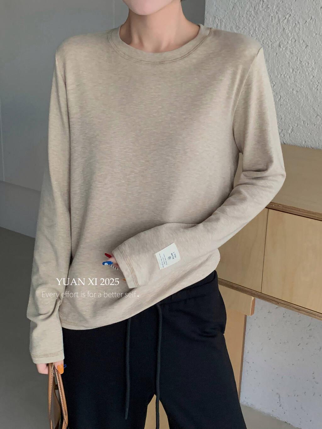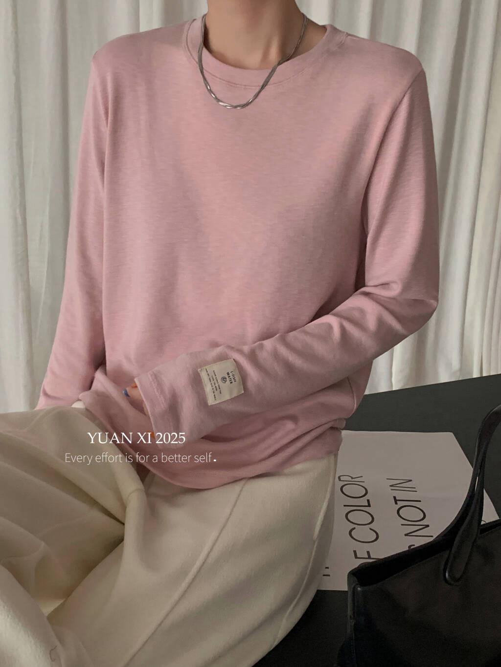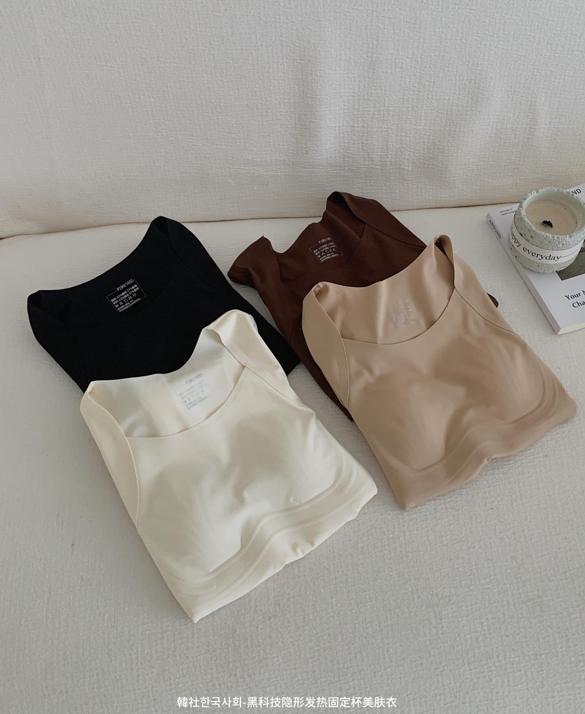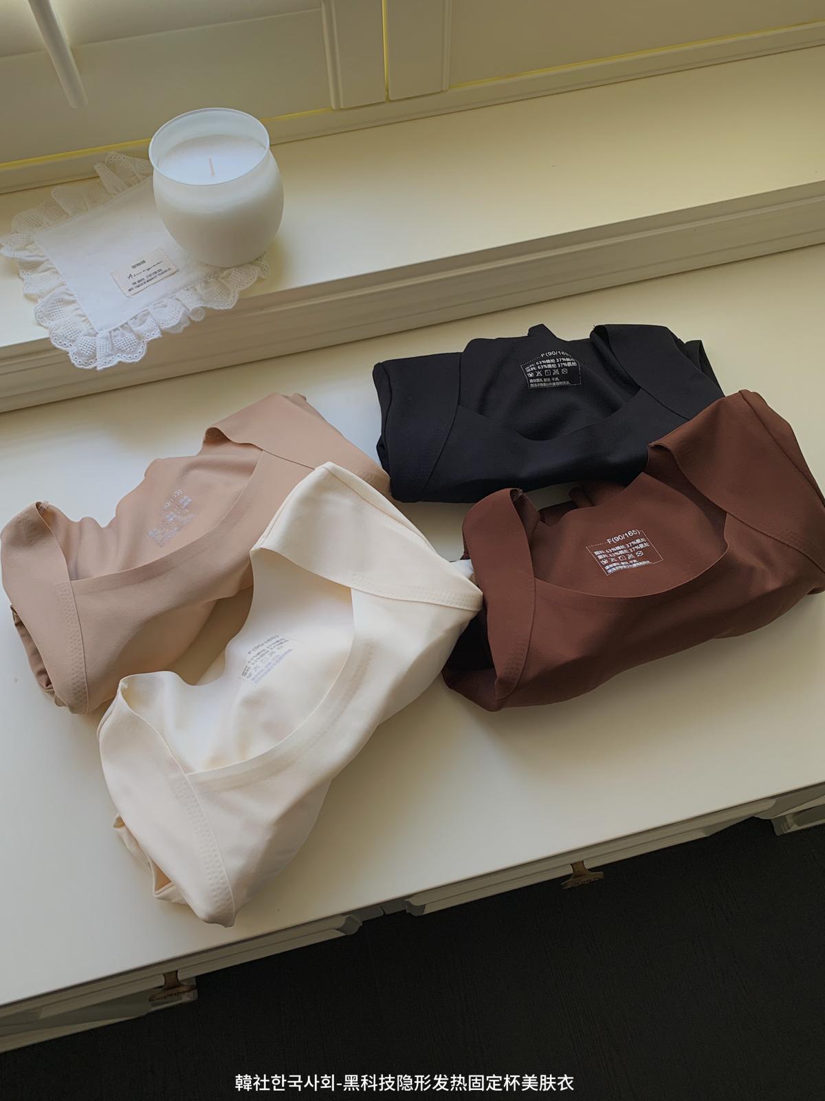 【C7860】黑科技隱形發熱固定杯美膚衣女秋冬舒適純色圓領長袖內搭上衣保暖衣