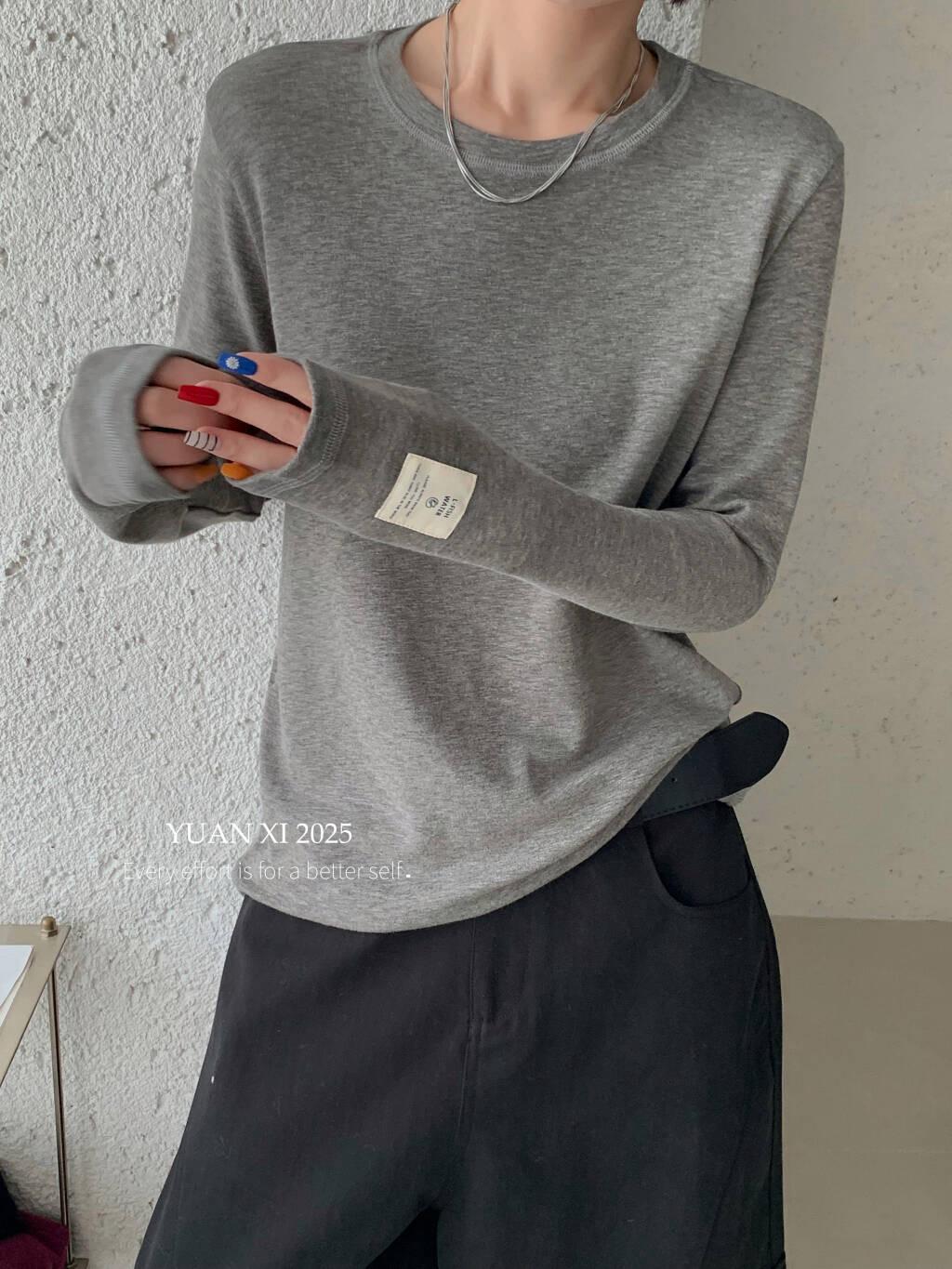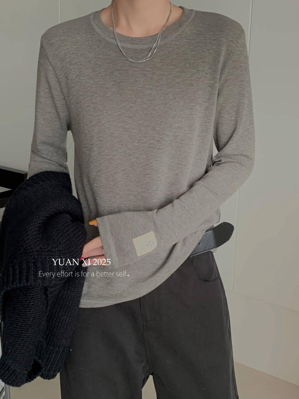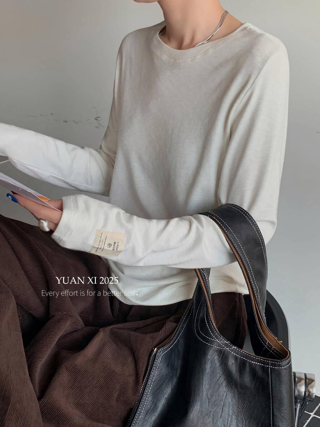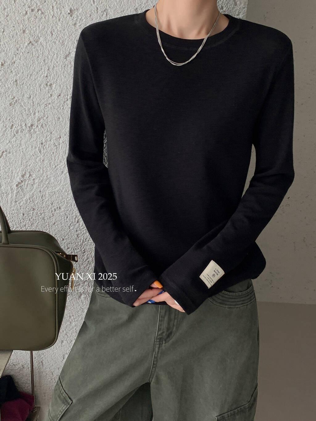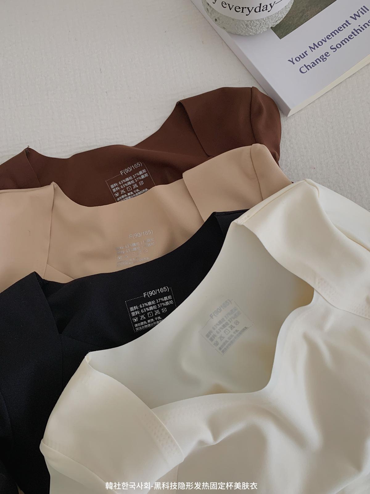 【C7860】黑科技隱形發熱固定杯美膚衣女秋冬舒適純色圓領長袖內搭上衣保暖衣