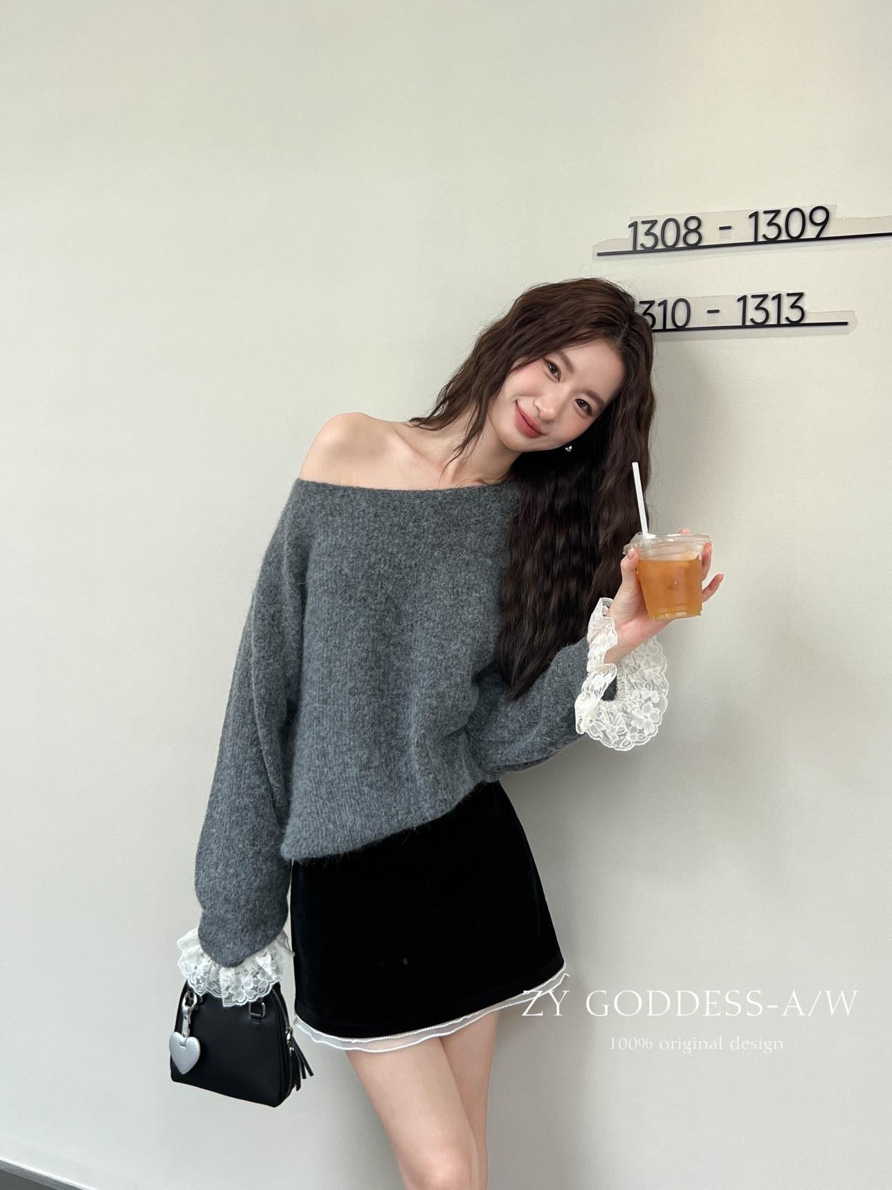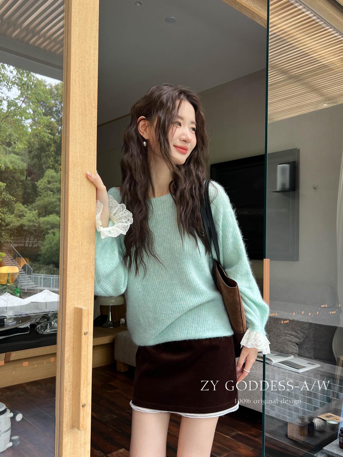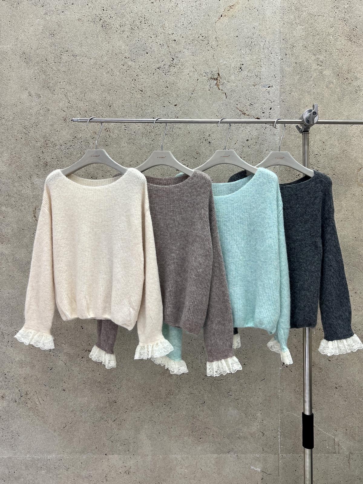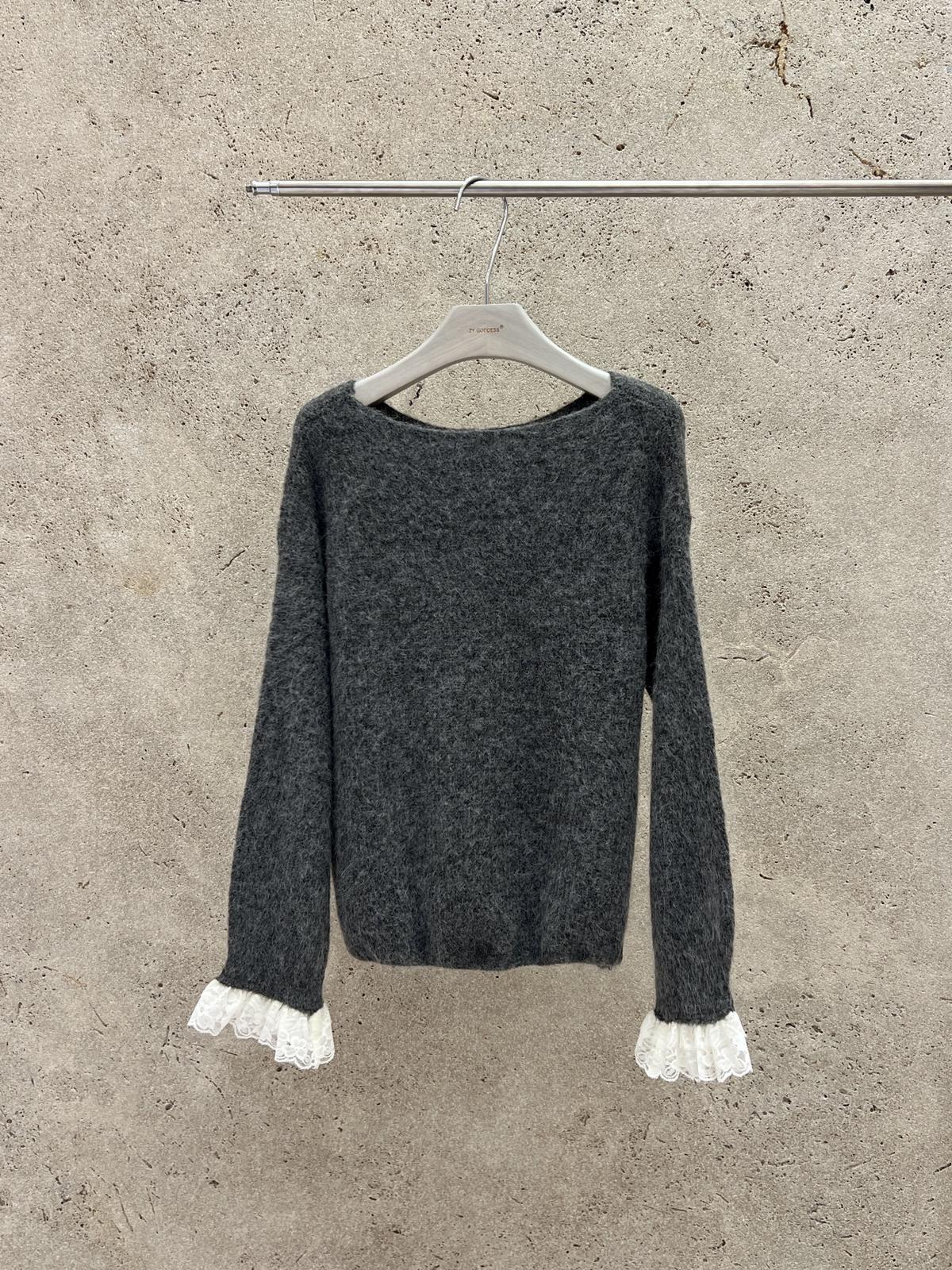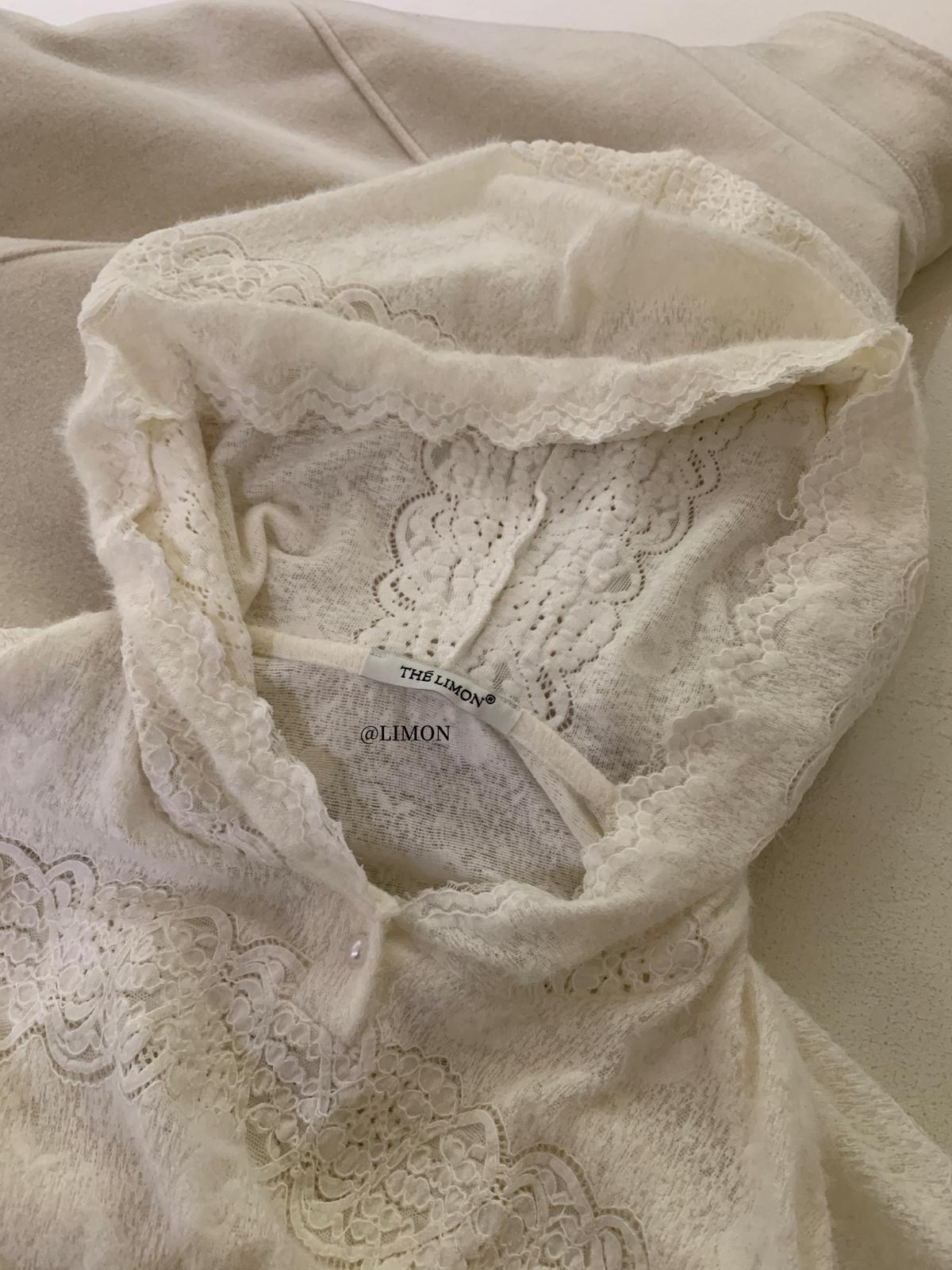 【C7916】軟糯仙系 · 羊毛兔毛甜美減齡min系拼接蕾絲袖口氛圍感保暖毛衣(含19%羊毛)(16%兔毛)