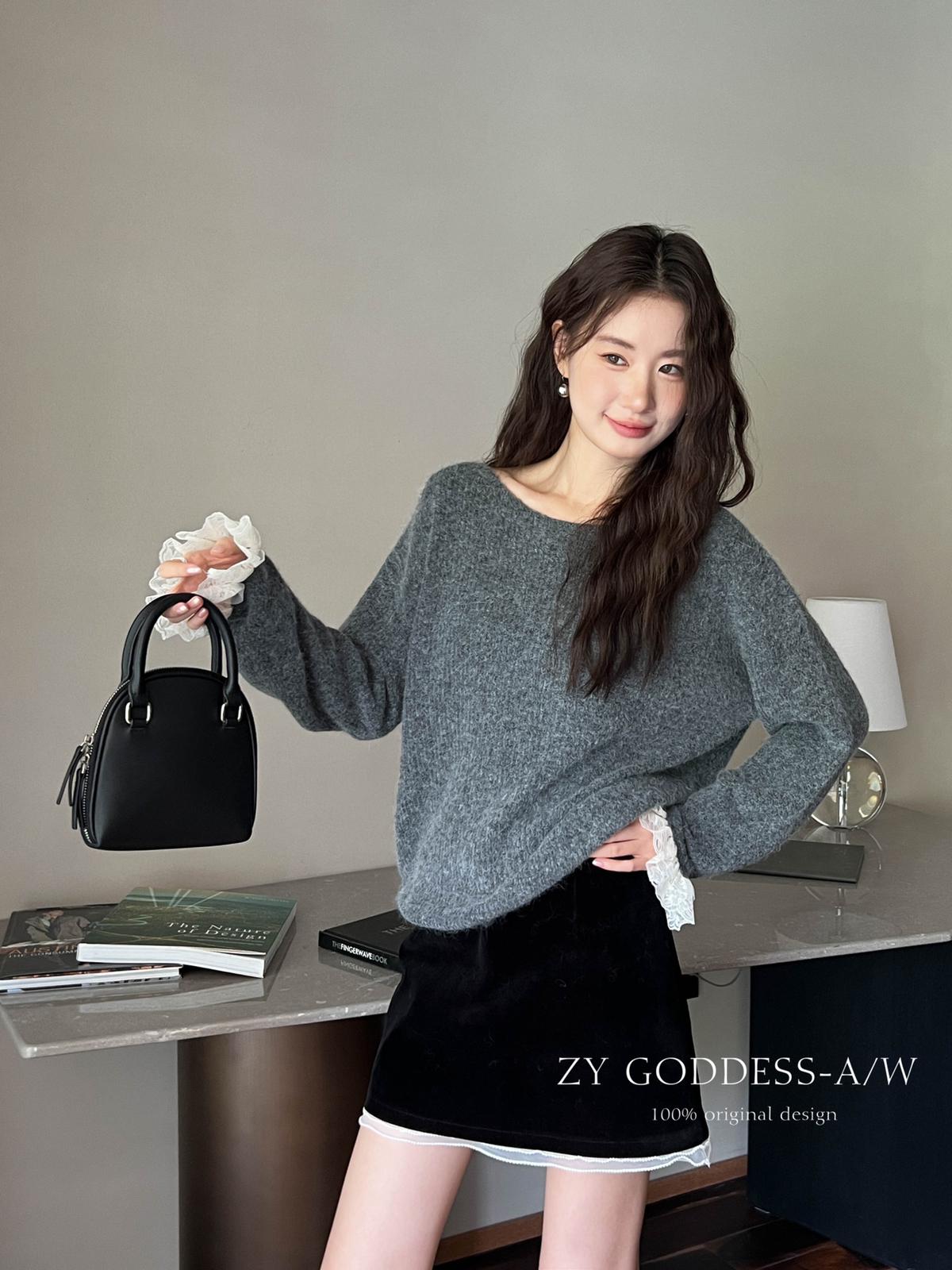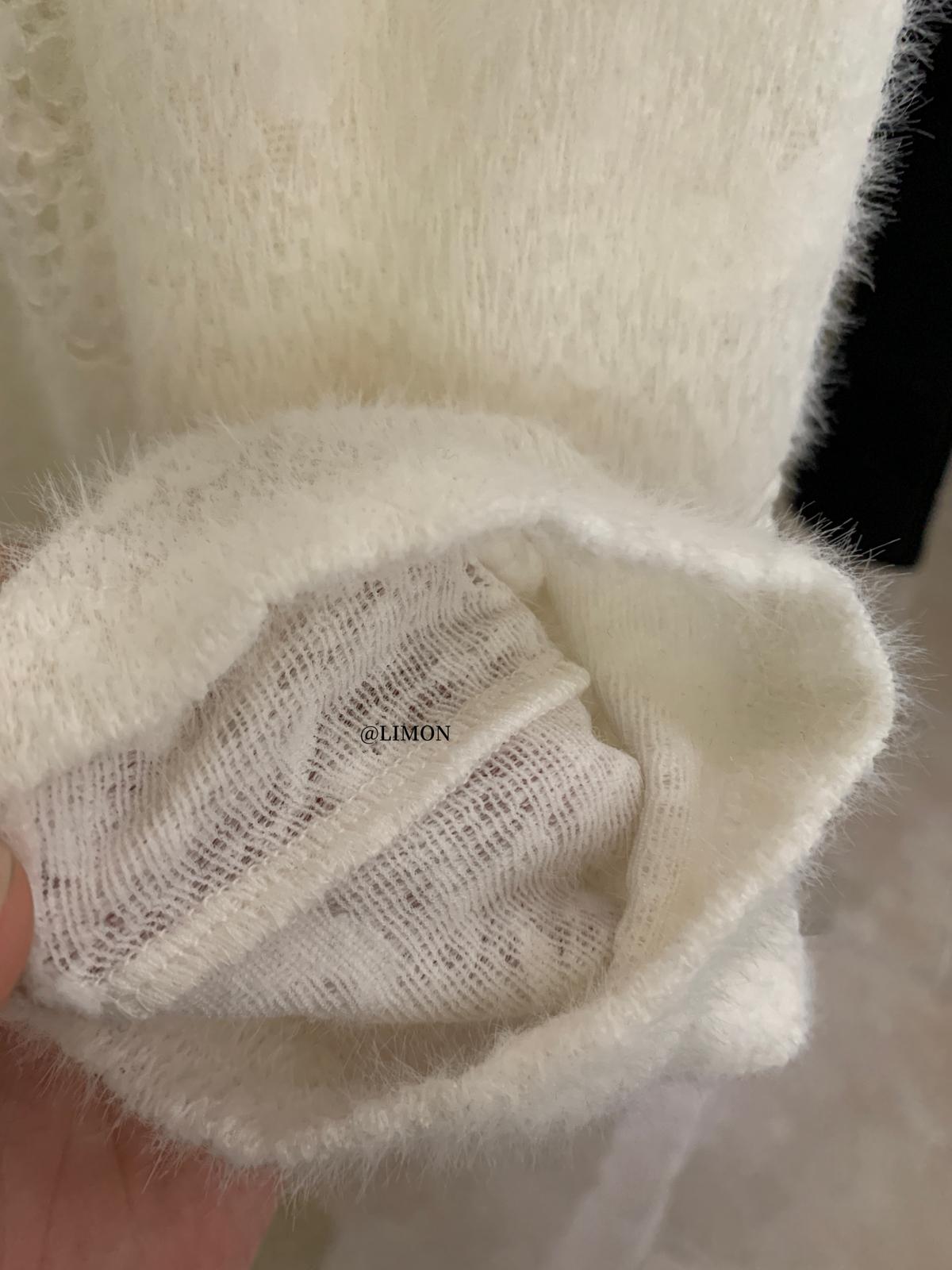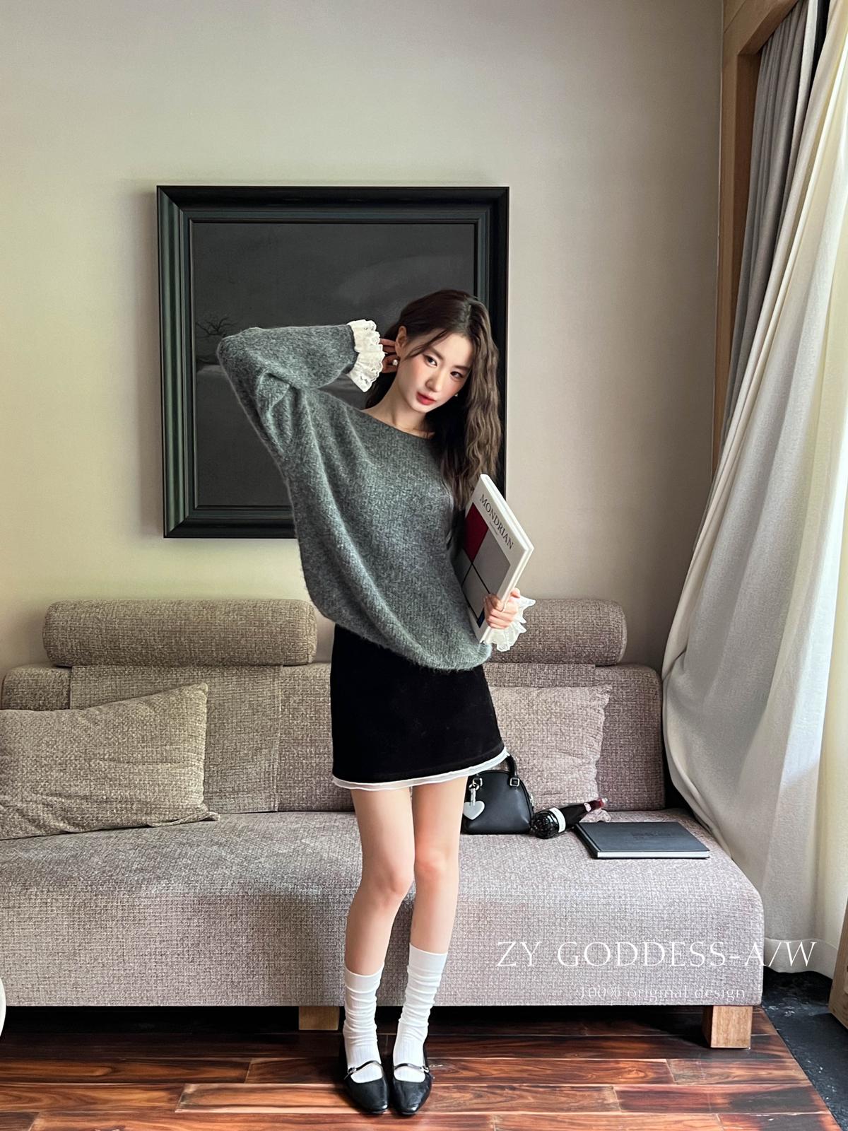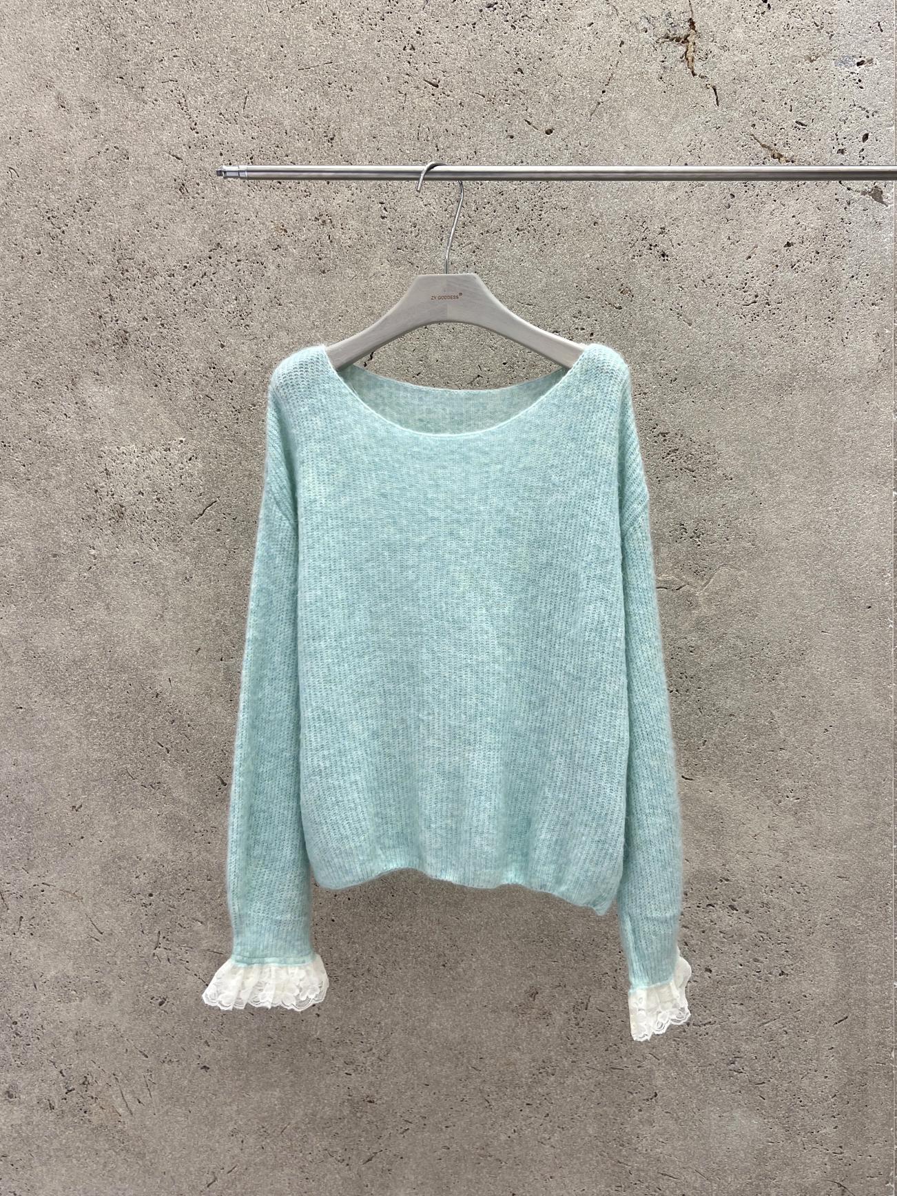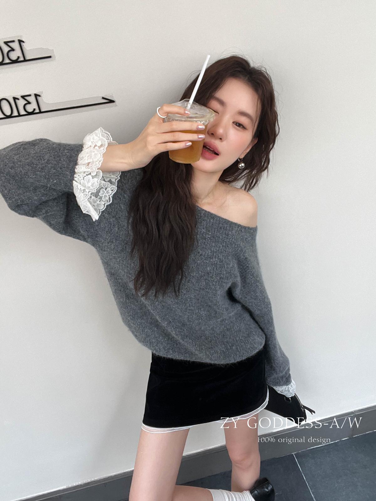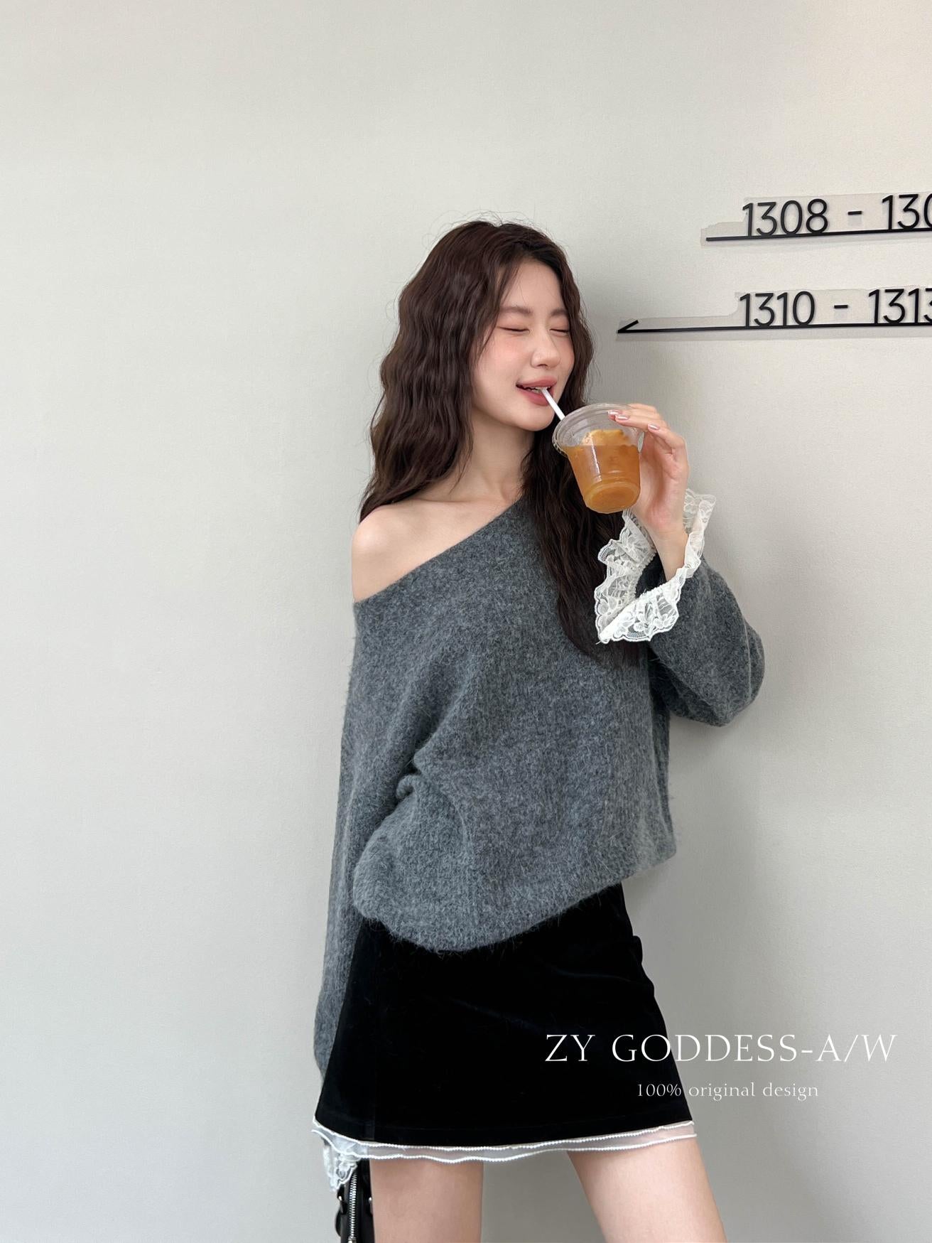 【C7916】軟糯仙系 · 羊毛兔毛甜美減齡min系拼接蕾絲袖口氛圍感保暖毛衣(含19%羊毛)(16%兔毛)