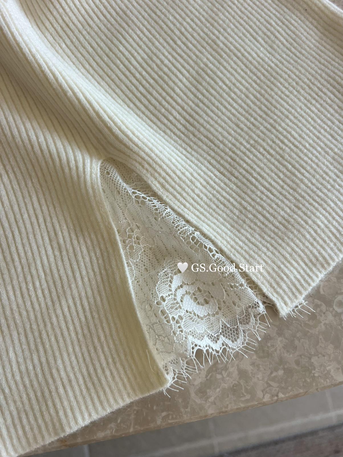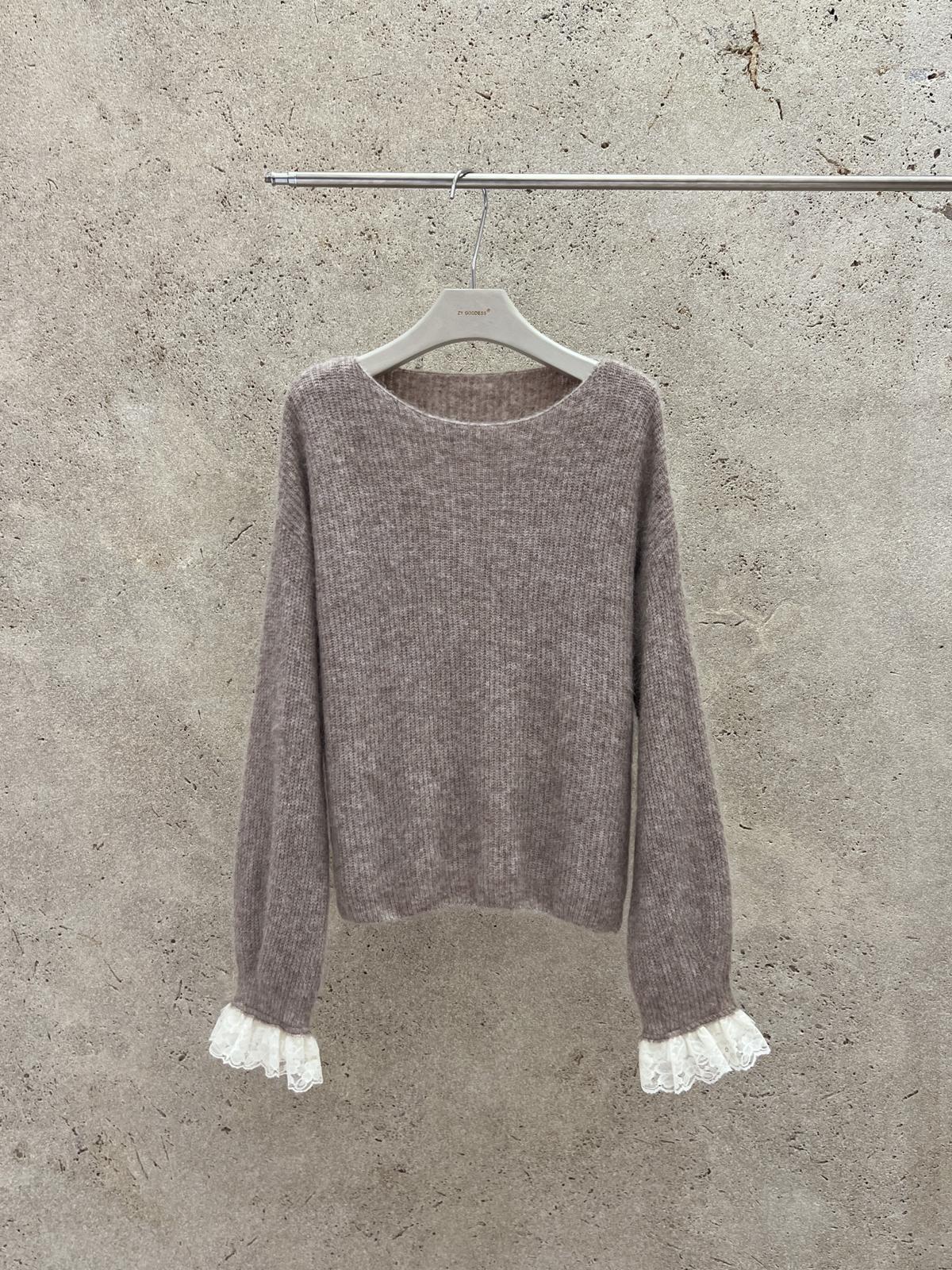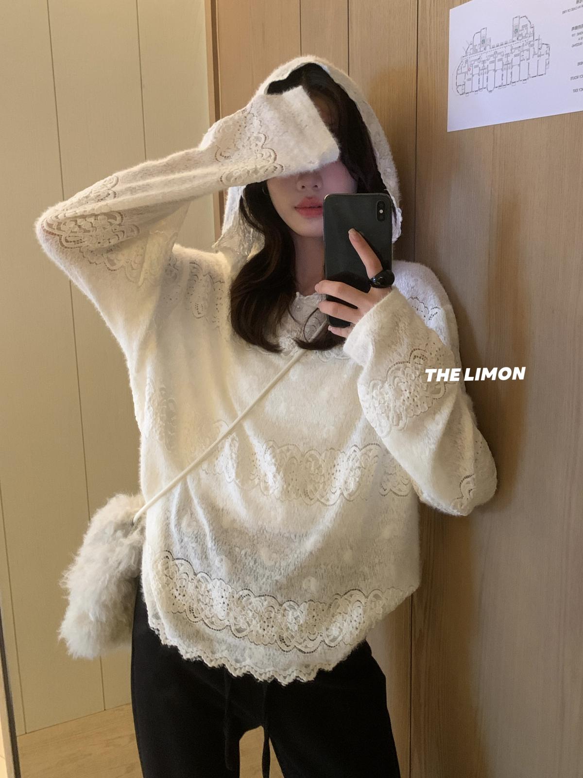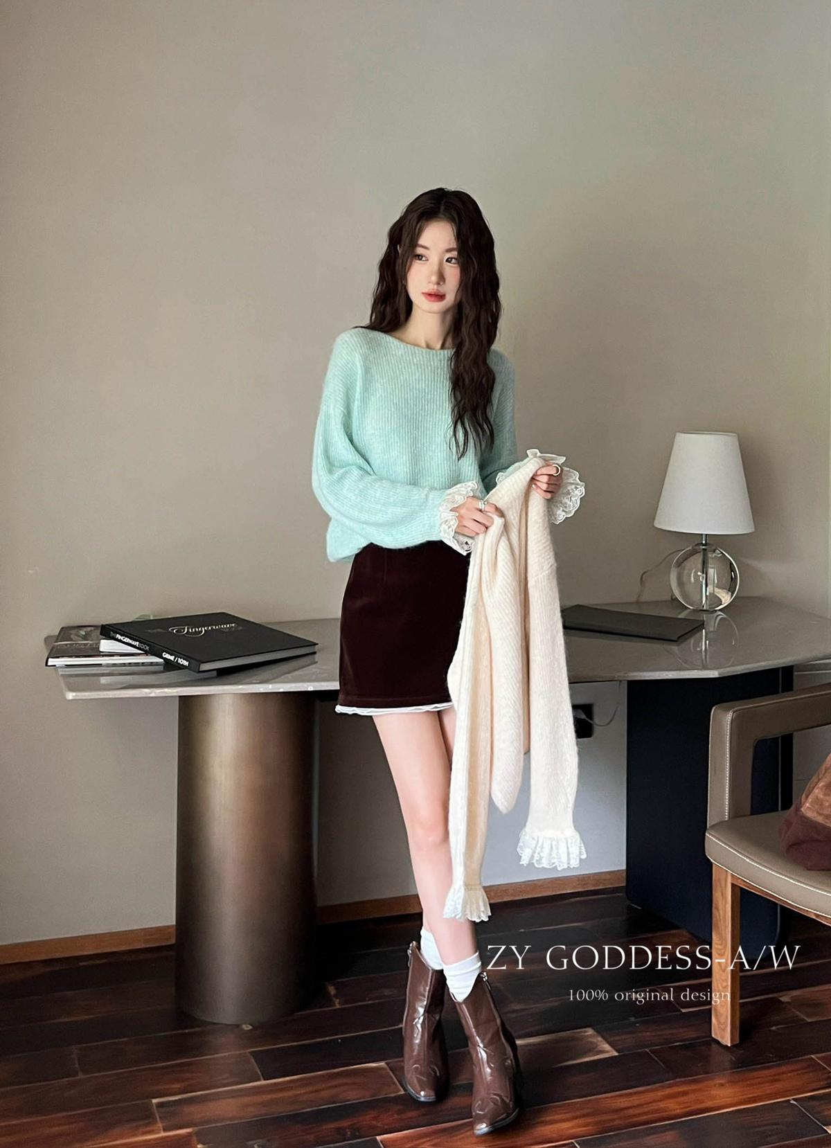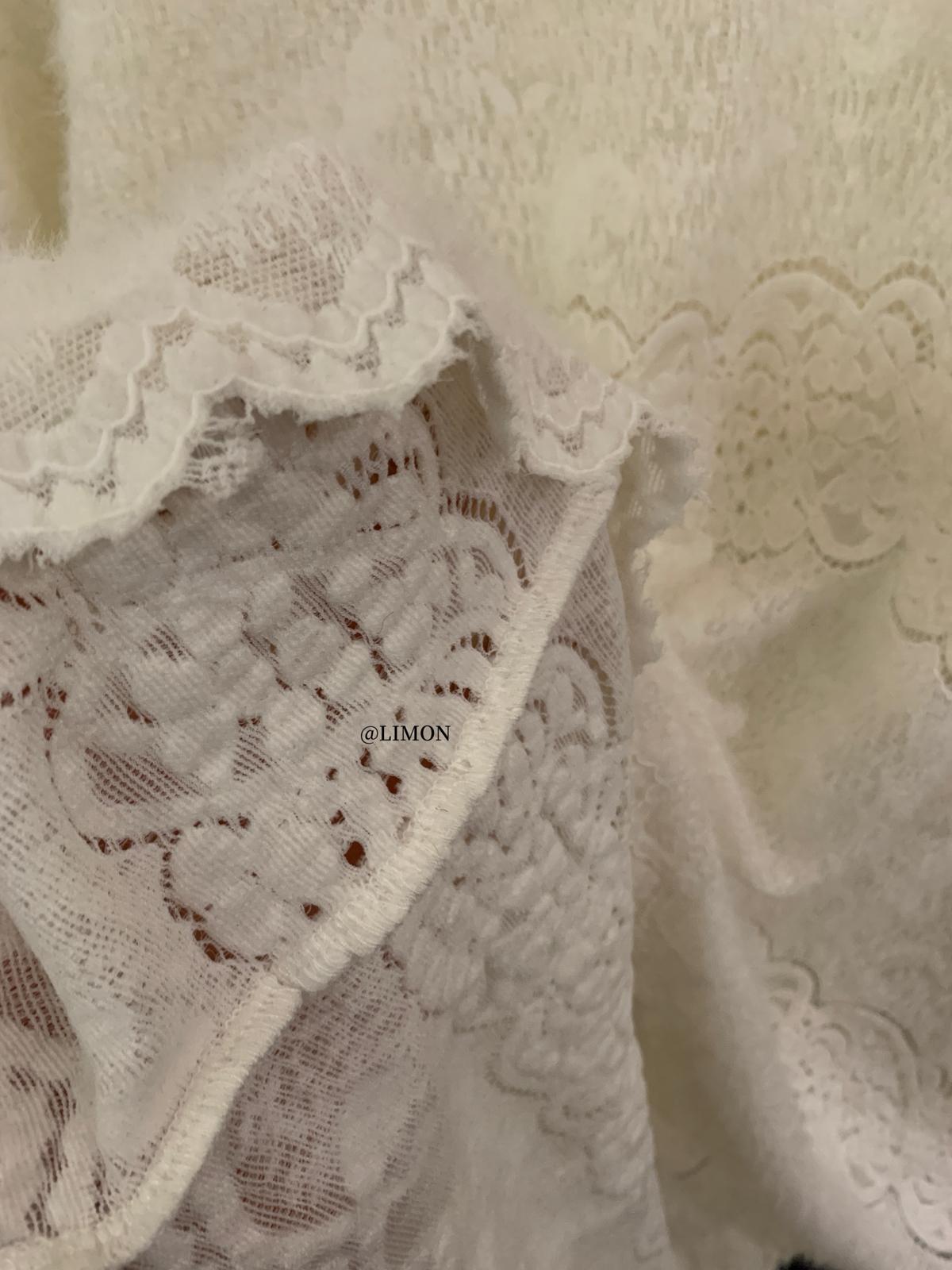 【C7916】軟糯仙系 · 羊毛兔毛甜美減齡min系拼接蕾絲袖口氛圍感保暖毛衣(含19%羊毛)(16%兔毛)