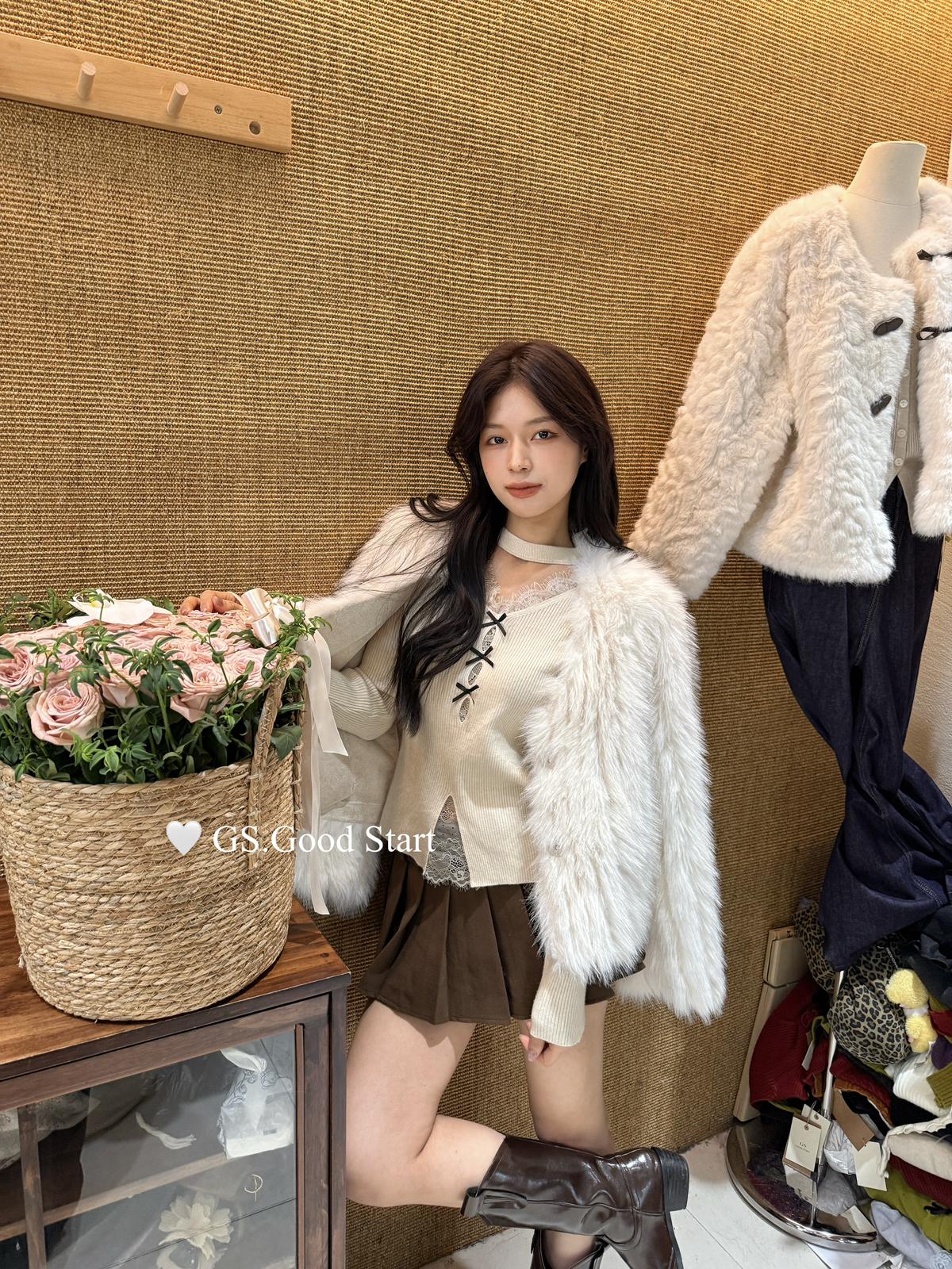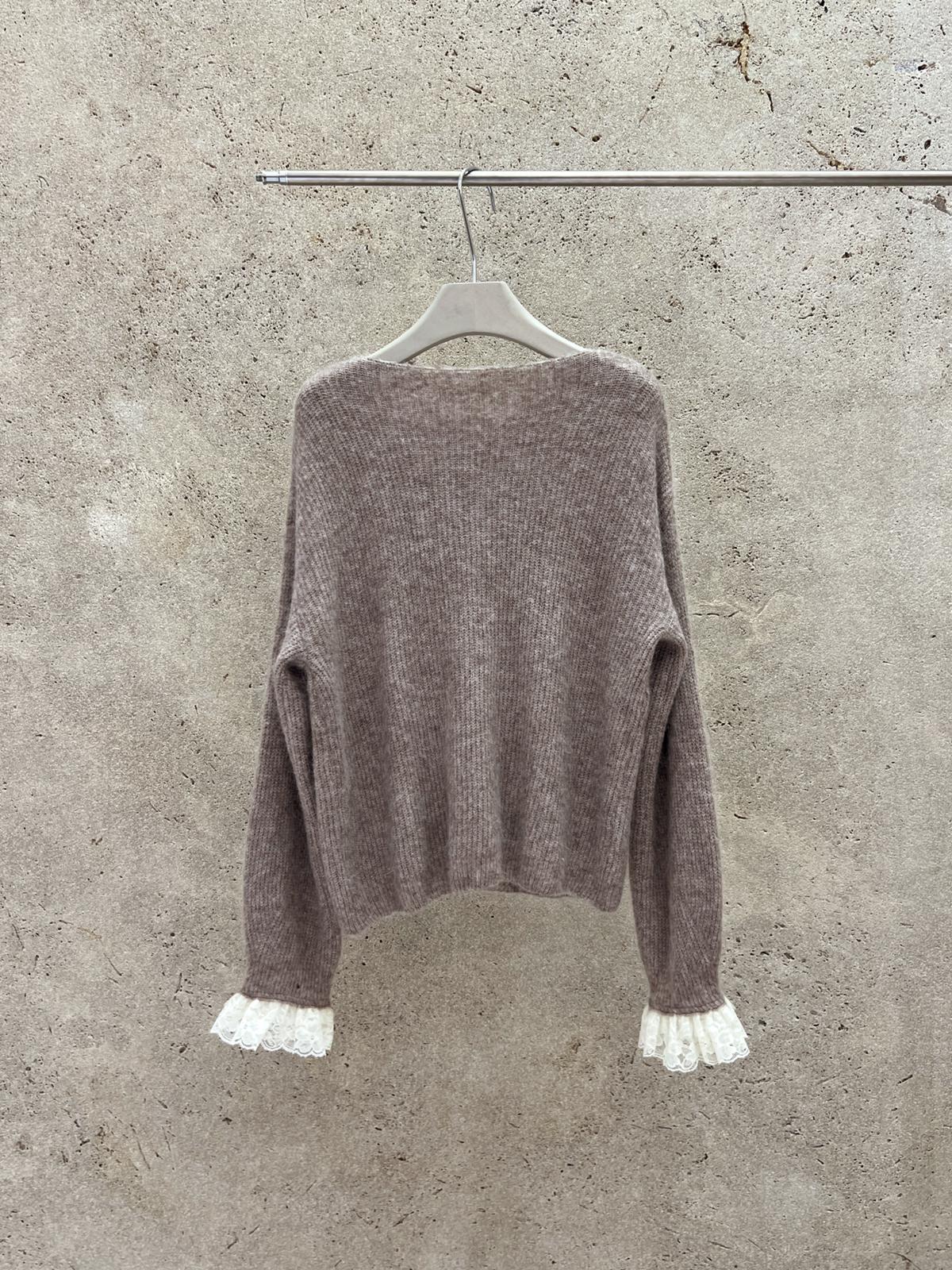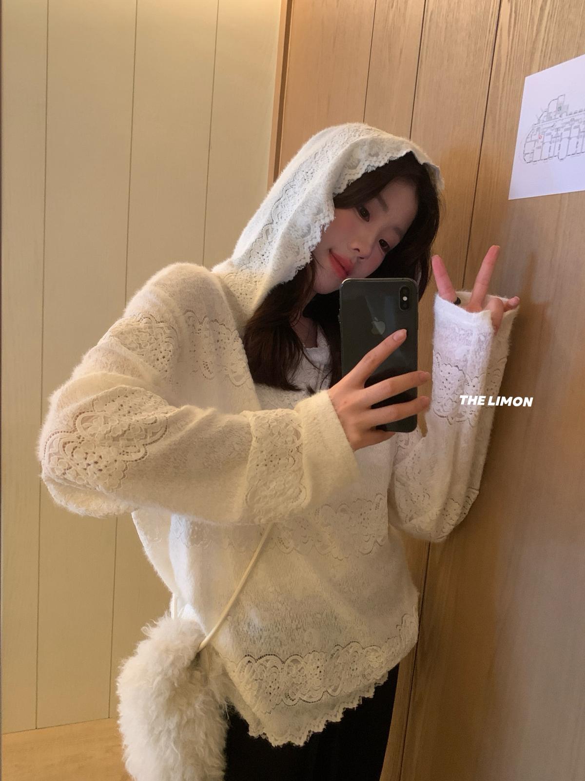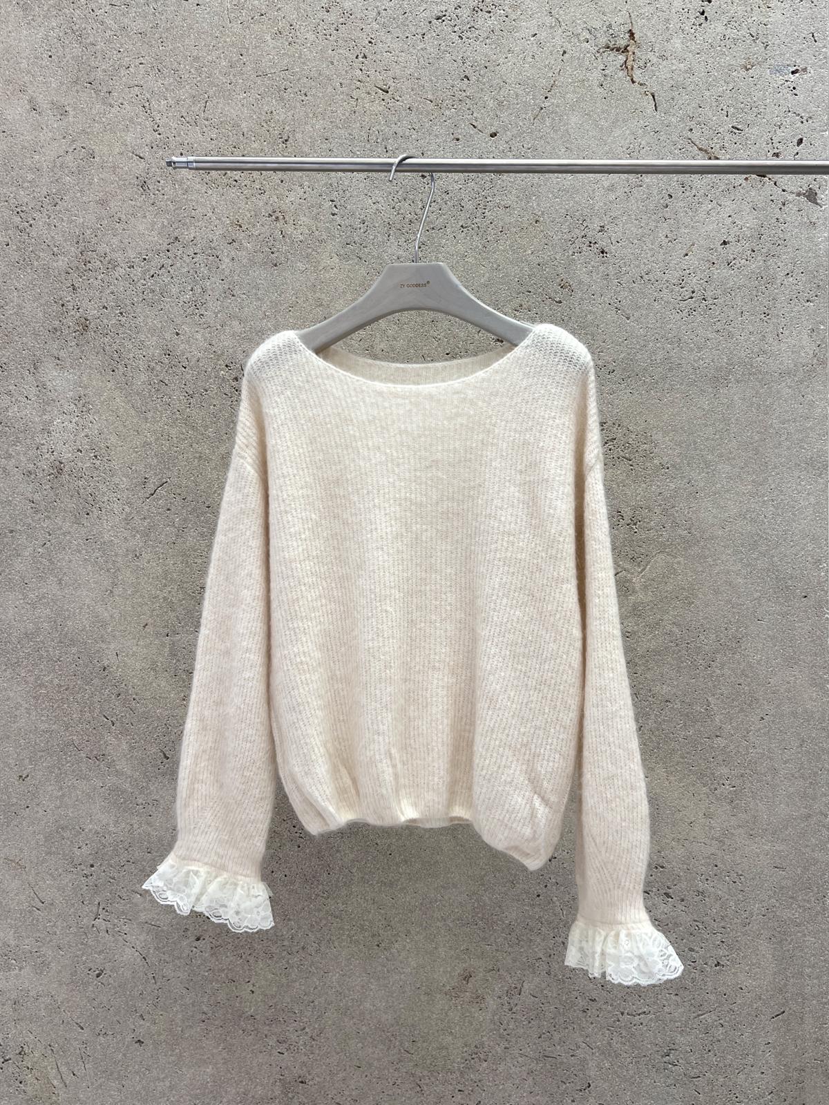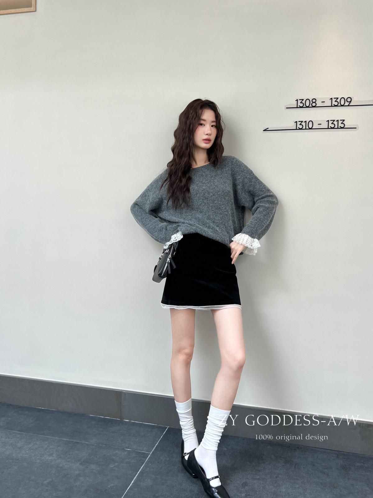 【C7916】軟糯仙系 · 羊毛兔毛甜美減齡min系拼接蕾絲袖口氛圍感保暖毛衣(含19%羊毛)(16%兔毛)