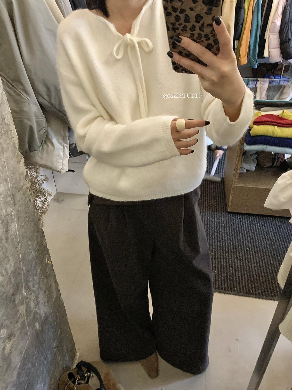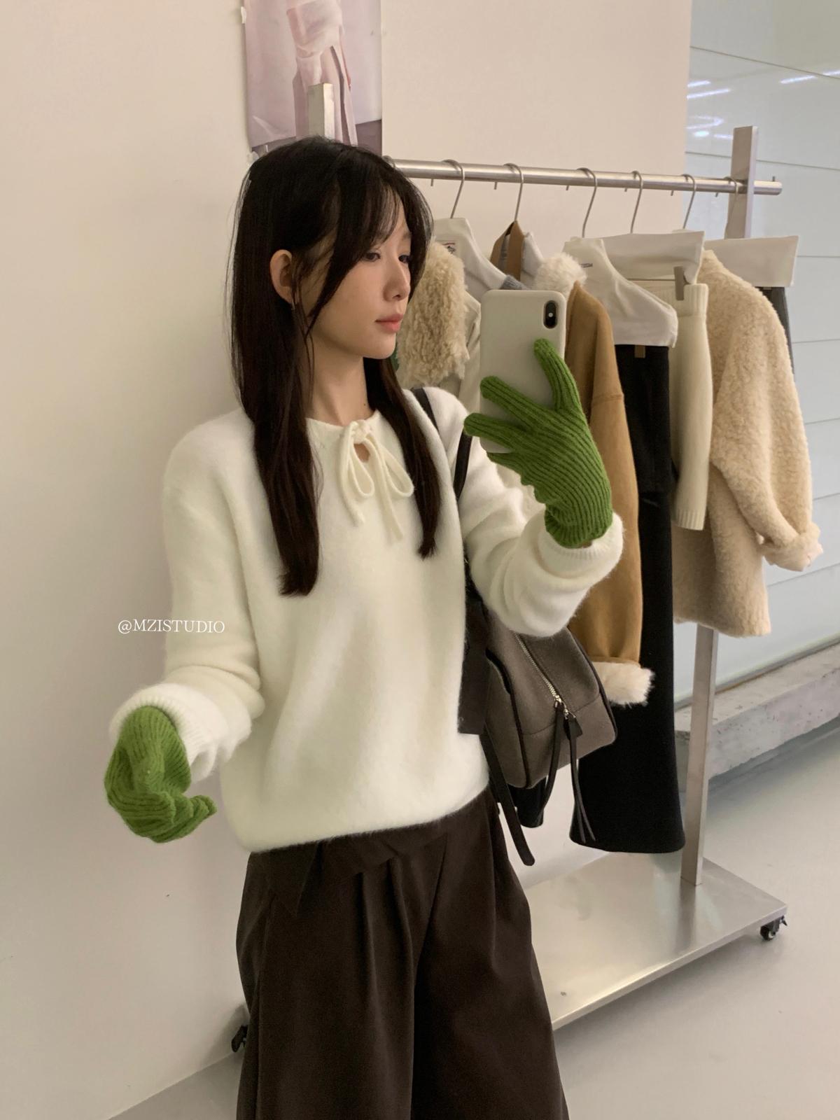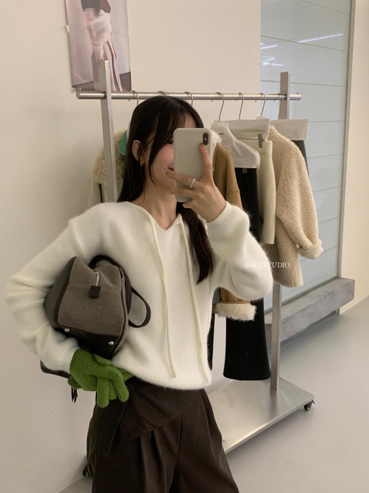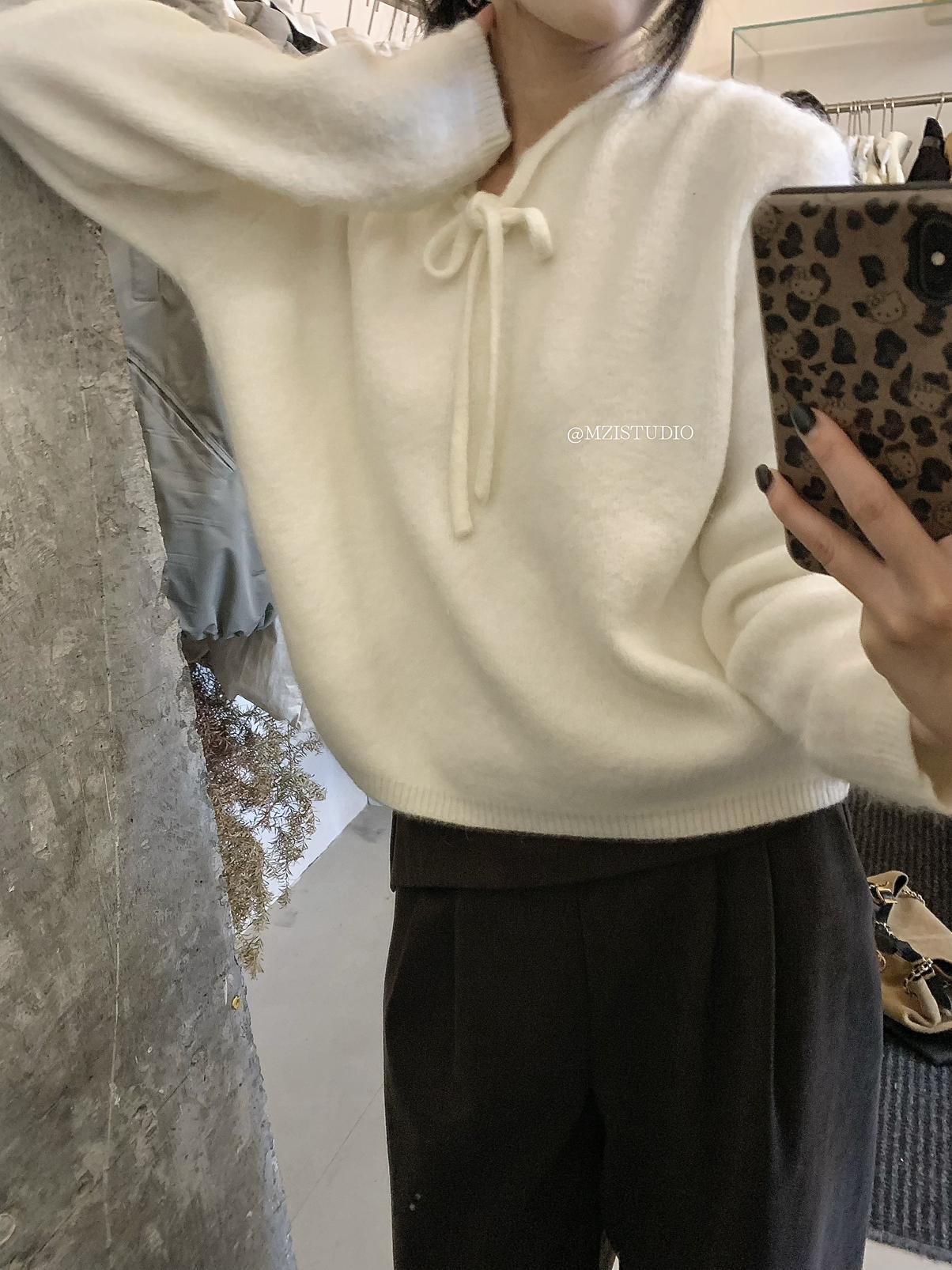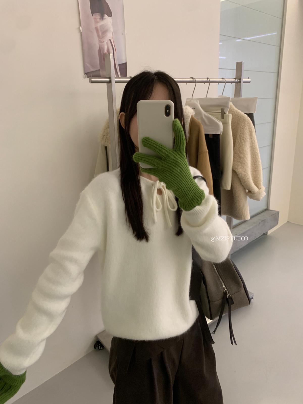【C7901】寒冬溫柔密碼韓版兔毛奶呼呼柔軟親膚領口繫帶套頭保暖毛衣(含10%兔毛)