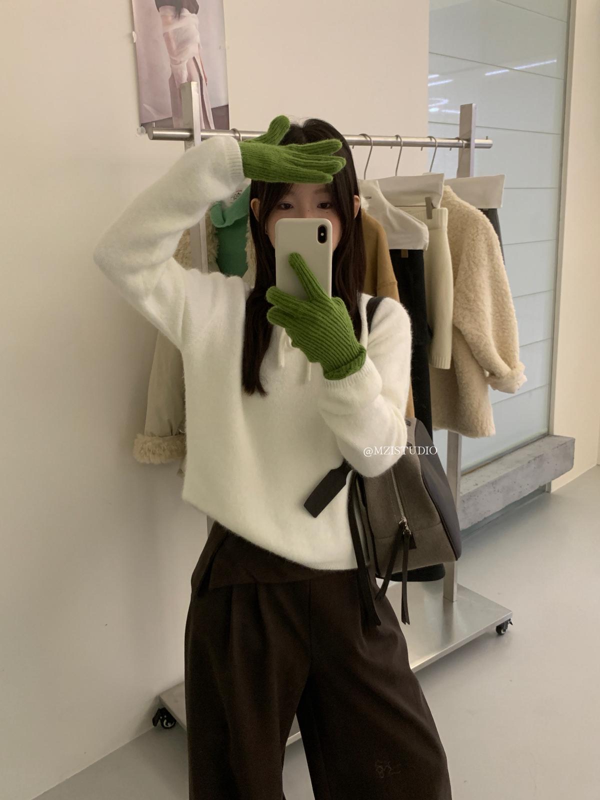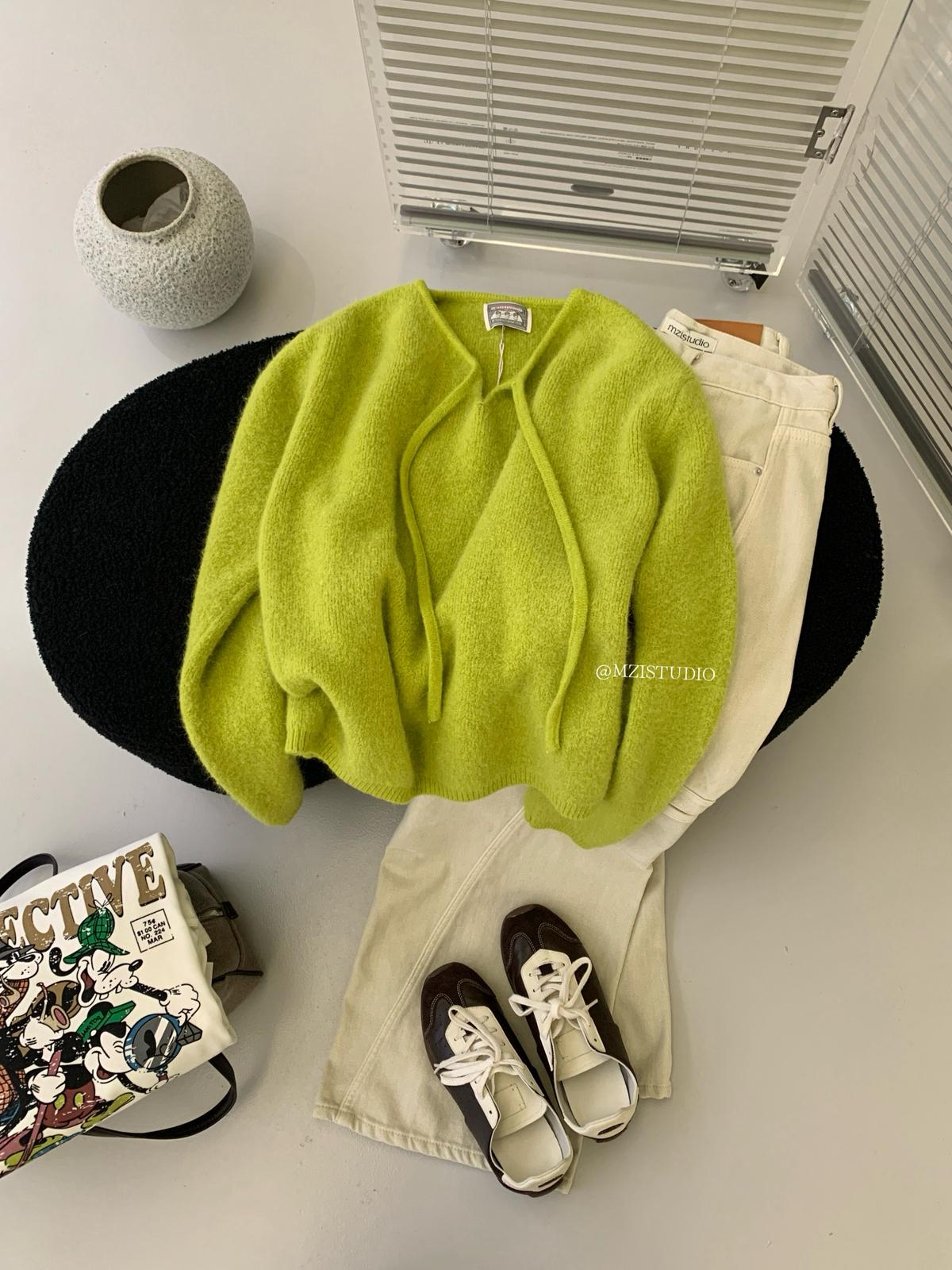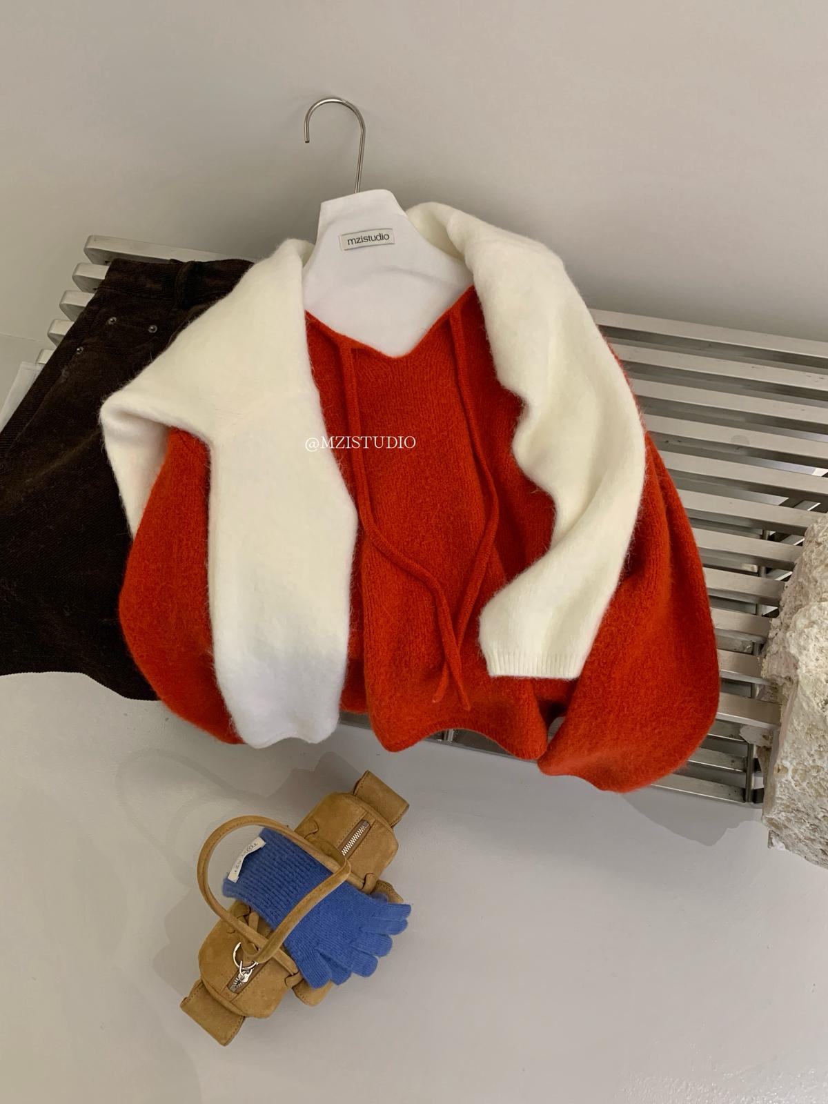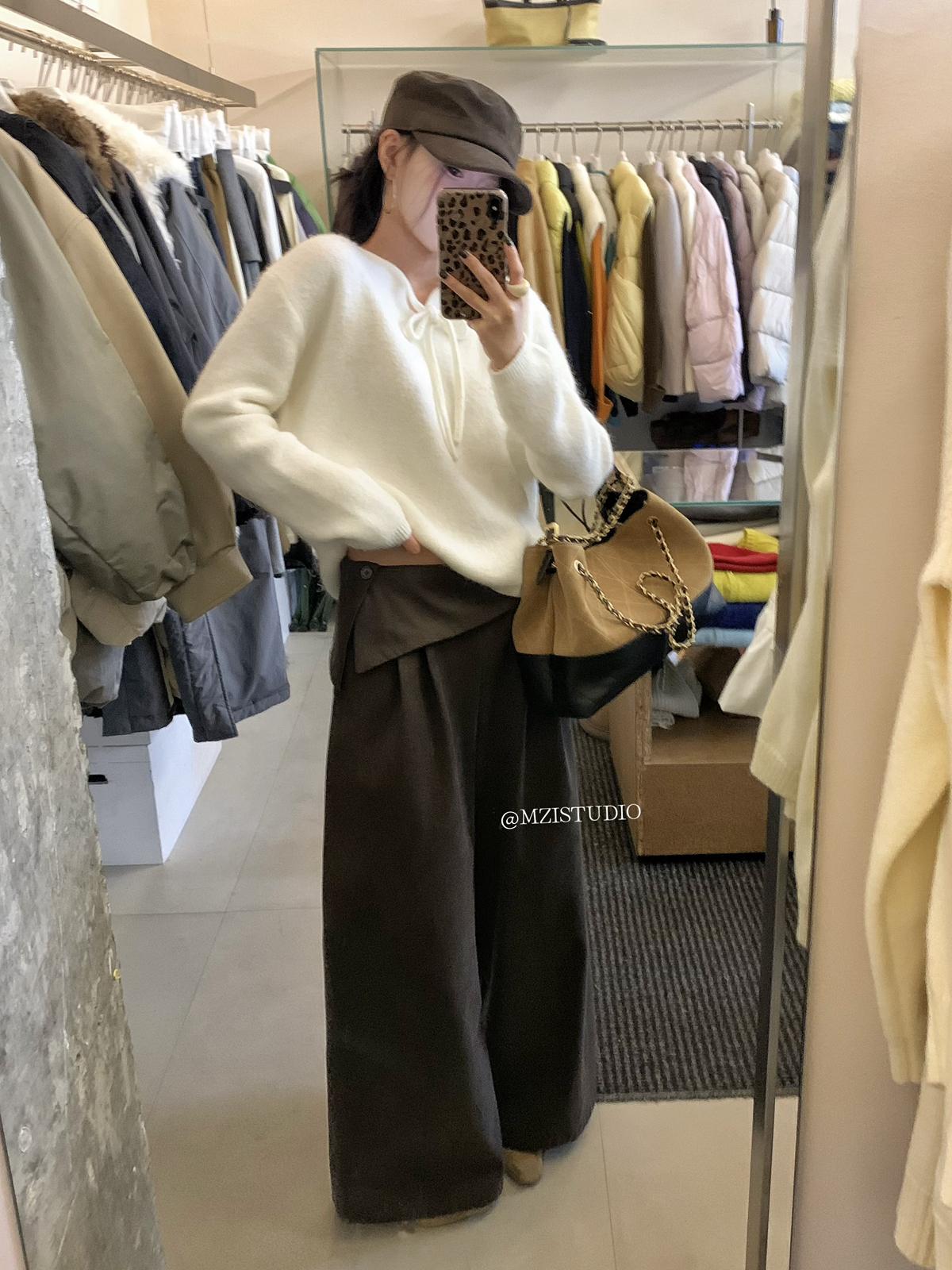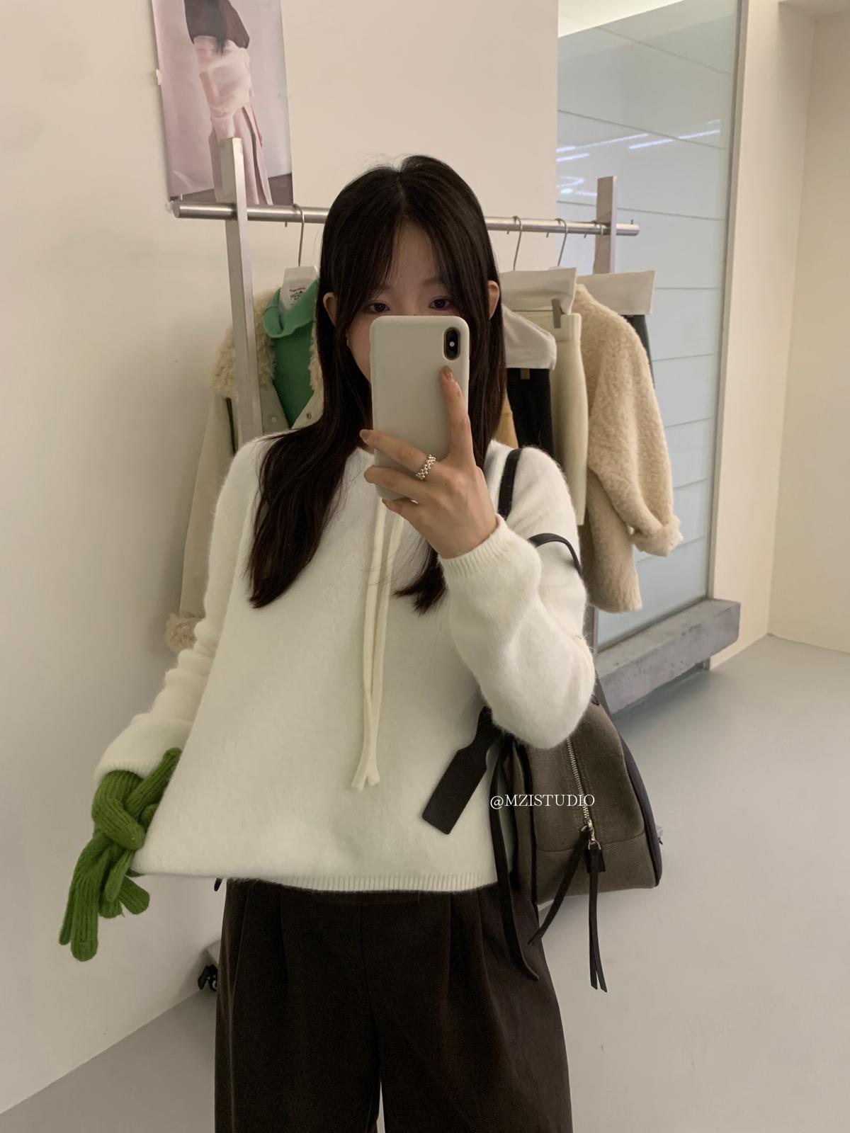 【C7901】寒冬溫柔密碼韓版兔毛奶呼呼柔軟親膚領口繫帶套頭保暖毛衣(含10%兔毛)