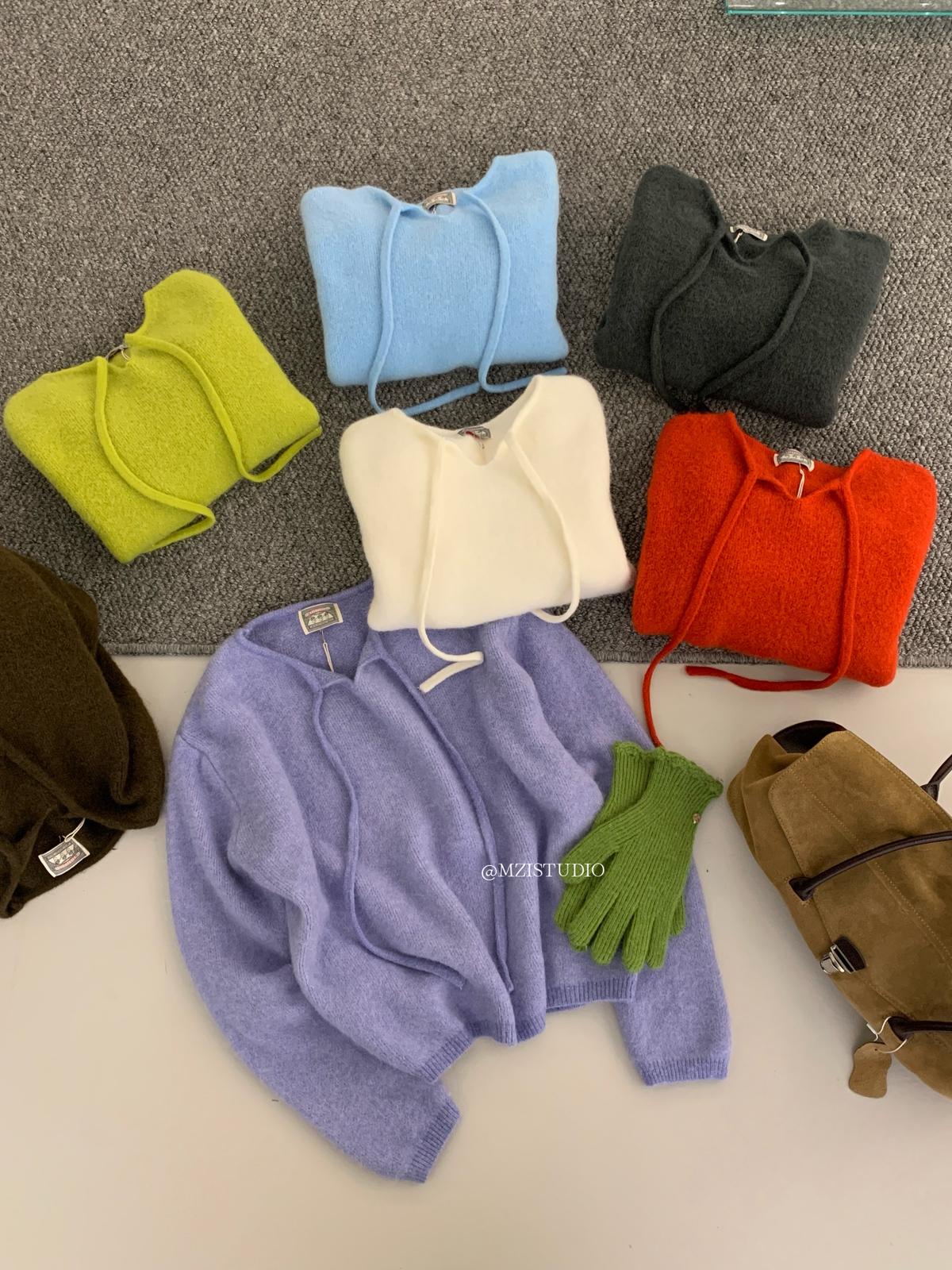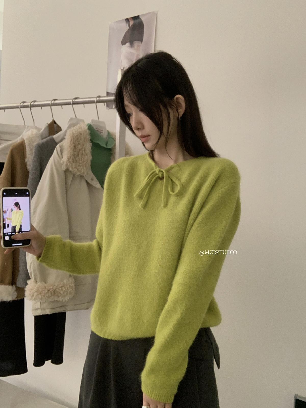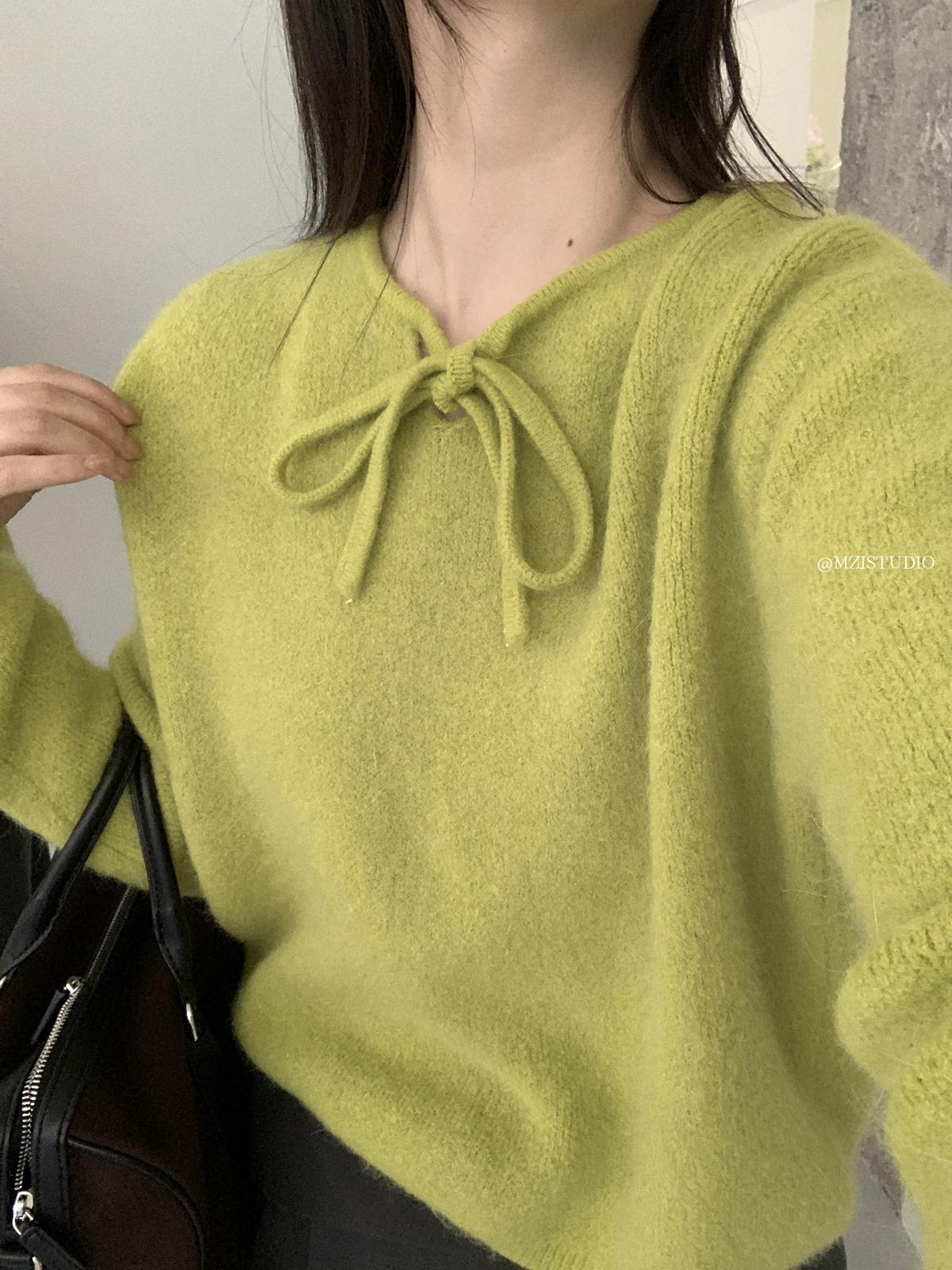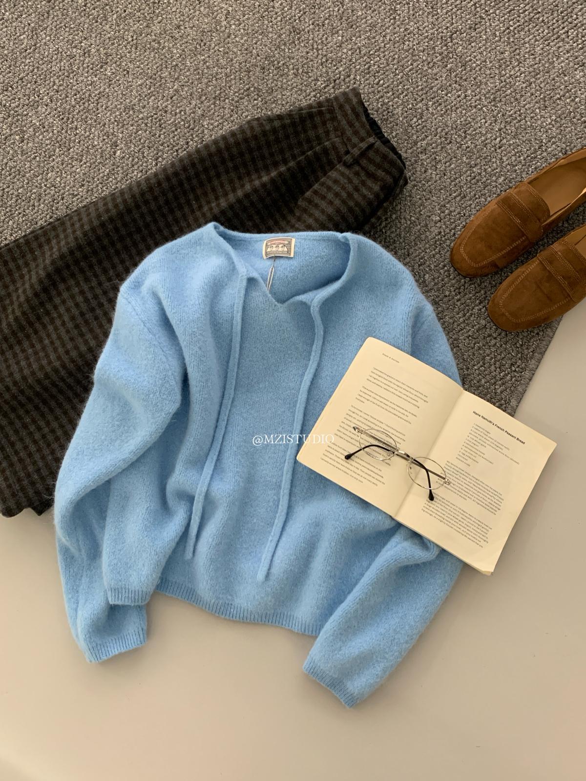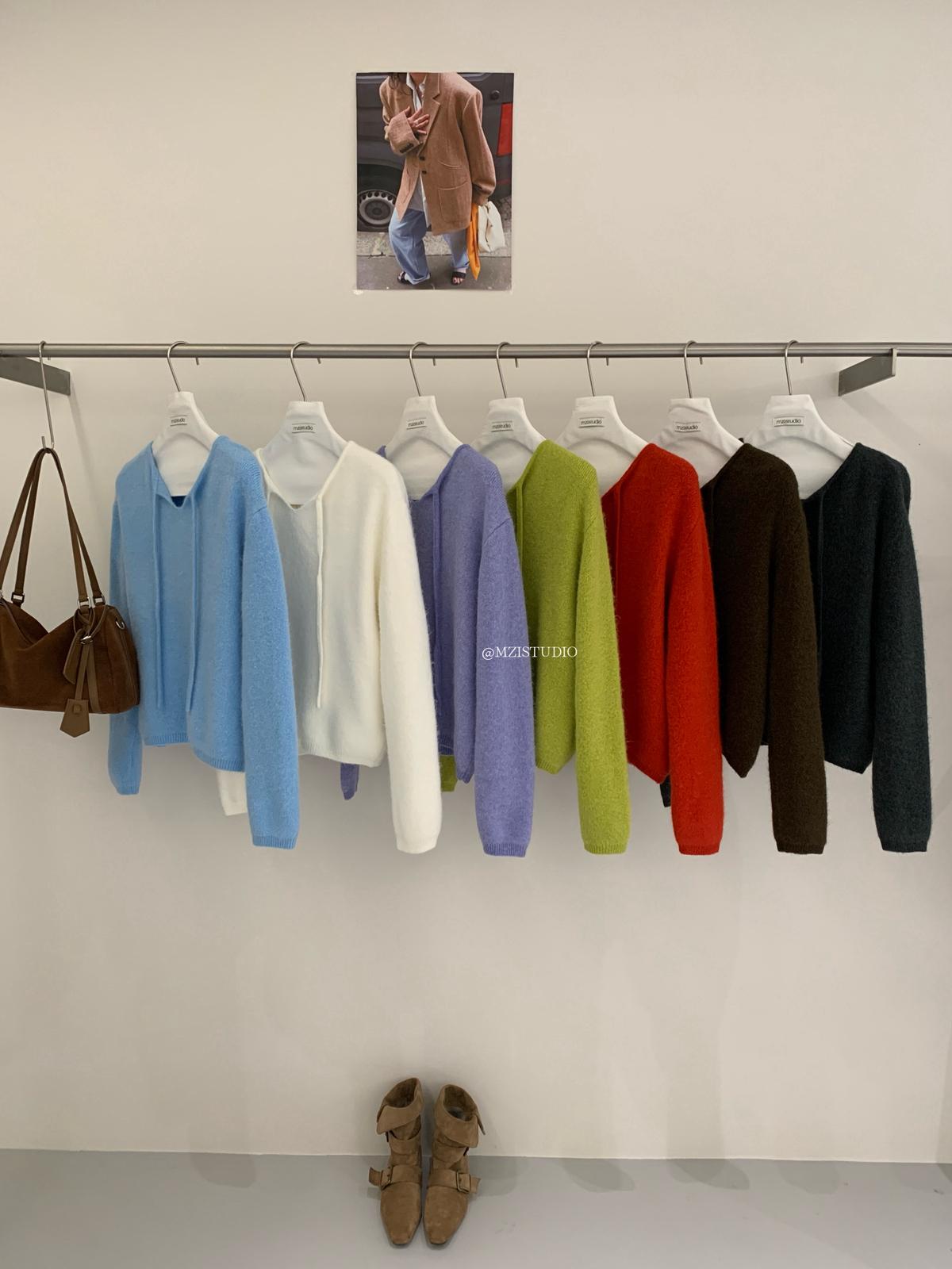 【C7901】寒冬溫柔密碼韓版兔毛奶呼呼柔軟親膚領口繫帶套頭保暖毛衣(含10%兔毛)