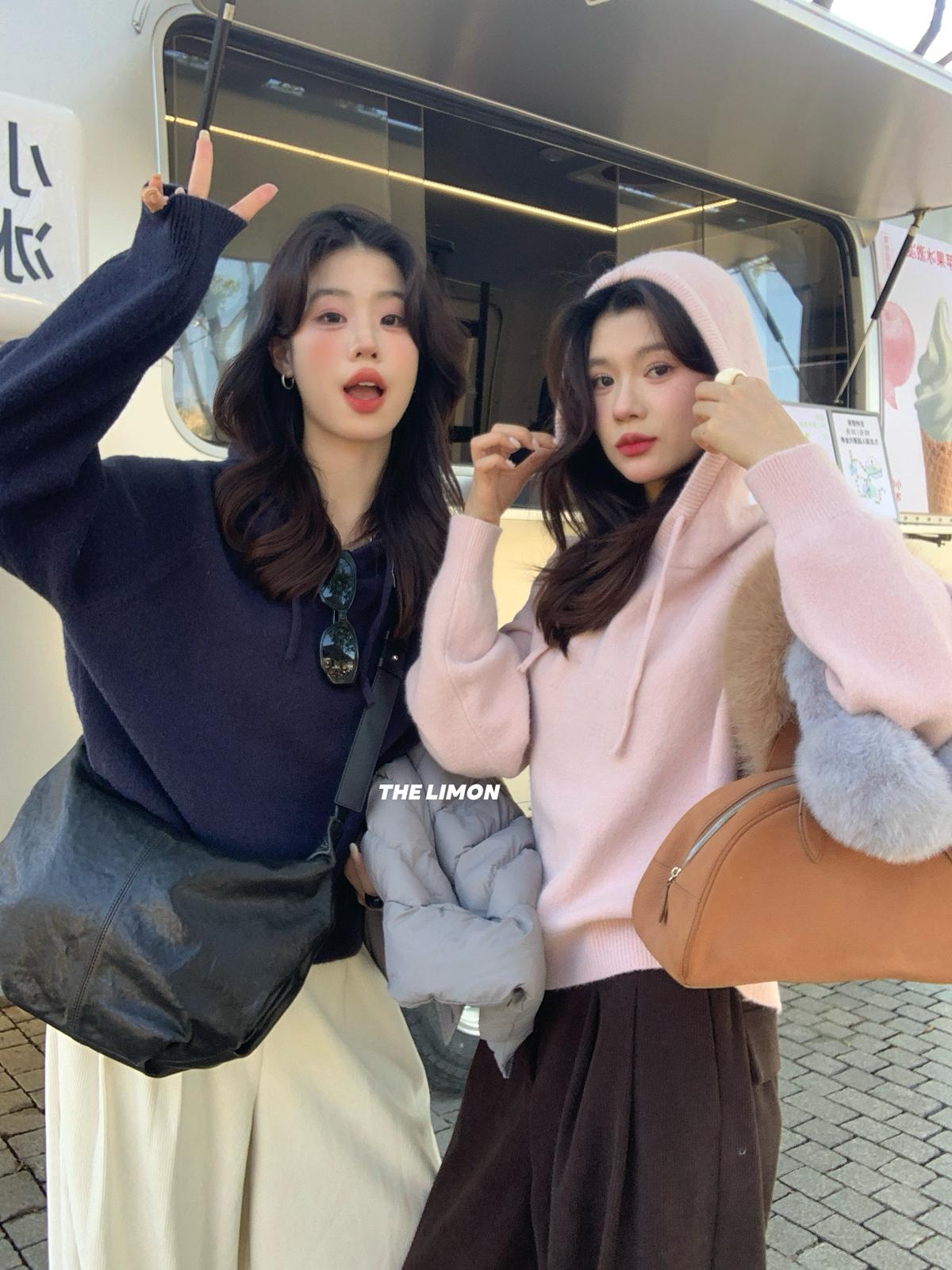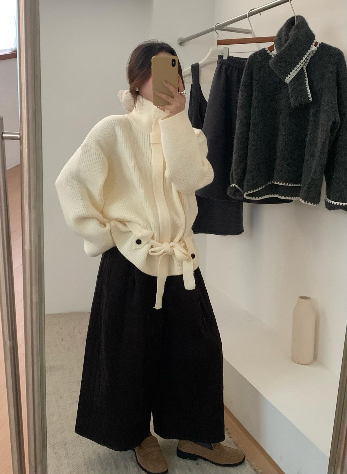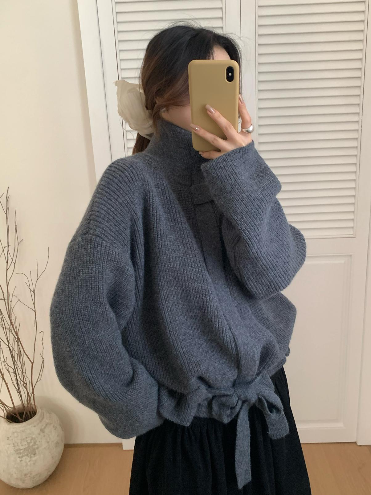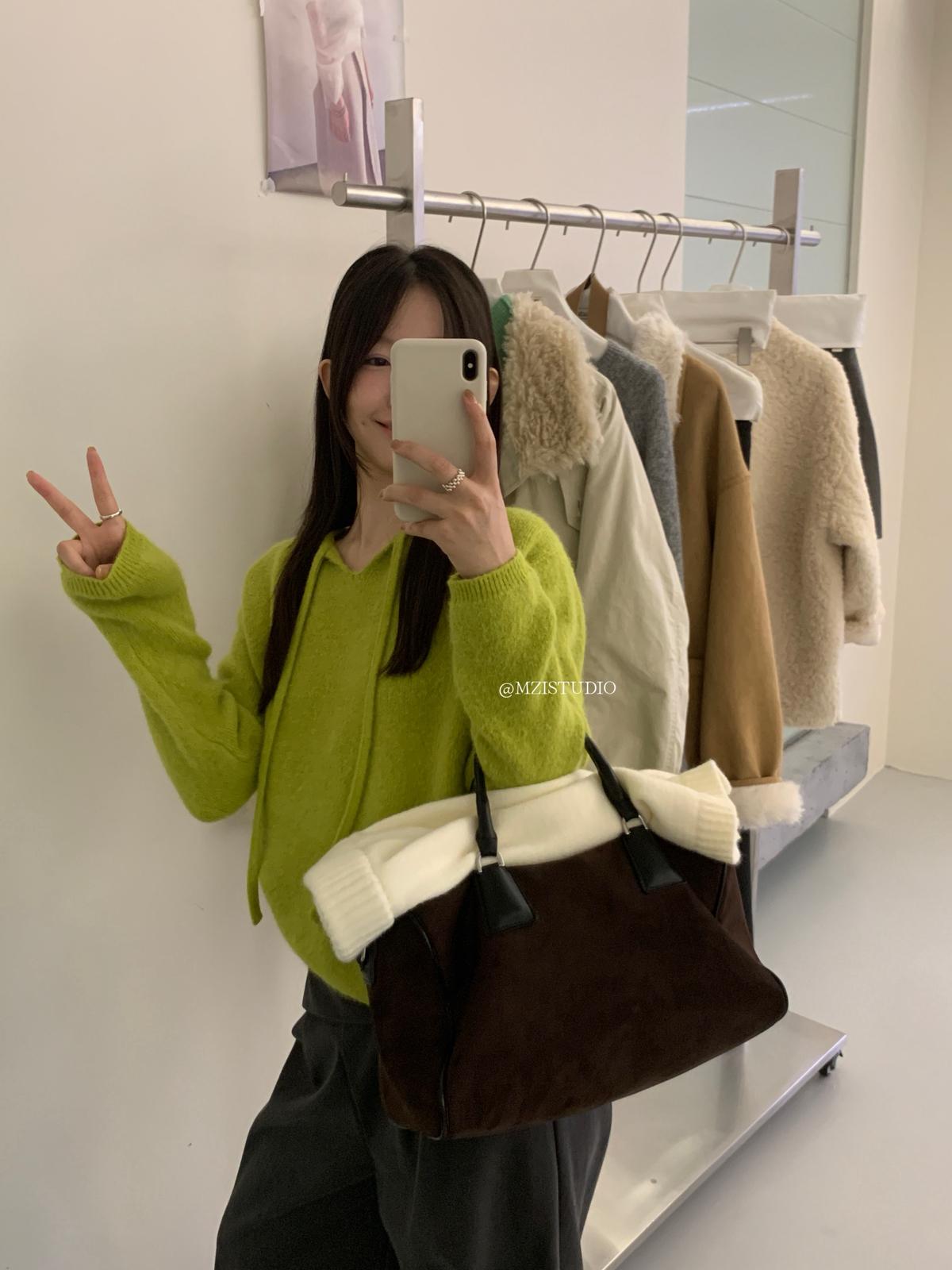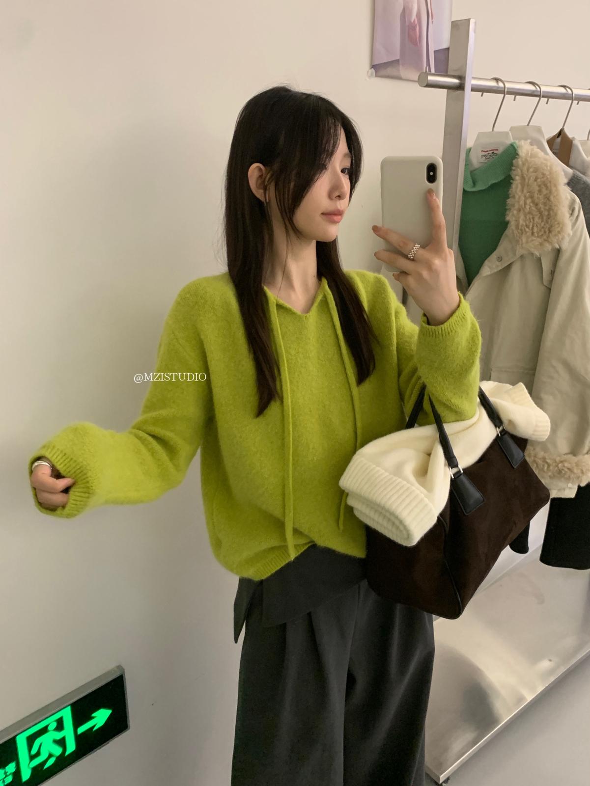 【C7901】寒冬溫柔密碼韓版兔毛奶呼呼柔軟親膚領口繫帶套頭保暖毛衣(含10%兔毛)