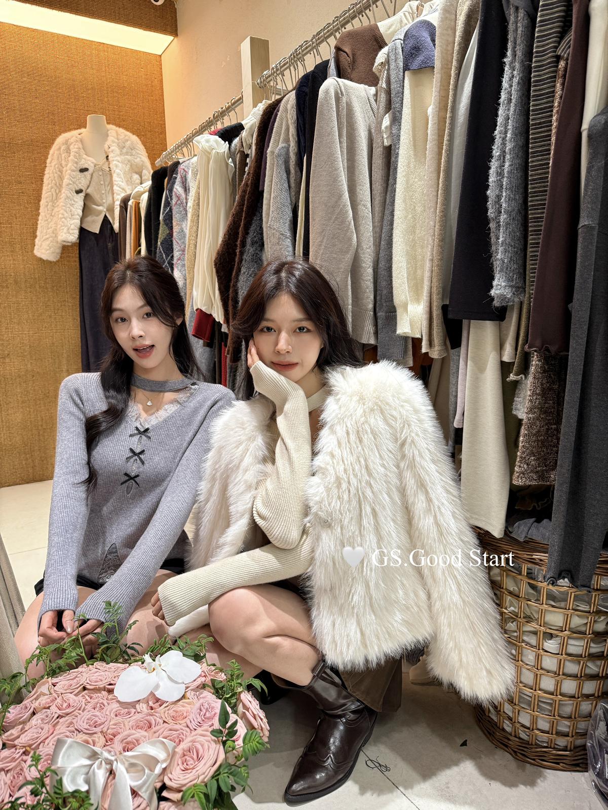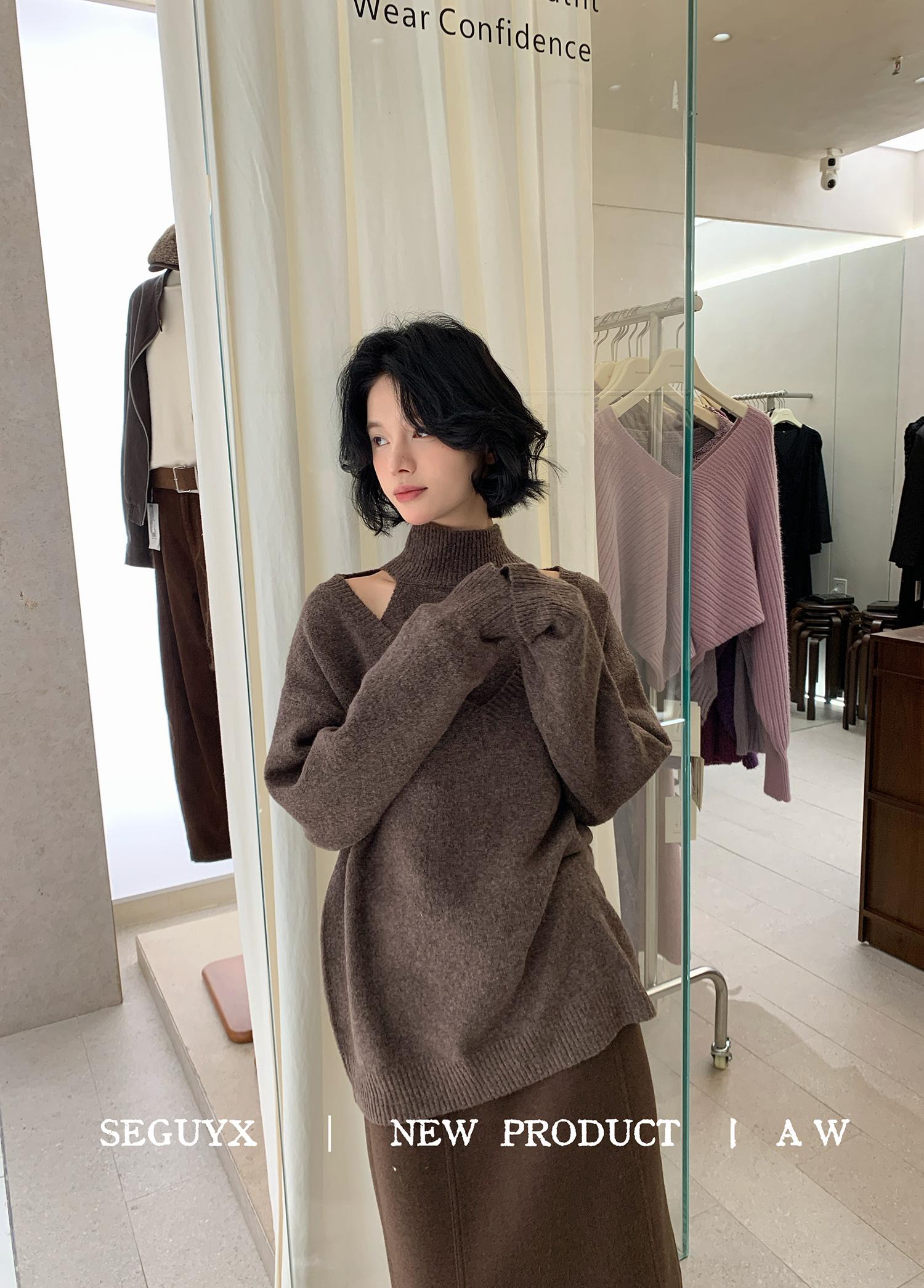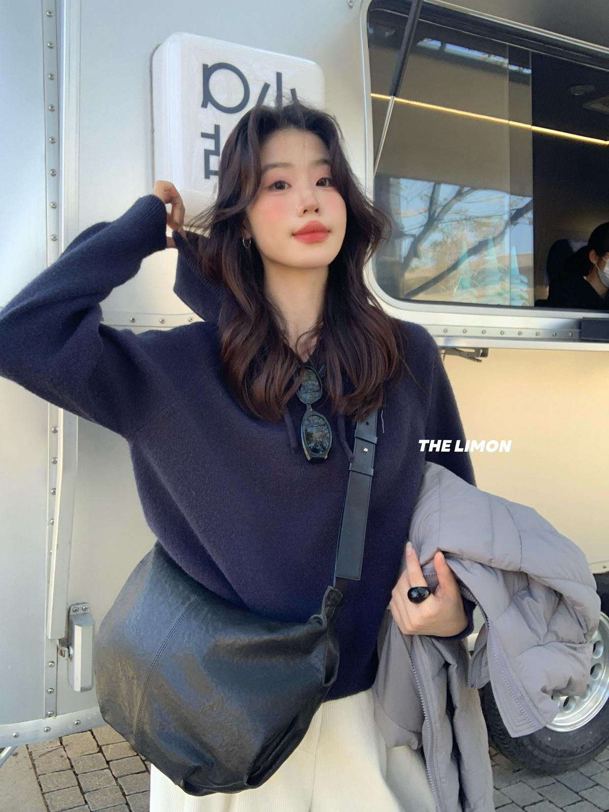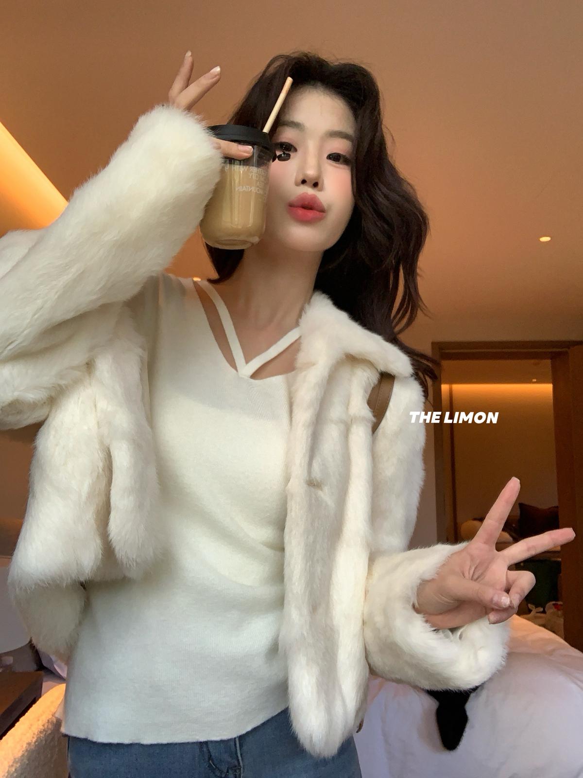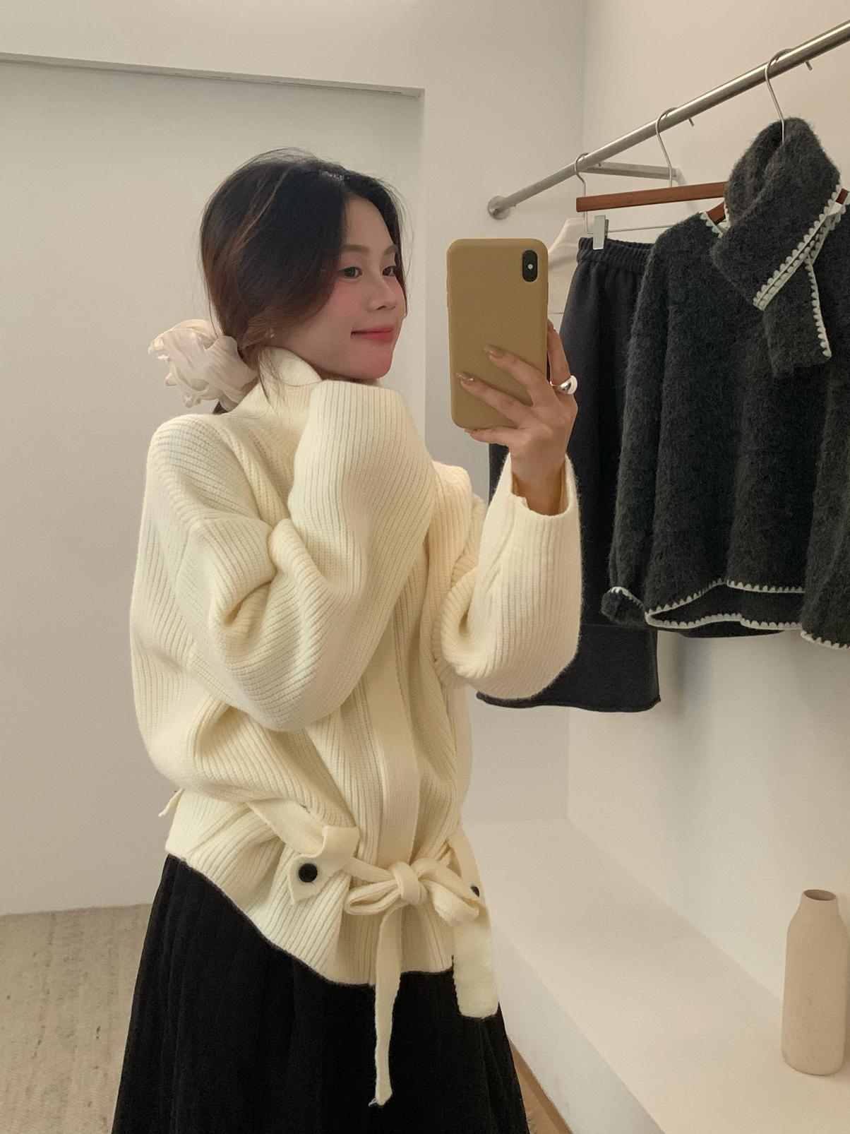 【C7901】寒冬溫柔密碼韓版兔毛奶呼呼柔軟親膚領口繫帶套頭保暖毛衣(含10%兔毛)
