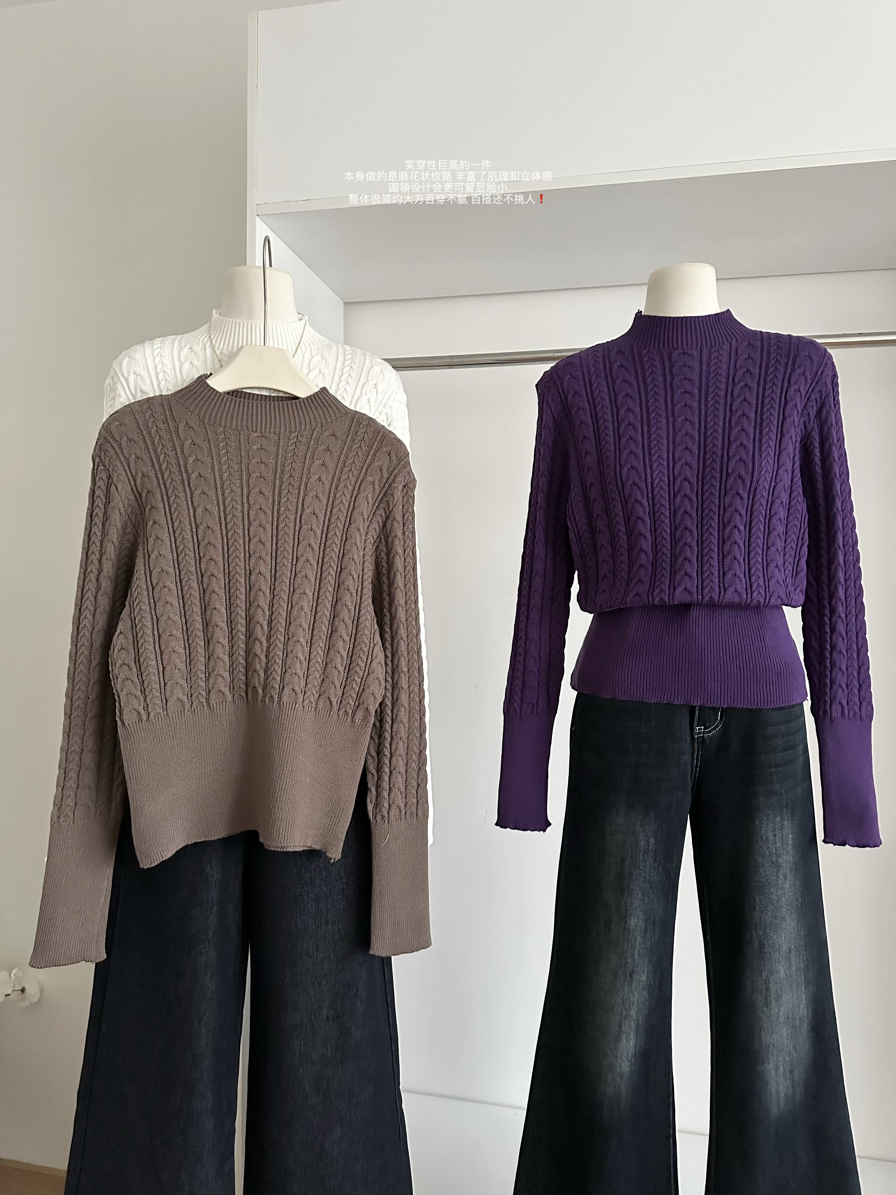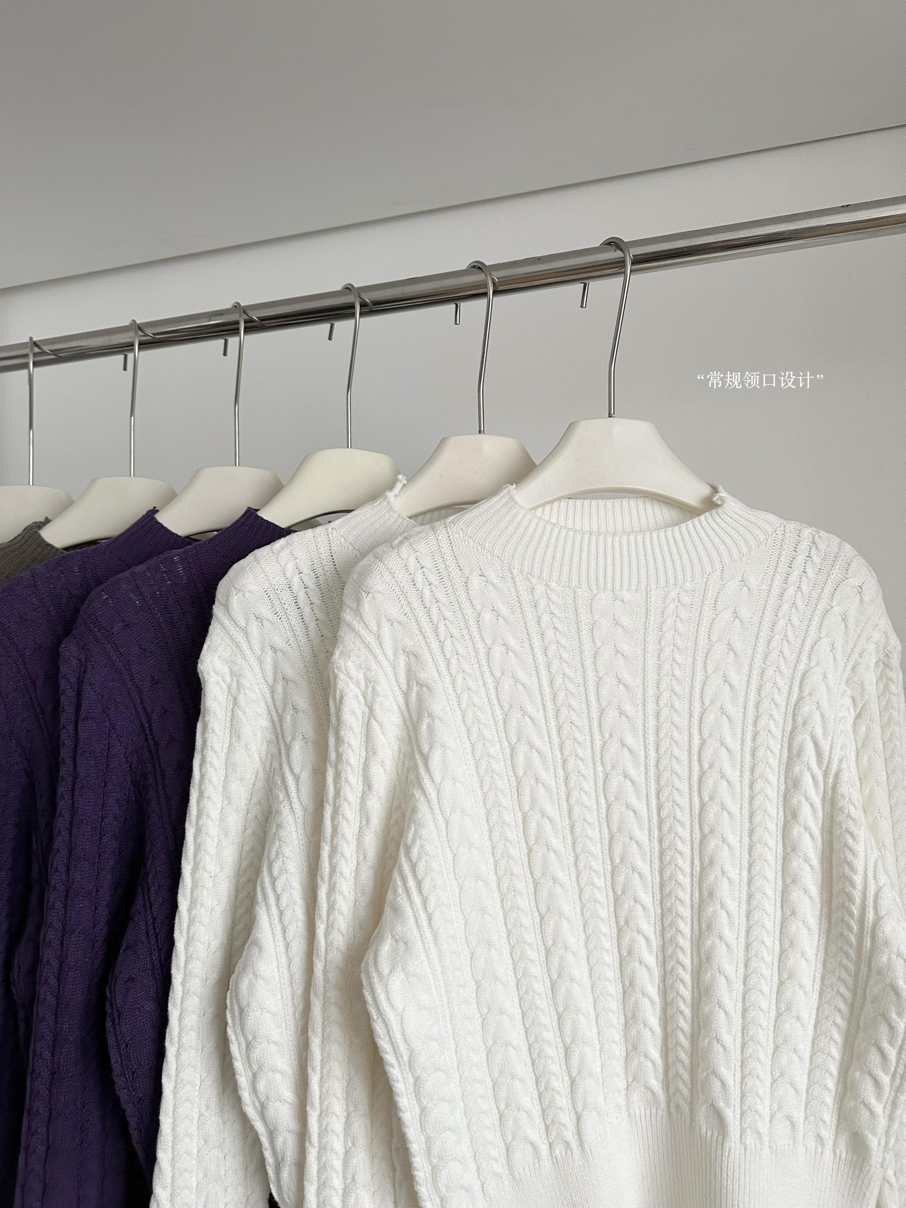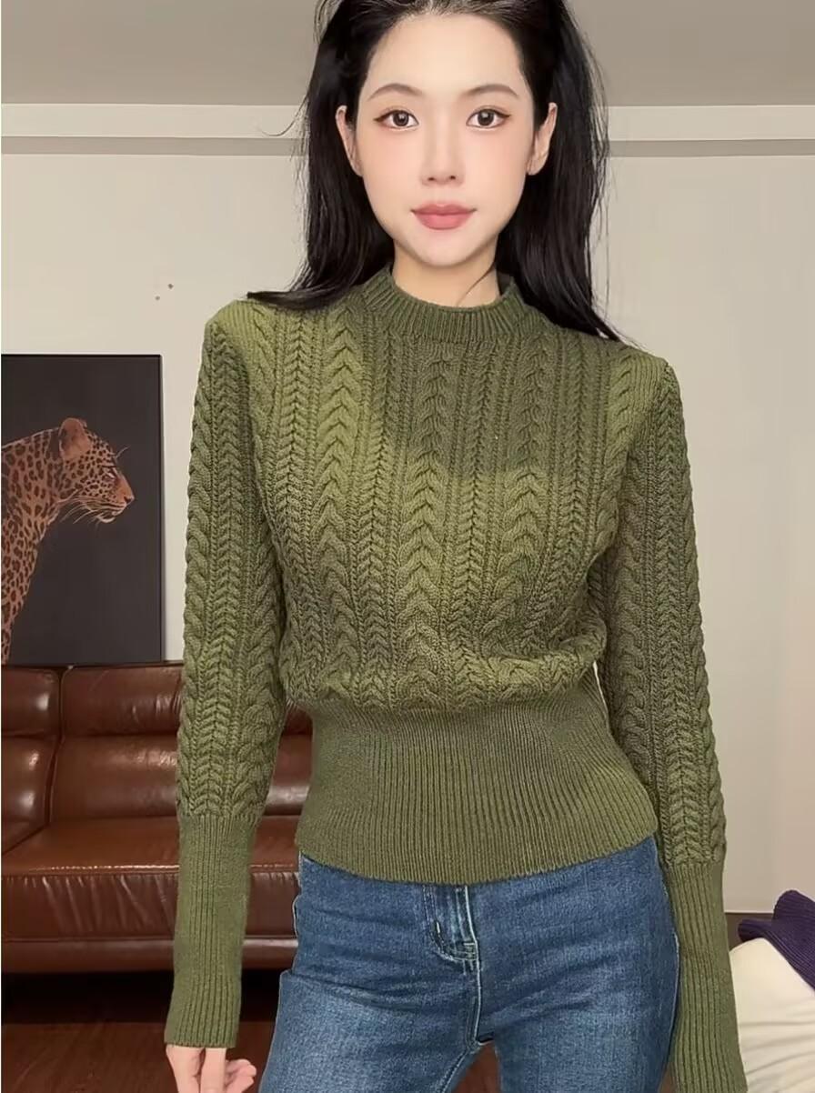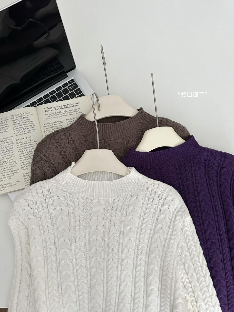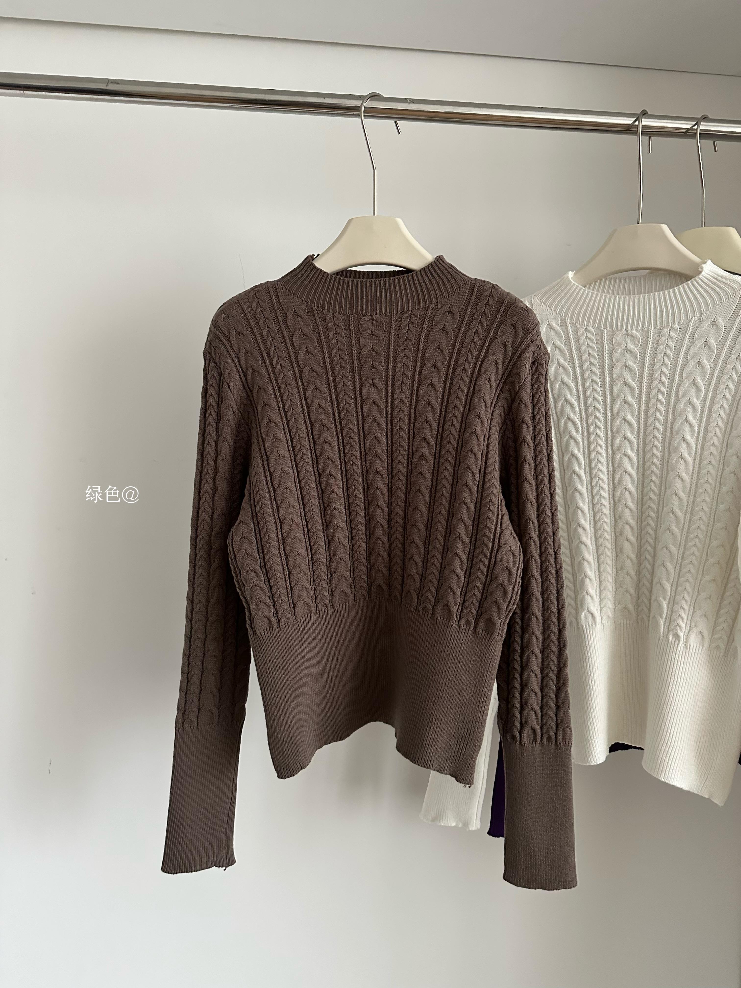【C7864】韓系簡約休閒百搭麻花小立領收腰厚款套頭保暖毛衣