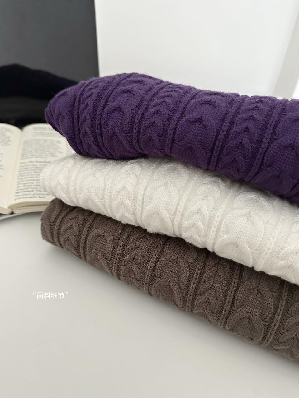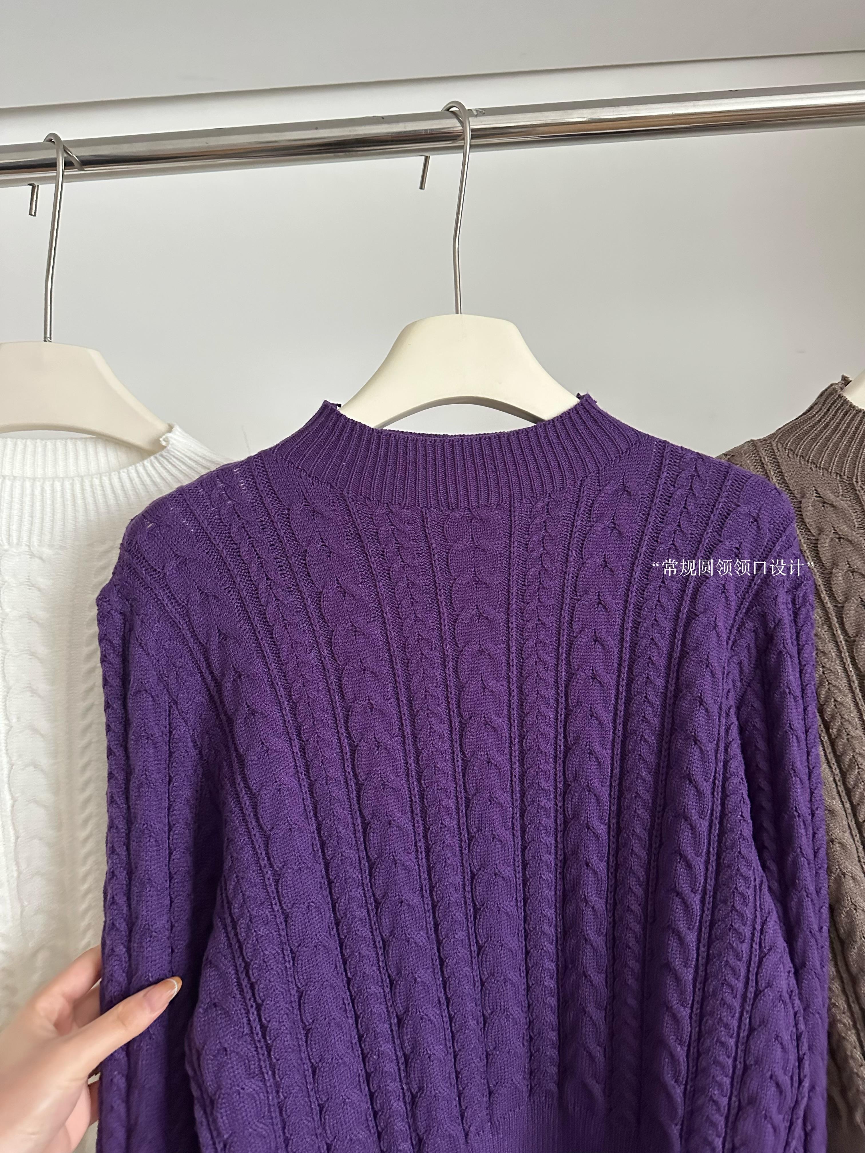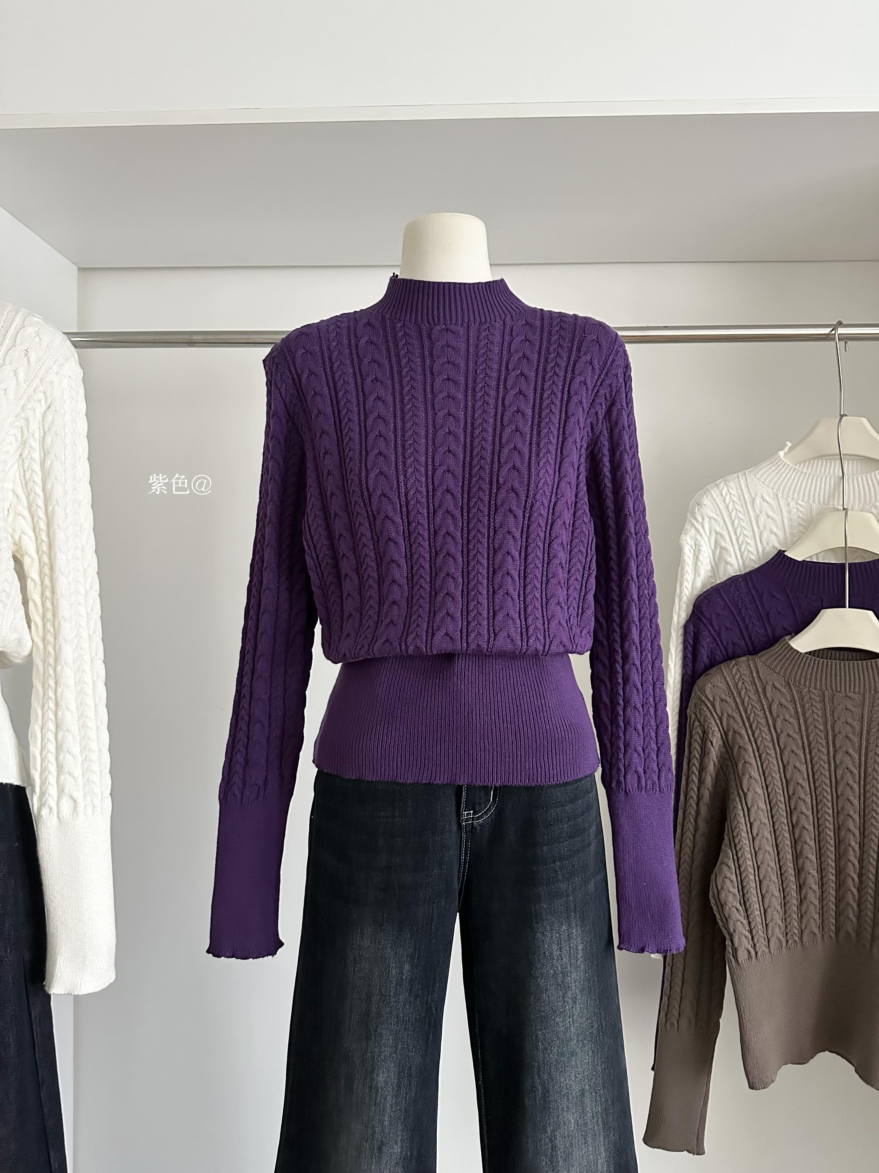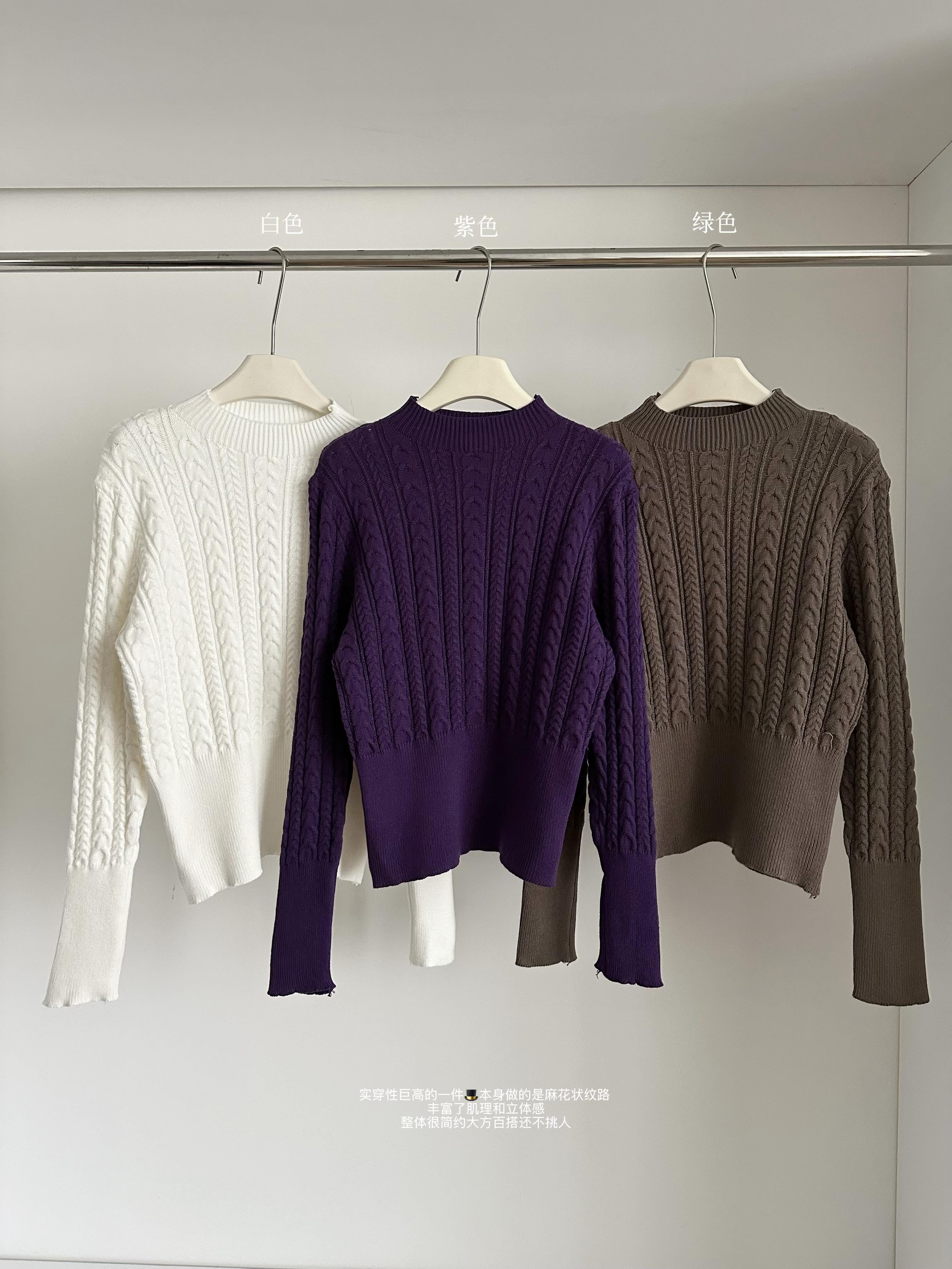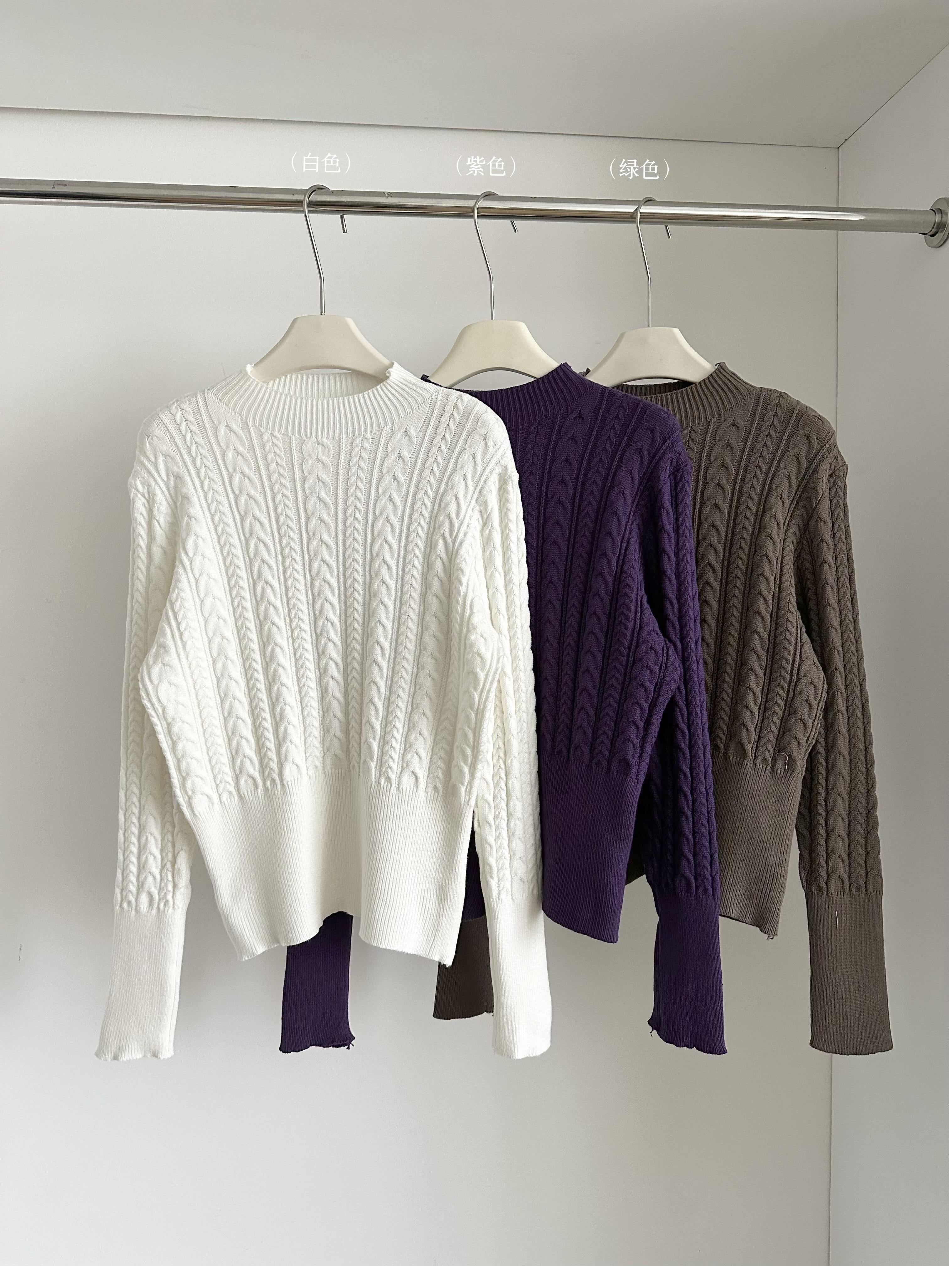 【C7864】韓系簡約休閒百搭麻花小立領收腰厚款套頭保暖毛衣