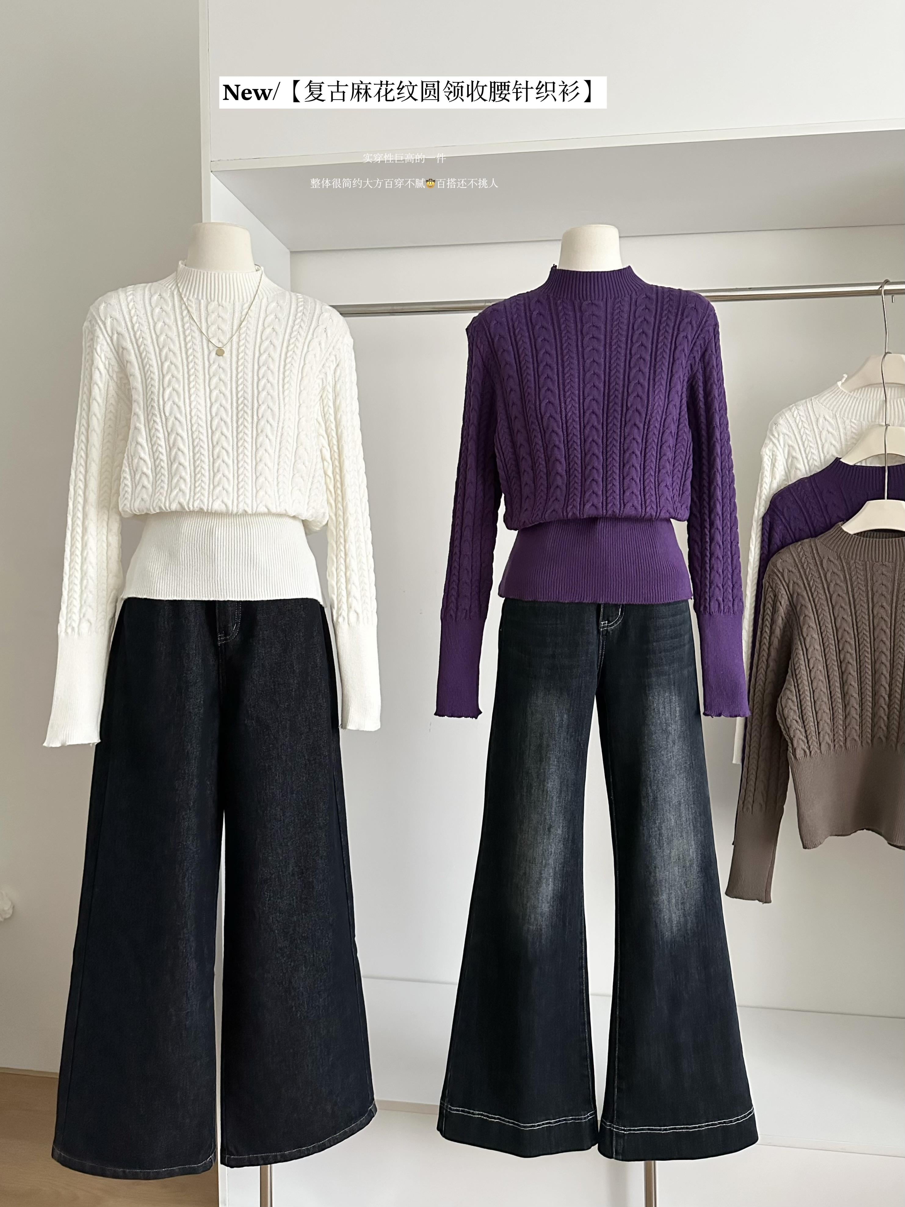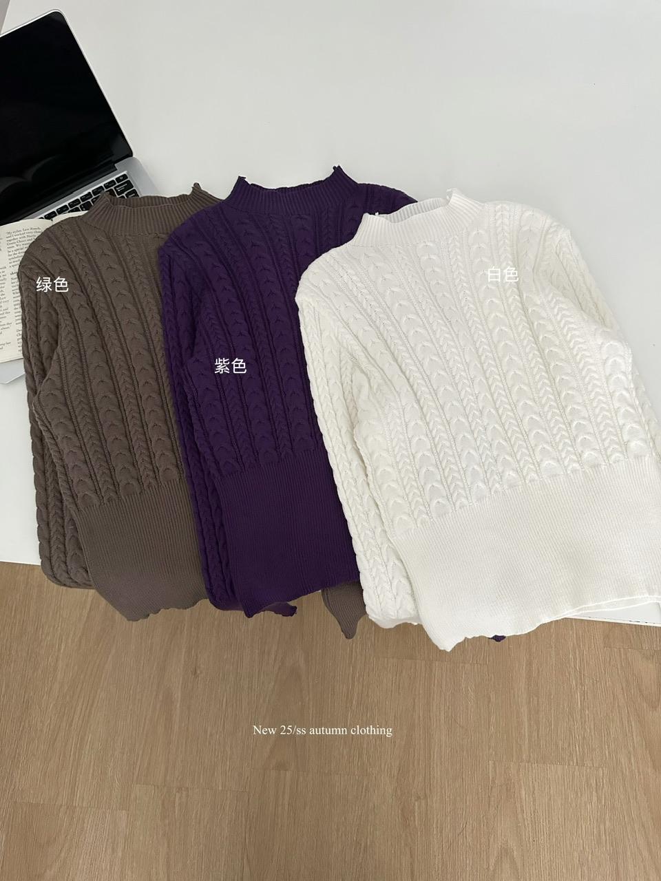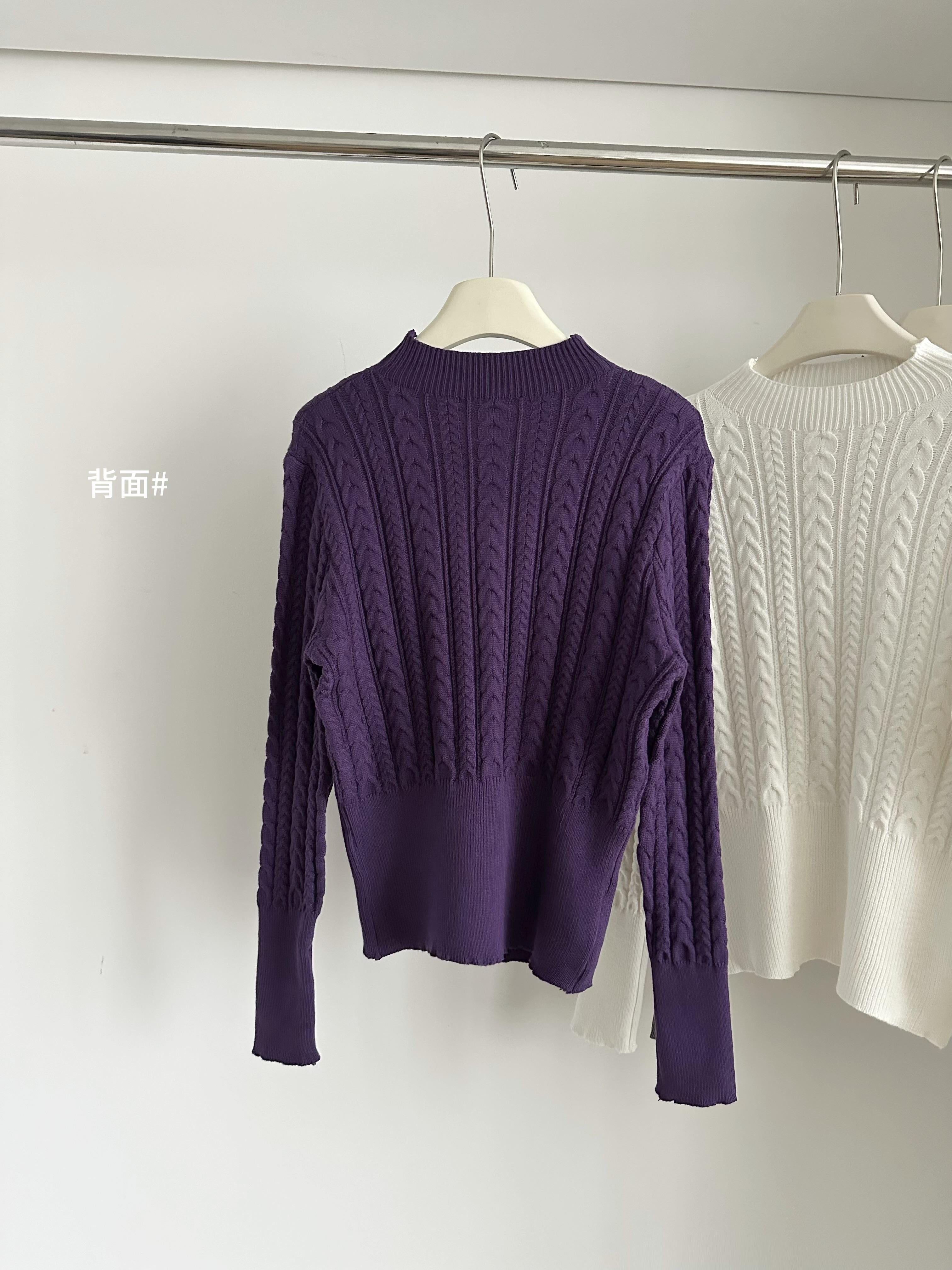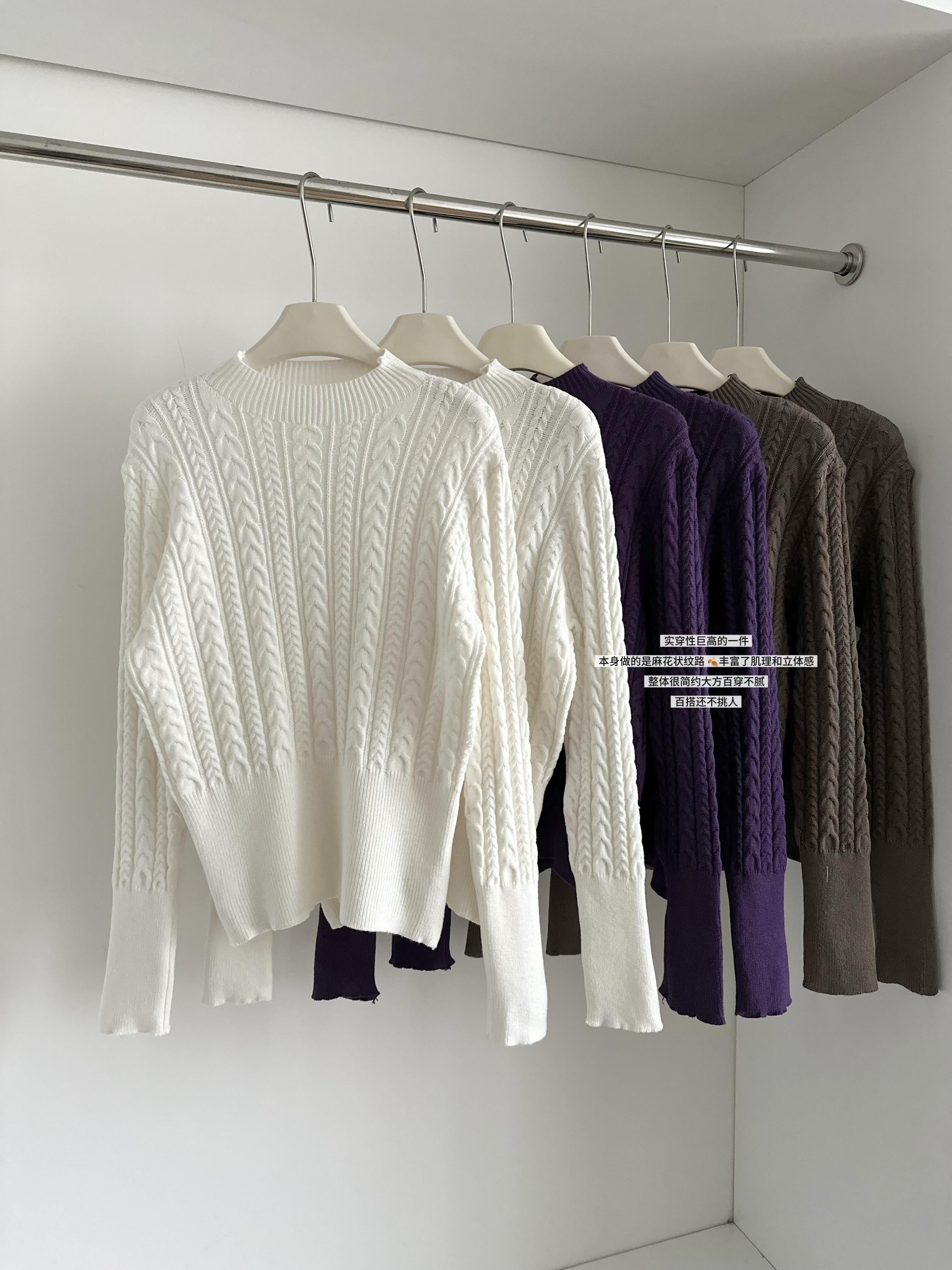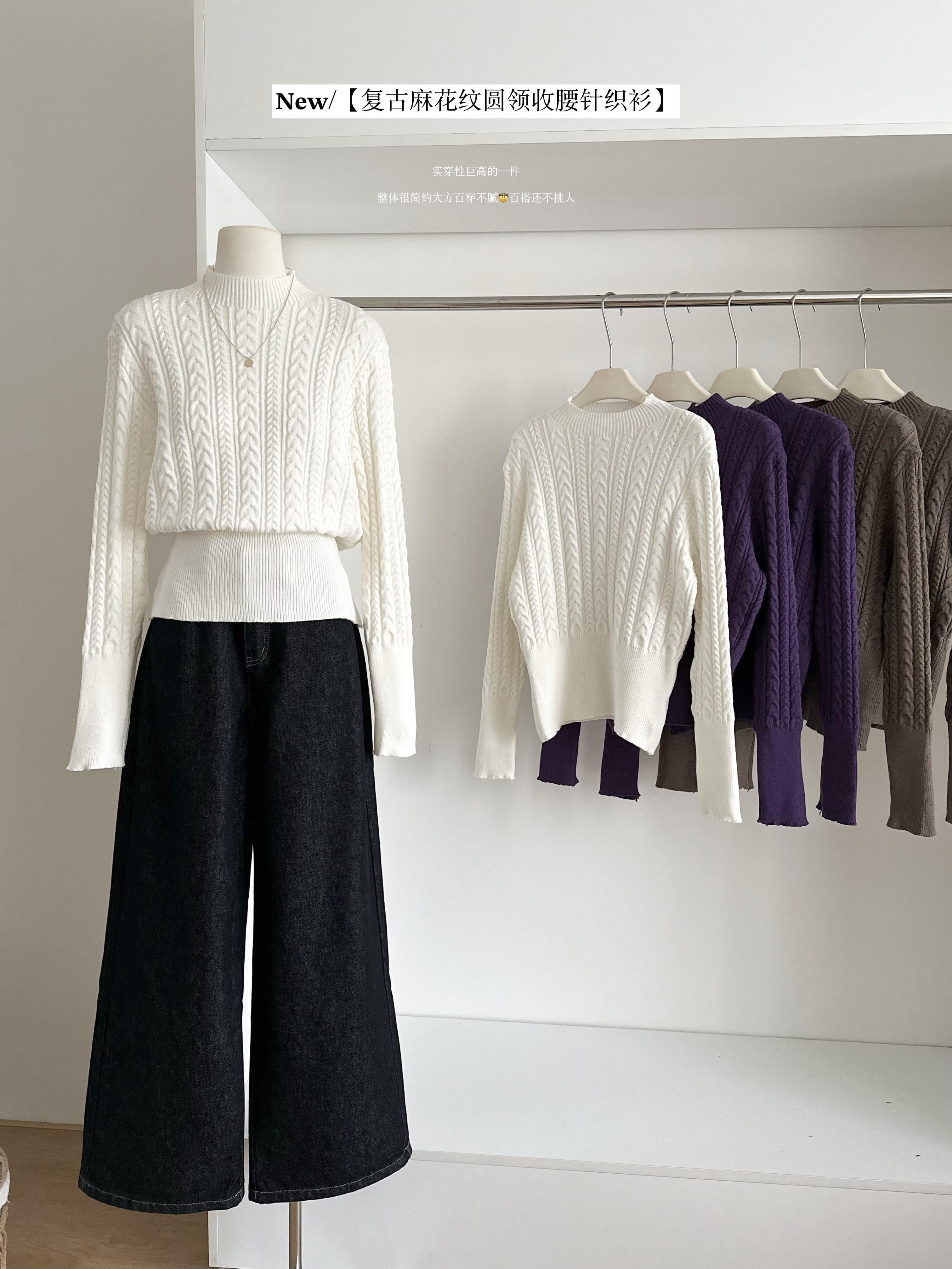 【C7864】韓系簡約休閒百搭麻花小立領收腰厚款套頭保暖毛衣