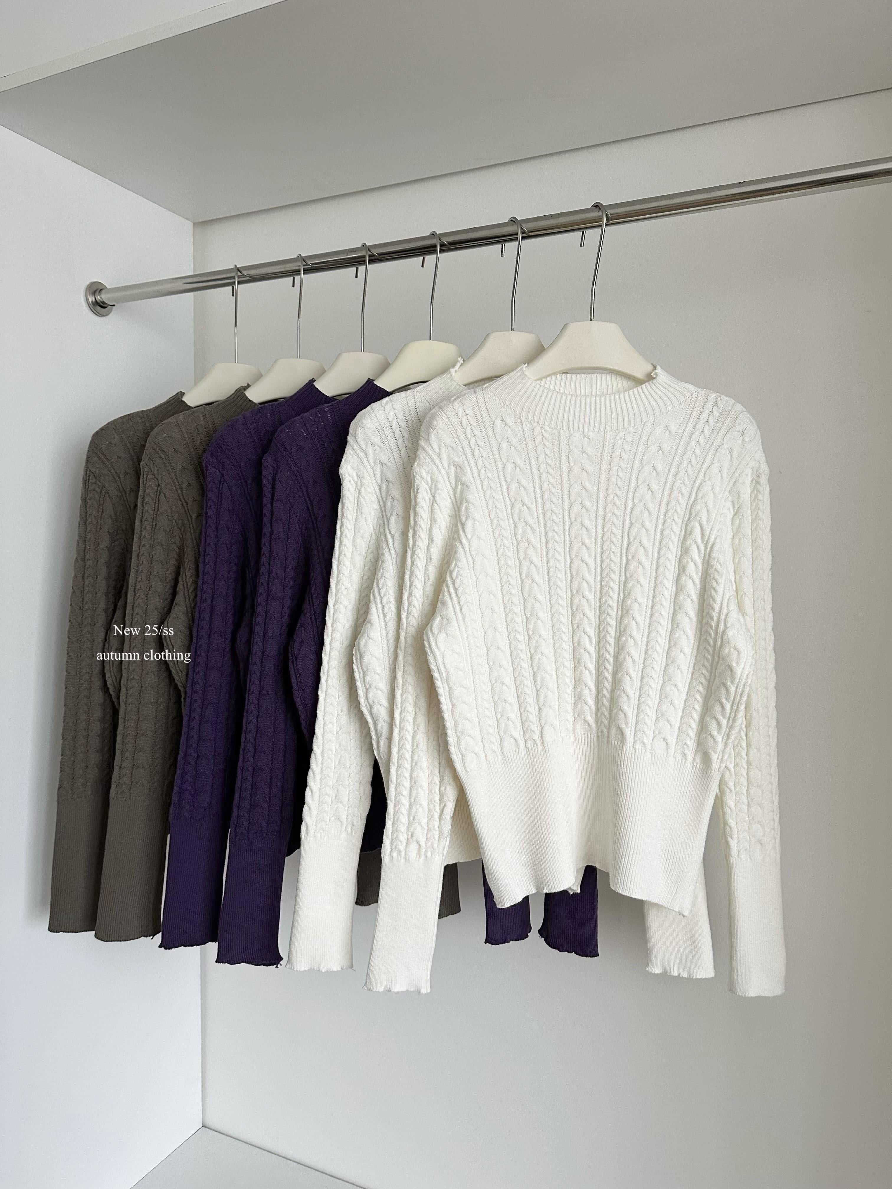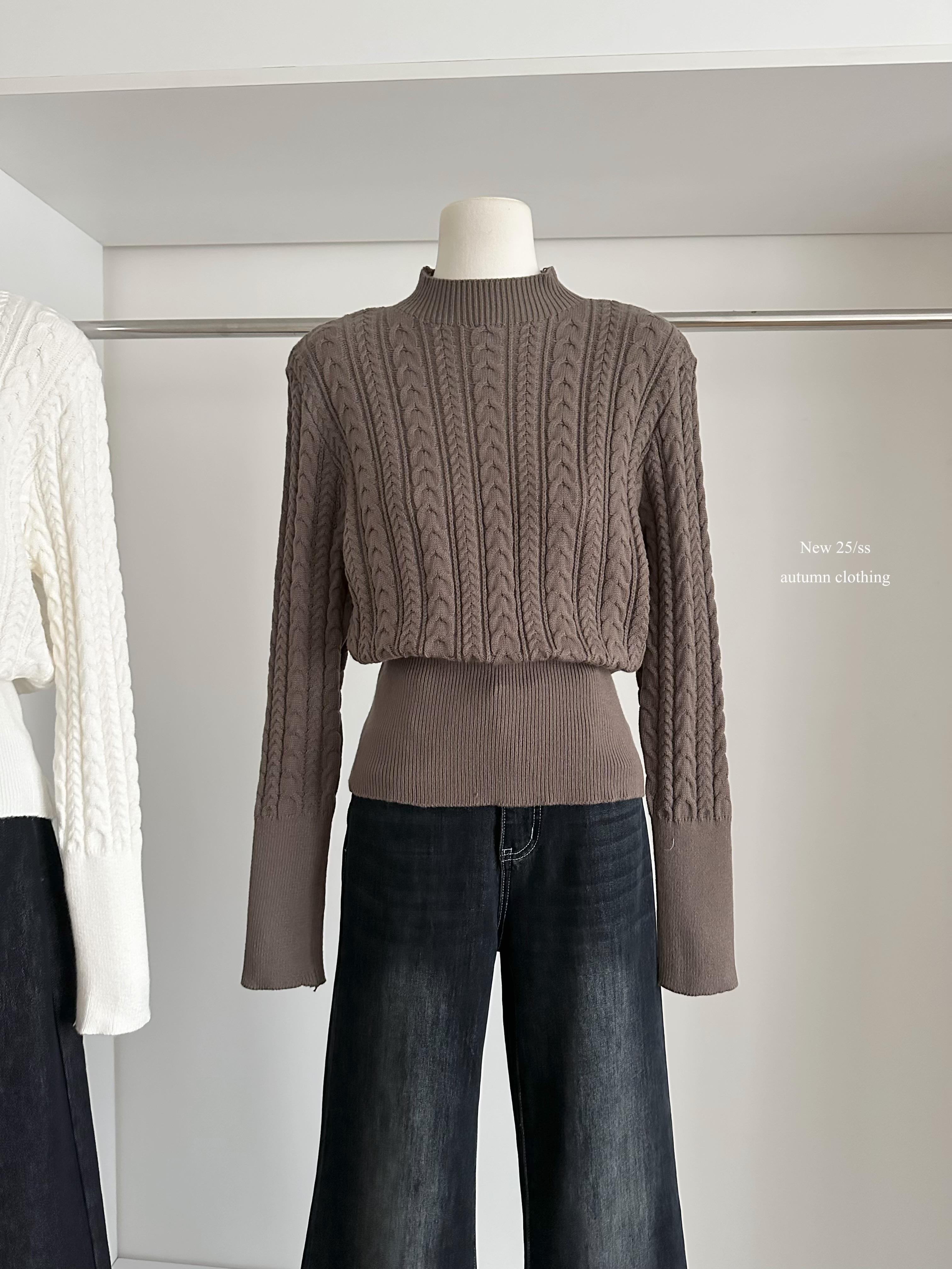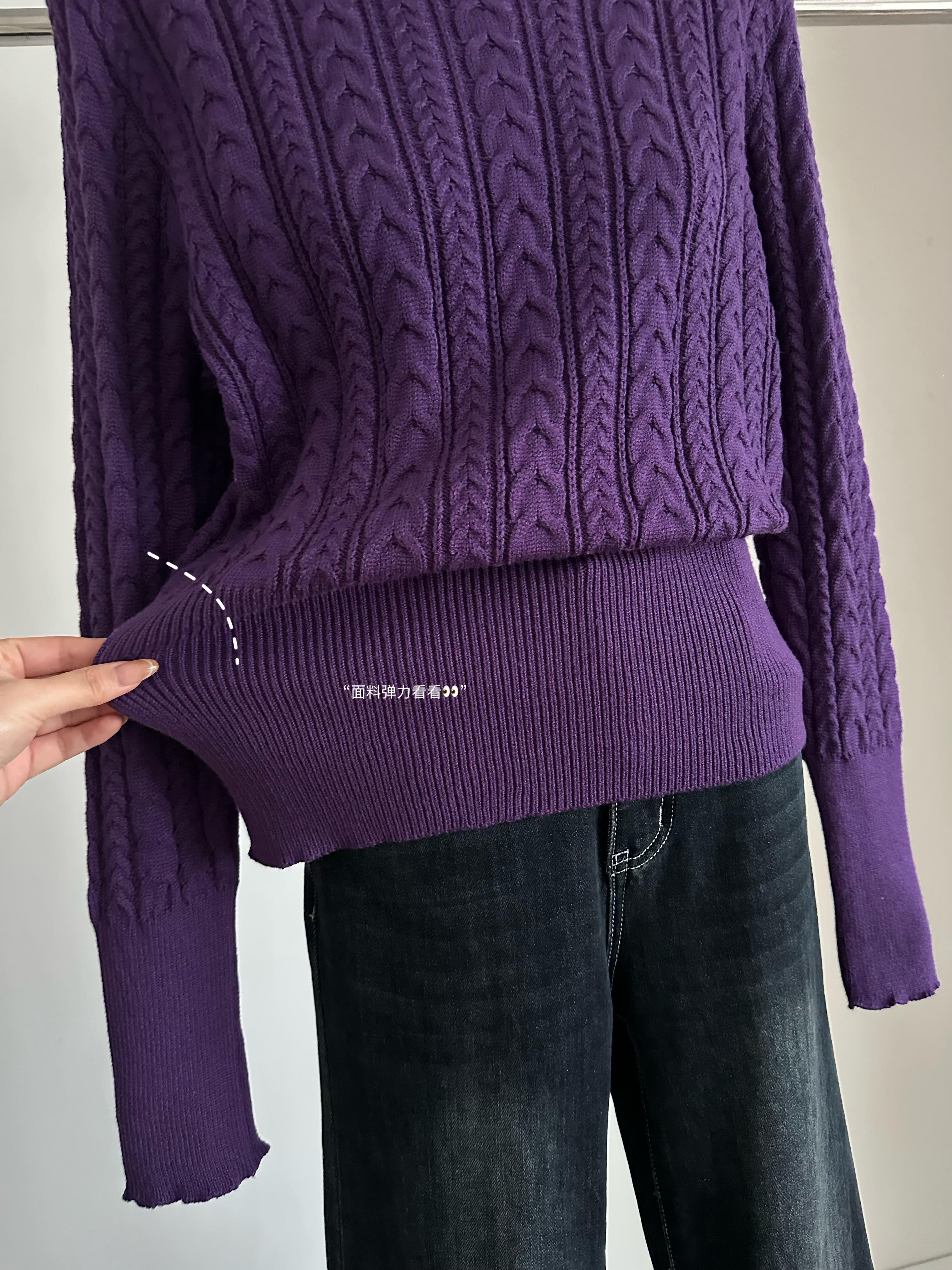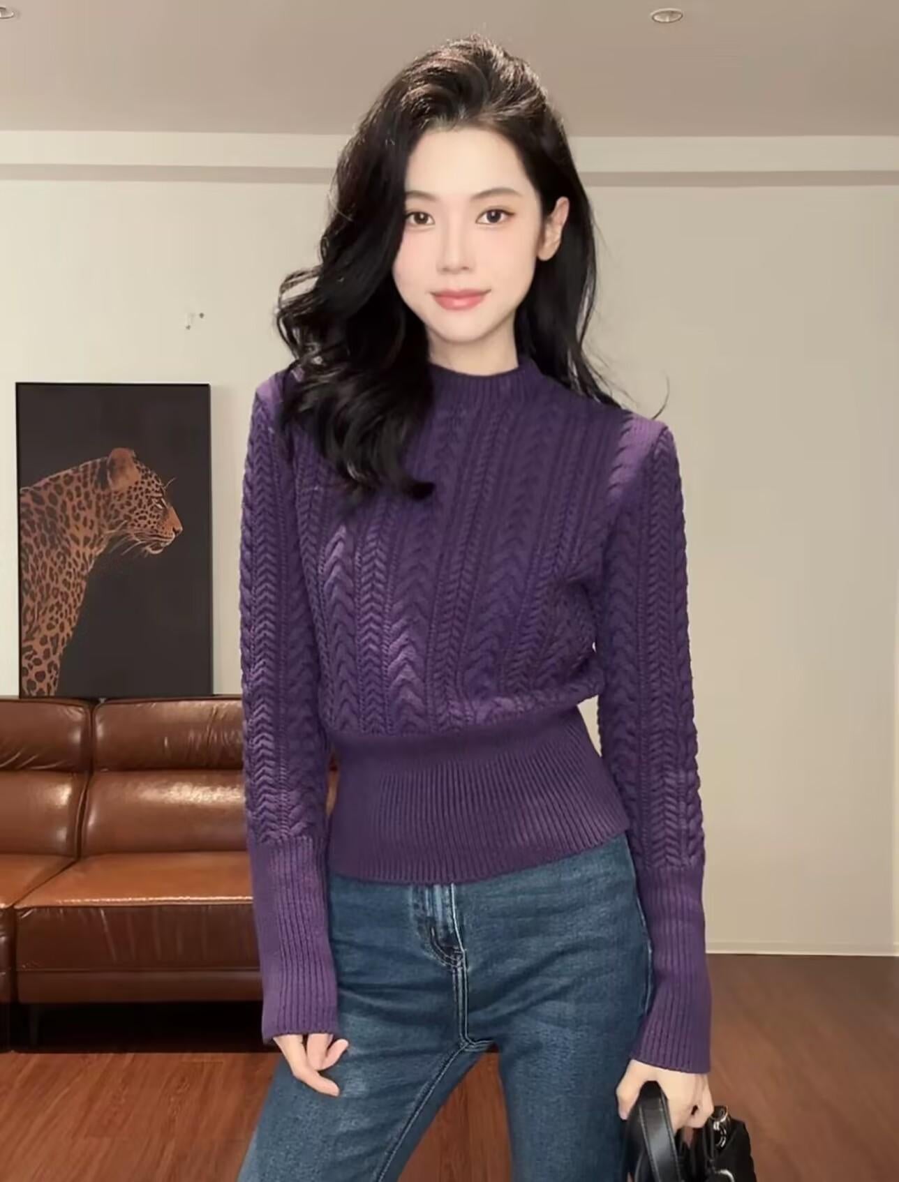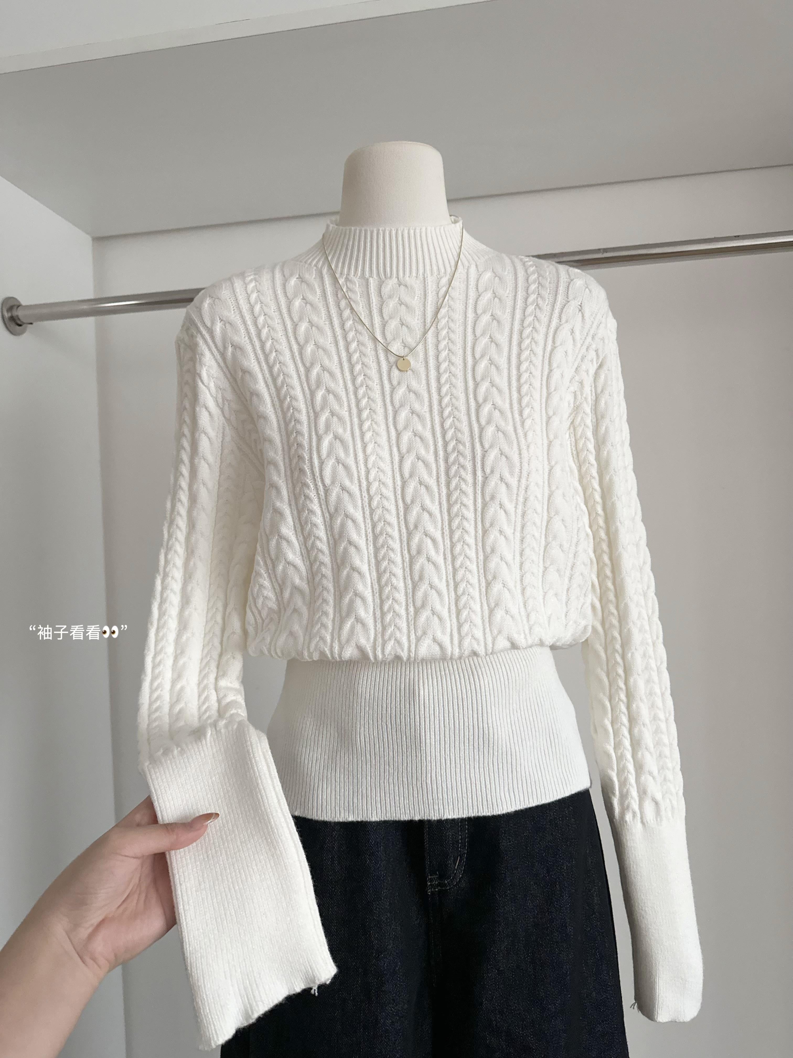 【C7864】韓系簡約休閒百搭麻花小立領收腰厚款套頭保暖毛衣